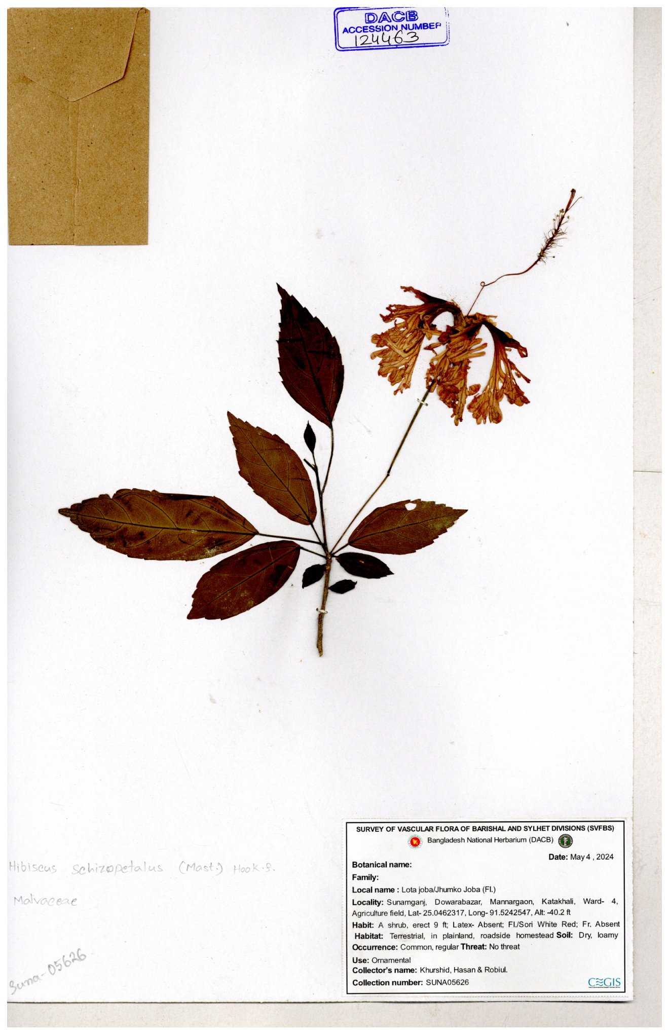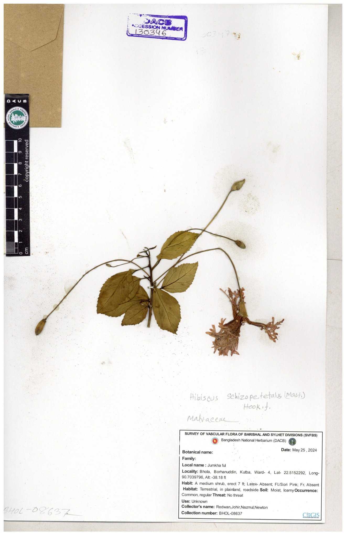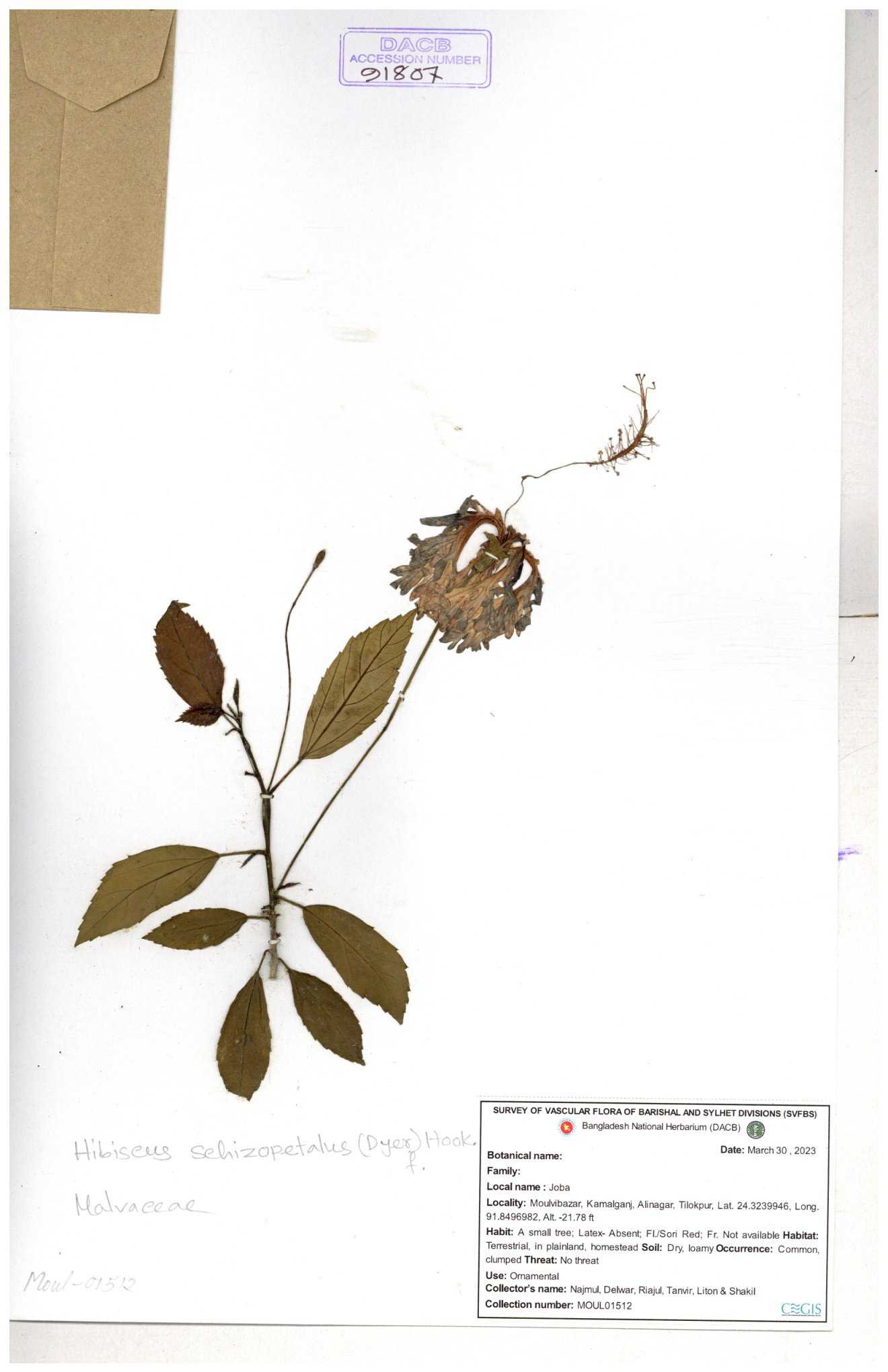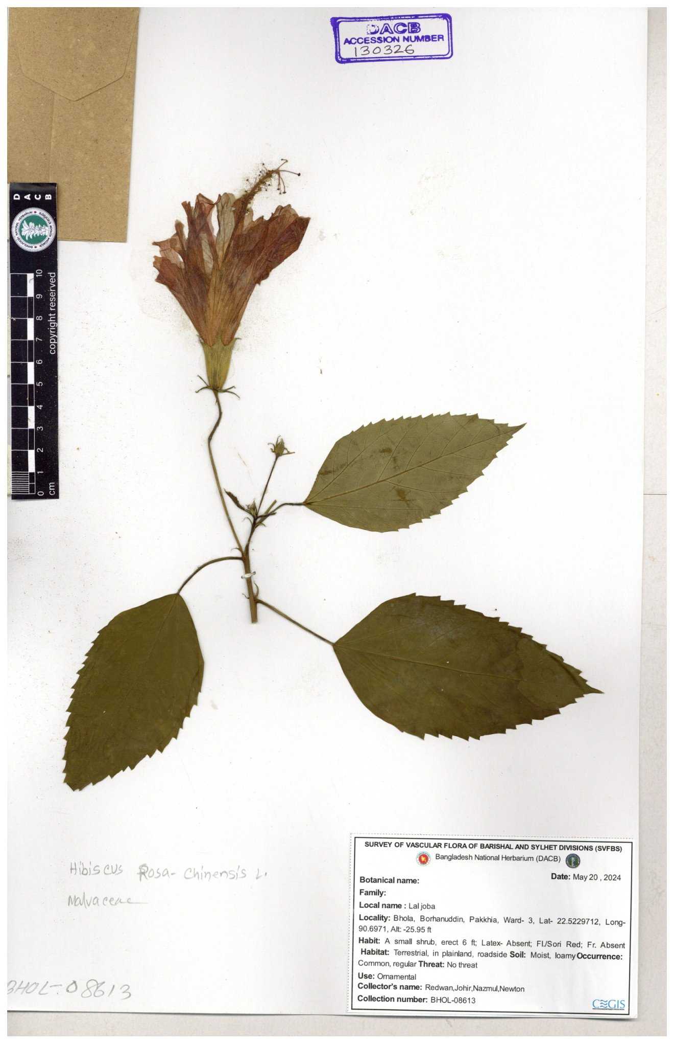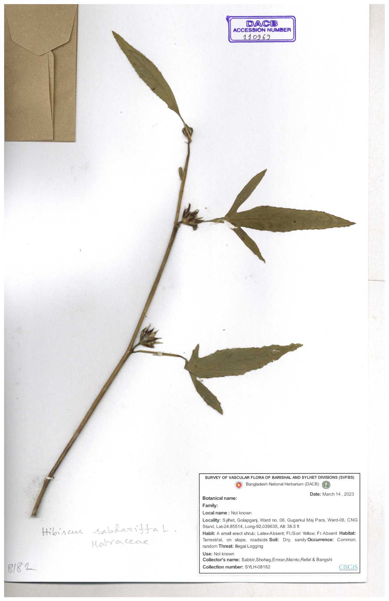 | 14128 | Malvaceae | Urena Urena sinuata | Mahfuz & A.M. Huq | MZ. 251 09-08-1988 |