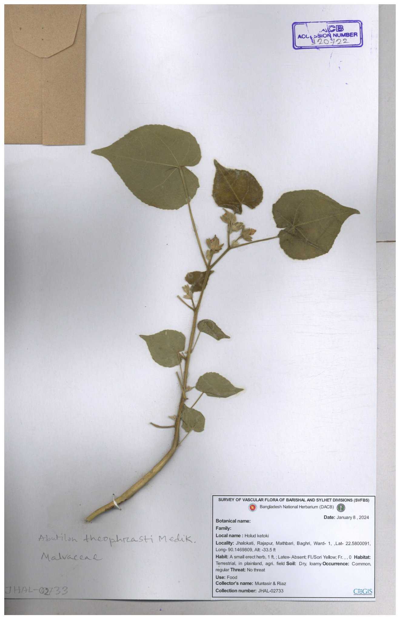 | 50436 | Malvaceae | Abutilon theophrasti Medik. | Tajul, Owahid & Kawsar | TOK- 3247 25-01-2017 |
