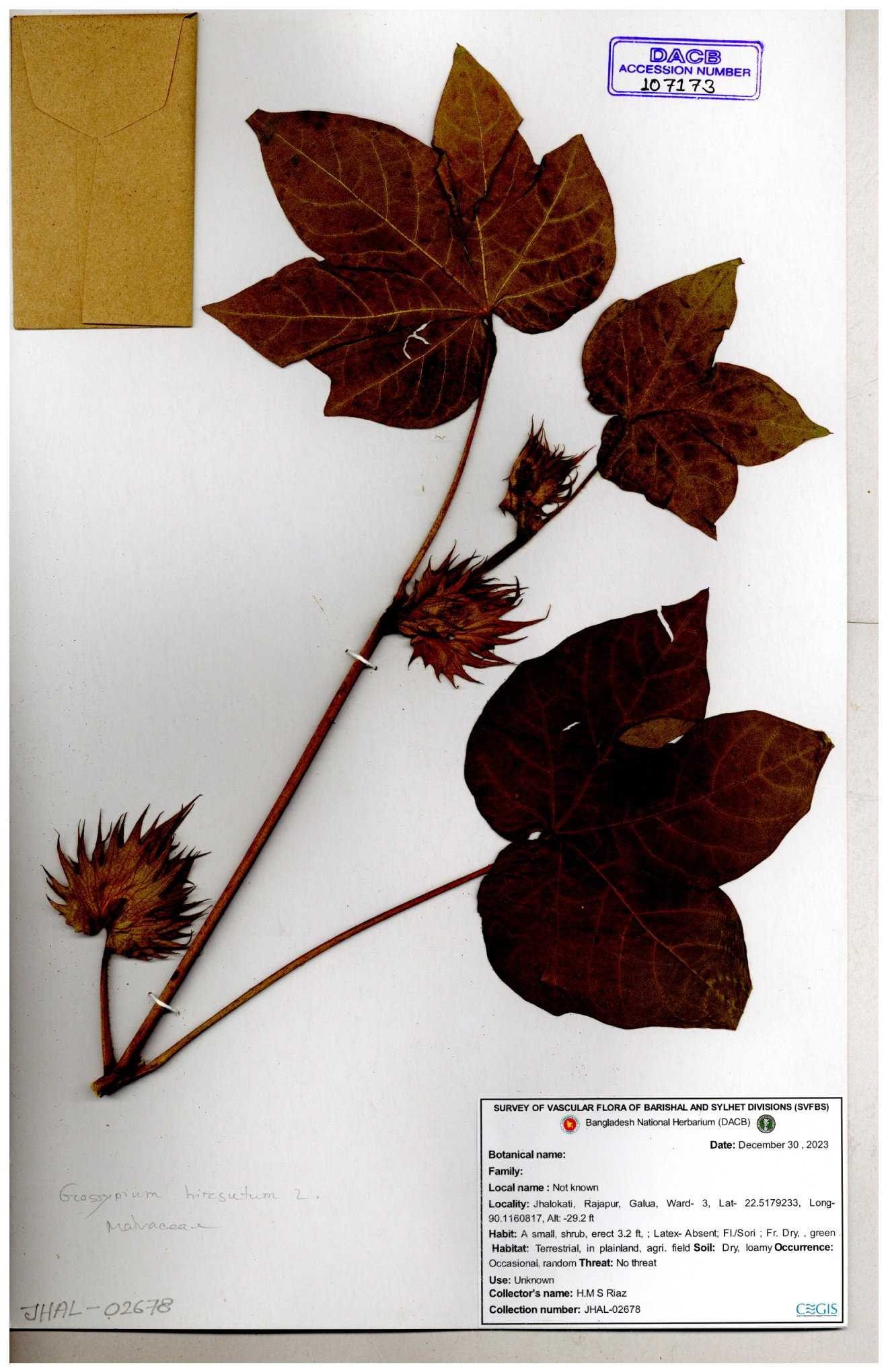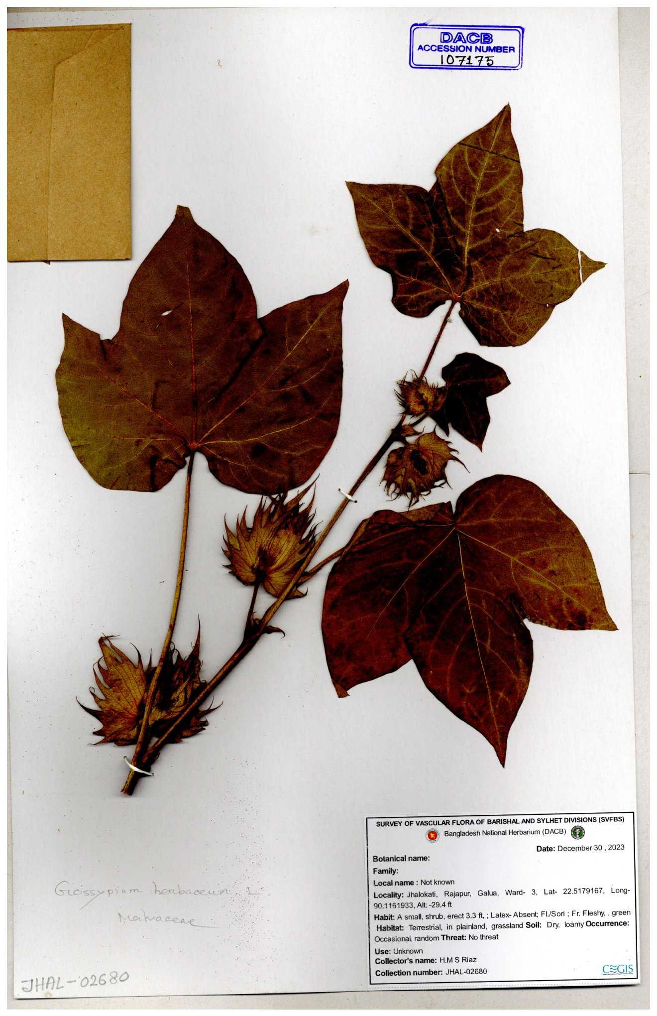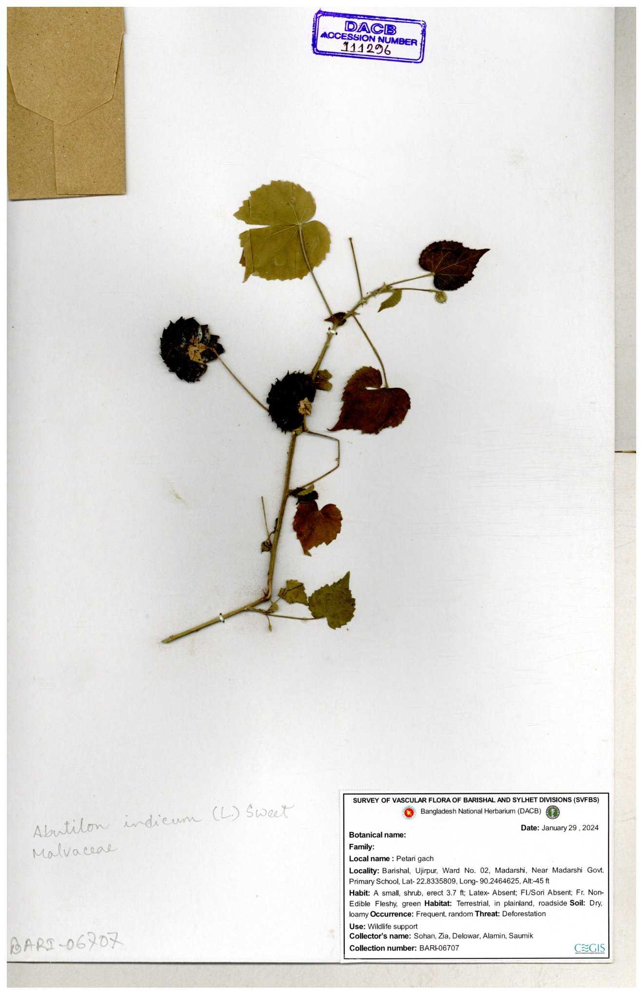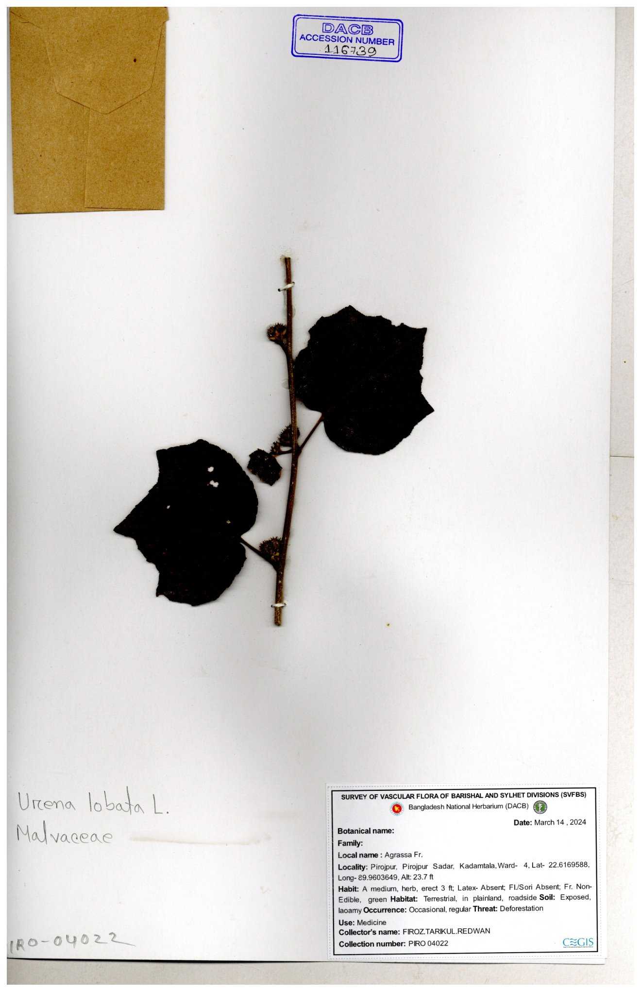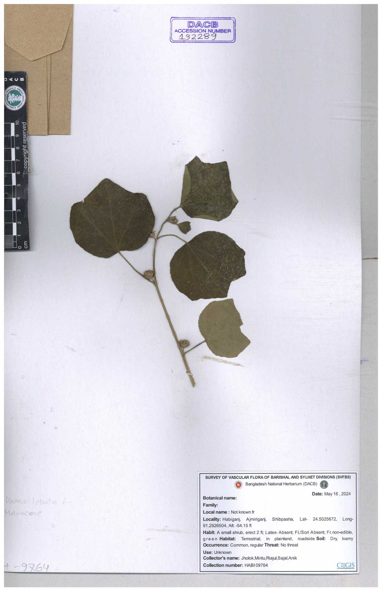 | 65293 | Malvaceae | Urena lobata | Mominur Rahman, Al amin & Kamrul Islam | JCR-1693 14-11-2016 |