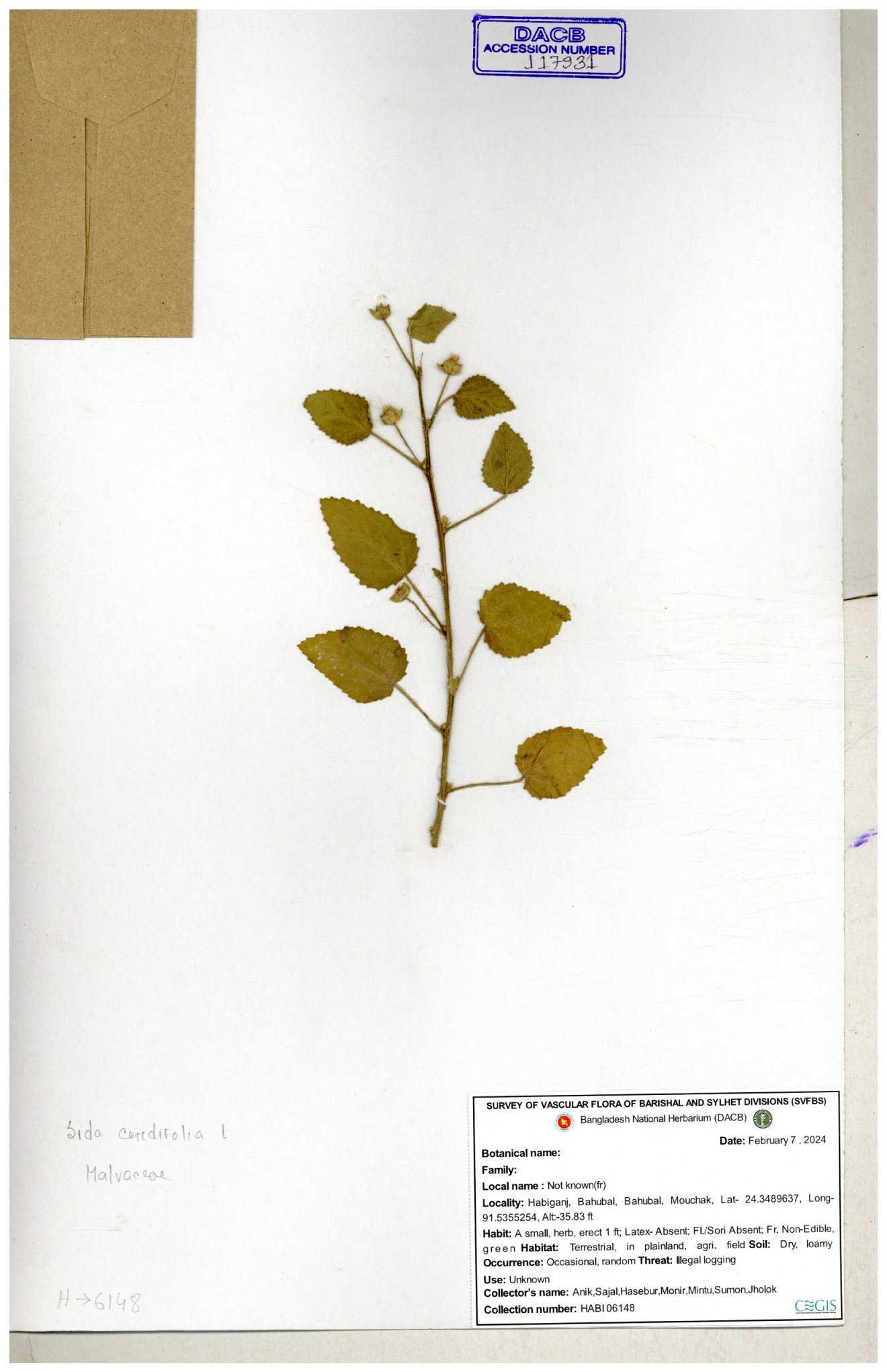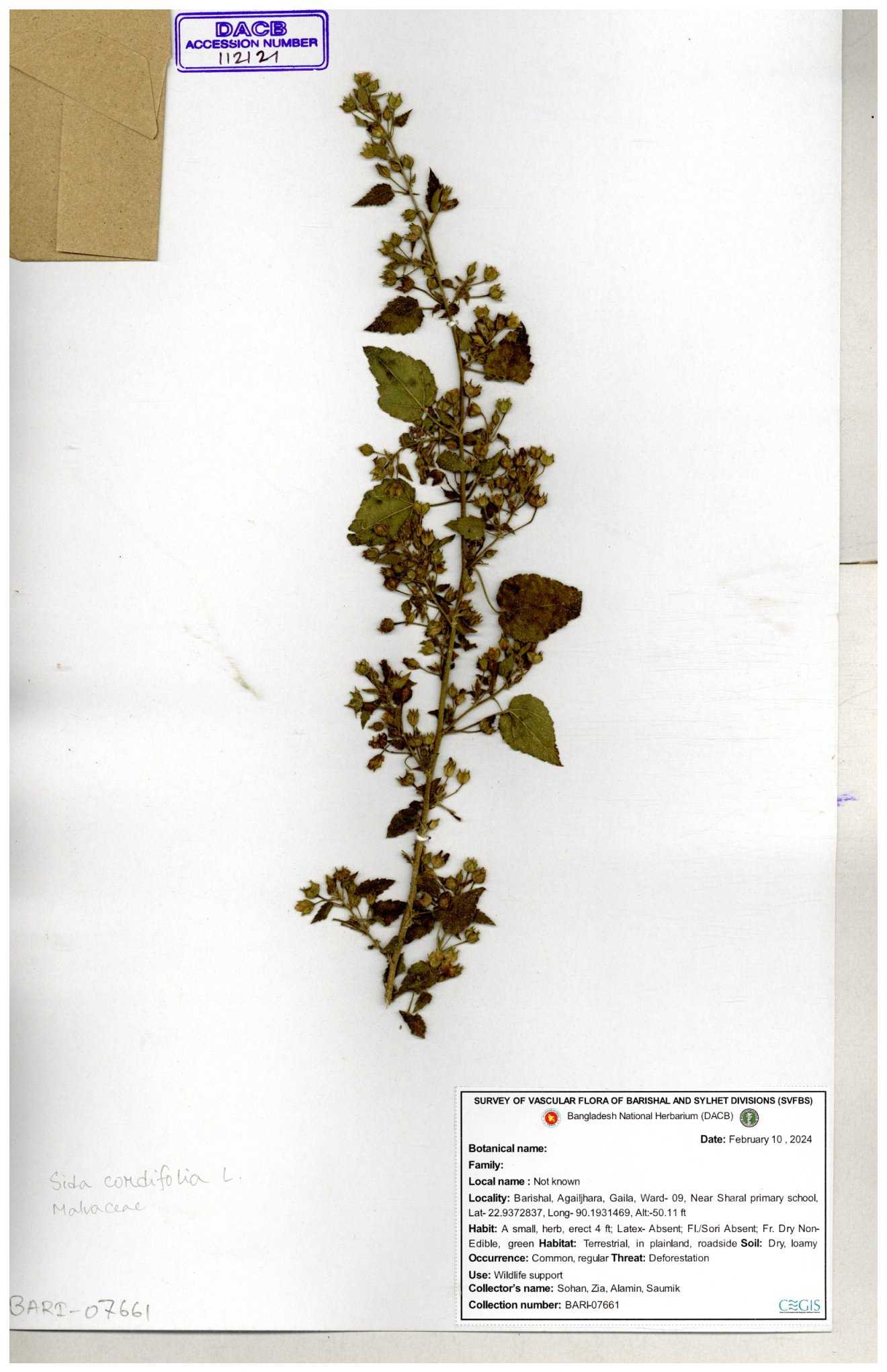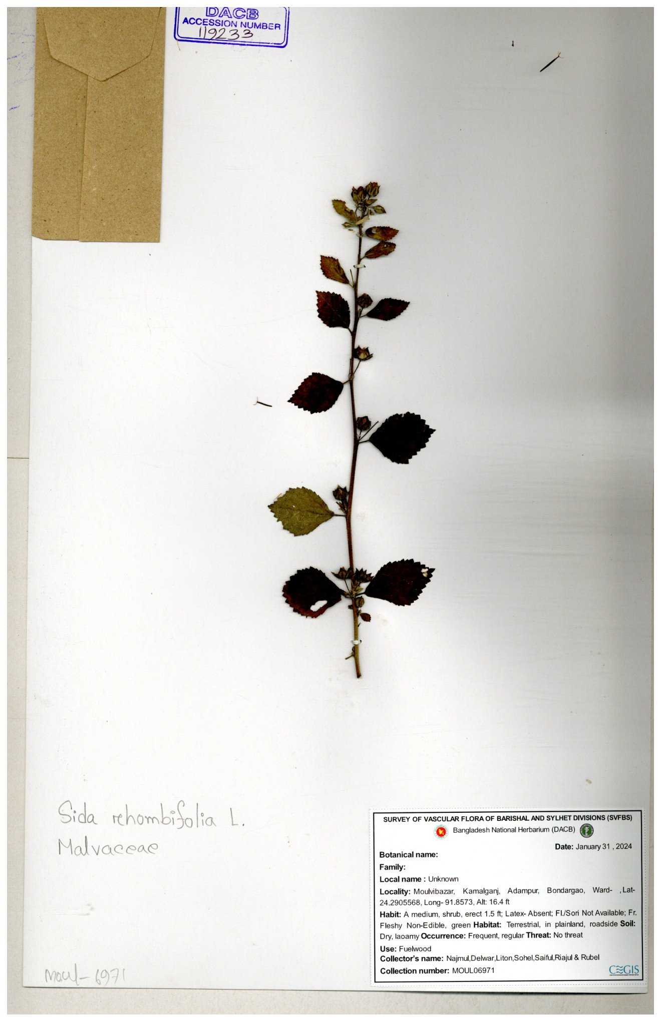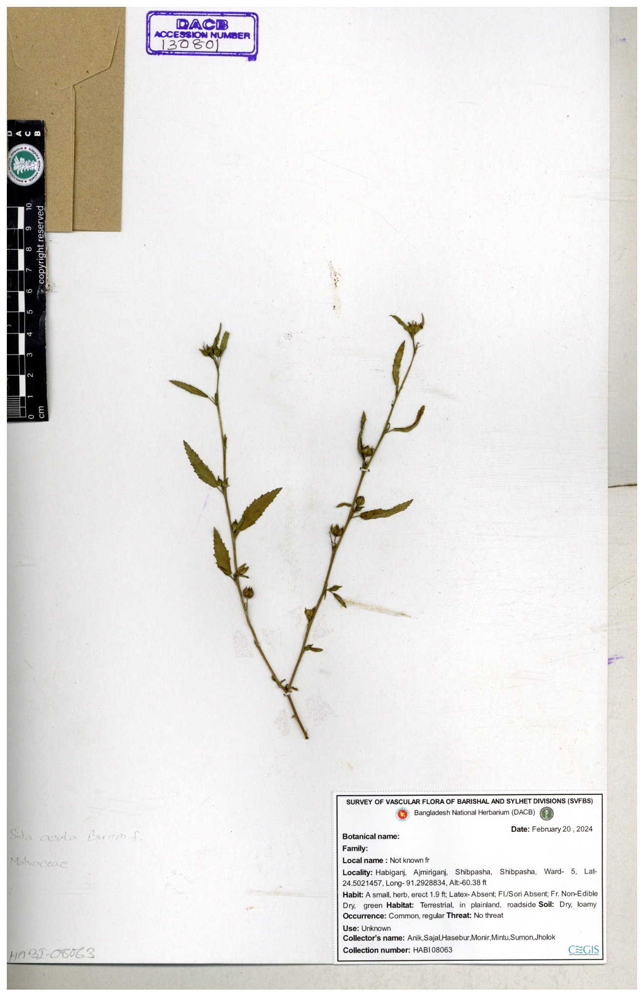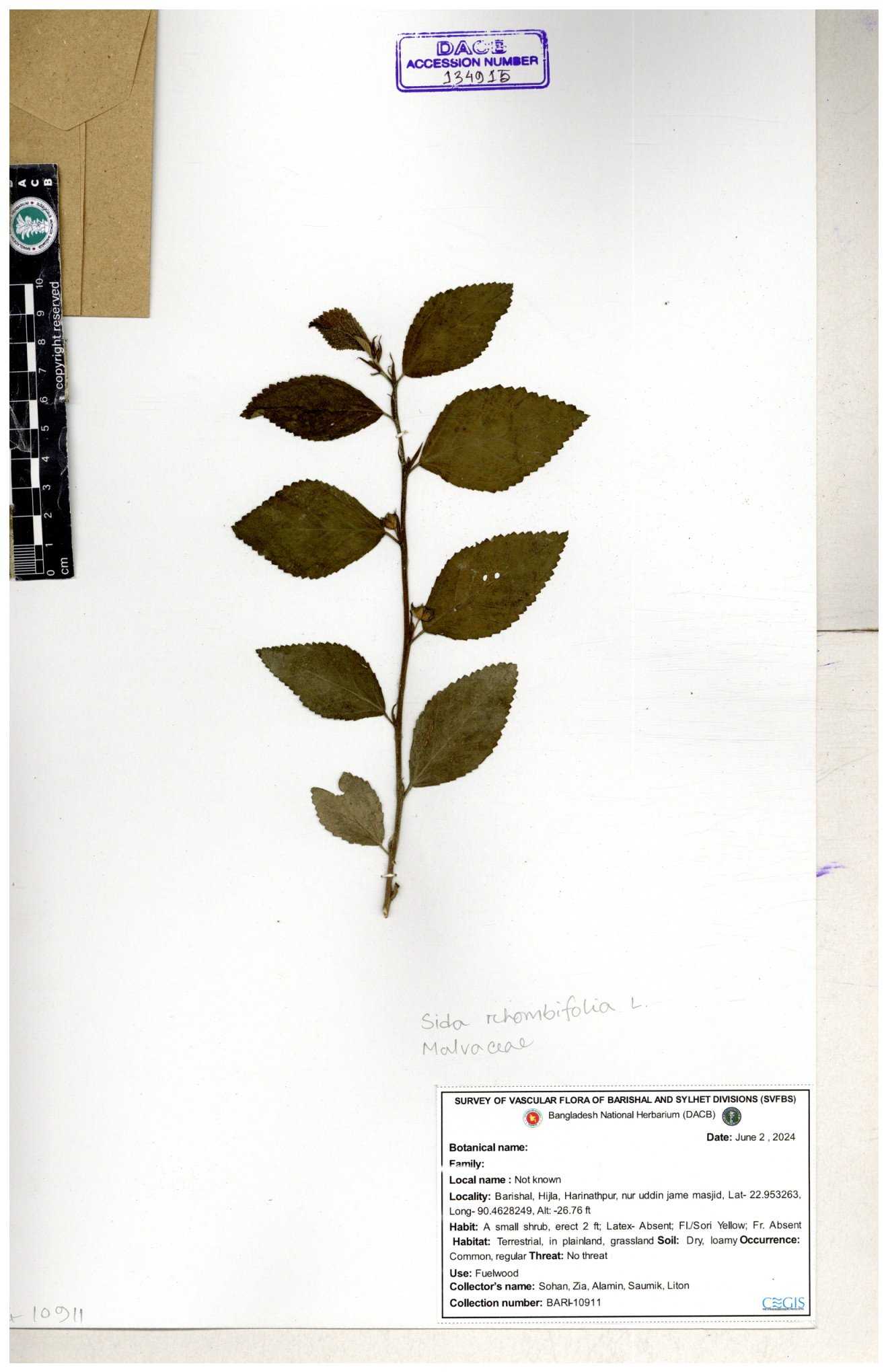 | 65983 | Malvaceae | Sida acuta Burm.f. | Berala | Khandakar Kamrul Islam | KKI-4066 12-03-2020 |