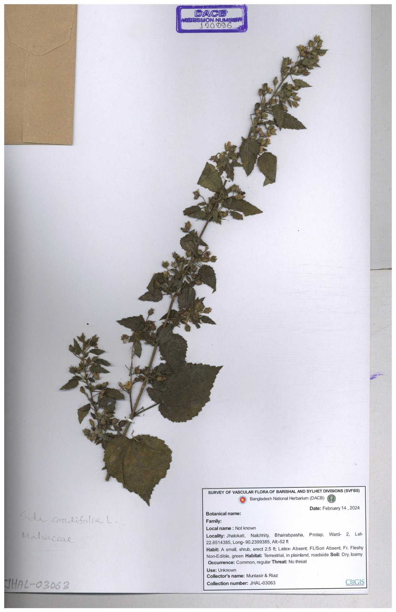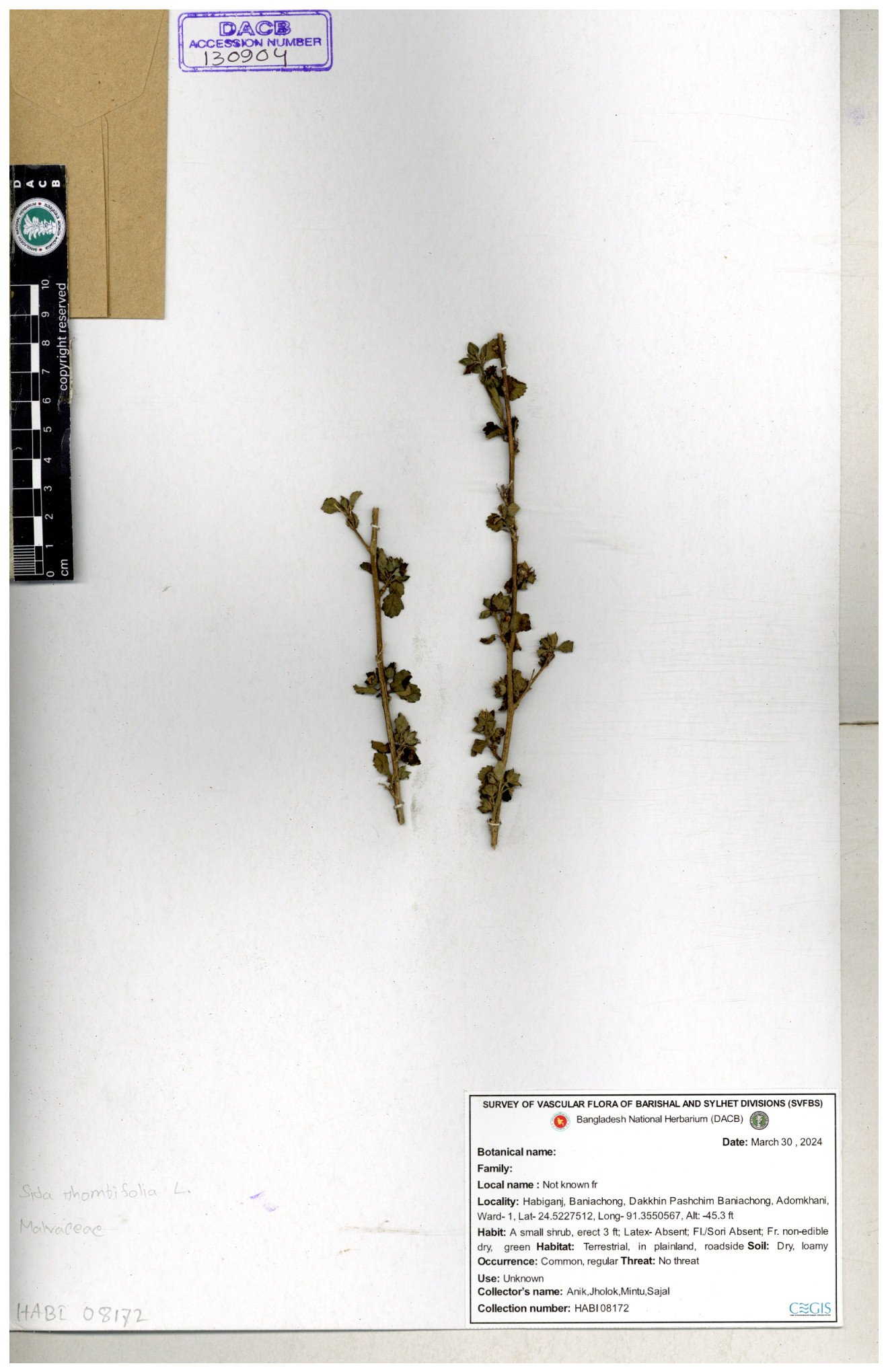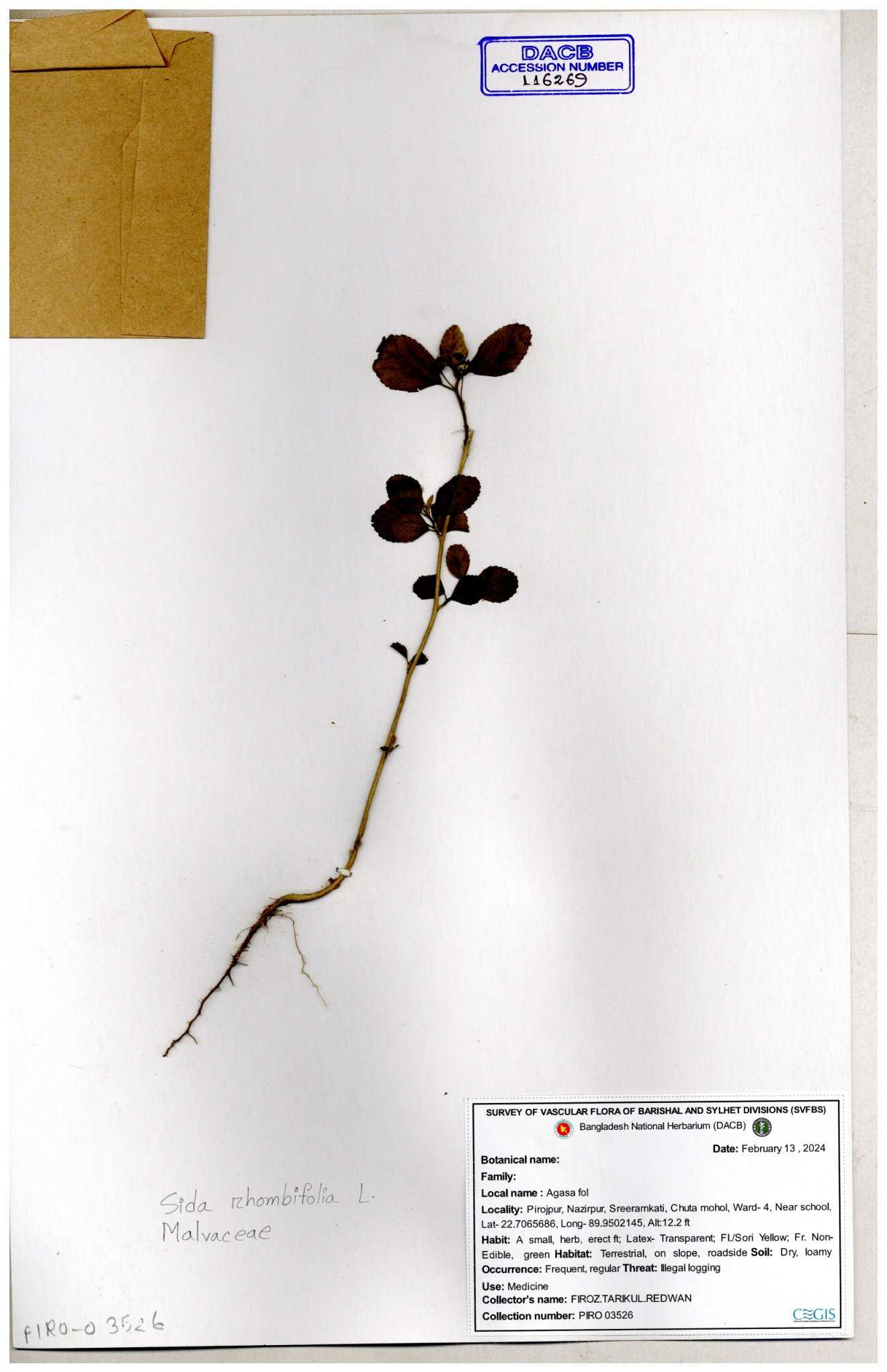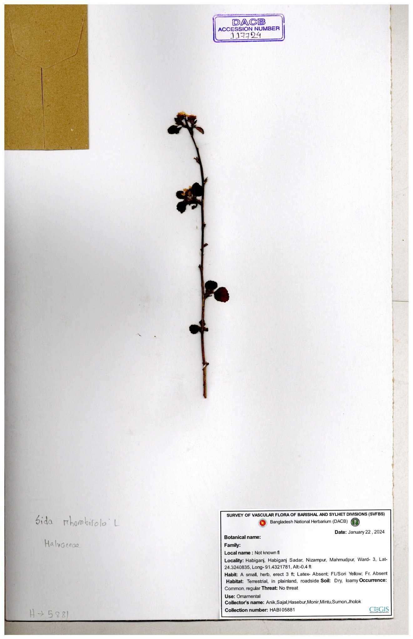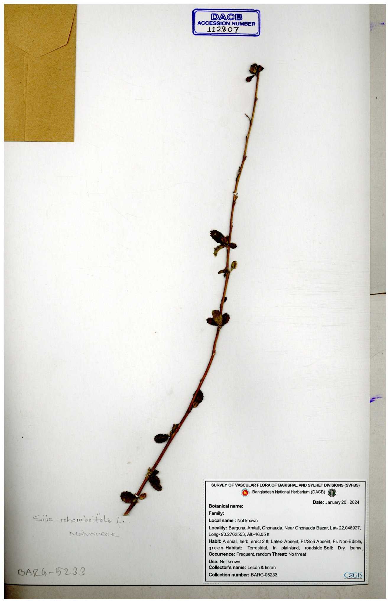 | 65983 | Malvaceae | Sida acuta Burm.f. | Berala | Khandakar Kamrul Islam | KKI-4066 12-03-2020 |