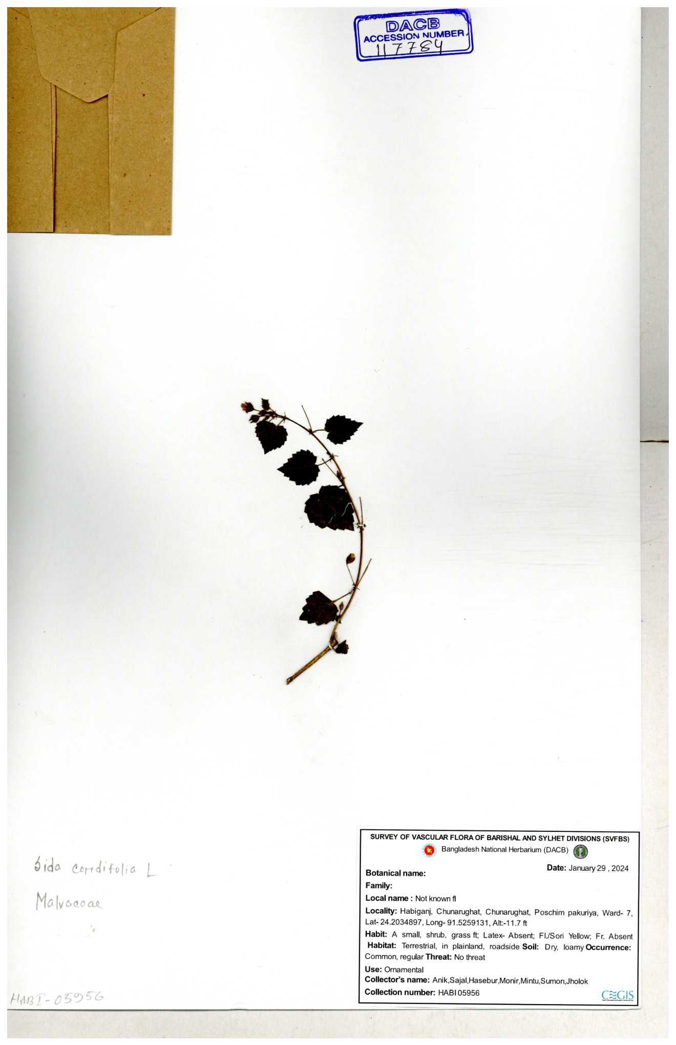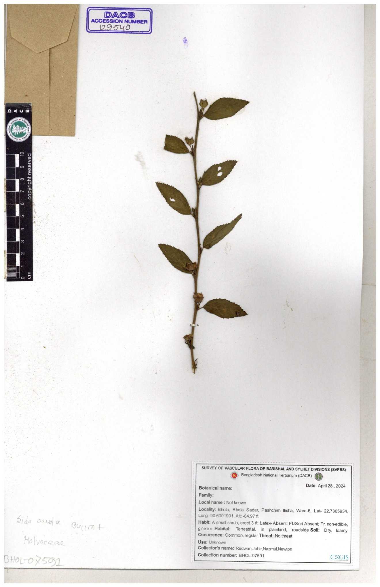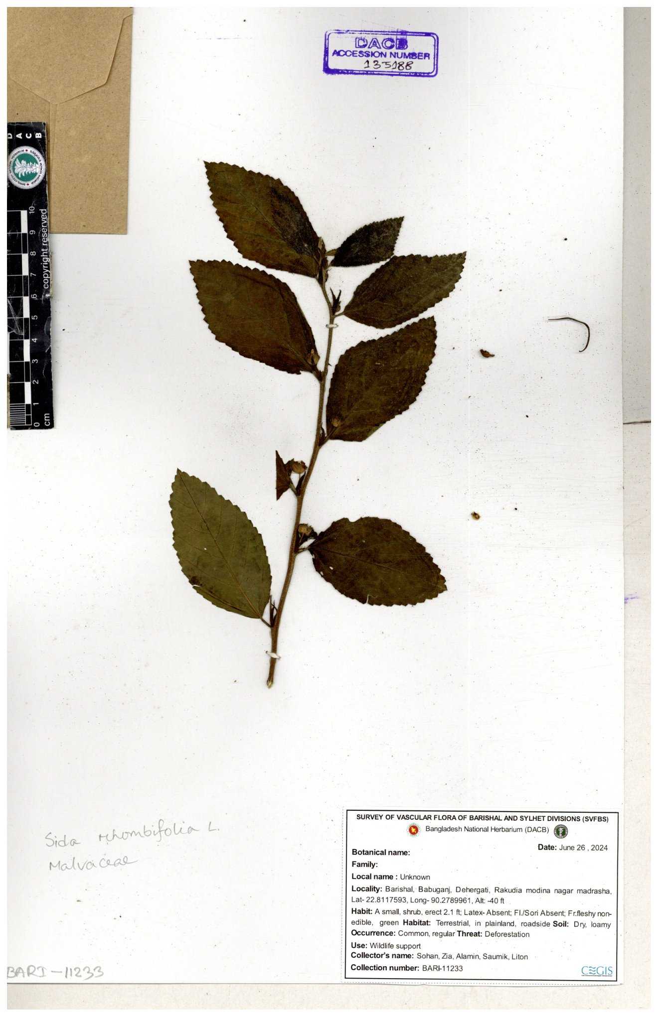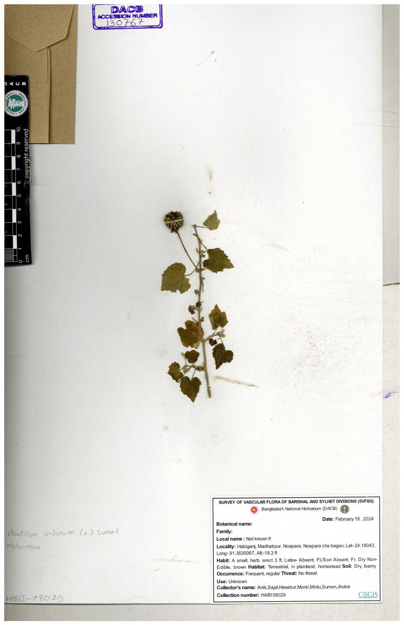 | 65983 | Malvaceae | Sida acuta Burm.f. | Berala | Khandakar Kamrul Islam | KKI-4066 12-03-2020 |