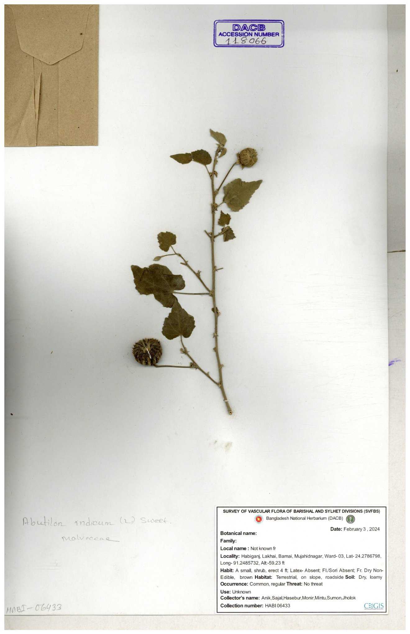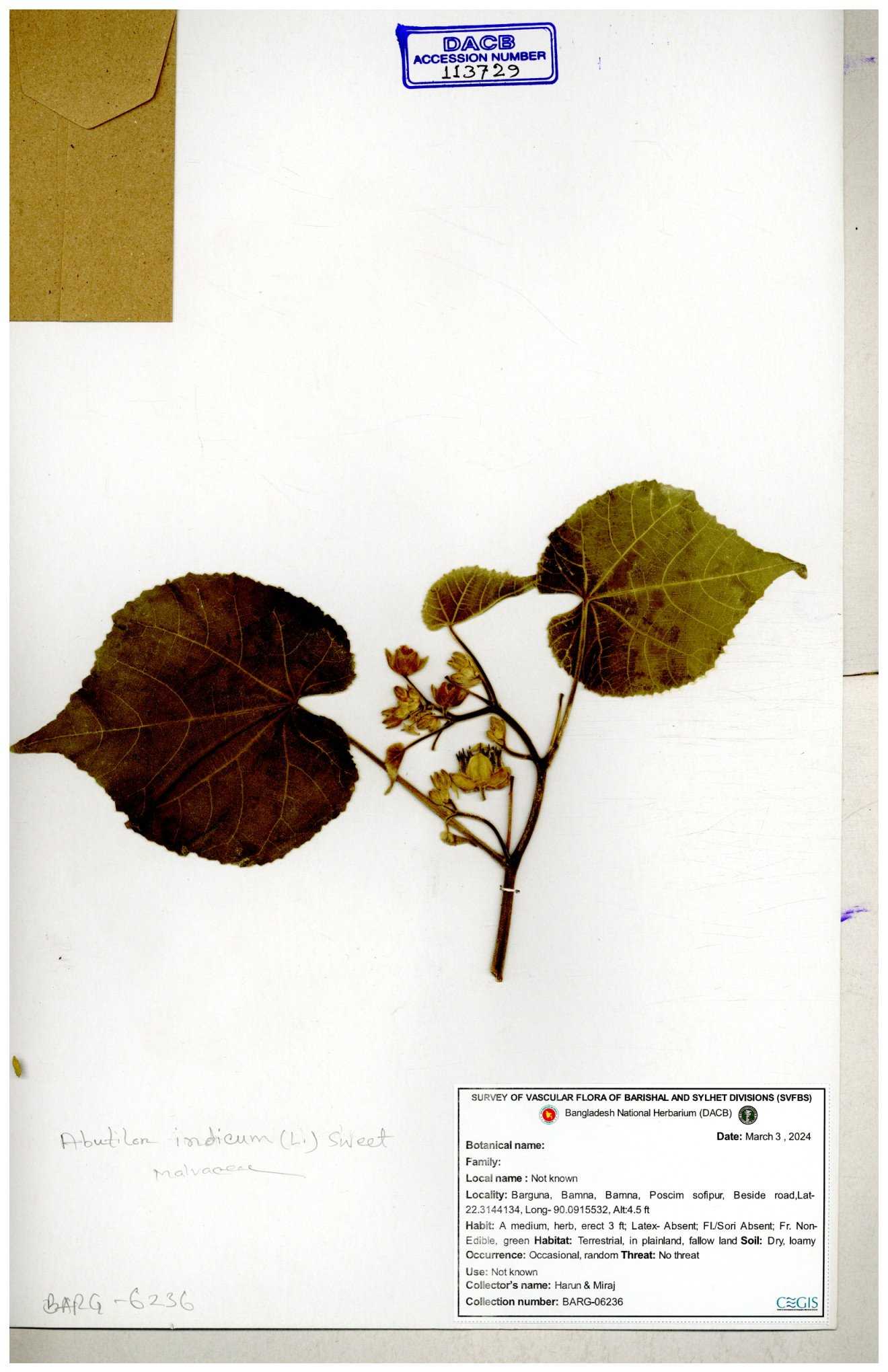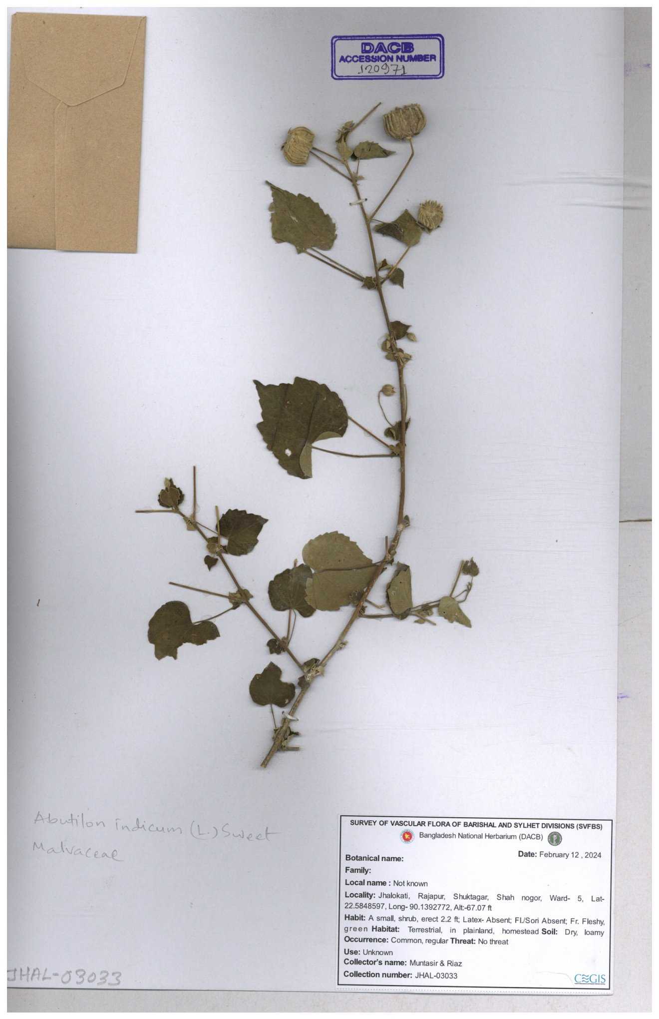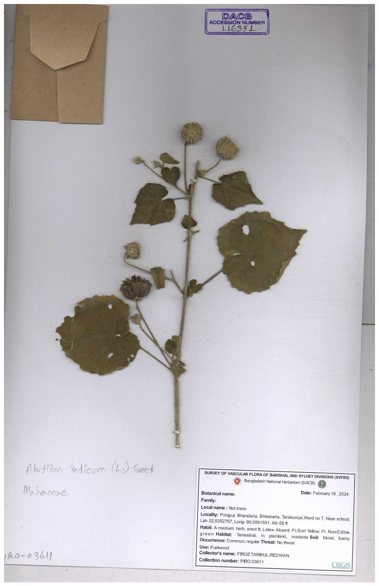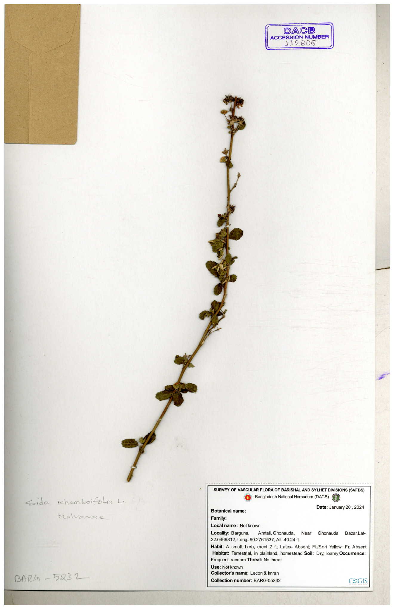 | 65983 | Malvaceae | Sida acuta Burm.f. | Berala | Khandakar Kamrul Islam | KKI-4066 12-03-2020 |