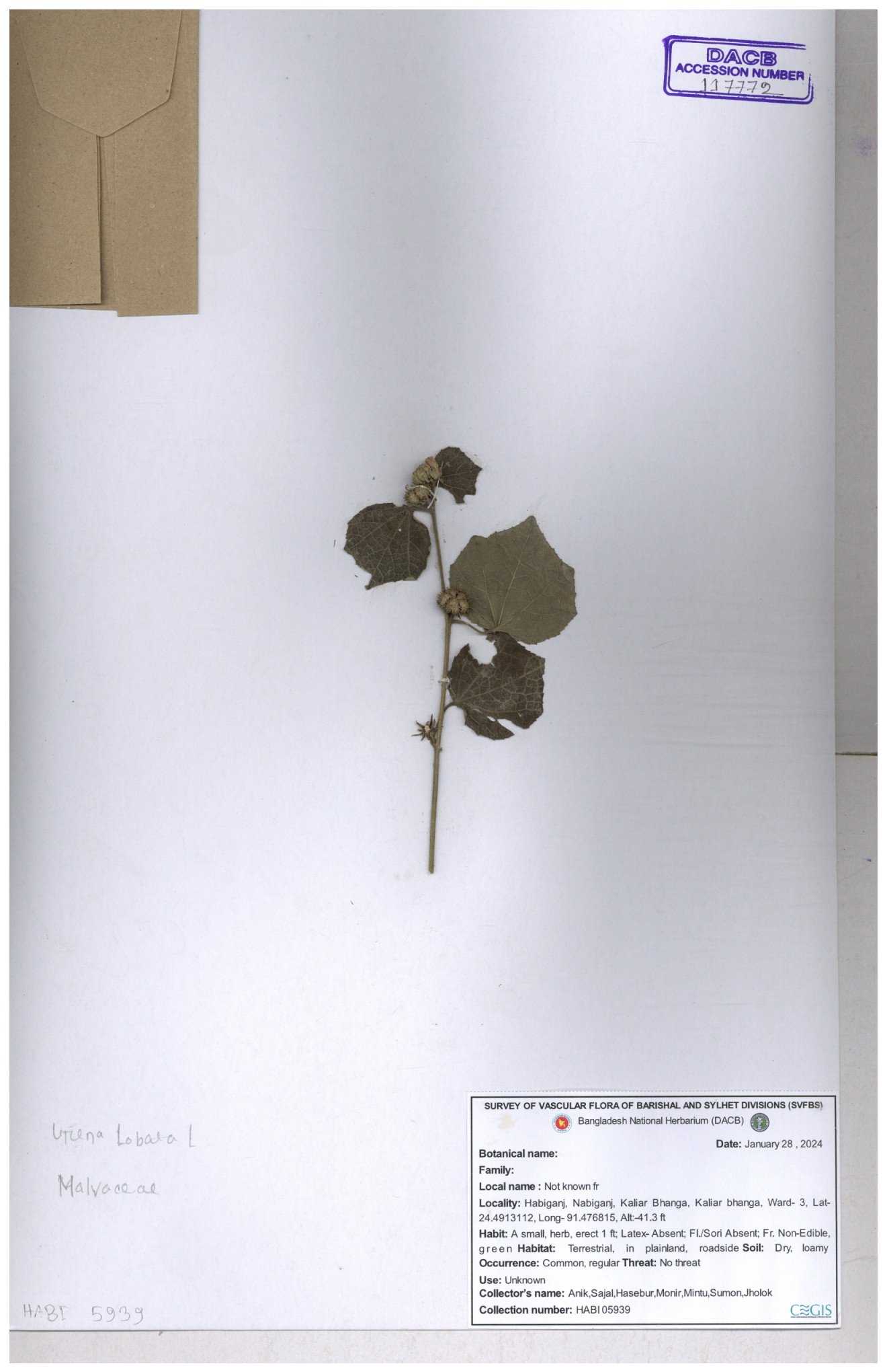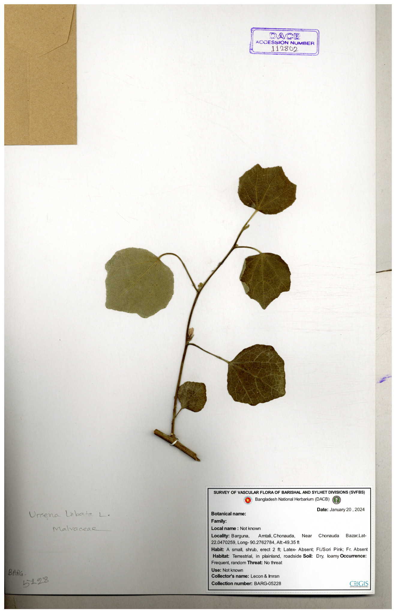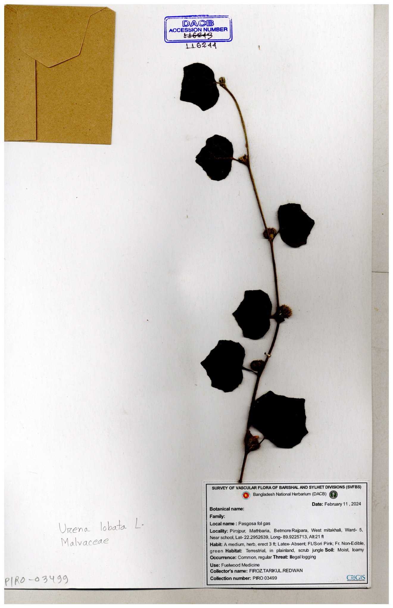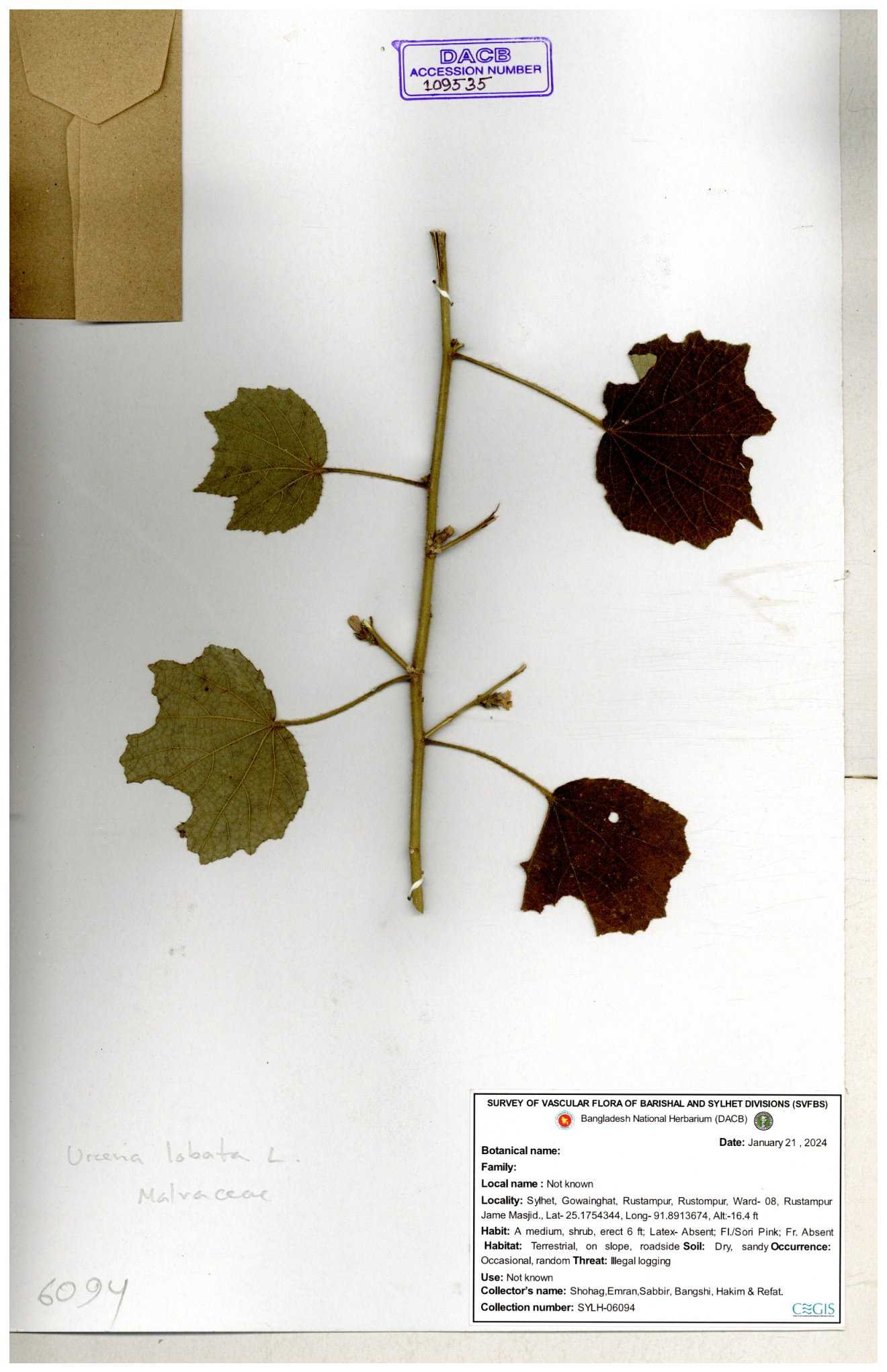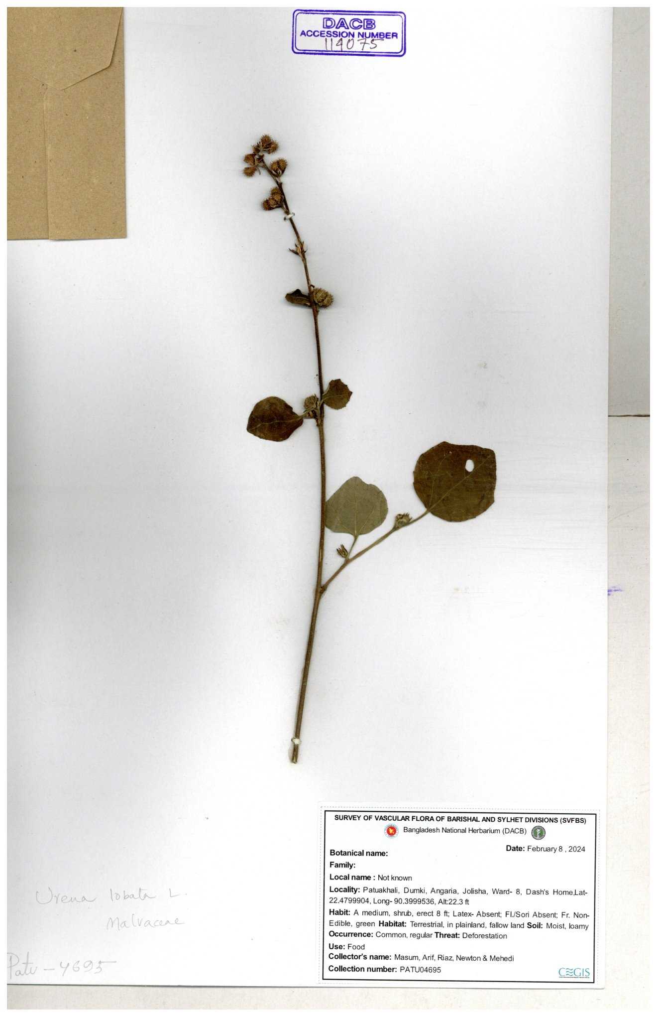 | 65947 | Malvaceae | Urena Urera L. | Khandakar Kamrul Islam | KKI-3982 12-02-2020 |