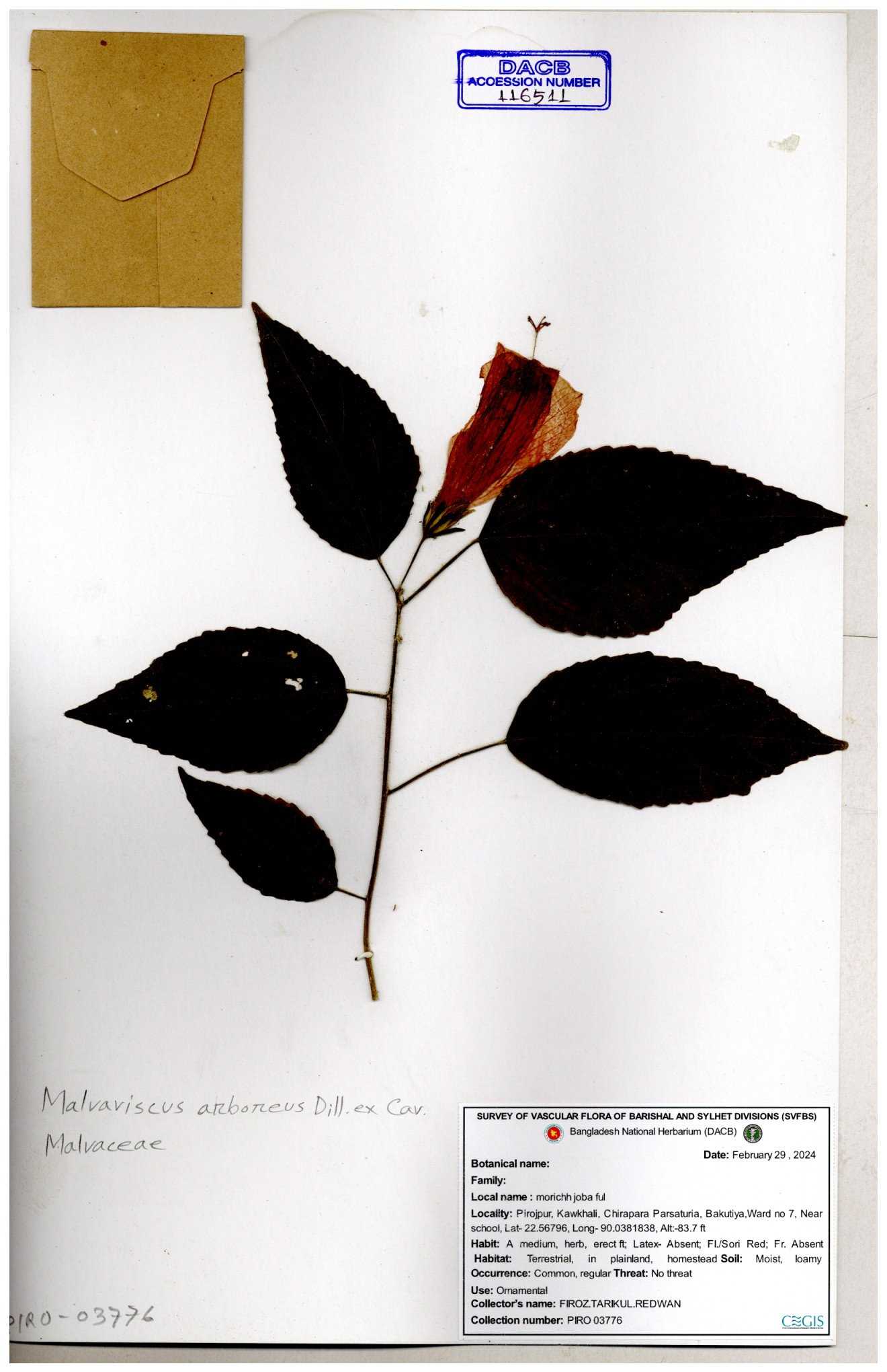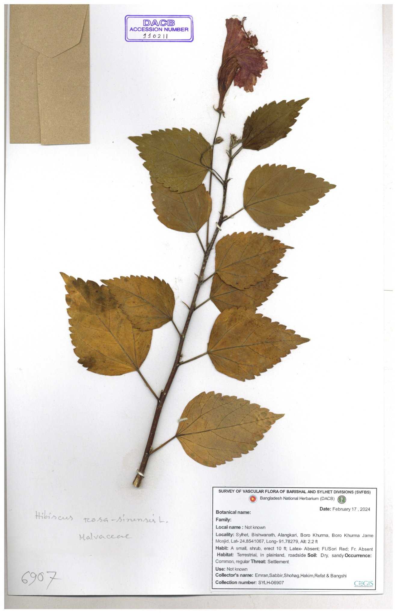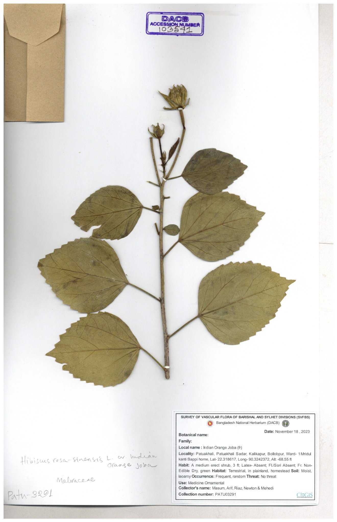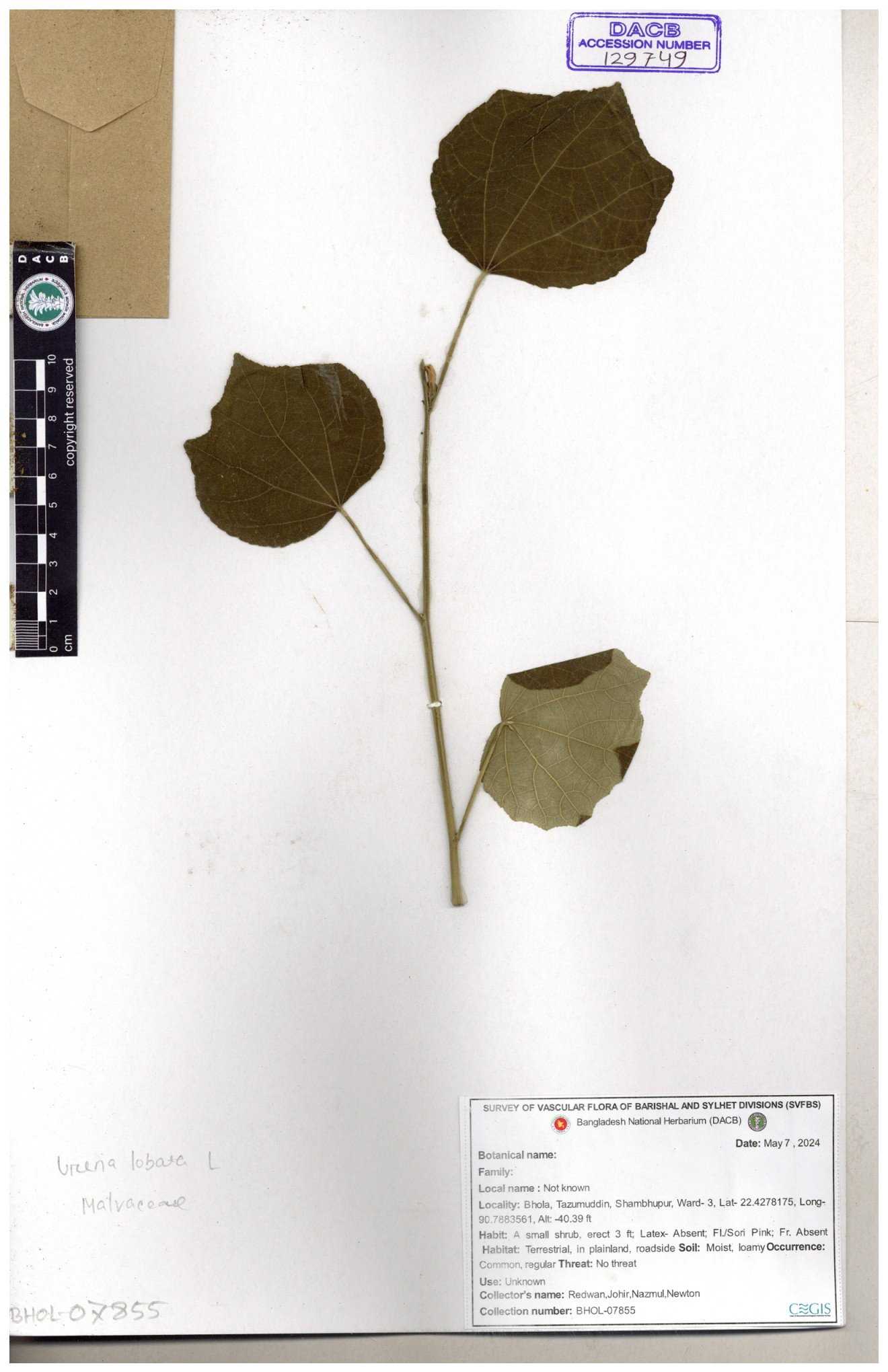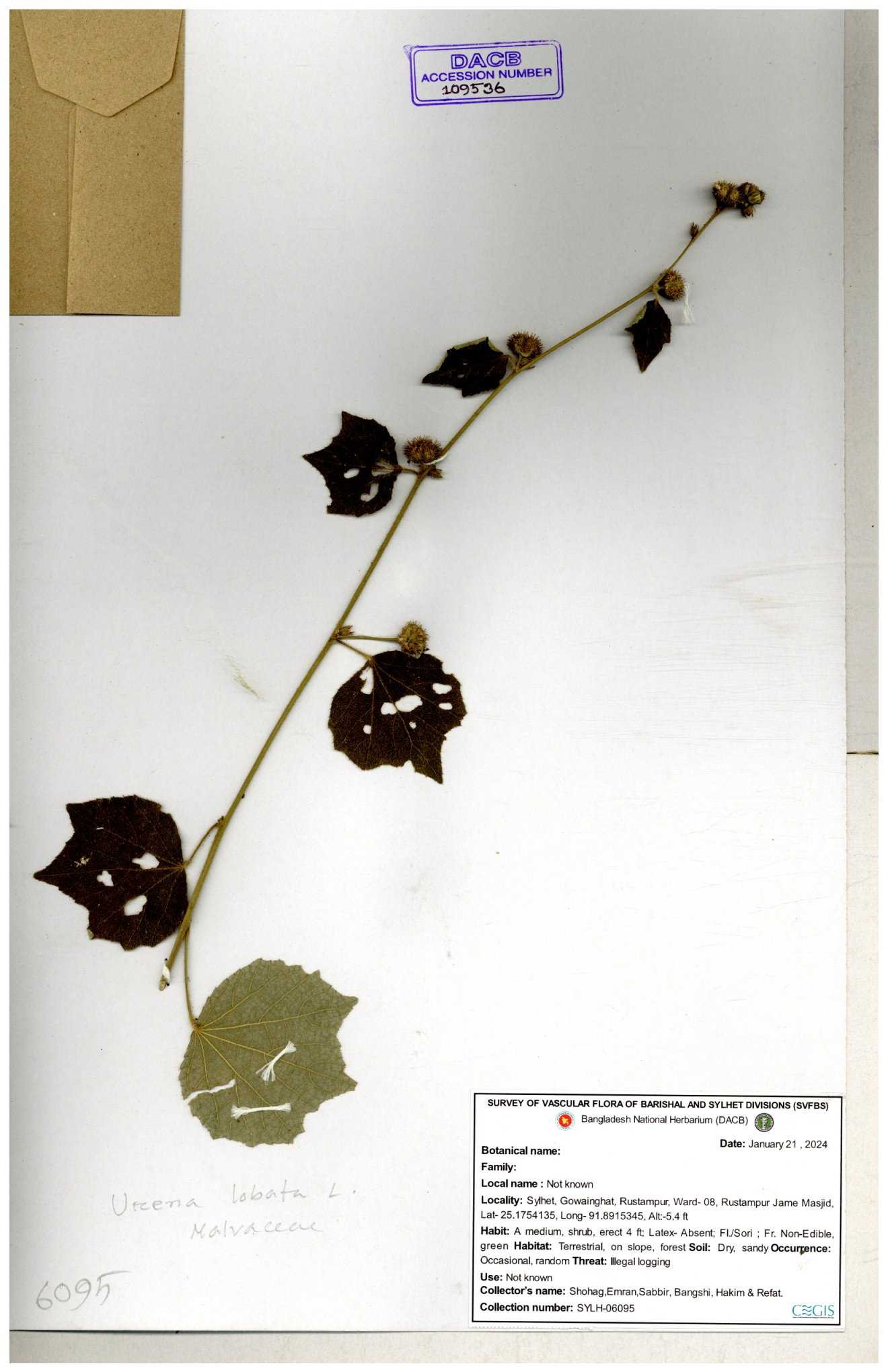 | 65947 | Malvaceae | Urena Urera L. | Khandakar Kamrul Islam | KKI-3982 12-02-2020 |