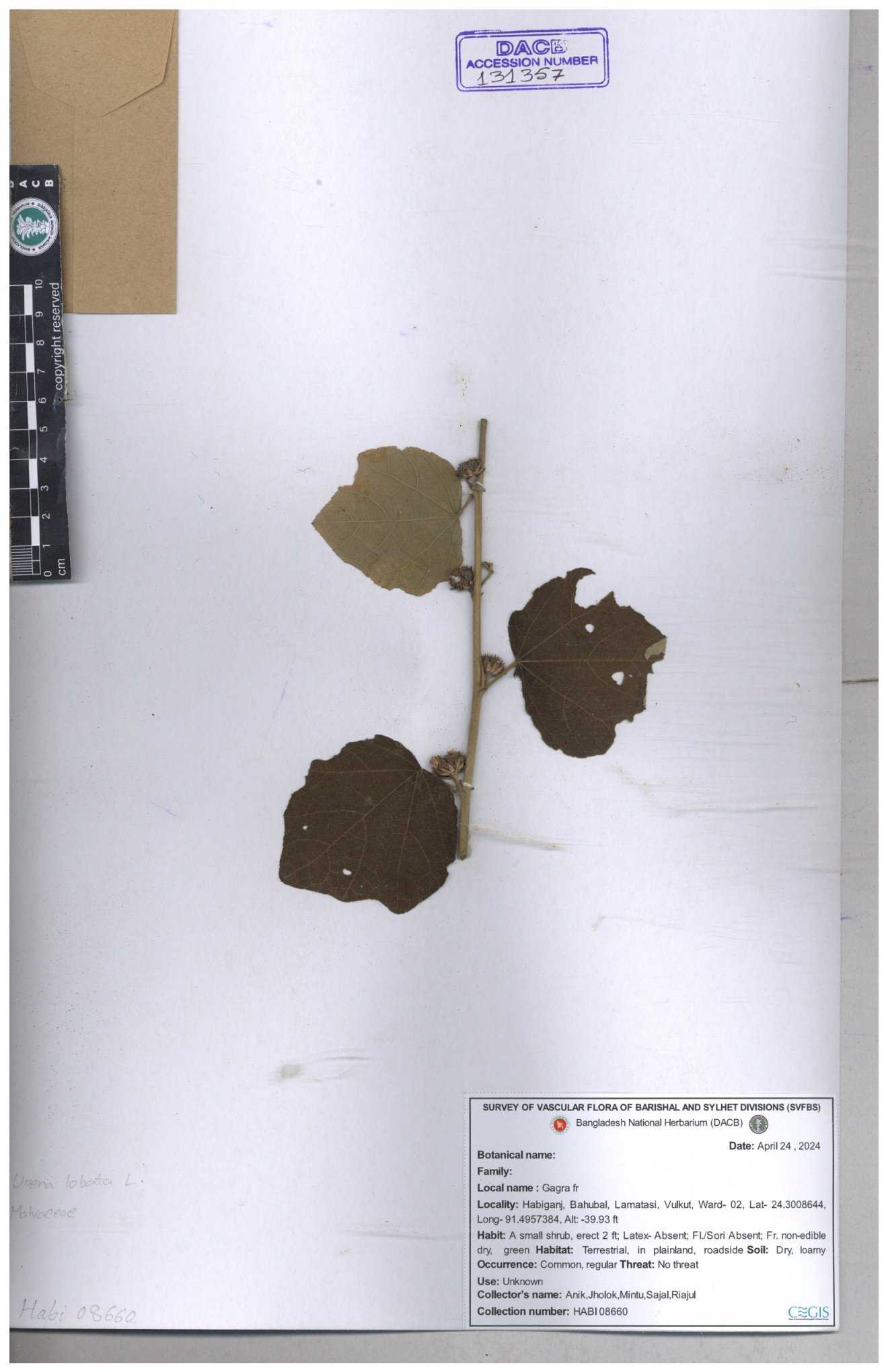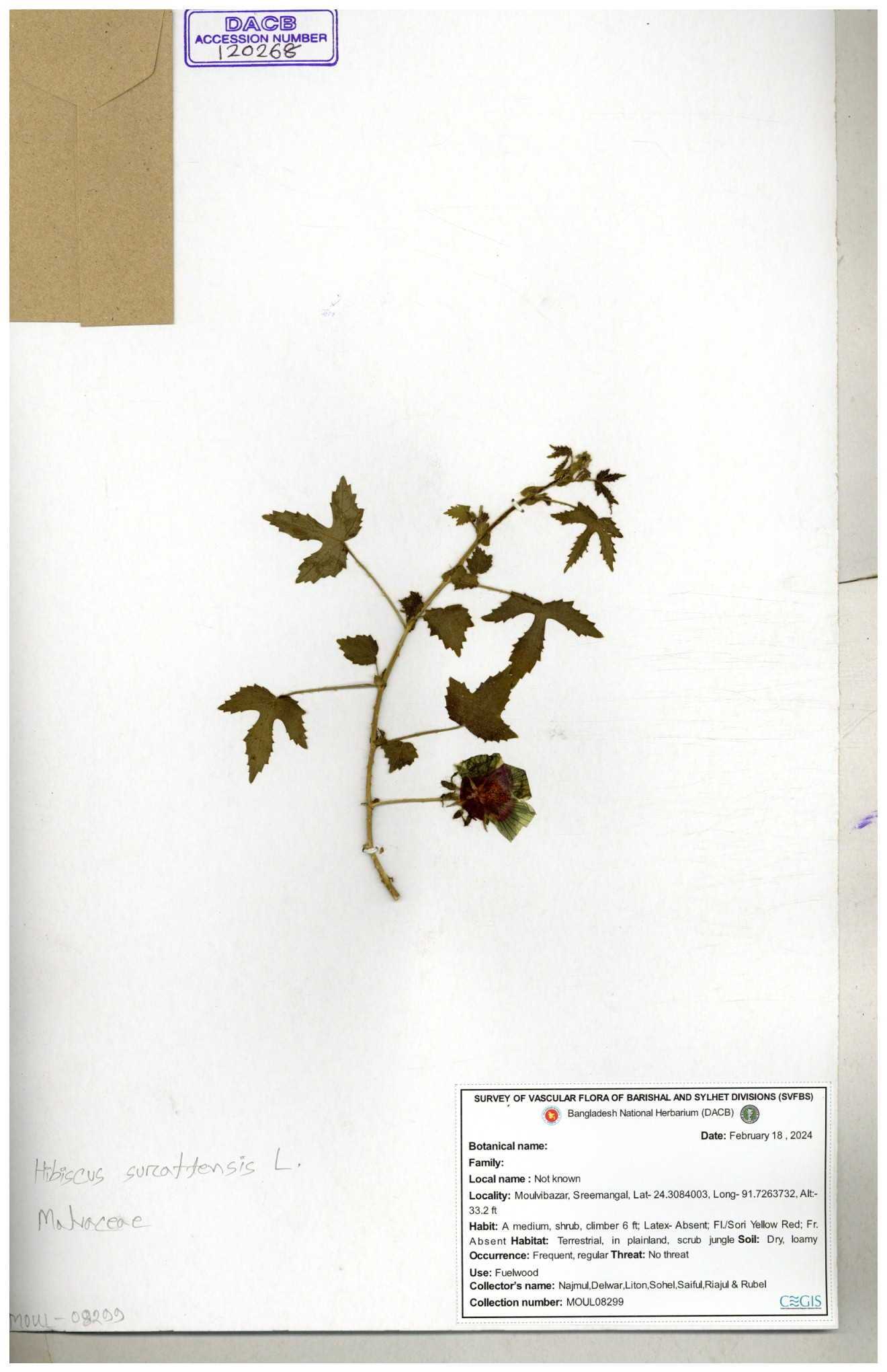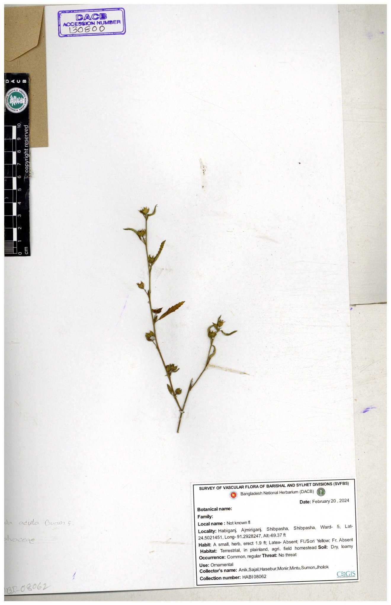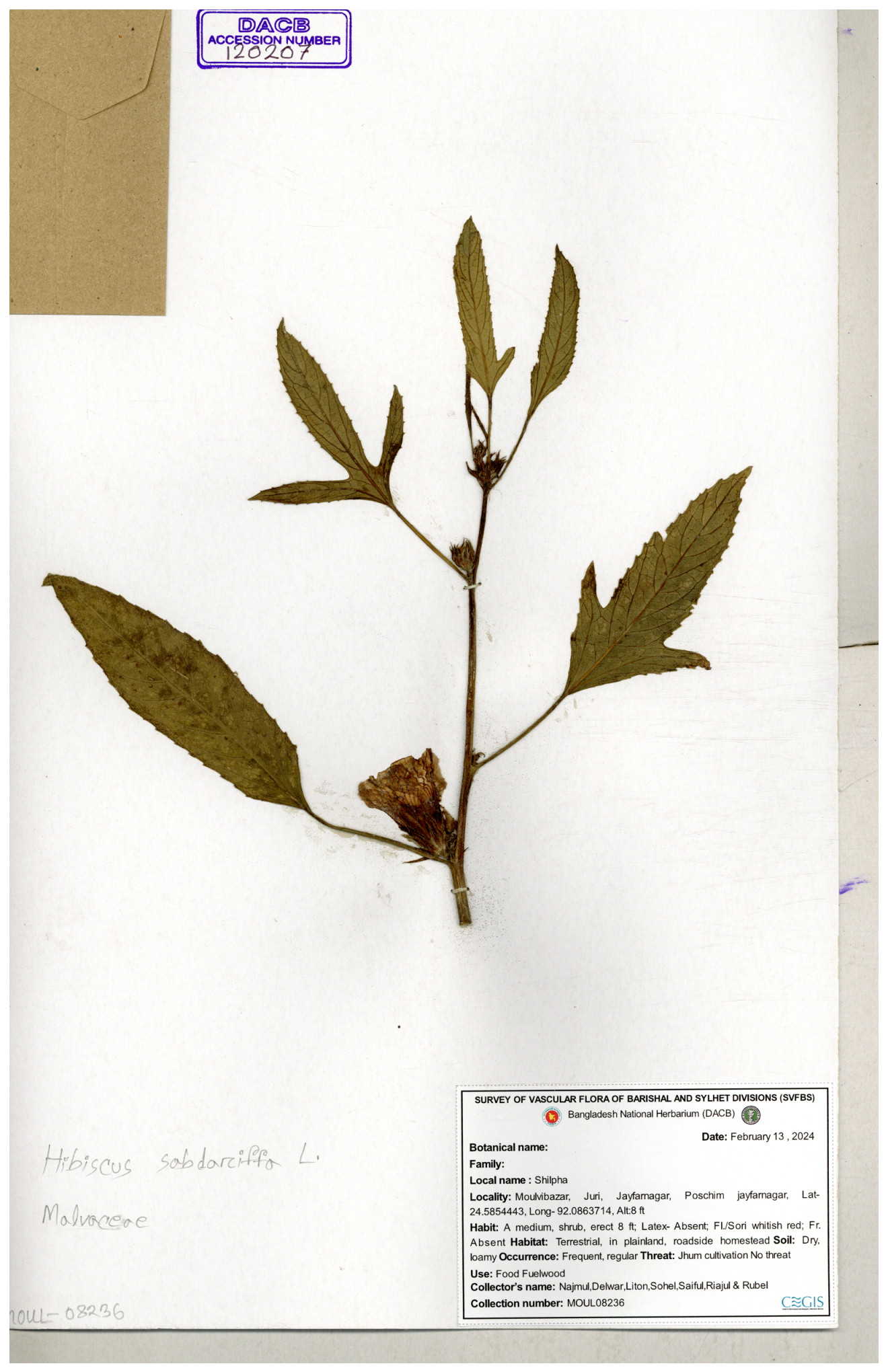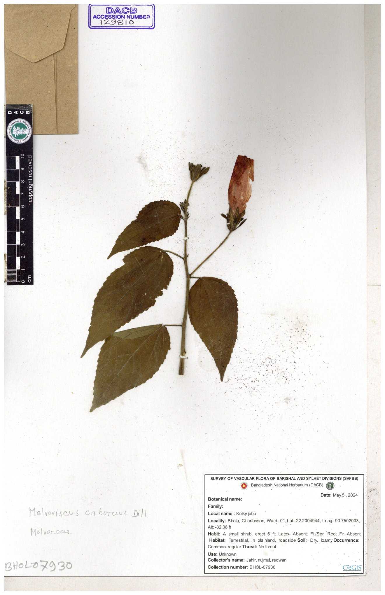 | 65947 | Malvaceae | Urena Urera L. | Khandakar Kamrul Islam | KKI-3982 12-02-2020 |