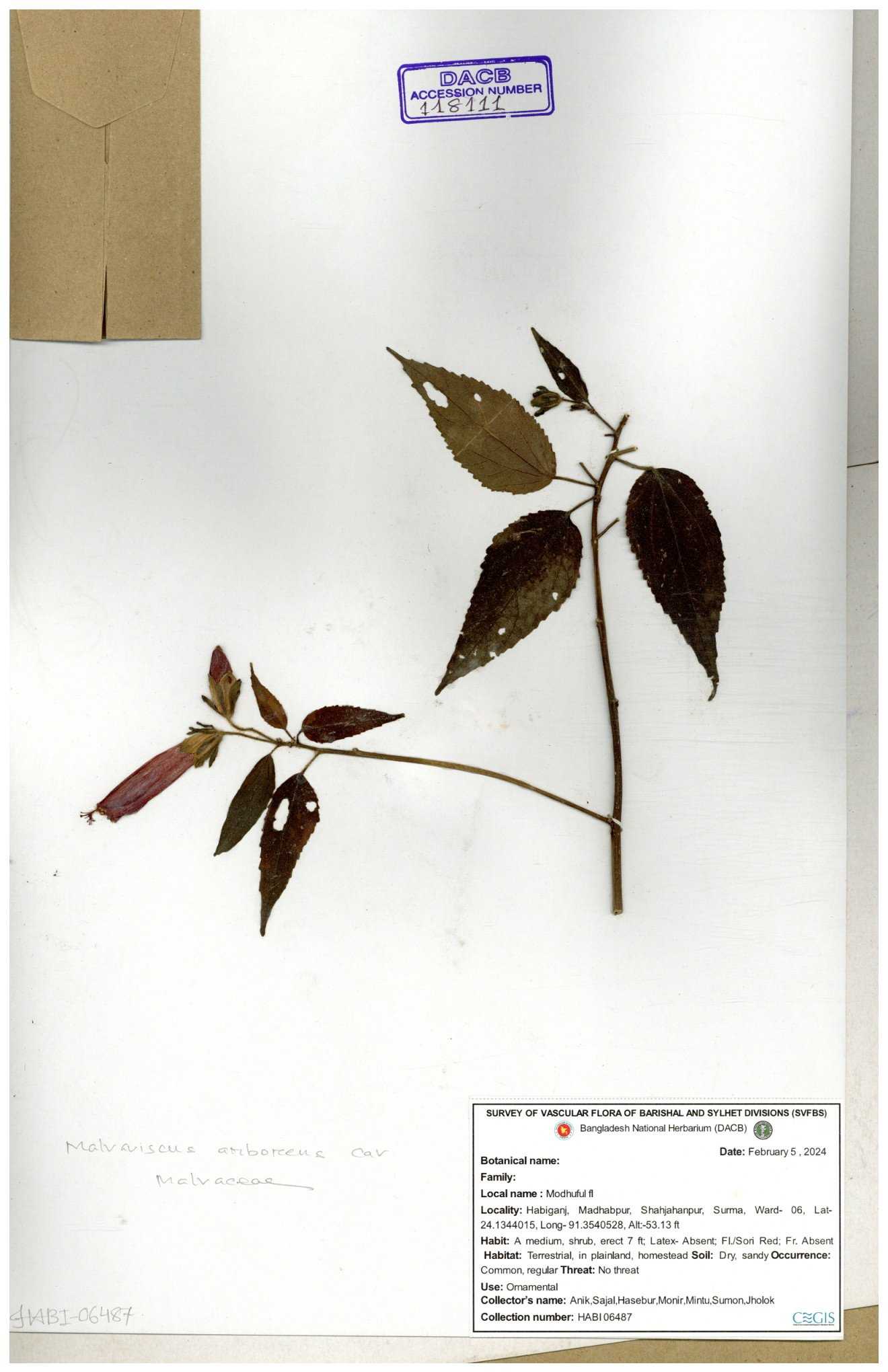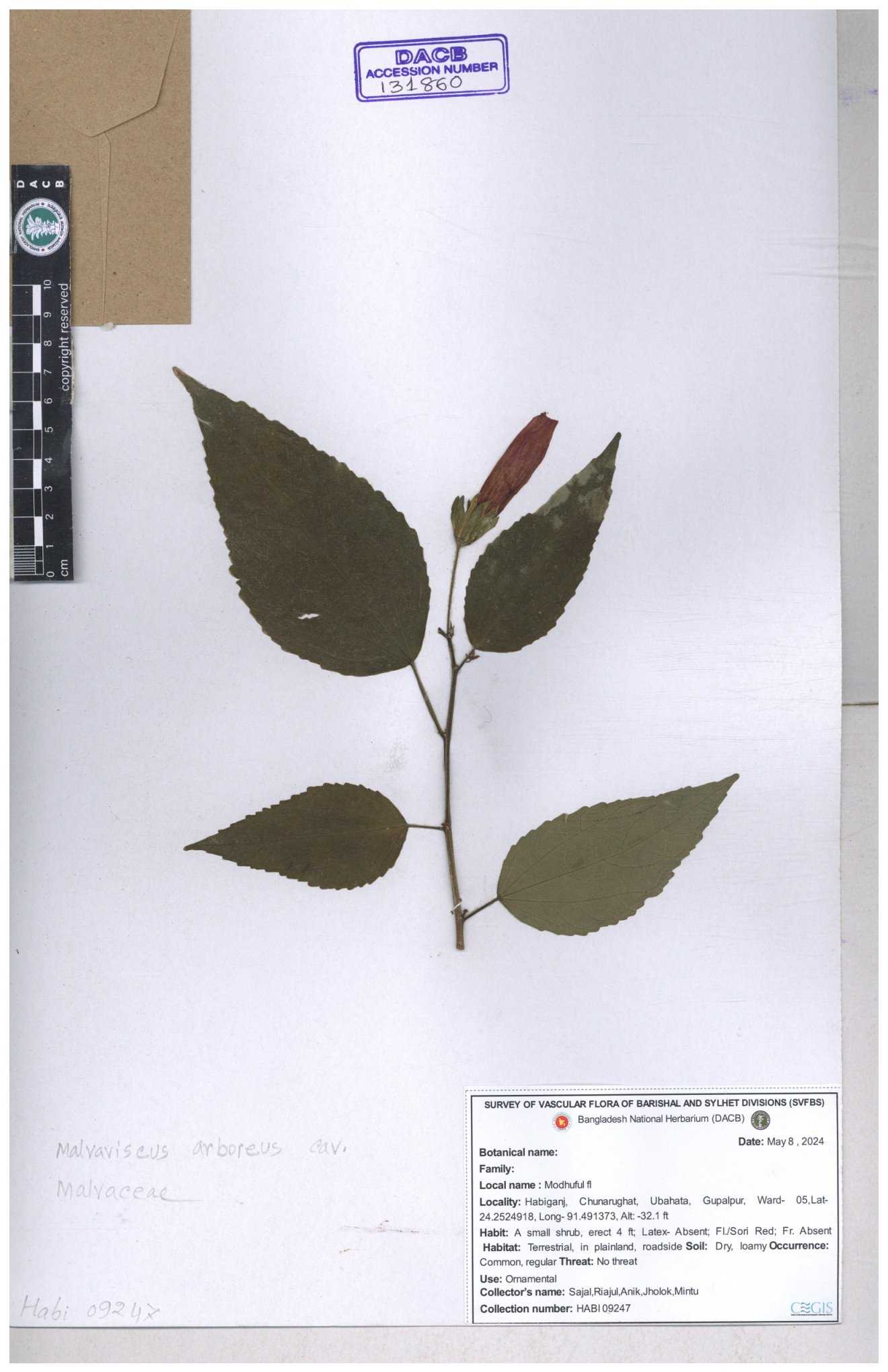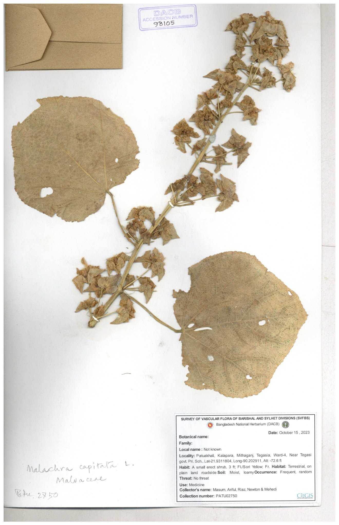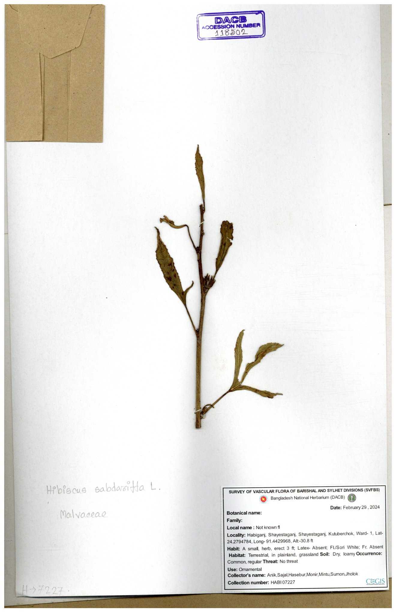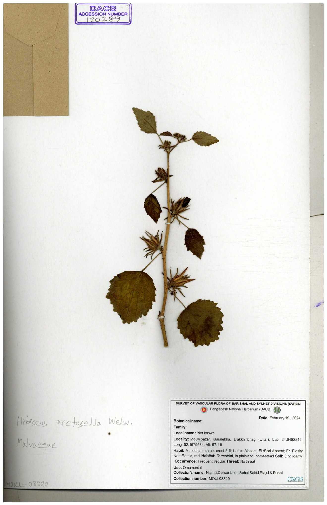 | 65947 | Malvaceae | Urena Urera L. | Khandakar Kamrul Islam | KKI-3982 12-02-2020 |