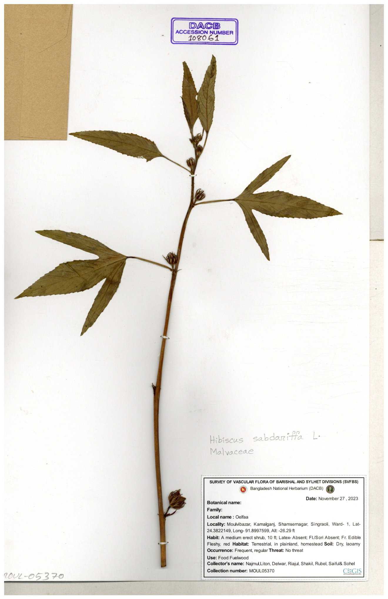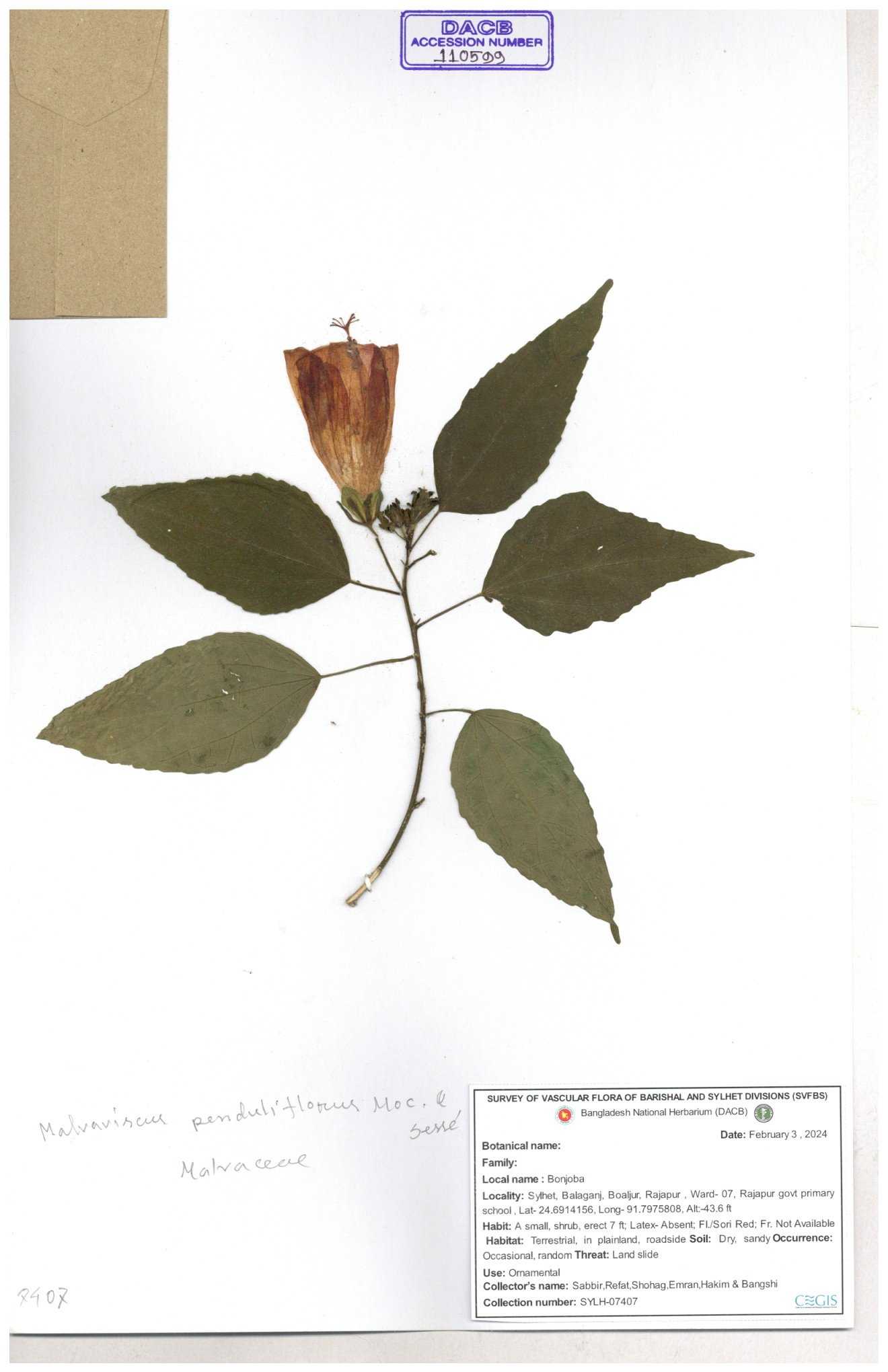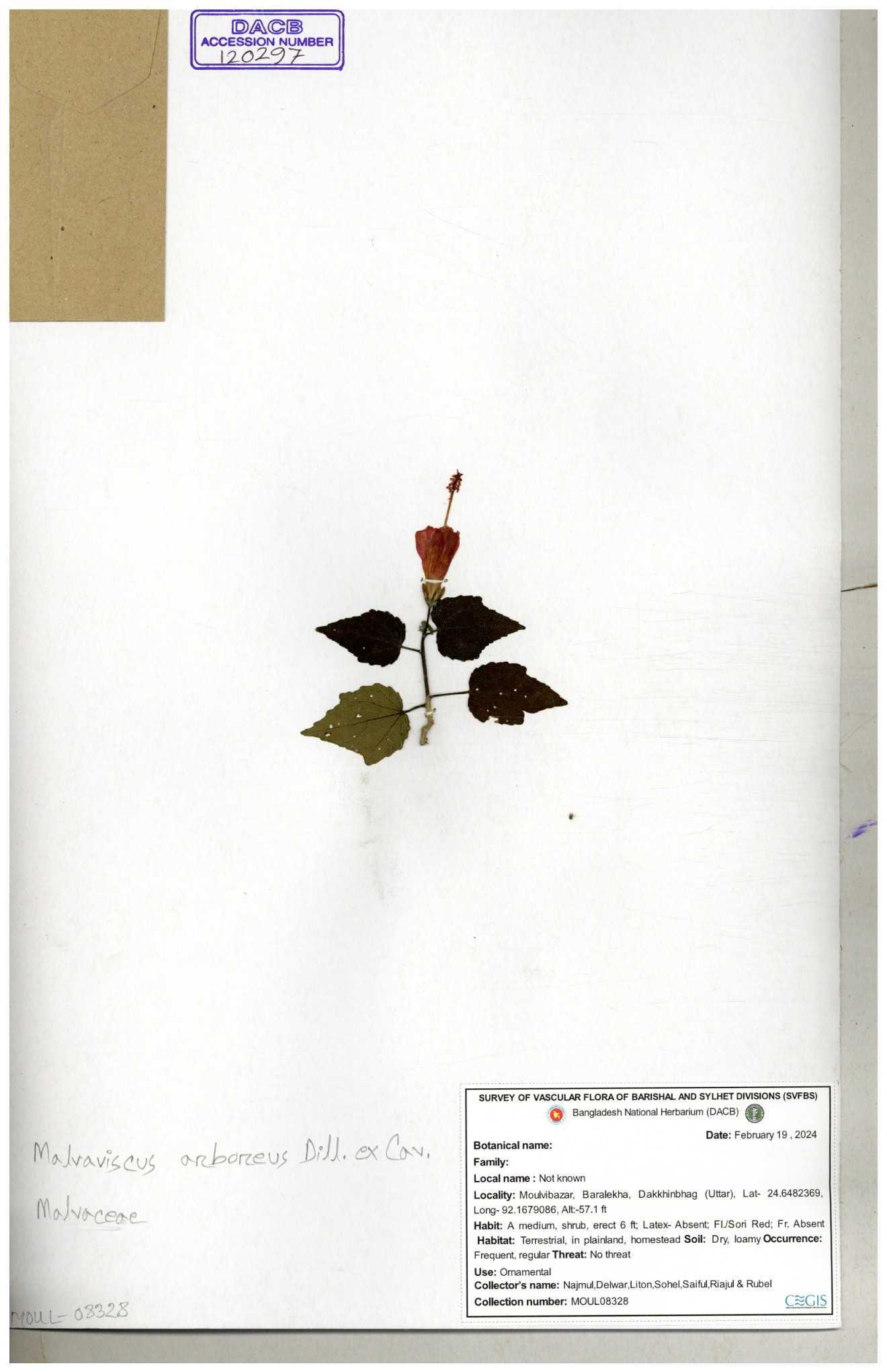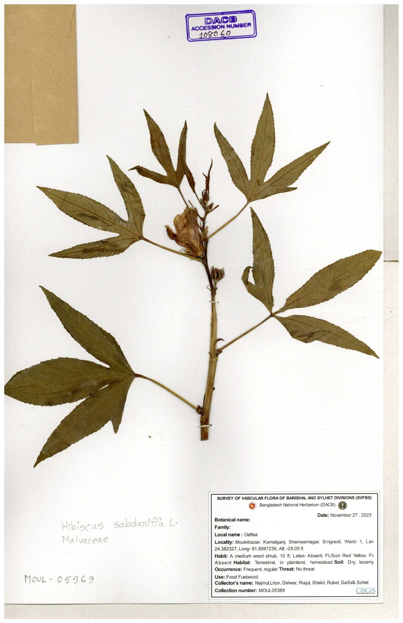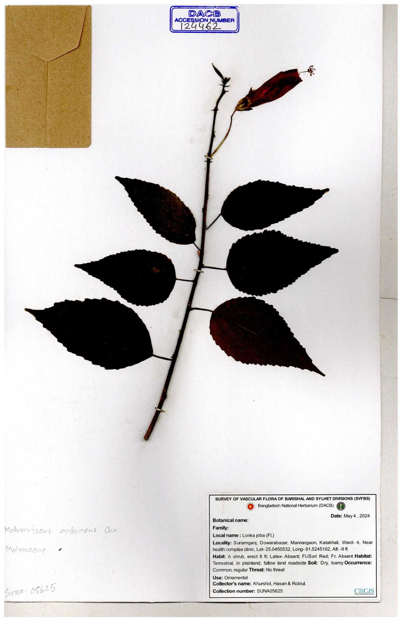 | 65947 | Malvaceae | Urena Urera L. | Khandakar Kamrul Islam | KKI-3982 12-02-2020 |