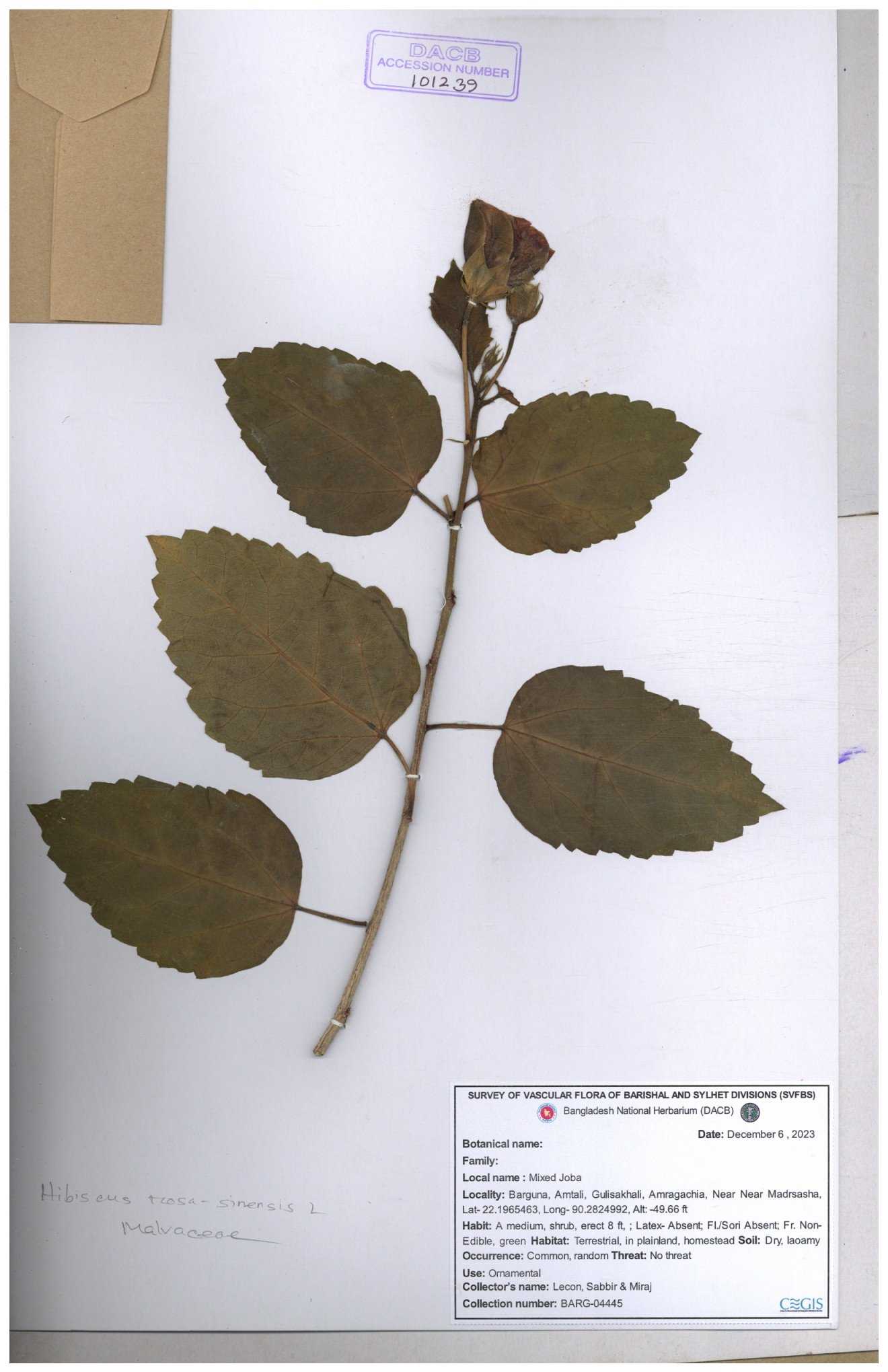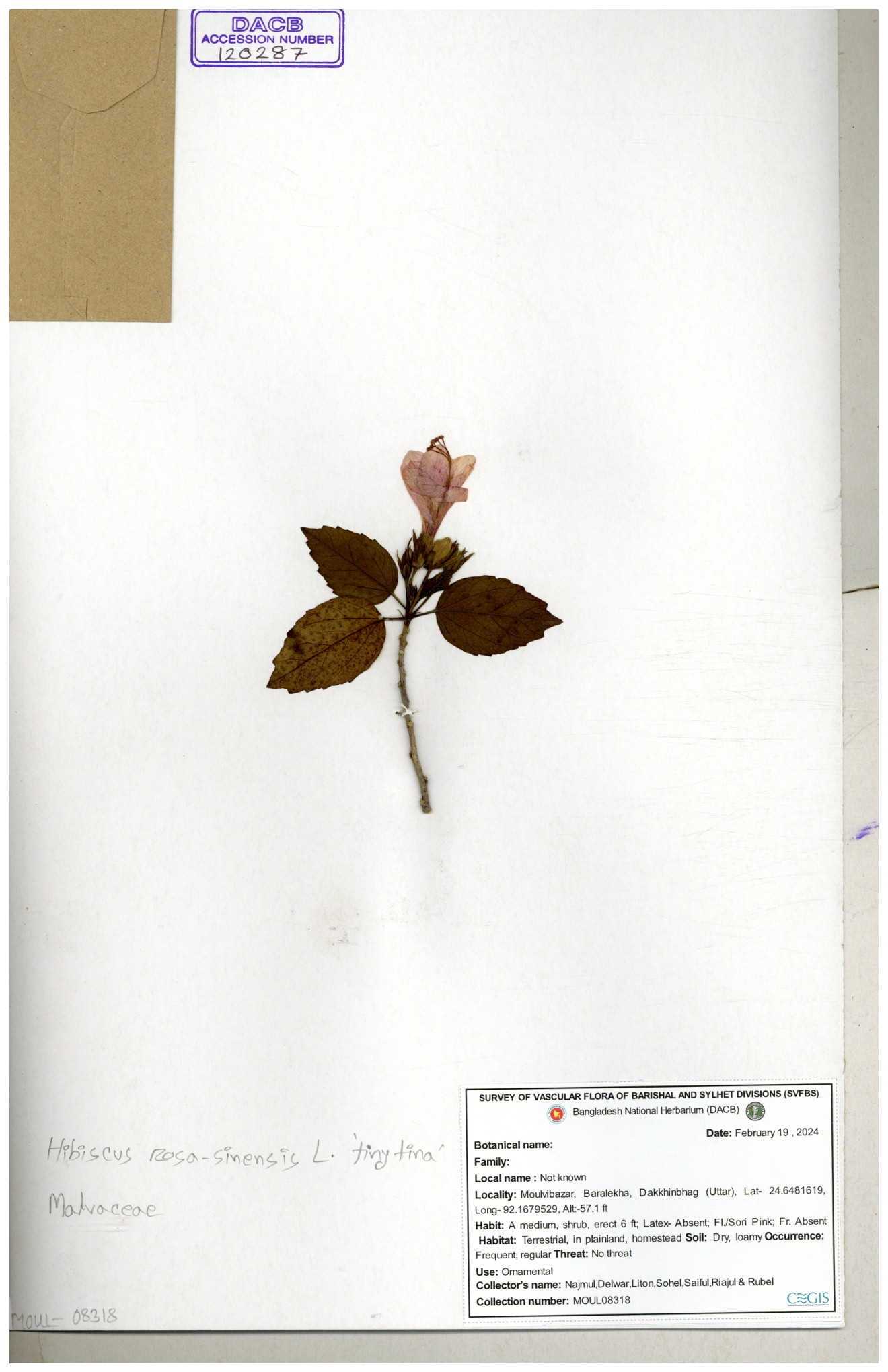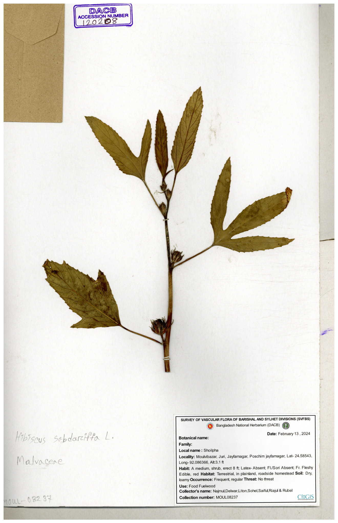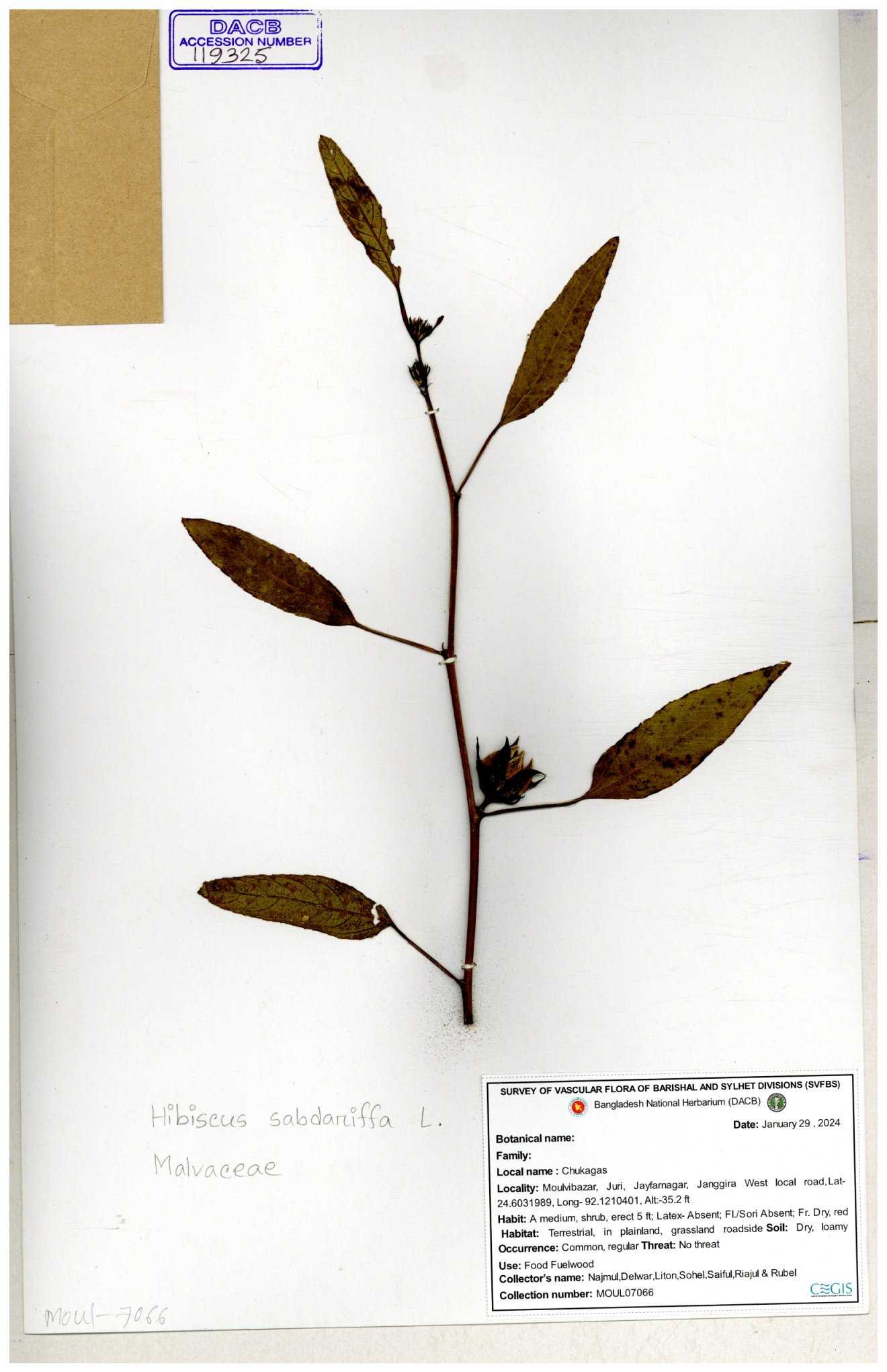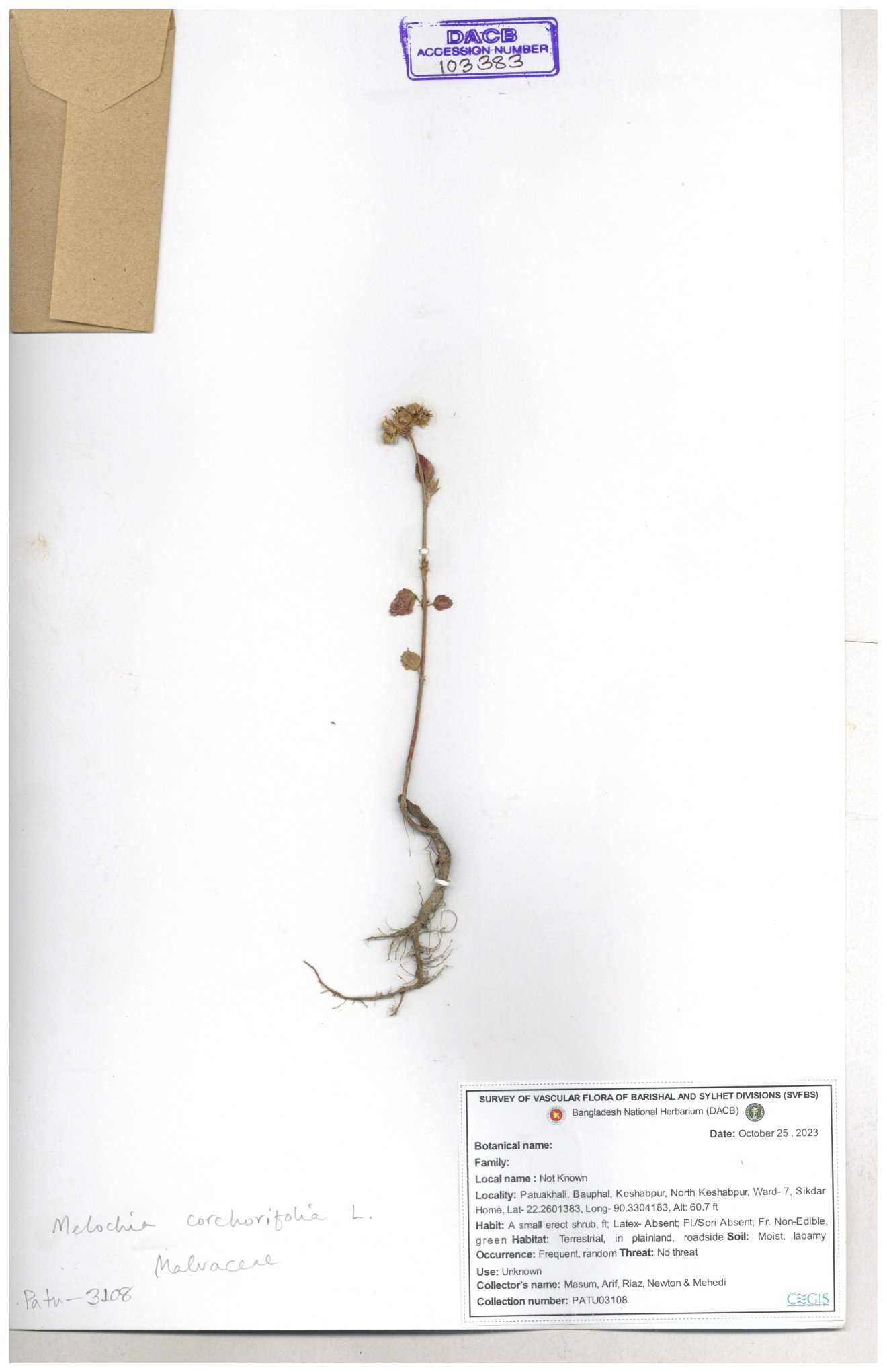 | 65947 | Malvaceae | Urena Urera L. | Khandakar Kamrul Islam | KKI-3982 12-02-2020 |