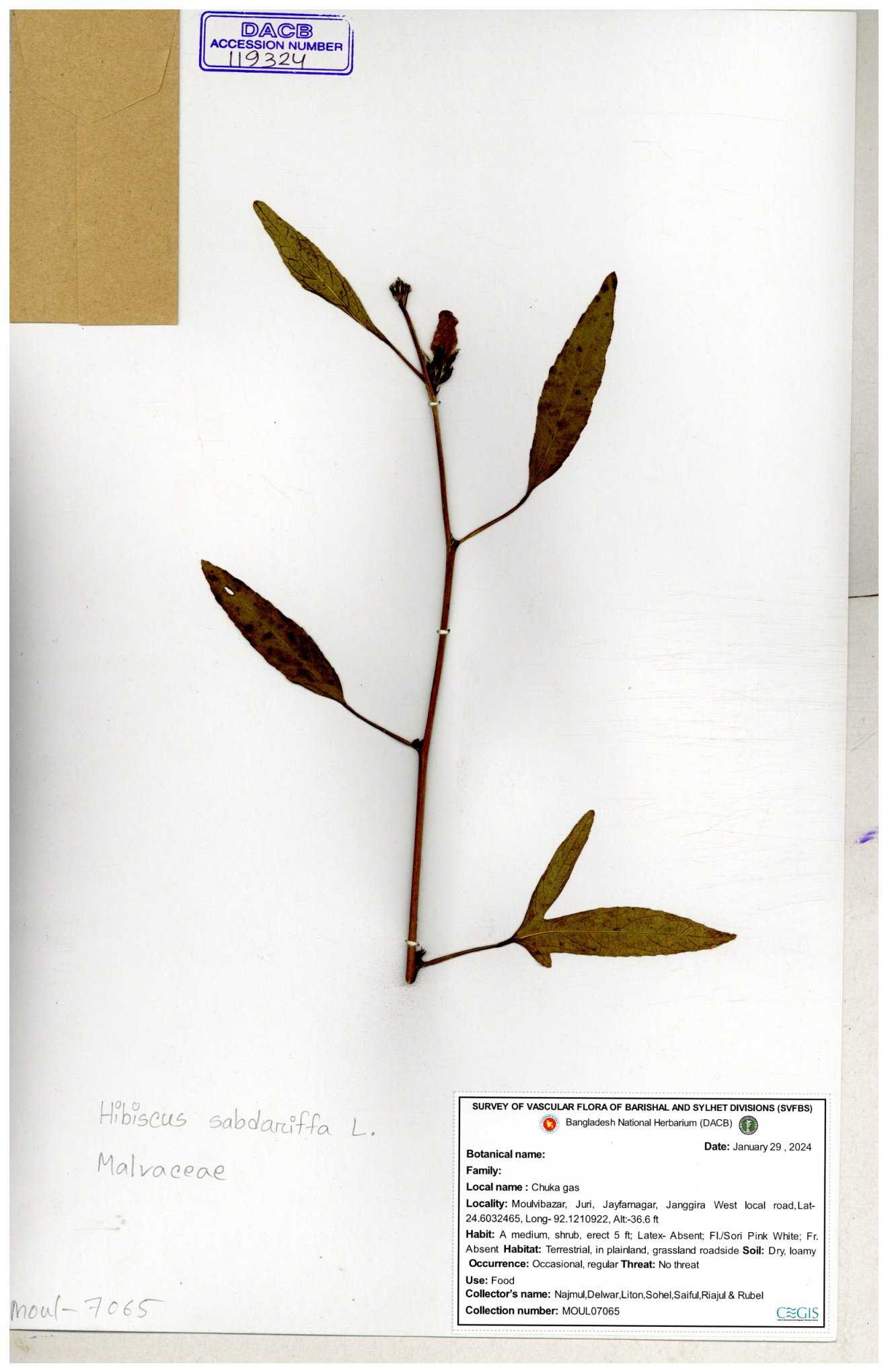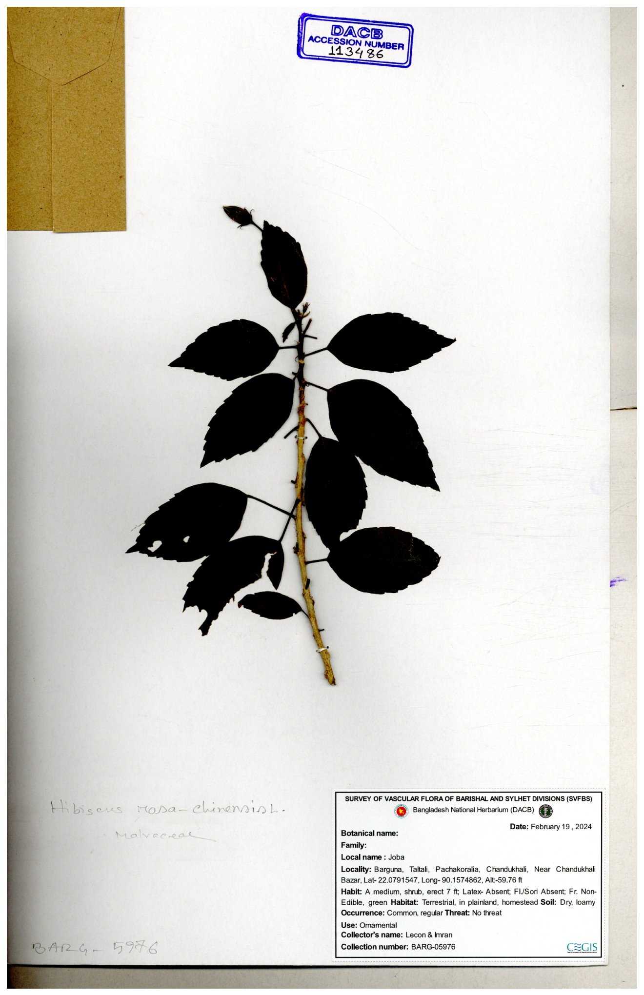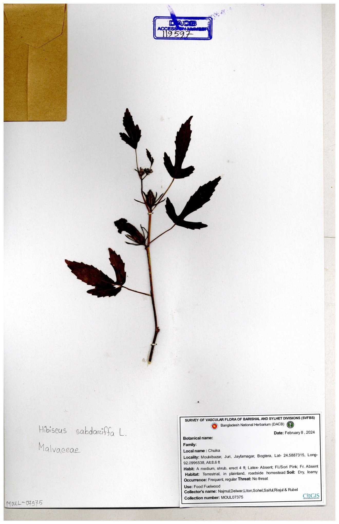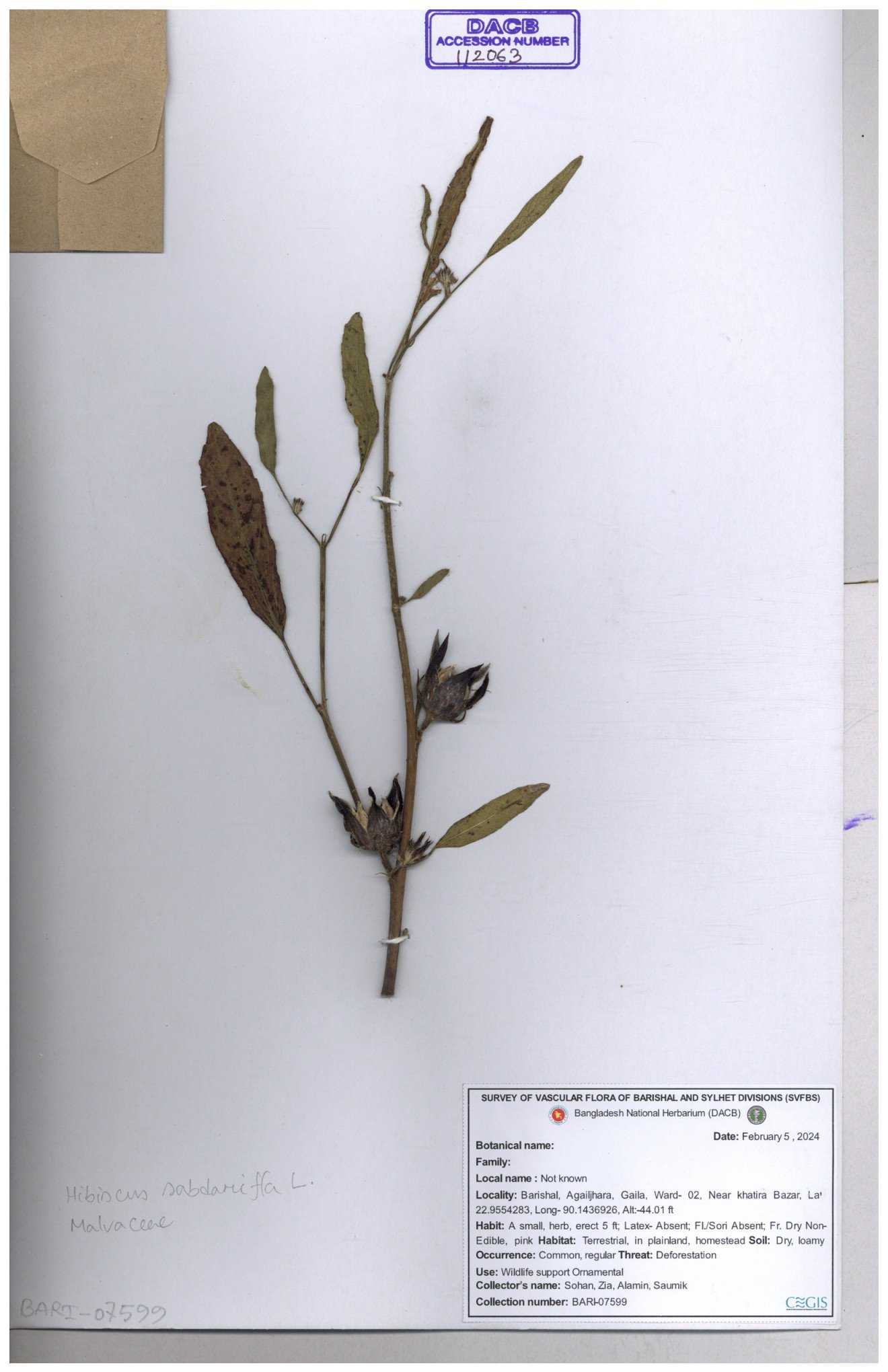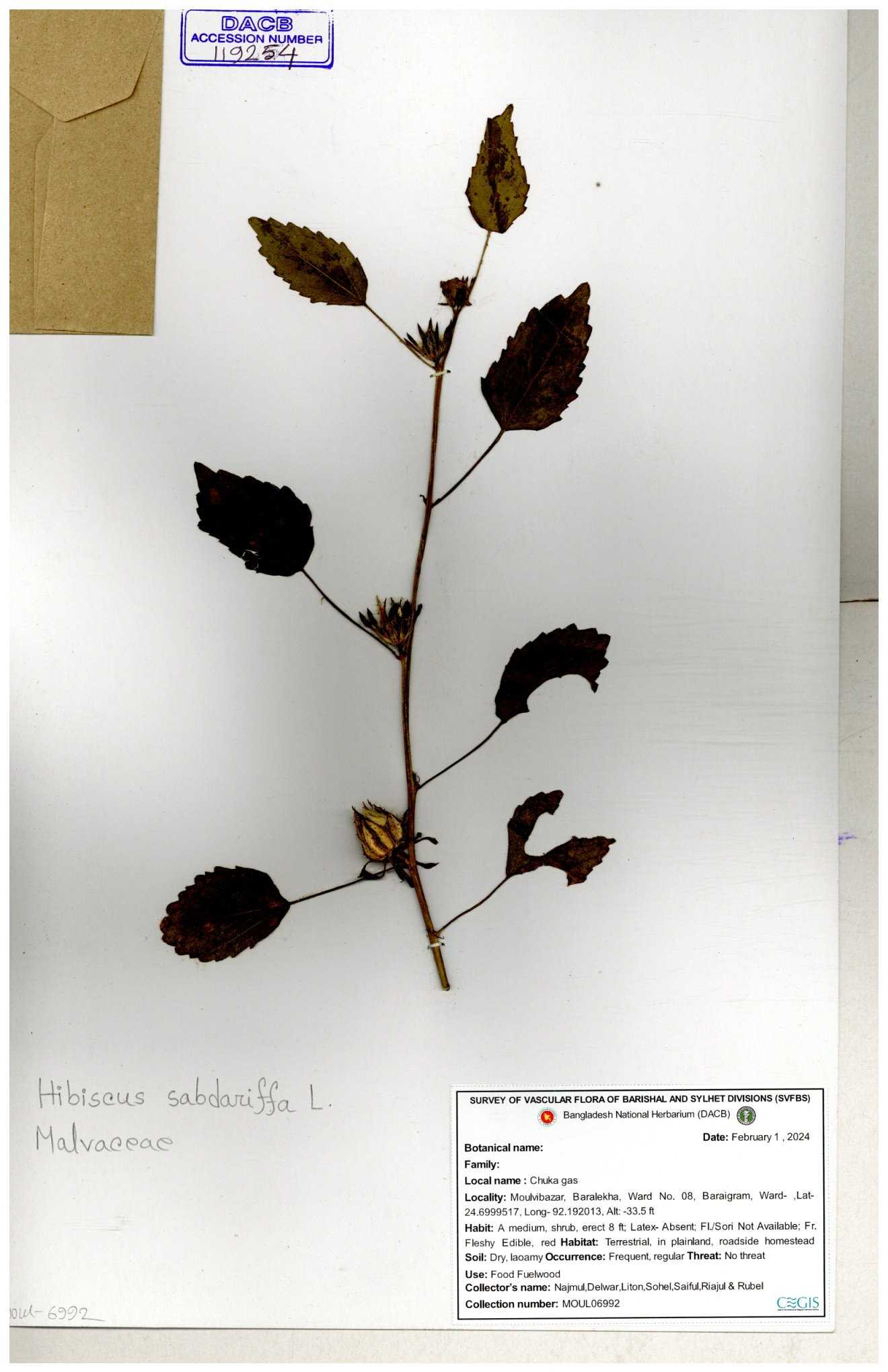 | 65947 | Malvaceae | Urena Urera L. | Khandakar Kamrul Islam | KKI-3982 12-02-2020 |