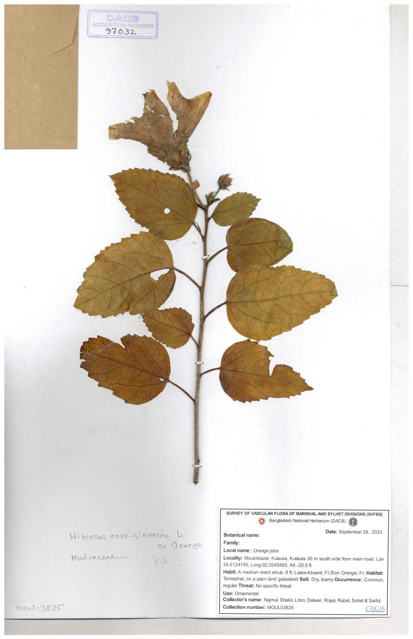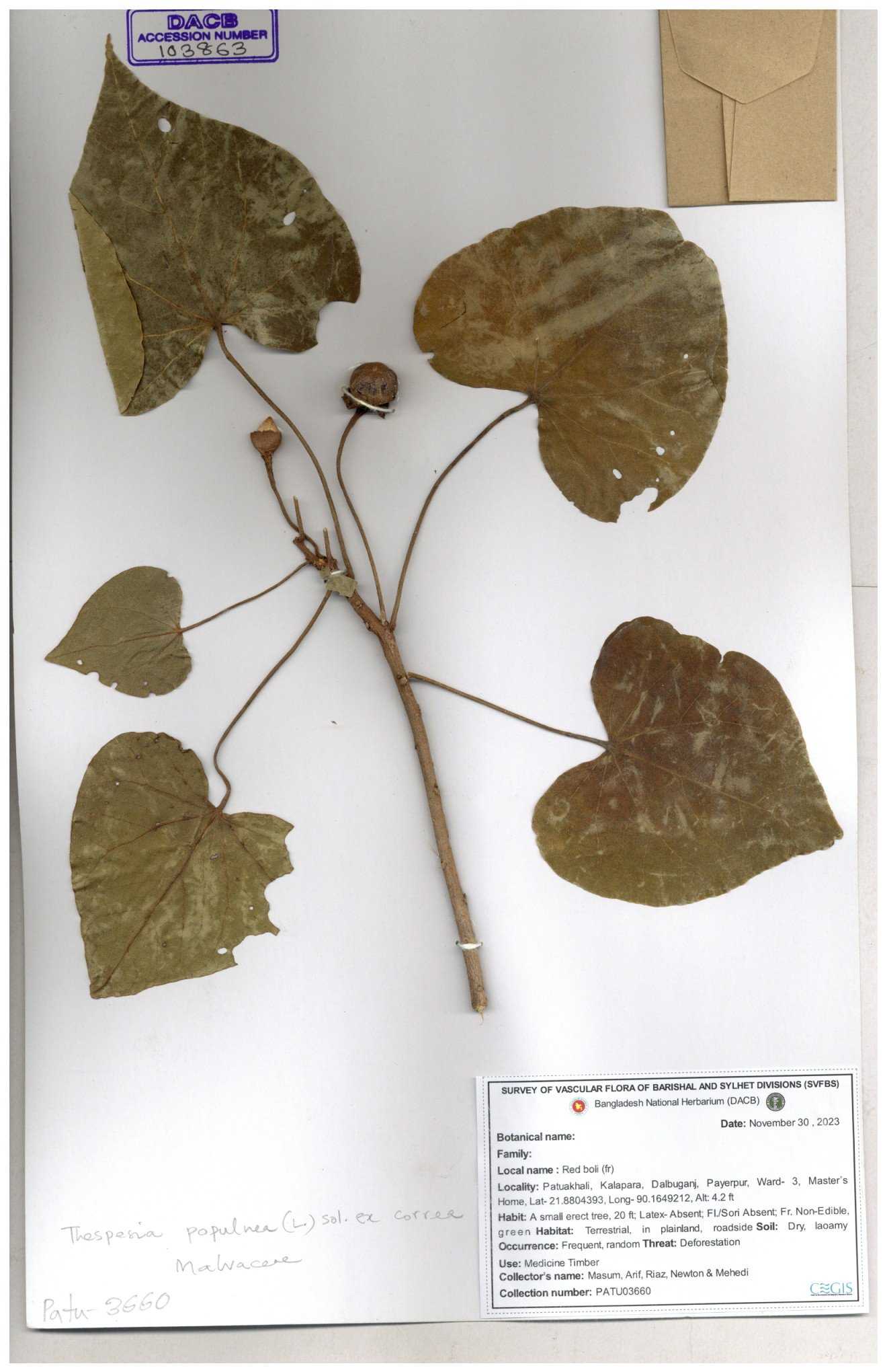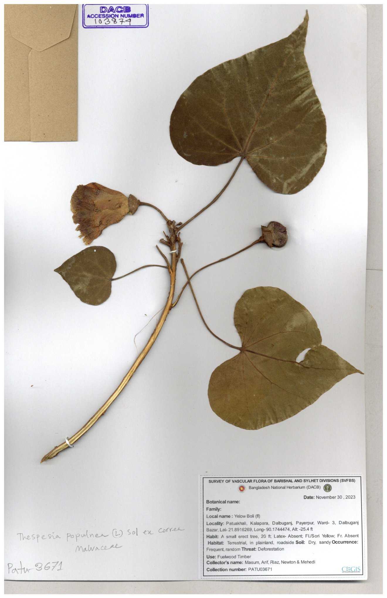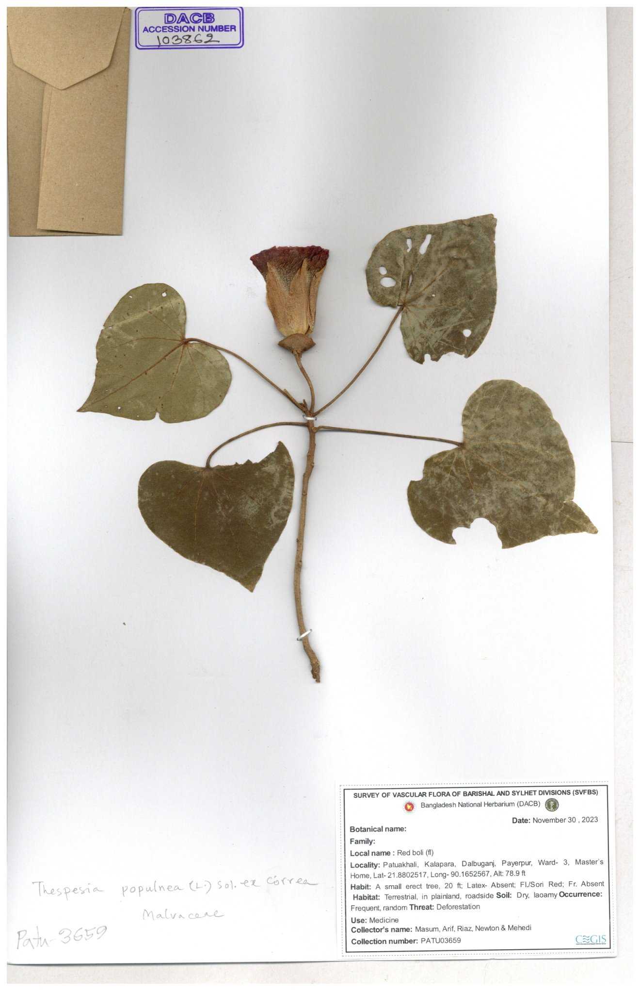 | 66824 | Malvaceae | Hibiscus tilliaceus L. | Dr. M Sultana | DMS-3672 25-03-2021 |