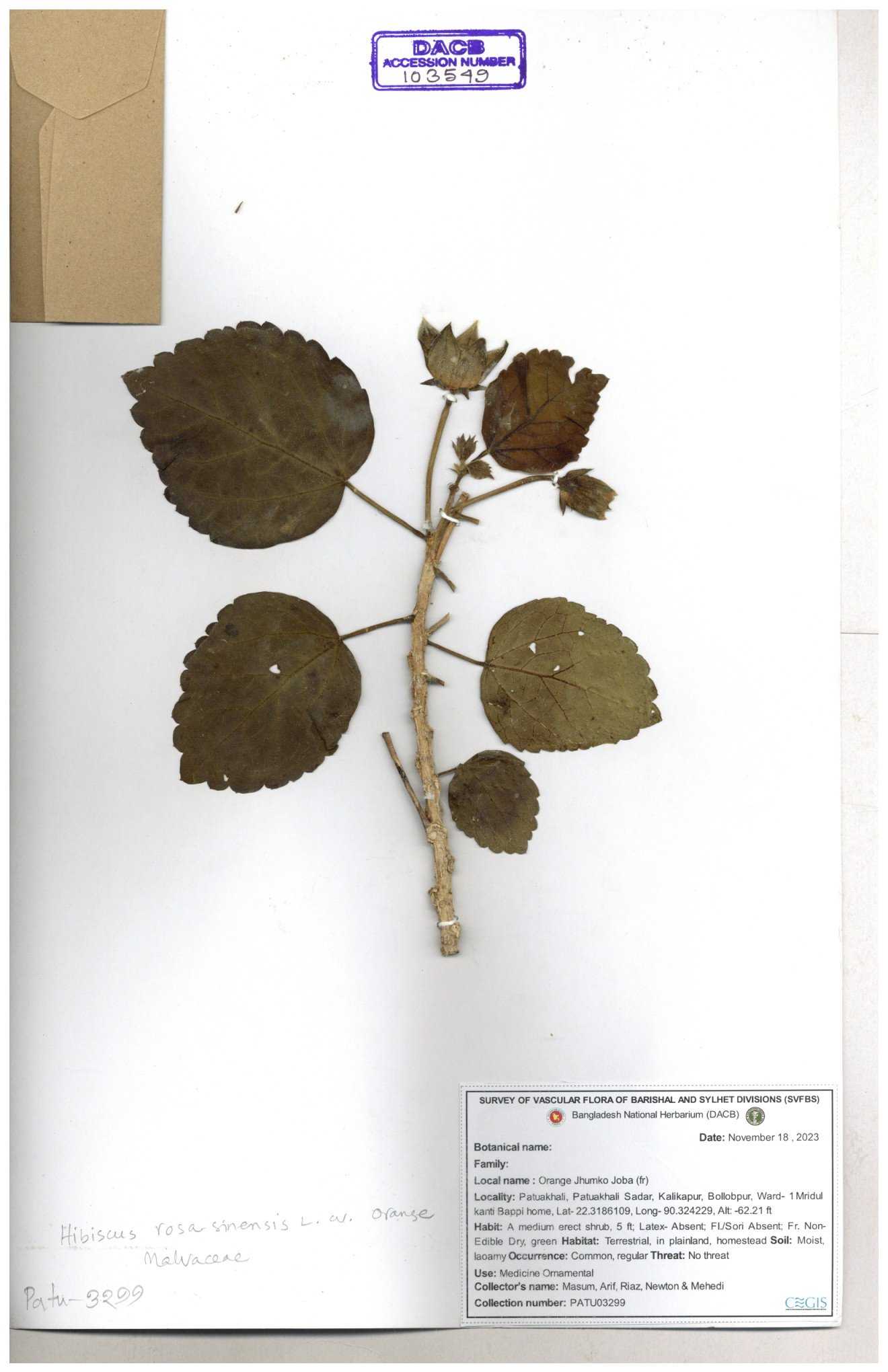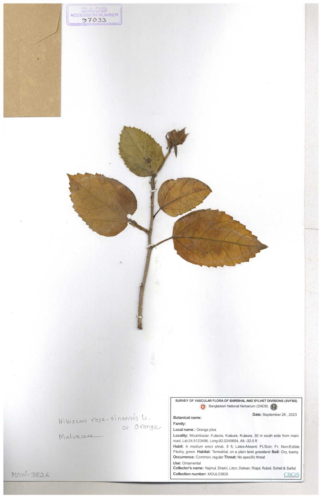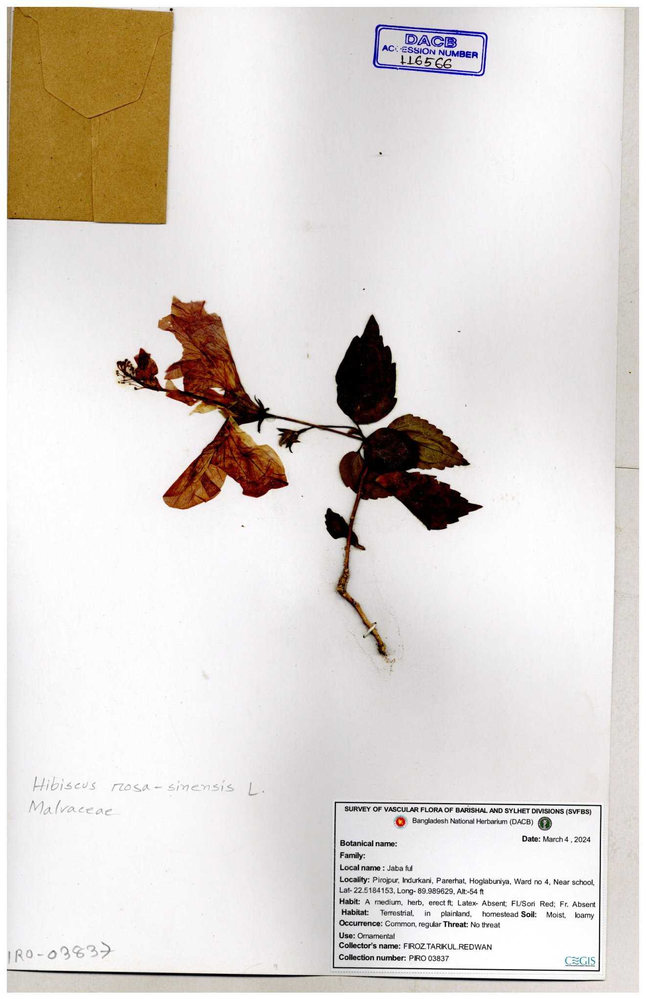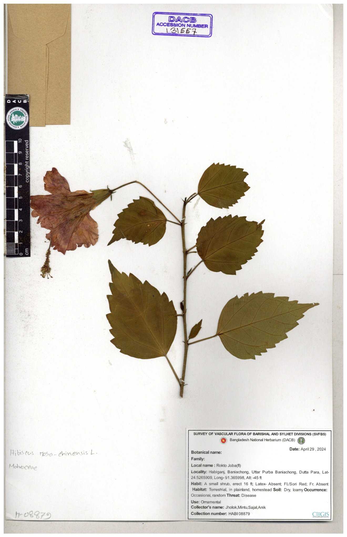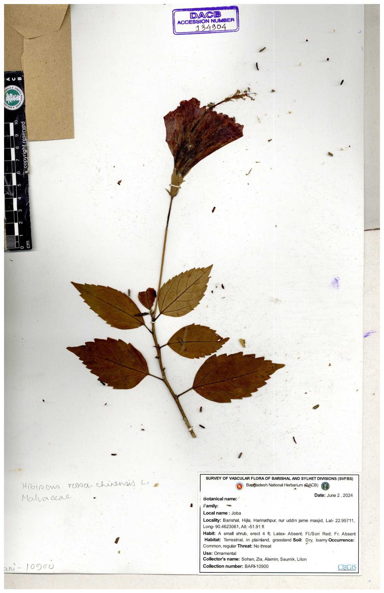 | 66824 | Malvaceae | Hibiscus tilliaceus L. | Dr. M Sultana | DMS-3672 25-03-2021 |