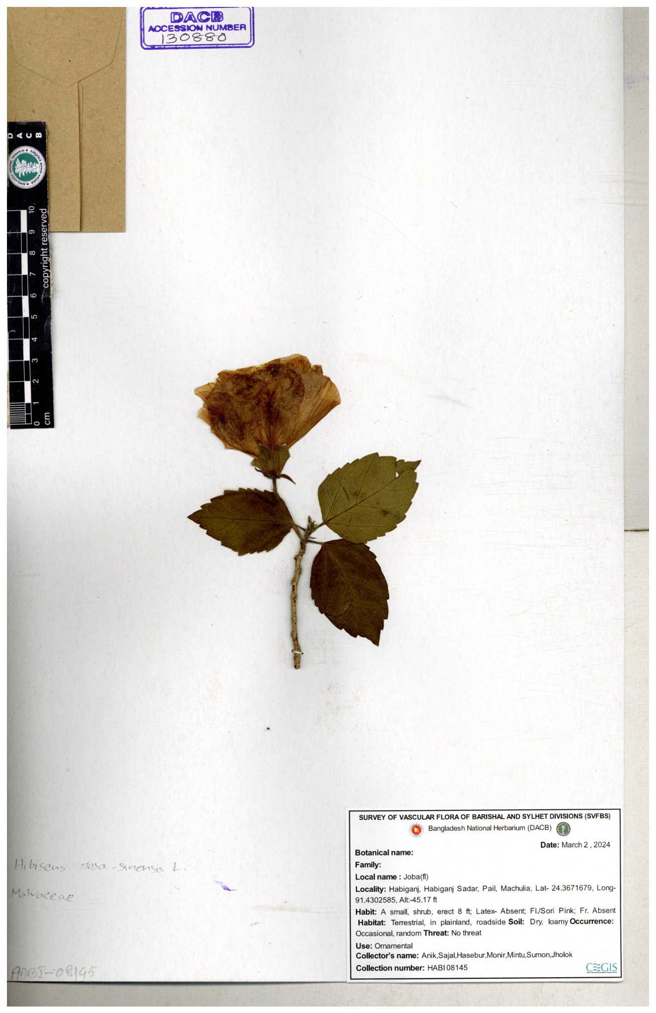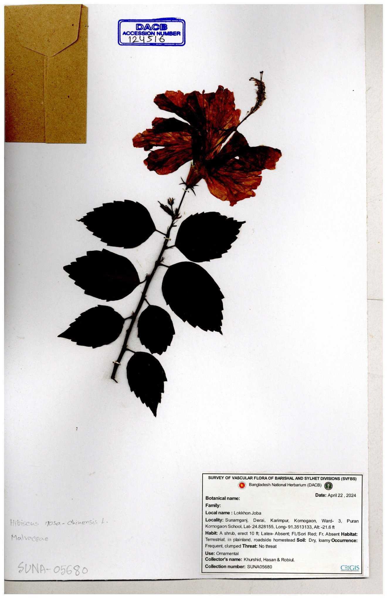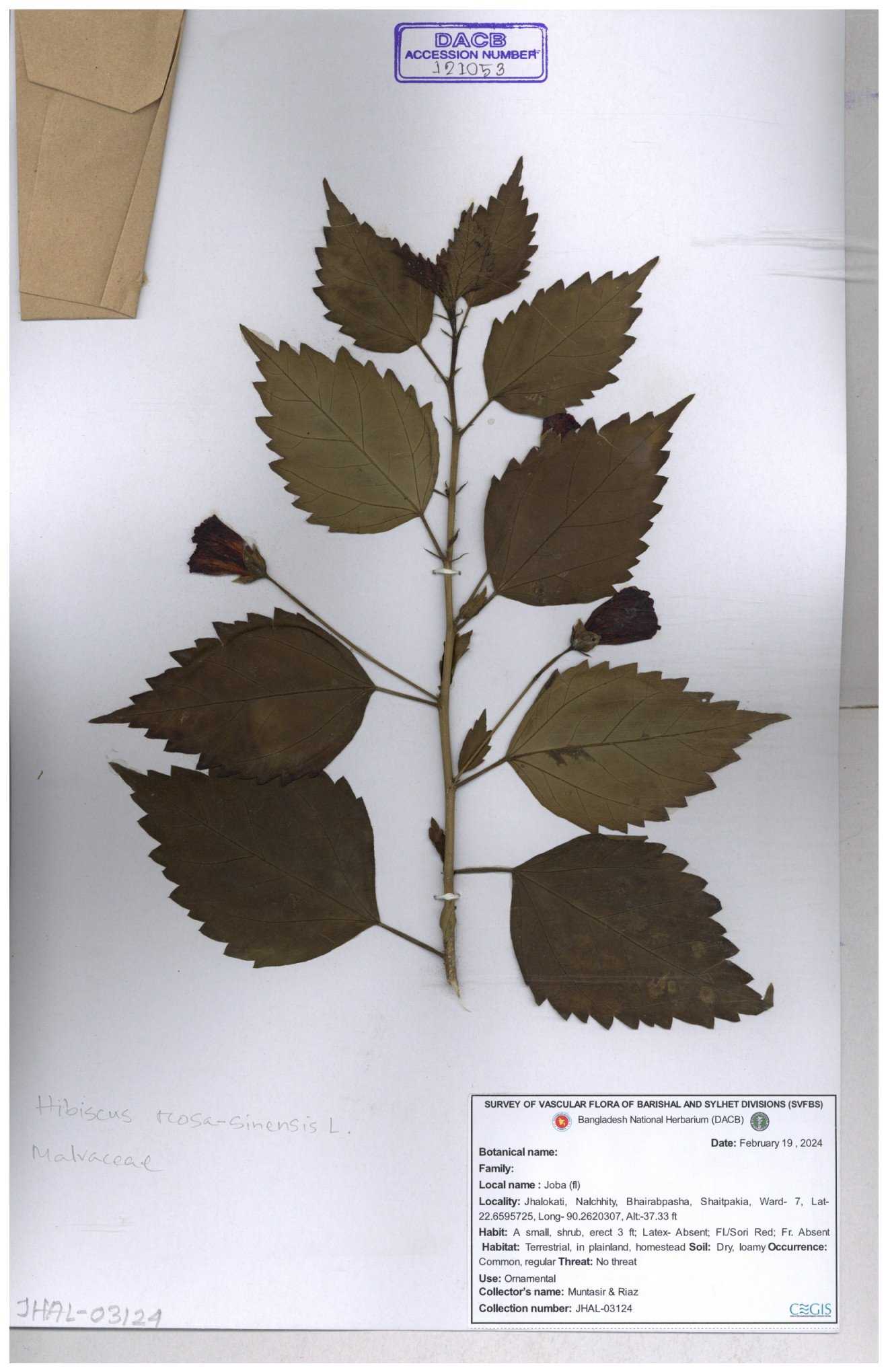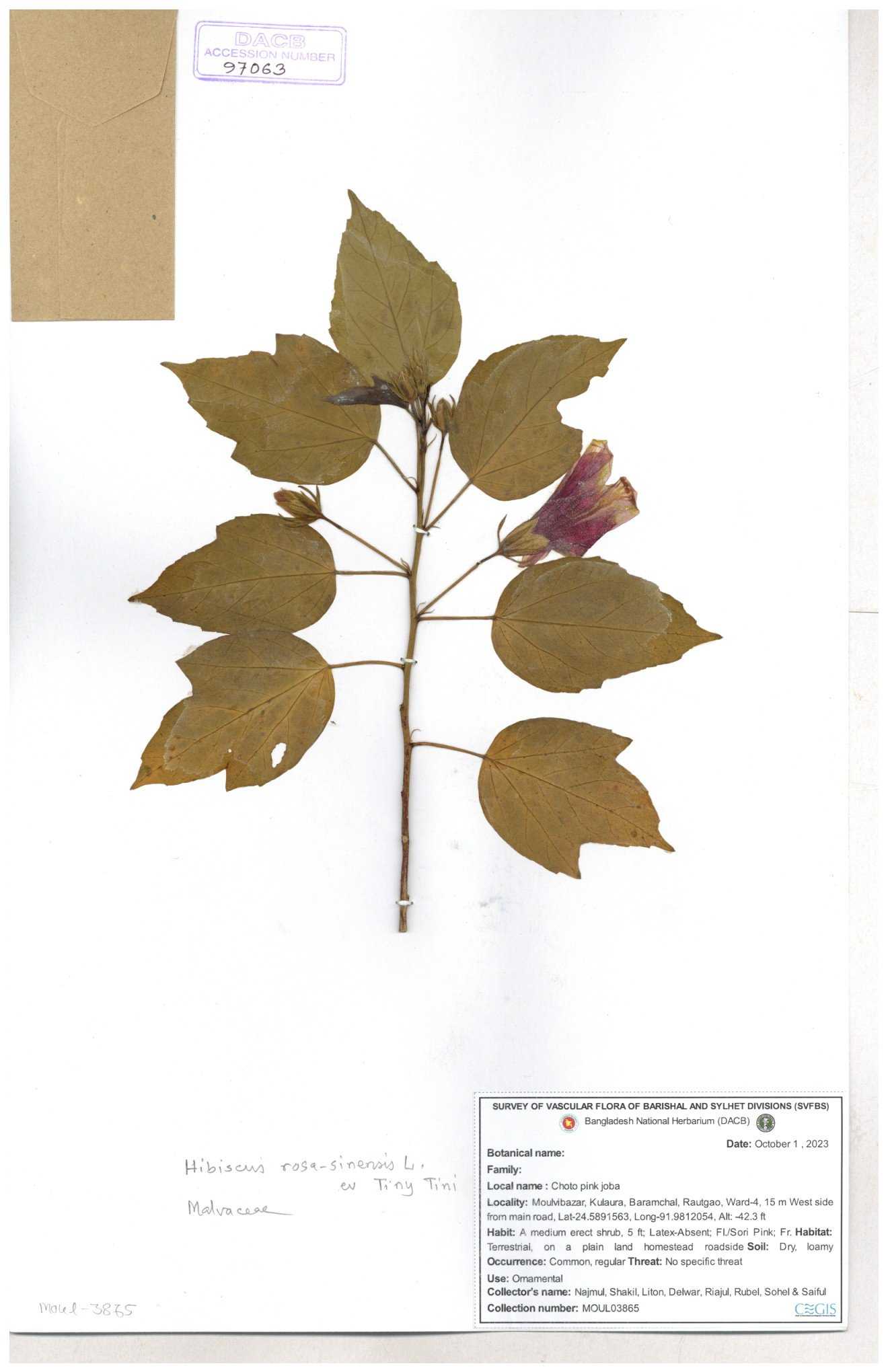 | 66824 | Malvaceae | Hibiscus tilliaceus L. | Dr. M Sultana | DMS-3672 25-03-2021 |