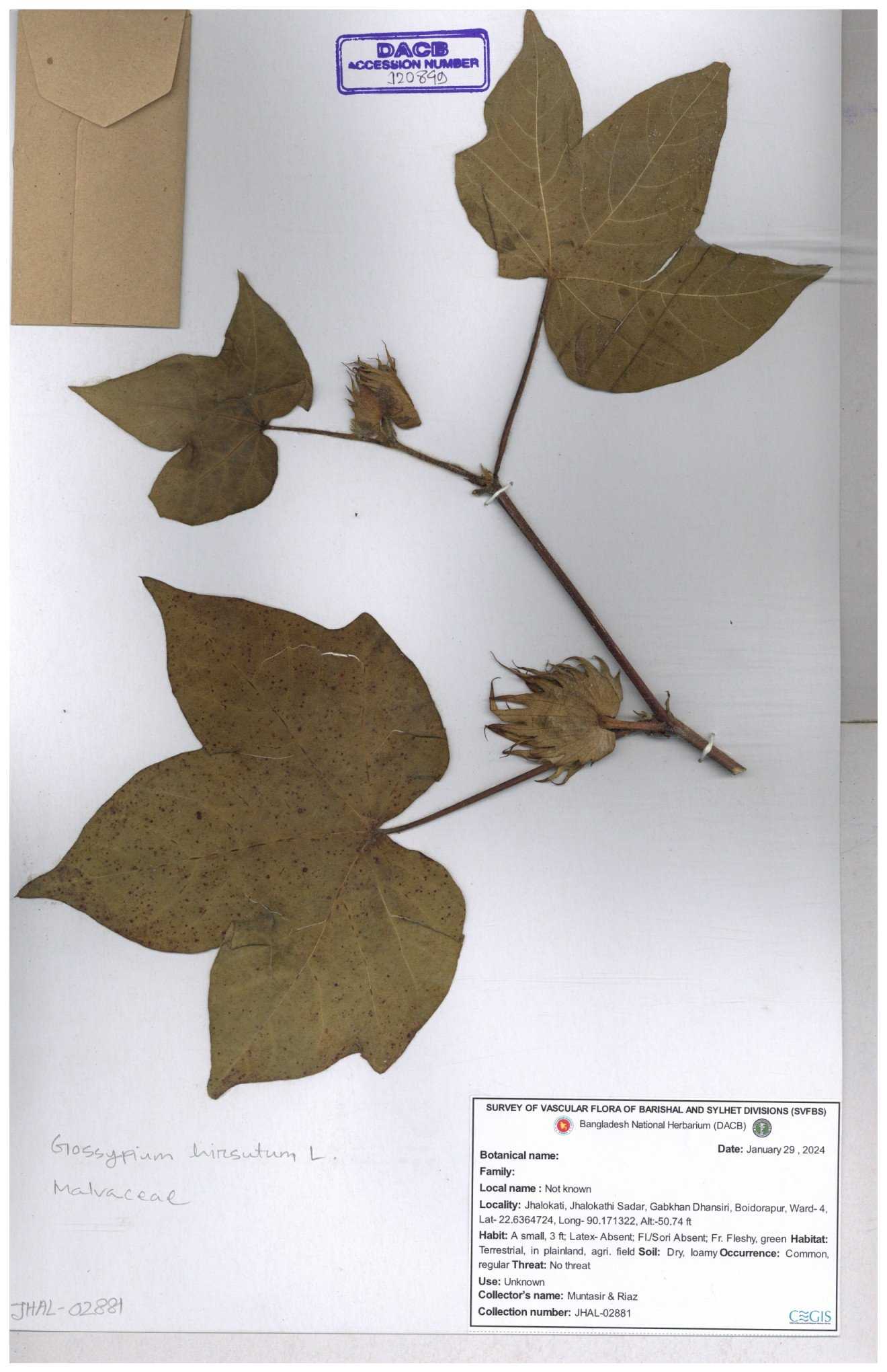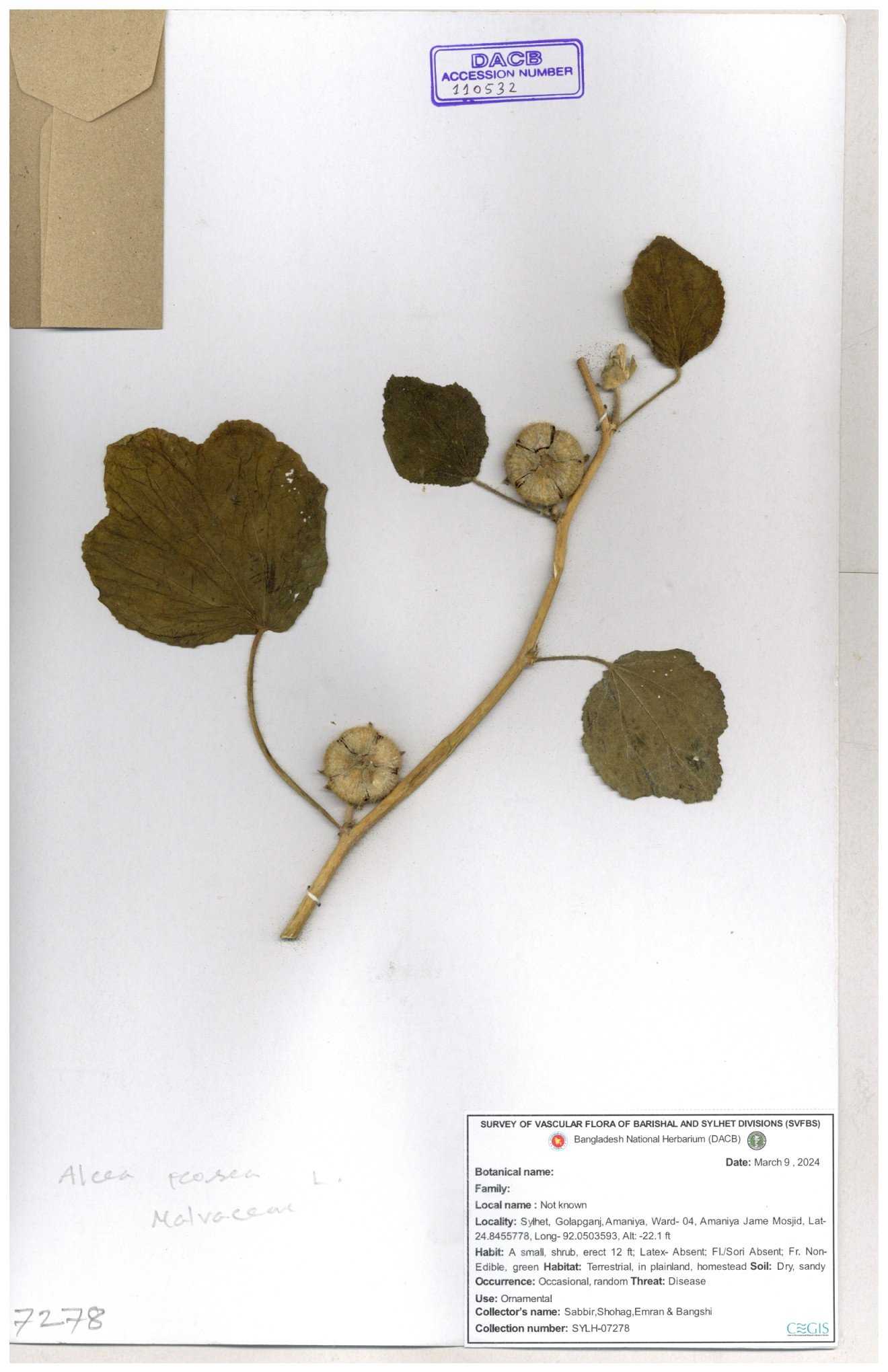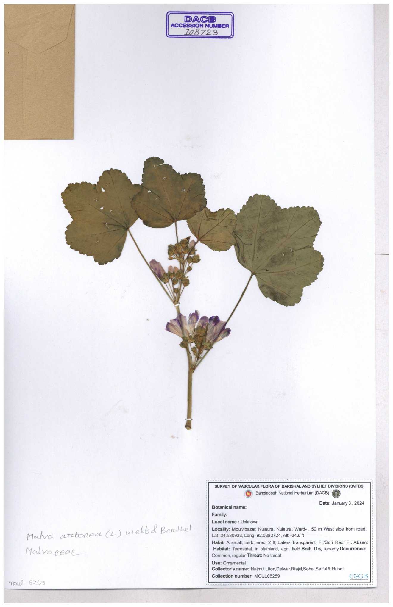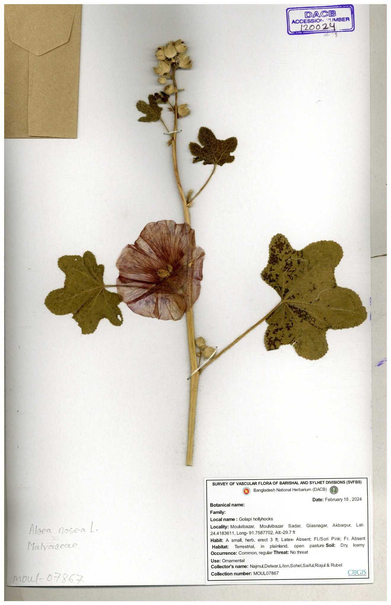 | 13846 | Malvaceae | Malva verticillata L. | M.S. Khan & A.M. Huq | K. 3714 17-01-1974 |