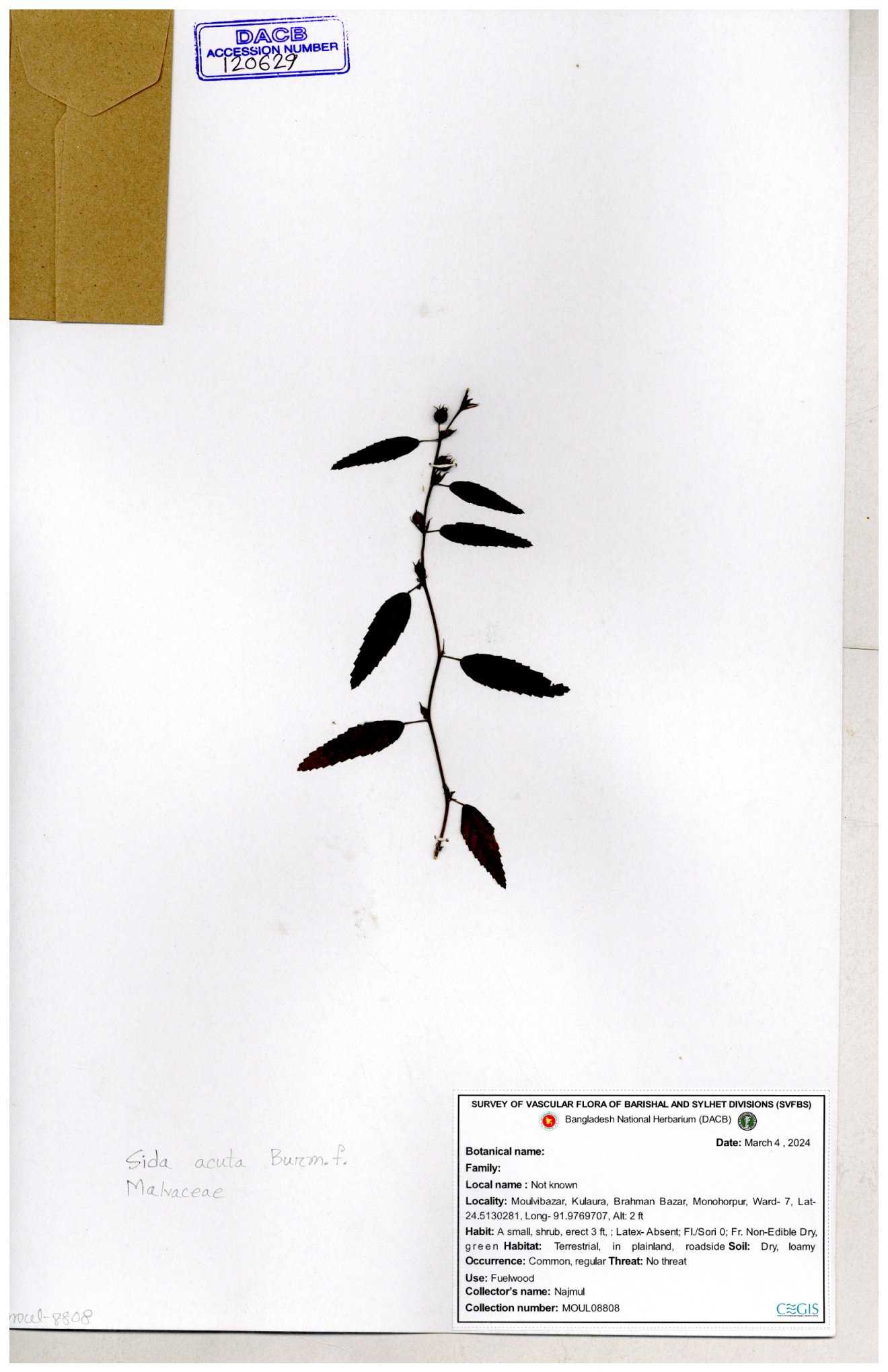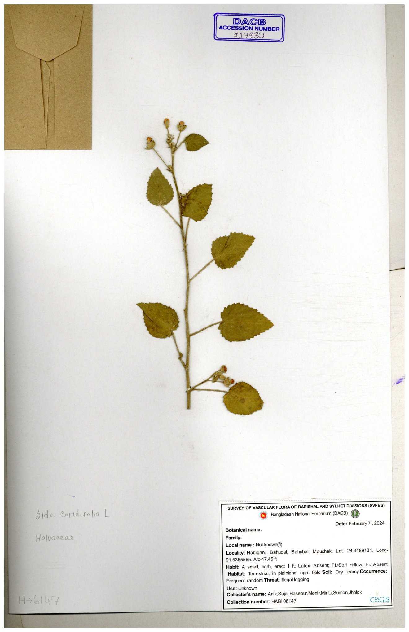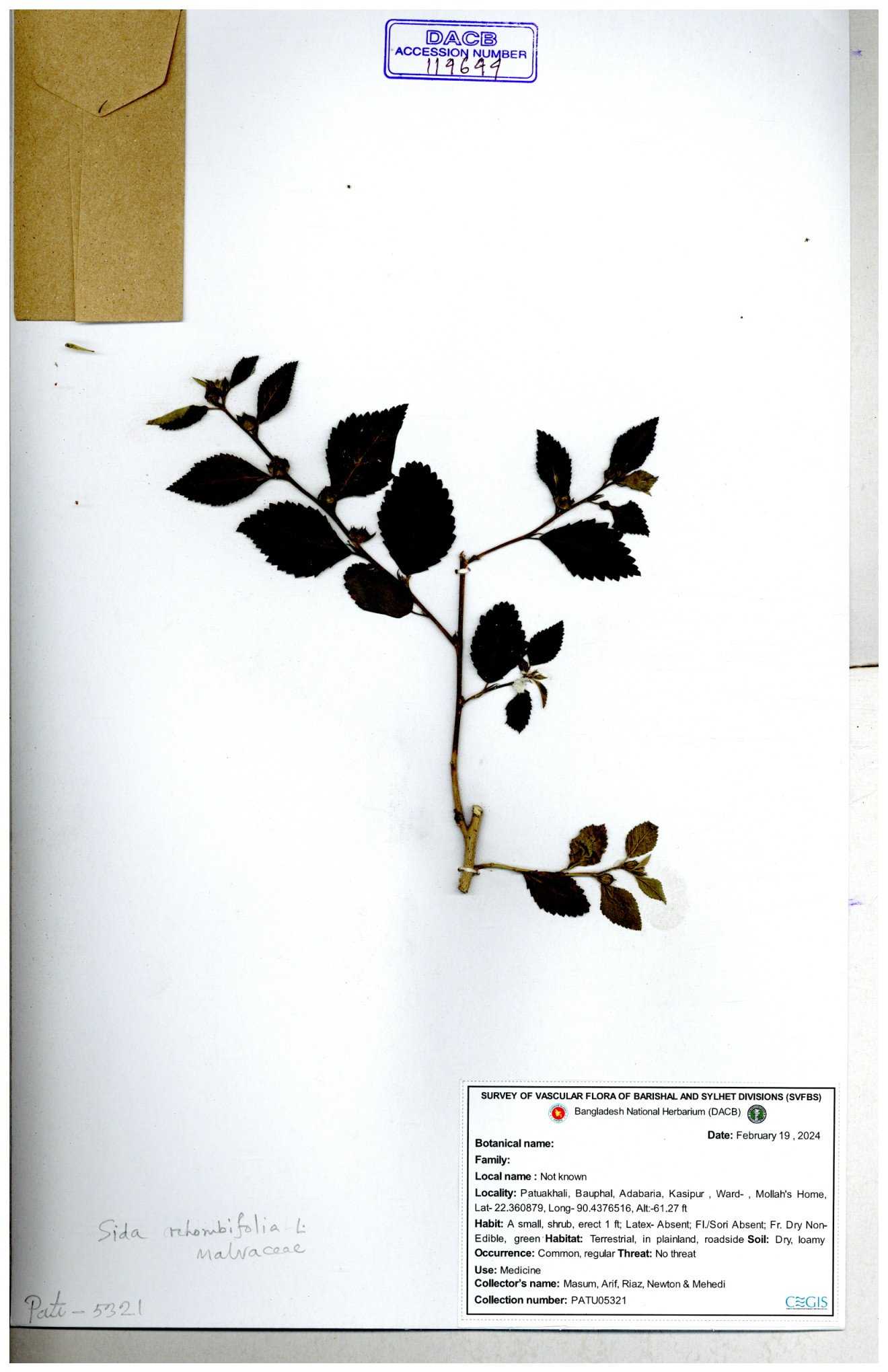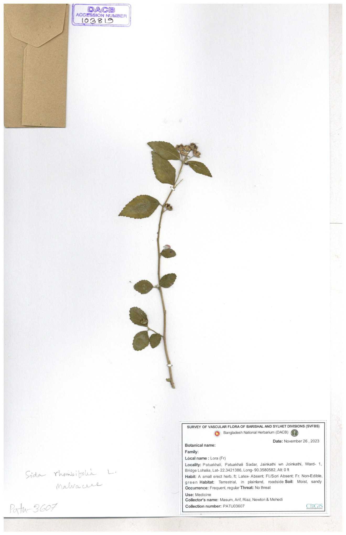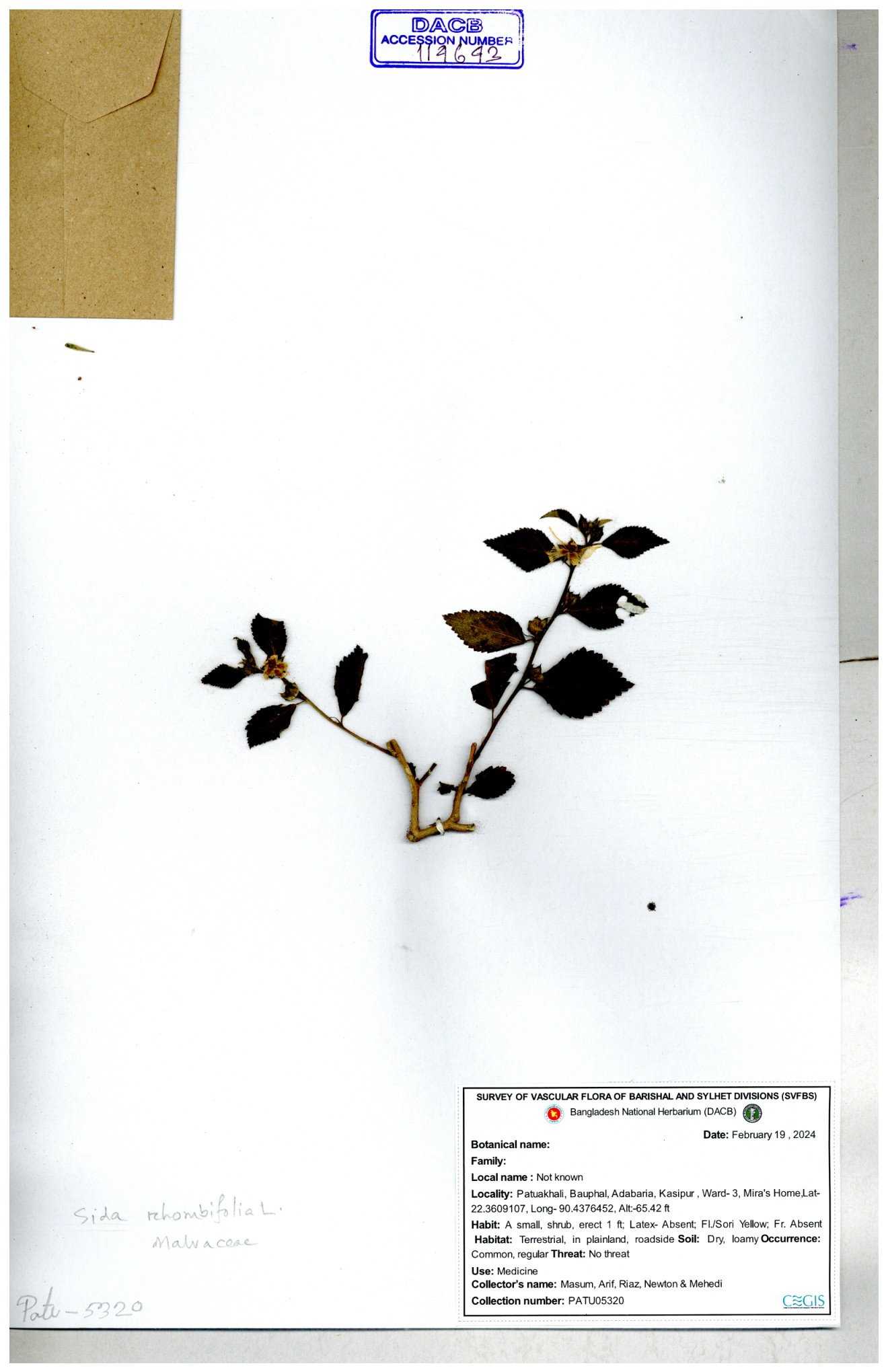 | 65982 | Malvaceae | Sida acuta Burm.f. | Berala | Khandakar Kamrul Islam | KKI-4066 (a) 12-03-2020 |