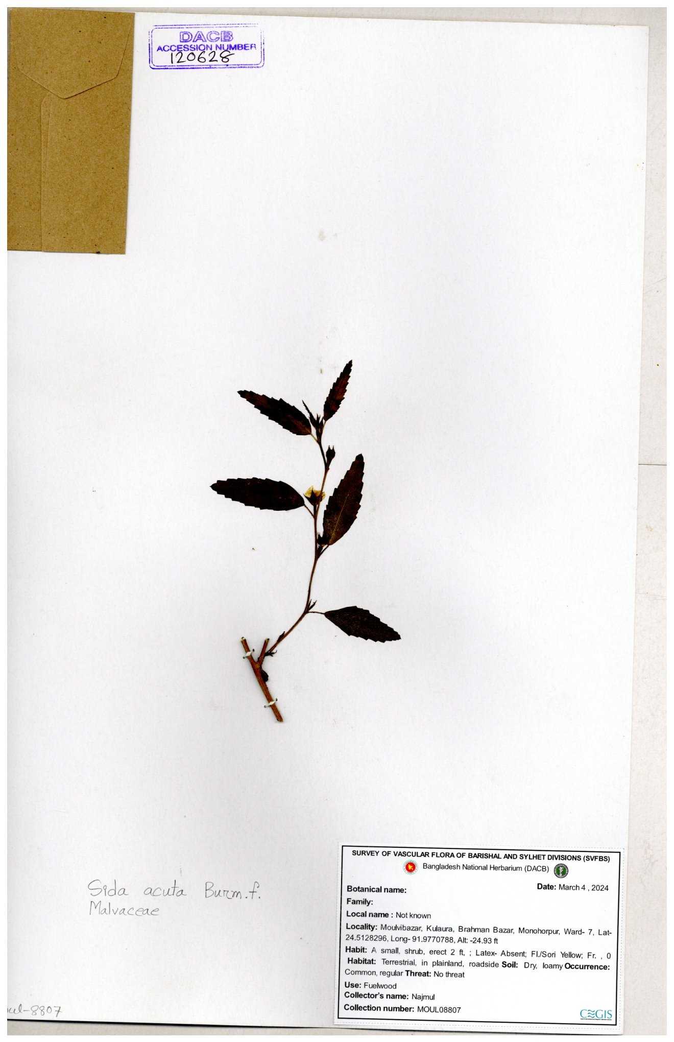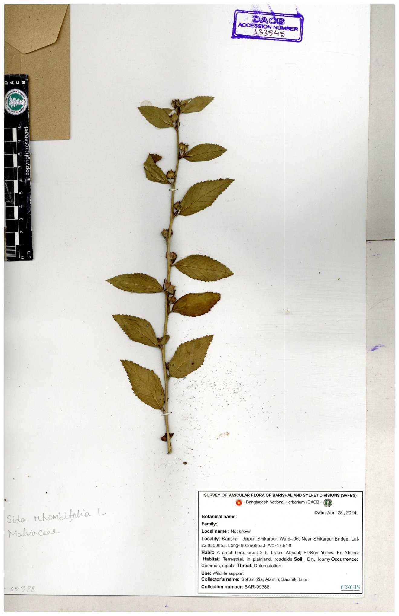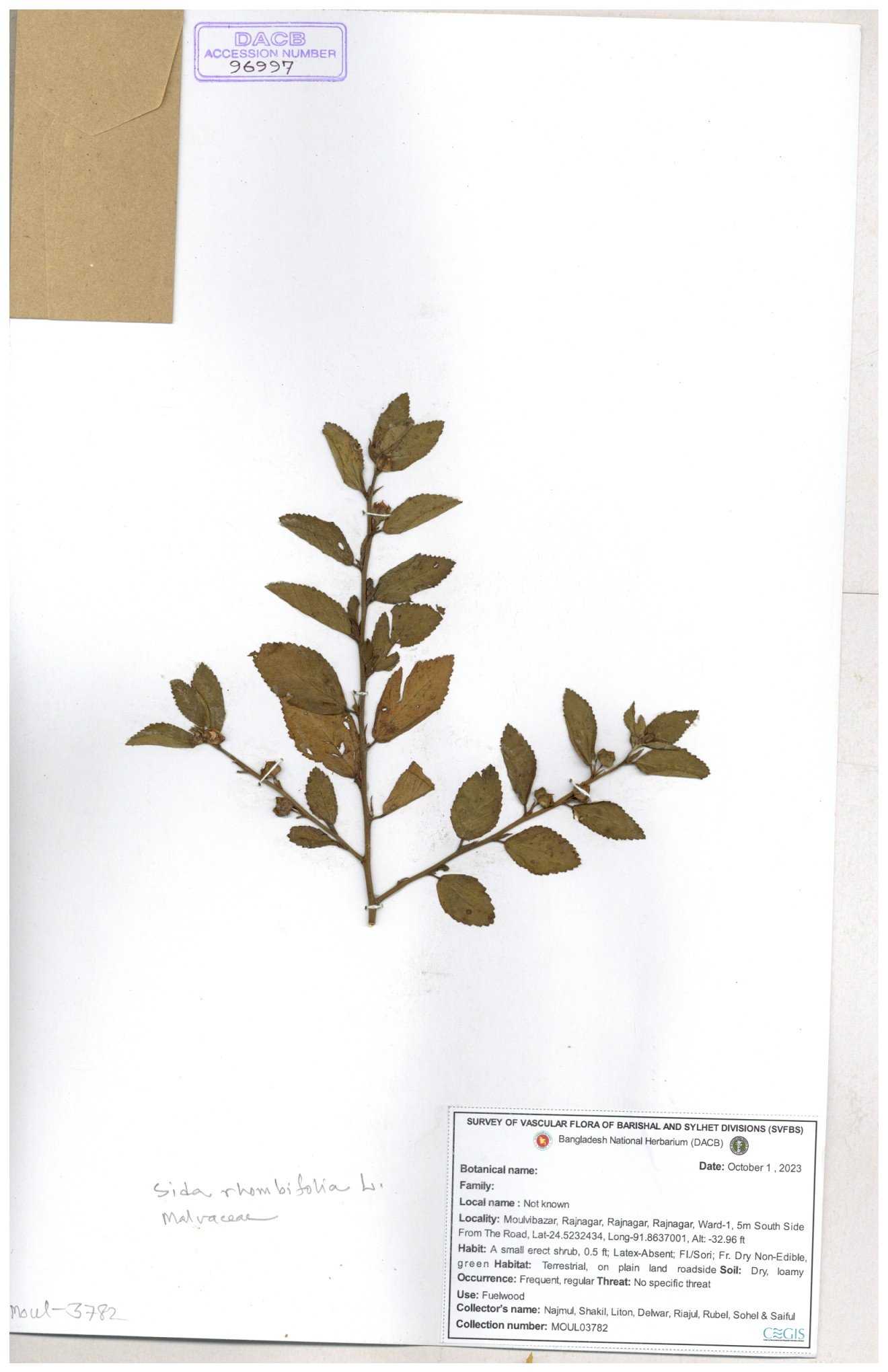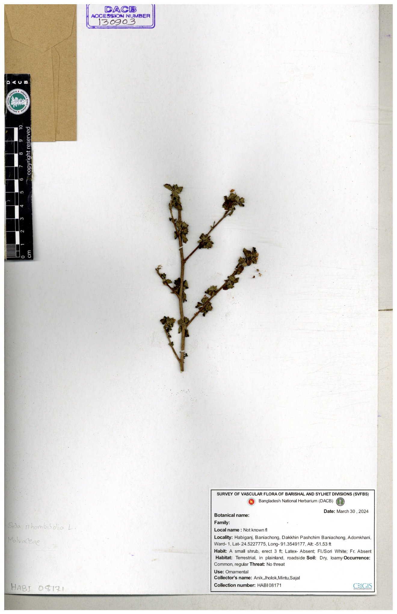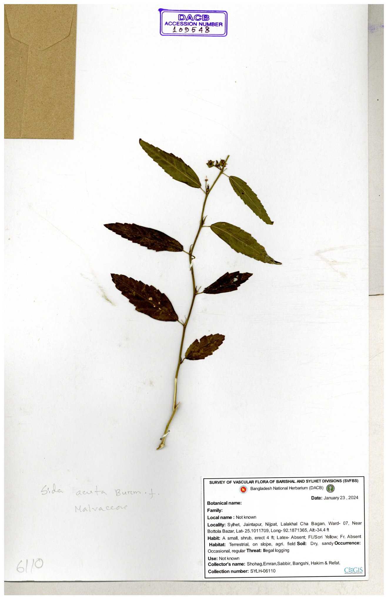 | 65982 | Malvaceae | Sida acuta Burm.f. | Berala | Khandakar Kamrul Islam | KKI-4066 (a) 12-03-2020 |