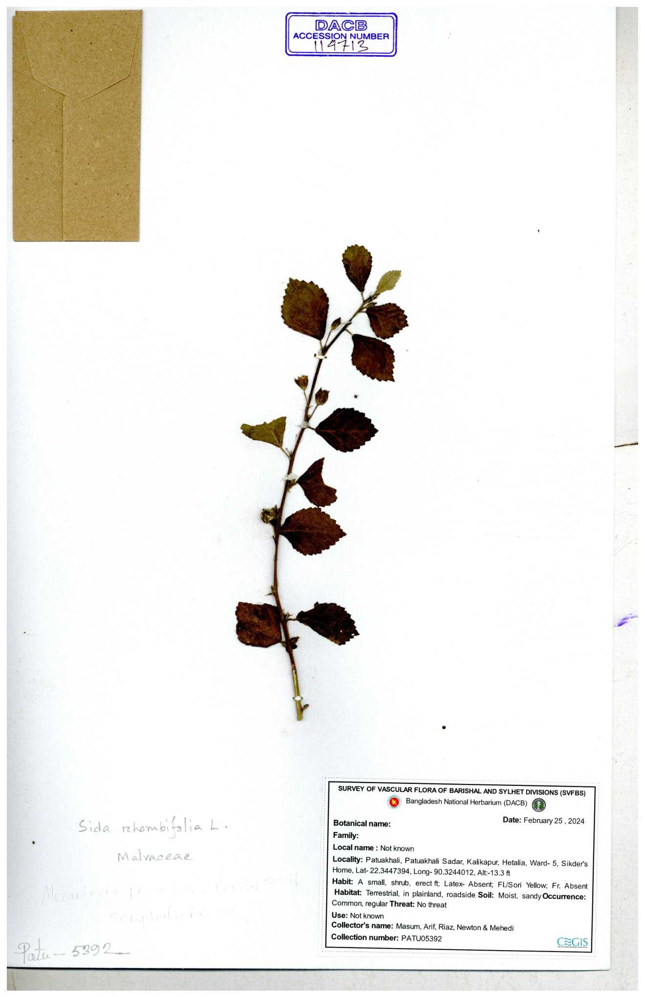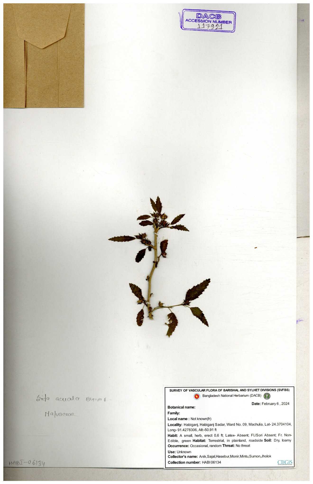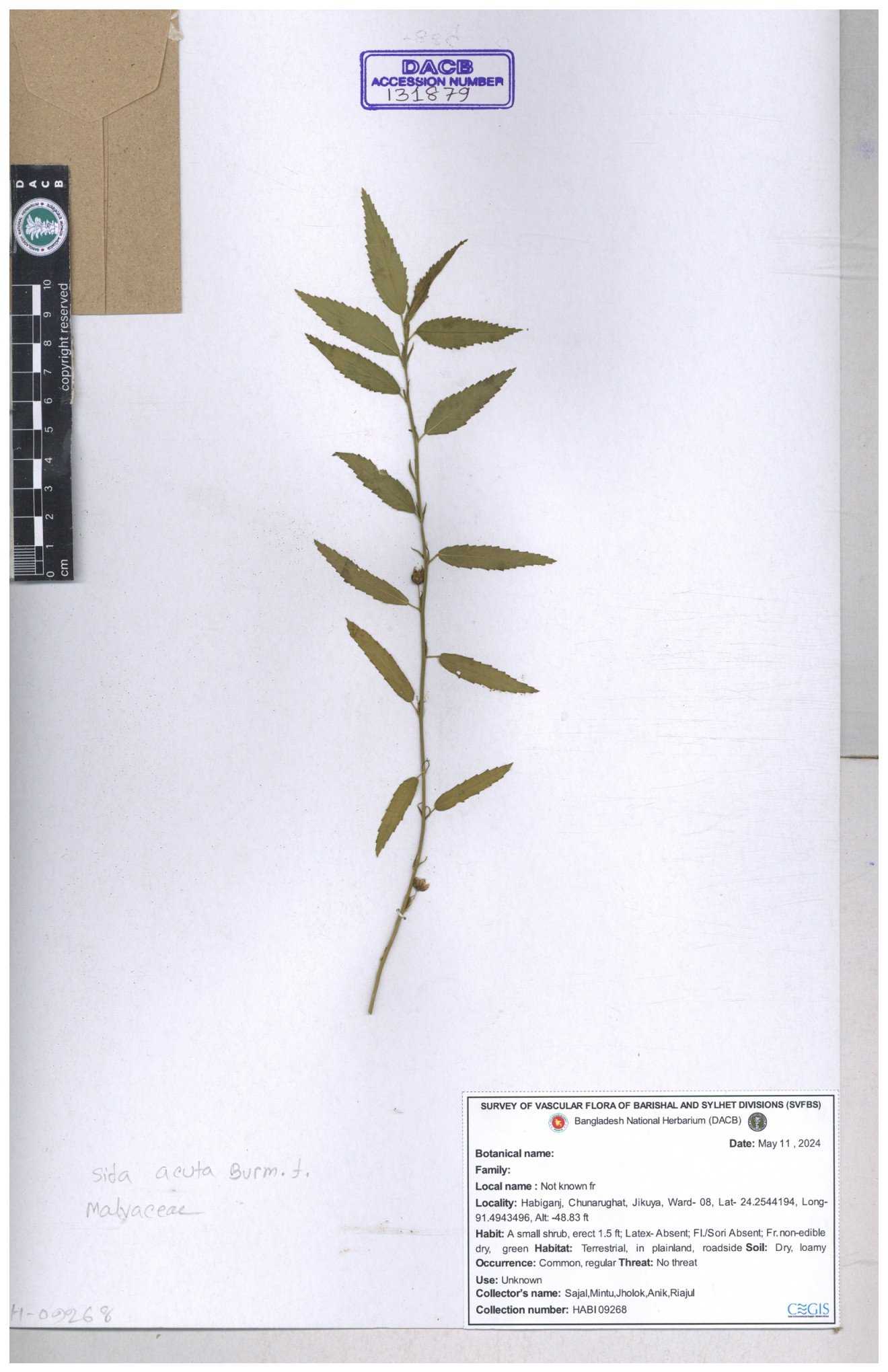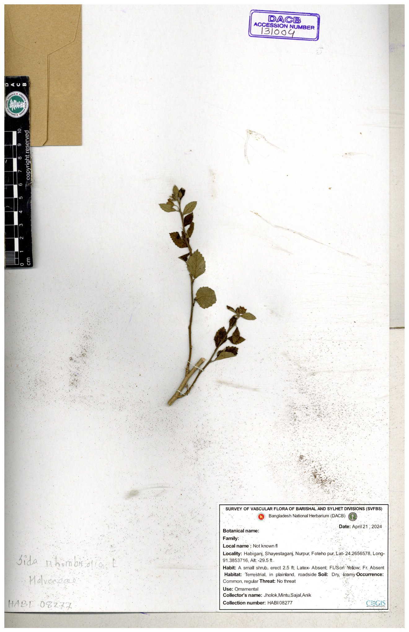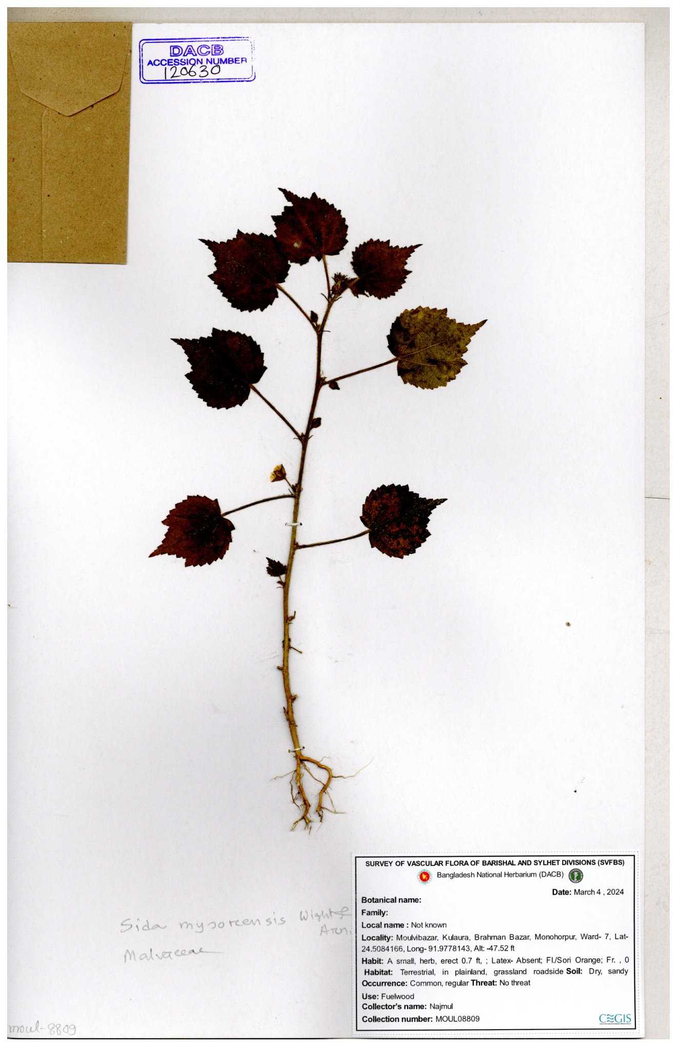 | 65982 | Malvaceae | Sida acuta Burm.f. | Berala | Khandakar Kamrul Islam | KKI-4066 (a) 12-03-2020 |