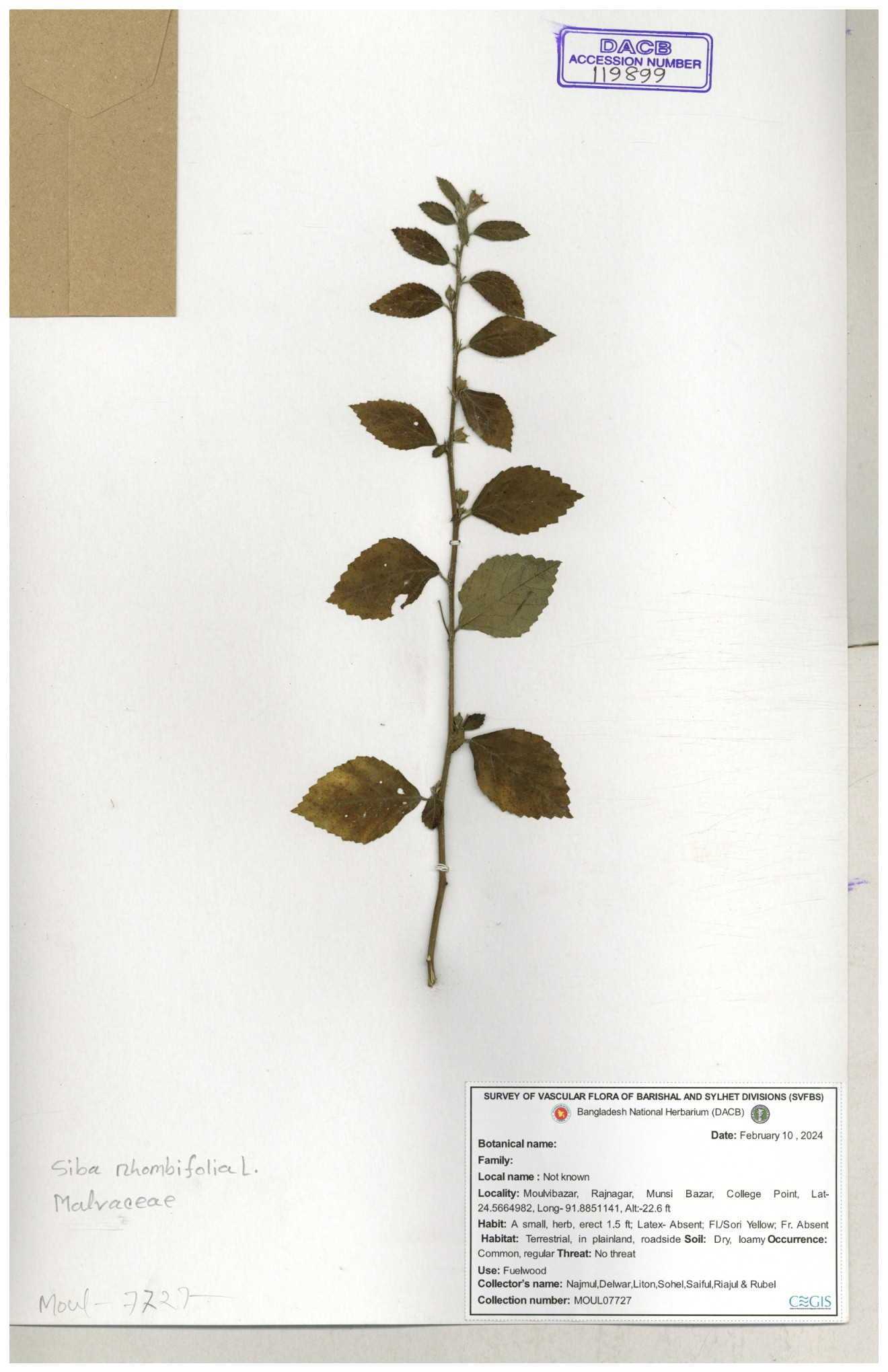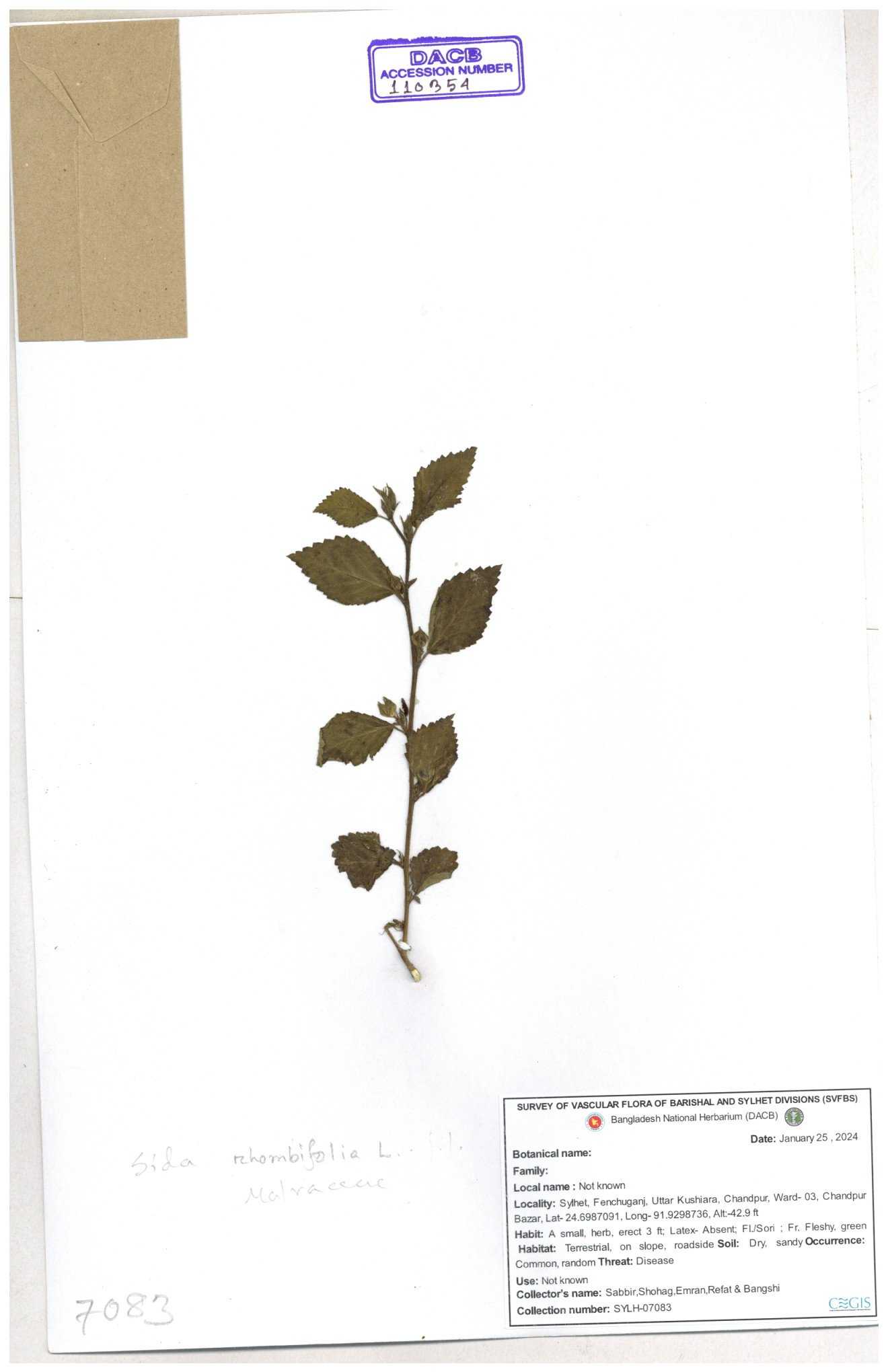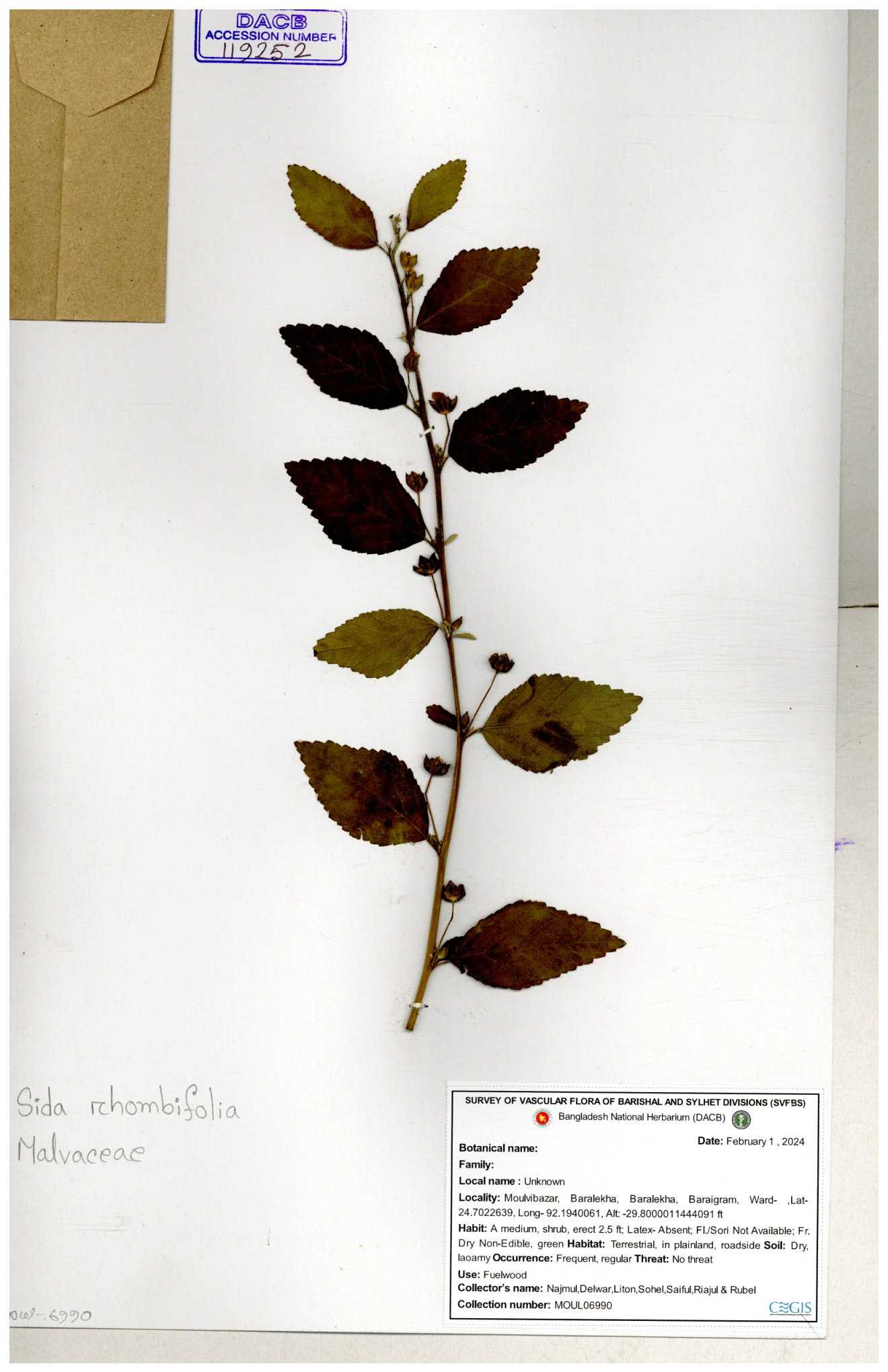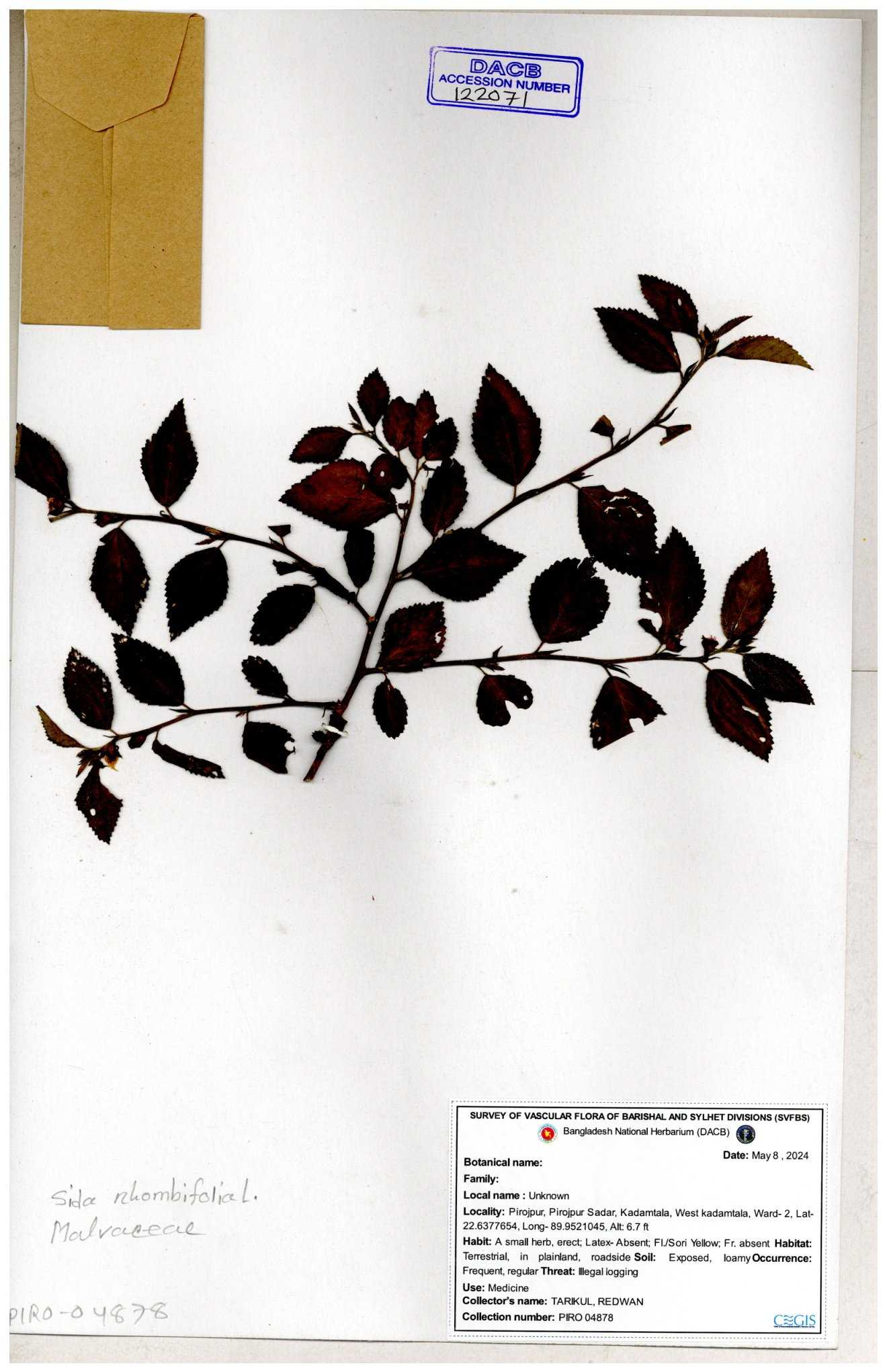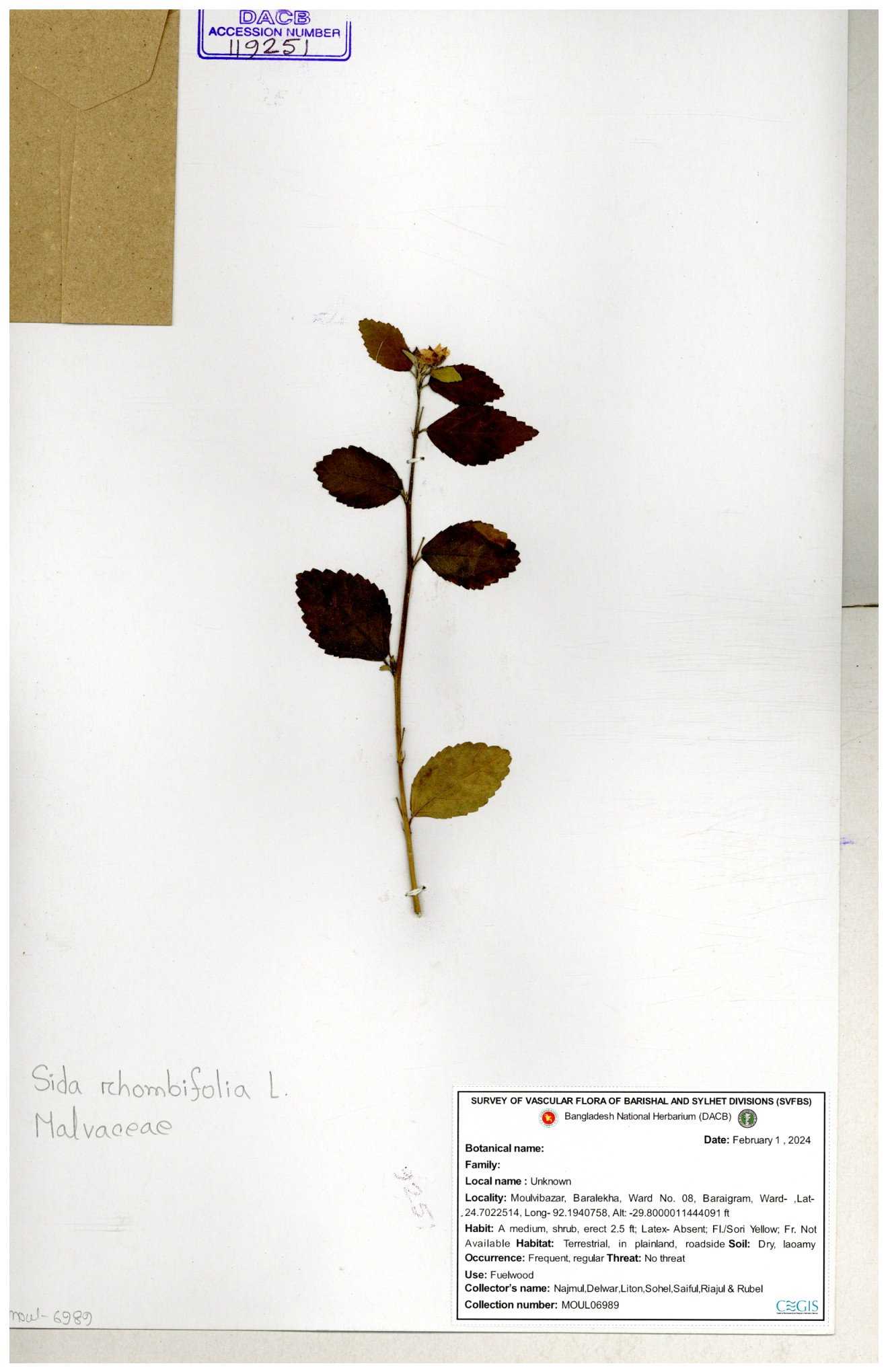 | 65982 | Malvaceae | Sida acuta Burm.f. | Berala | Khandakar Kamrul Islam | KKI-4066 (a) 12-03-2020 |