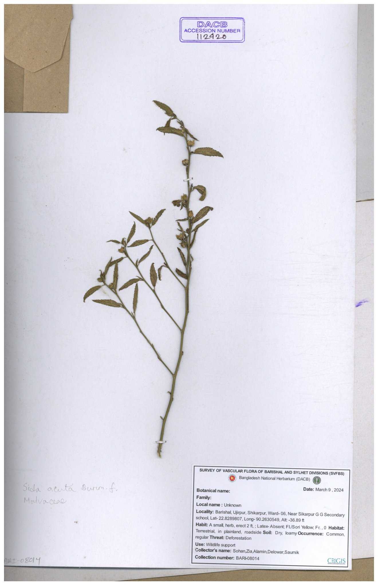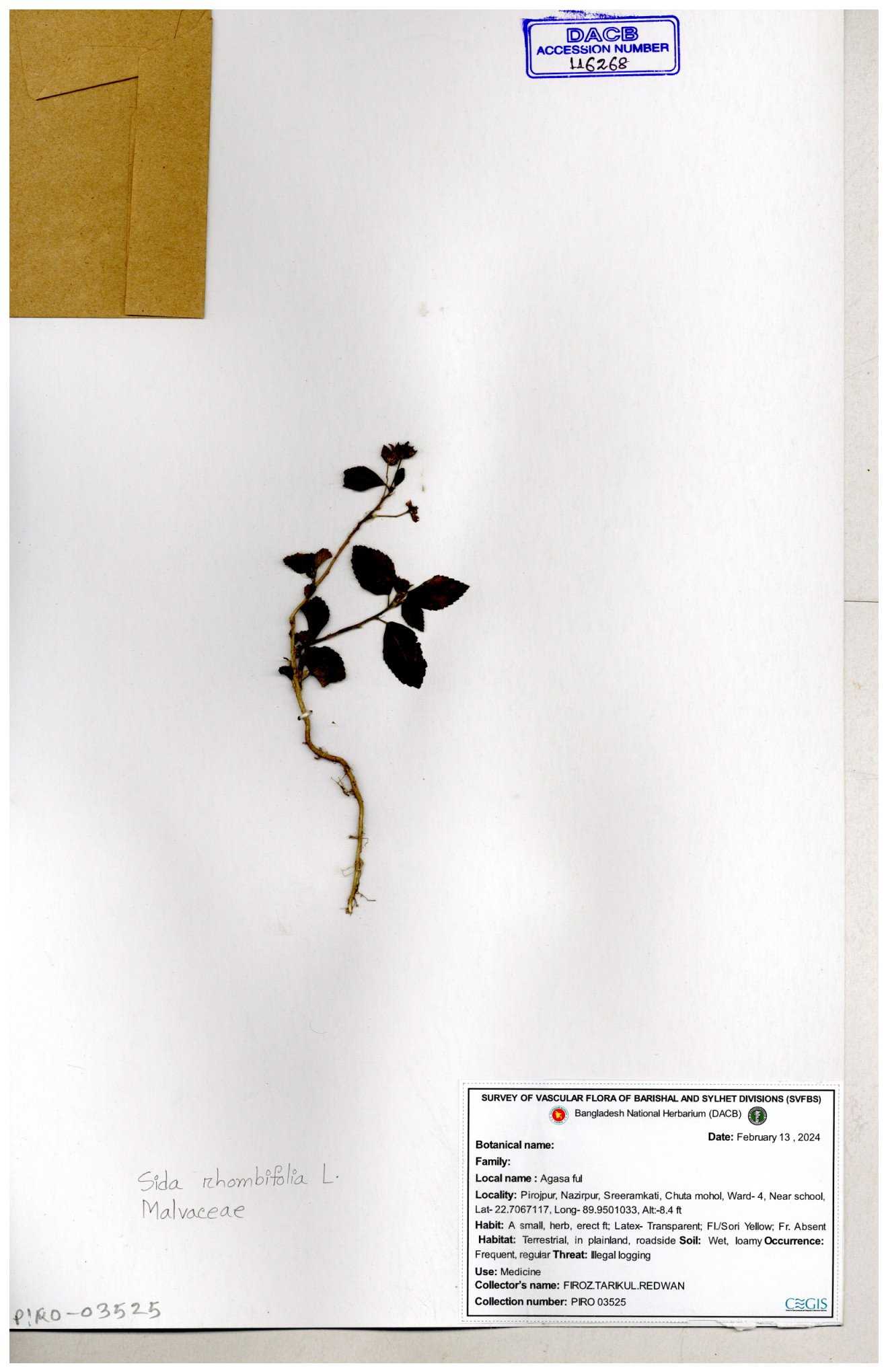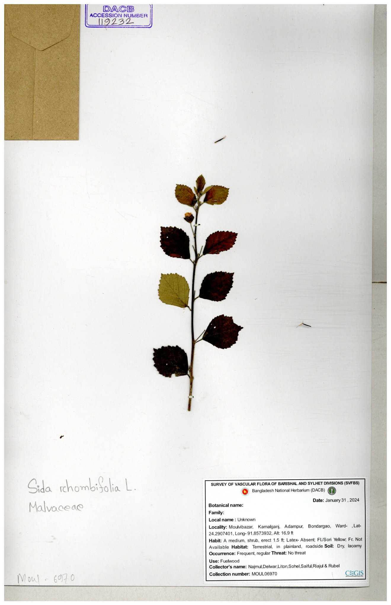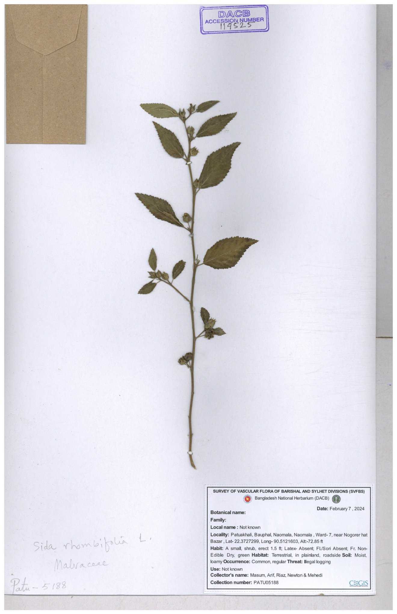 | 65982 | Malvaceae | Sida acuta Burm.f. | Berala | Khandakar Kamrul Islam | KKI-4066 (a) 12-03-2020 |