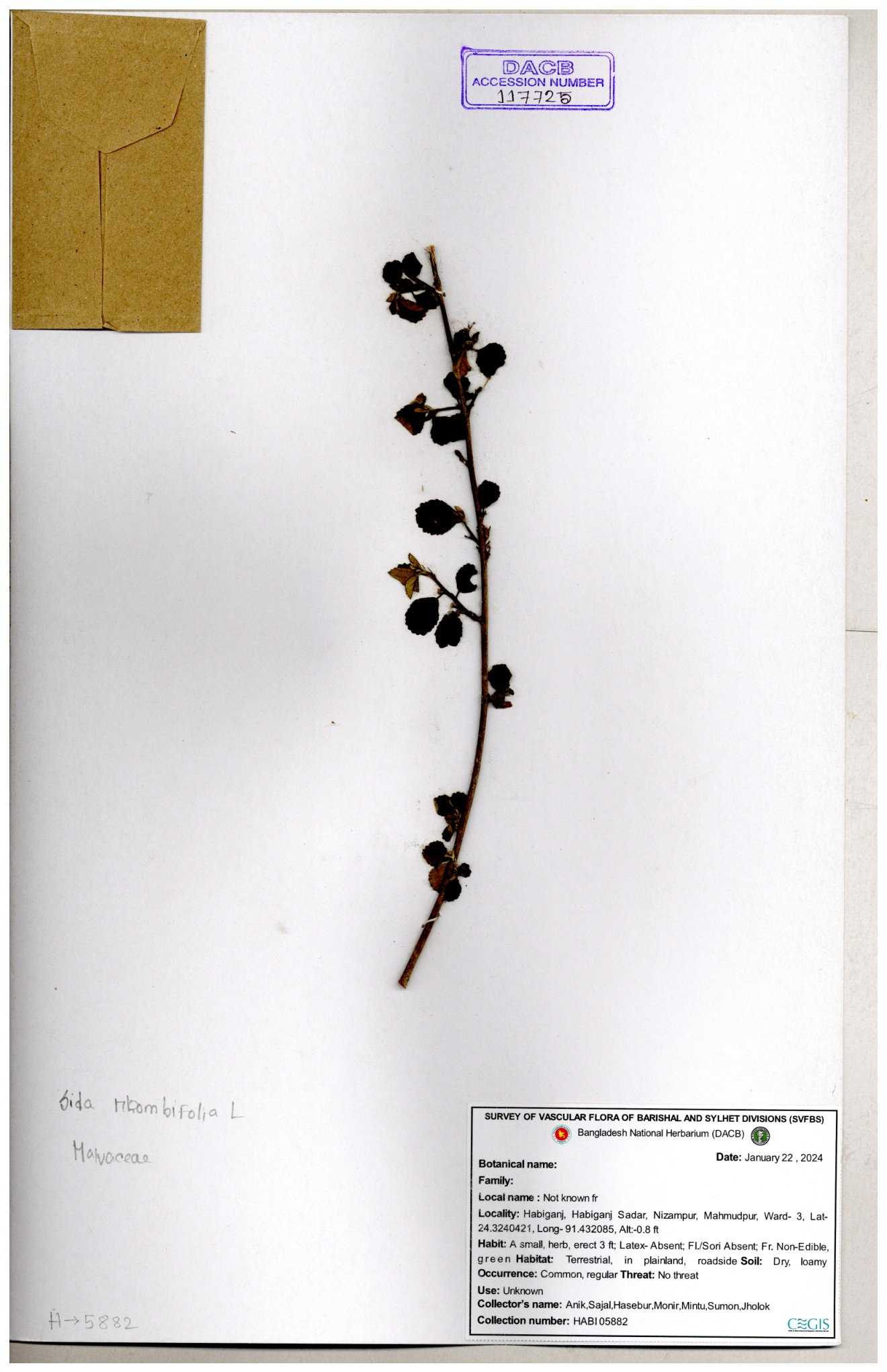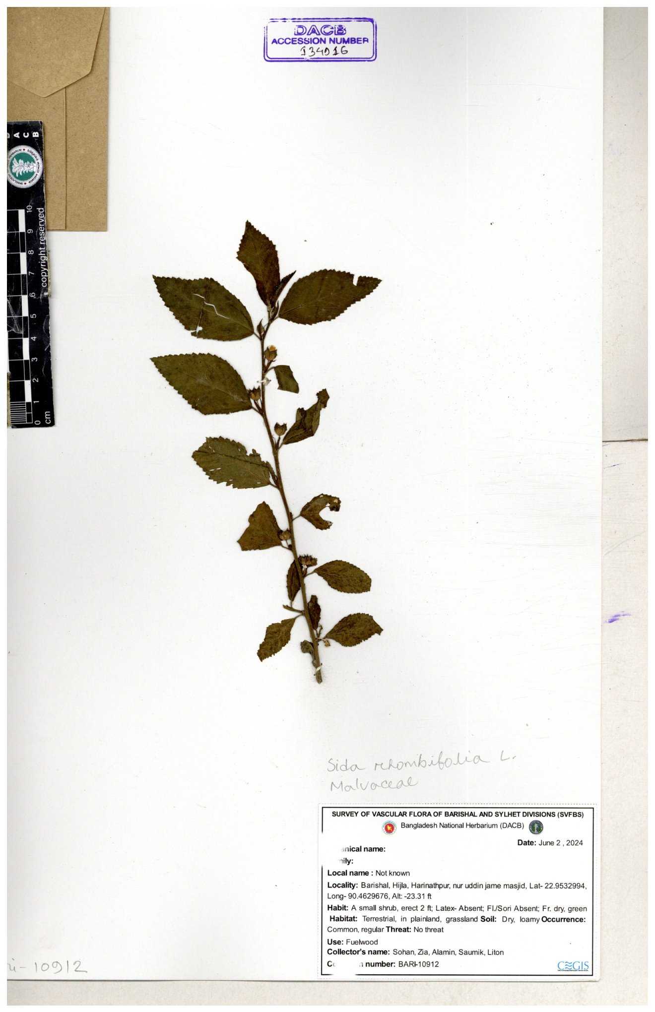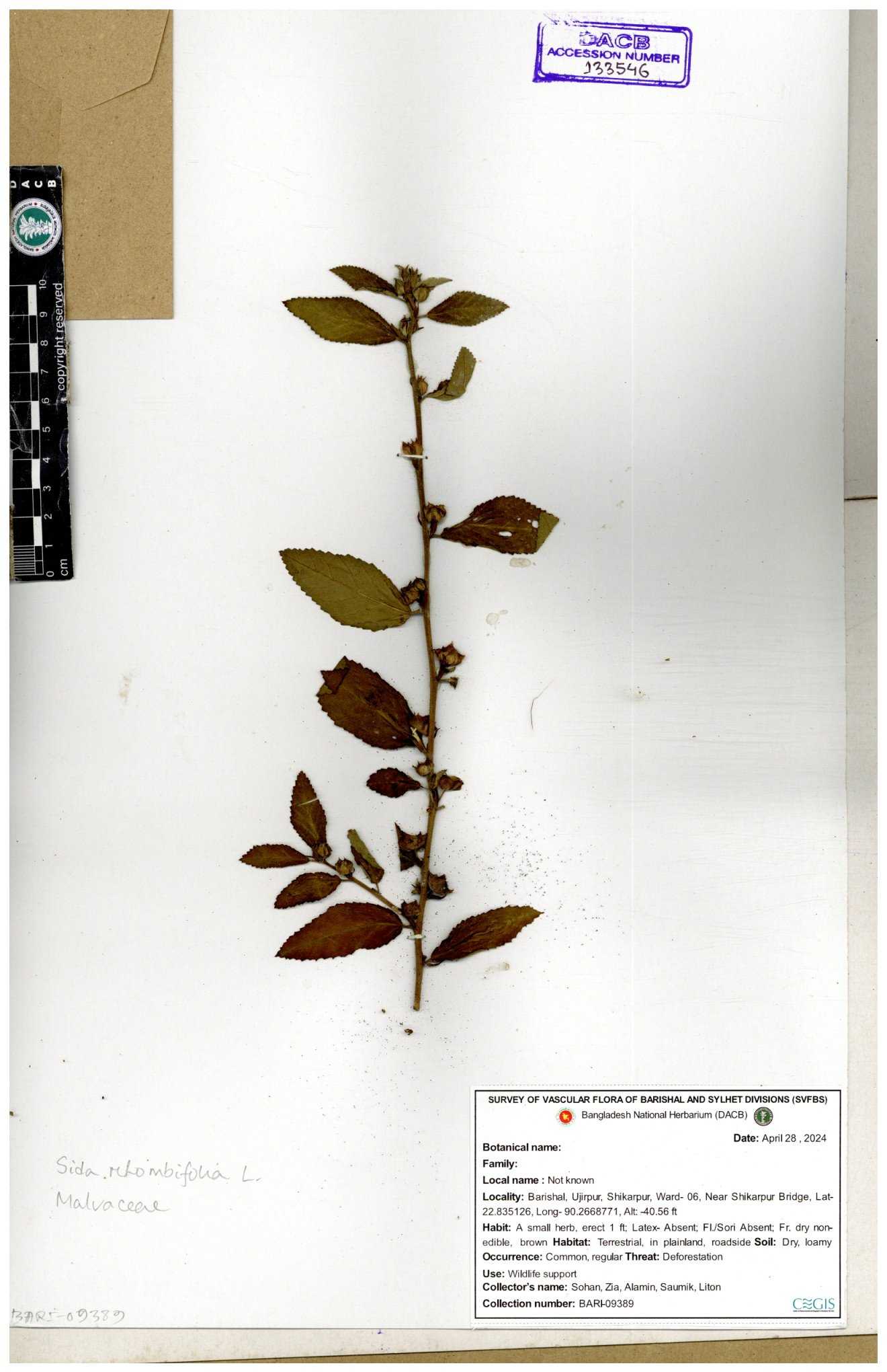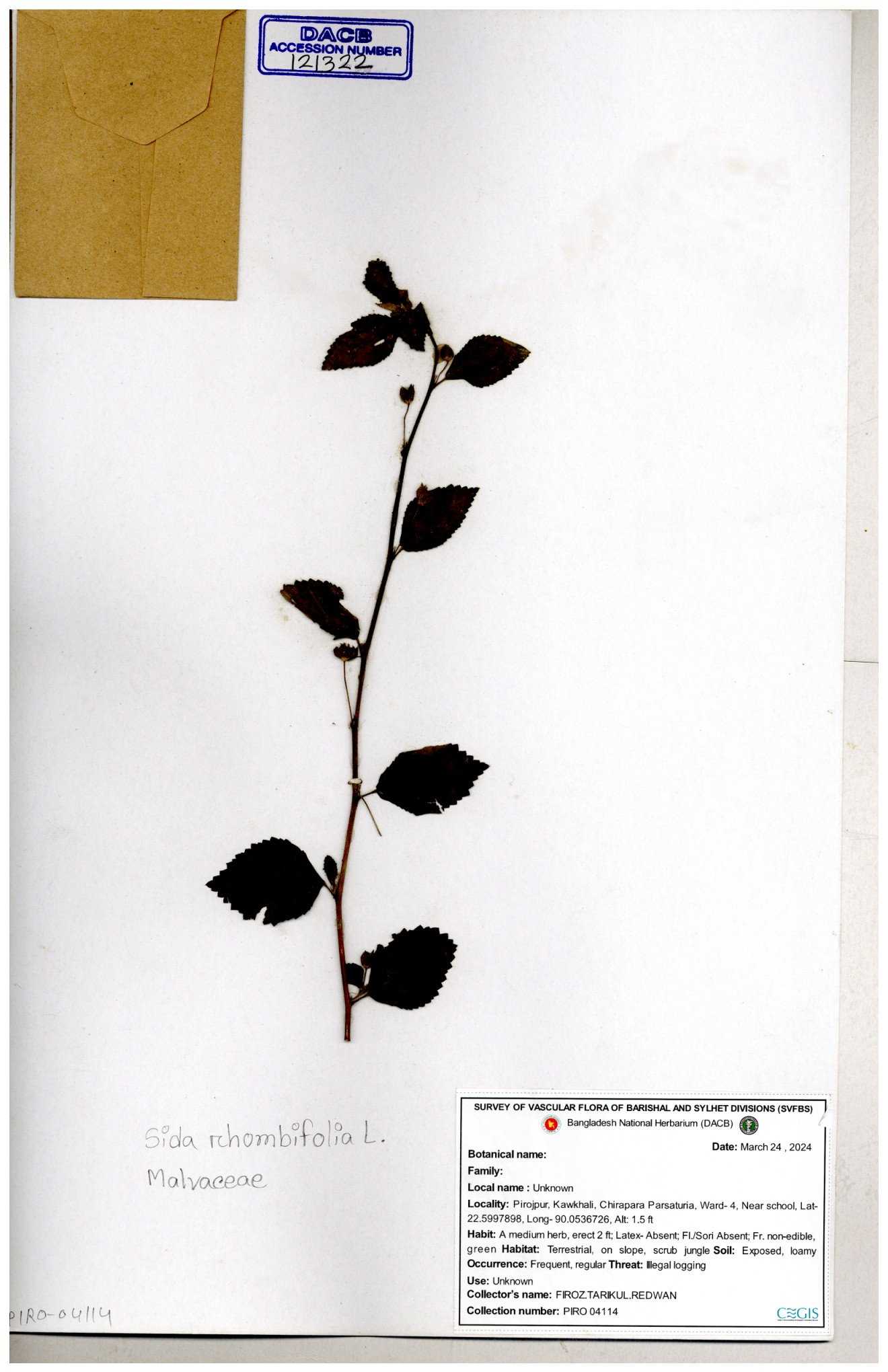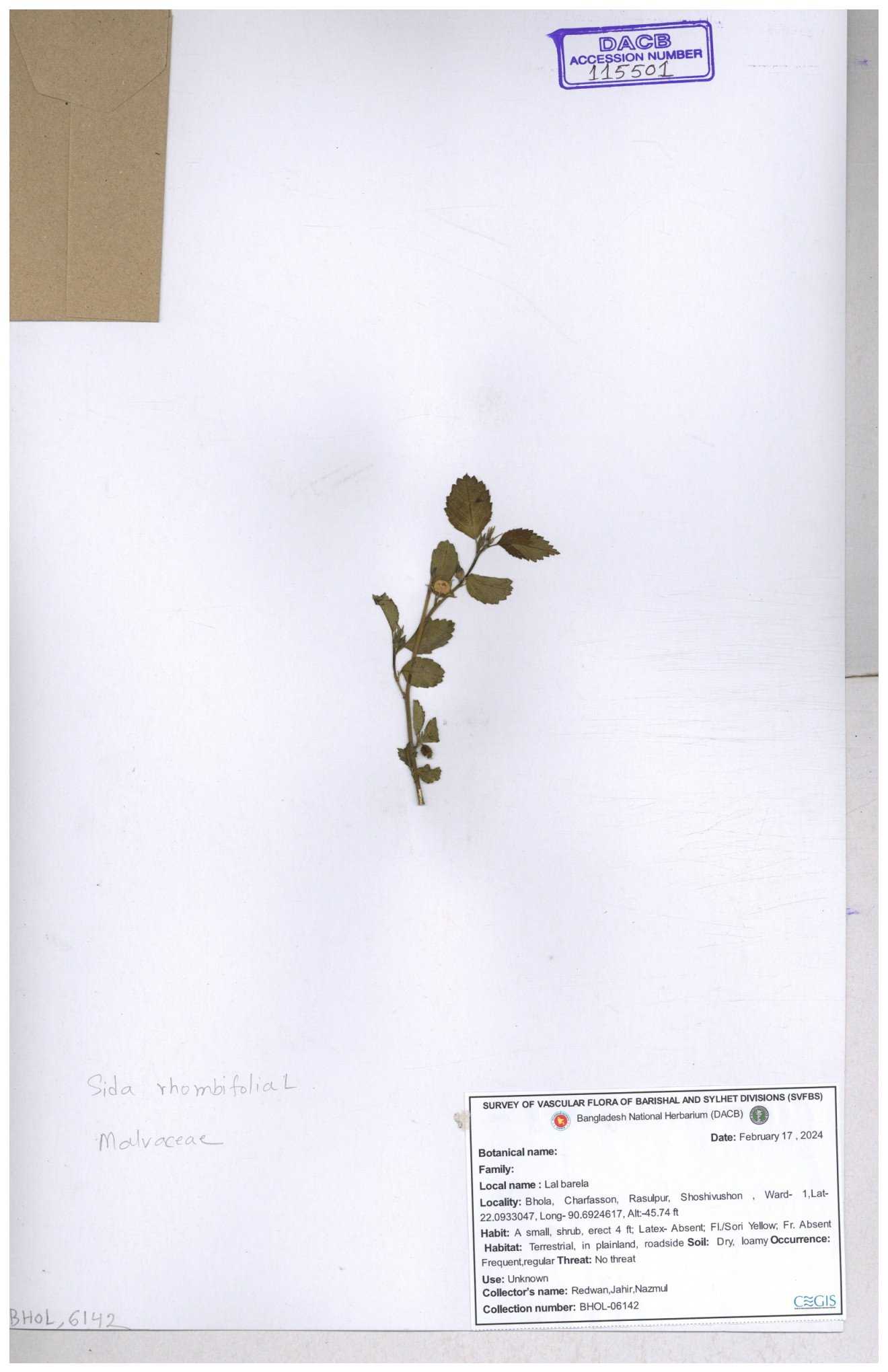 | 65982 | Malvaceae | Sida acuta Burm.f. | Berala | Khandakar Kamrul Islam | KKI-4066 (a) 12-03-2020 |