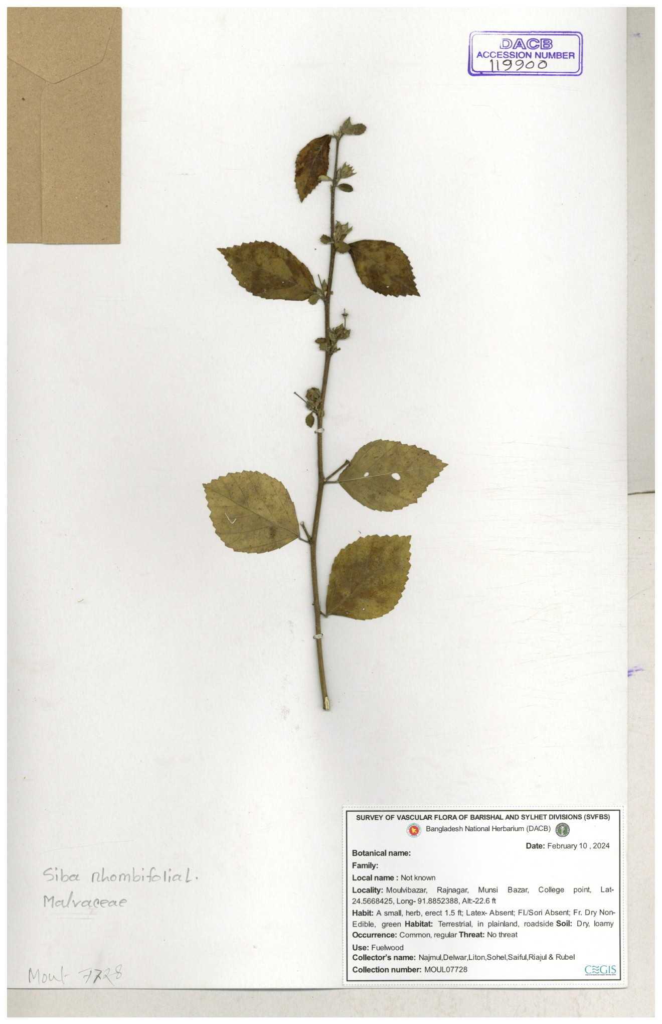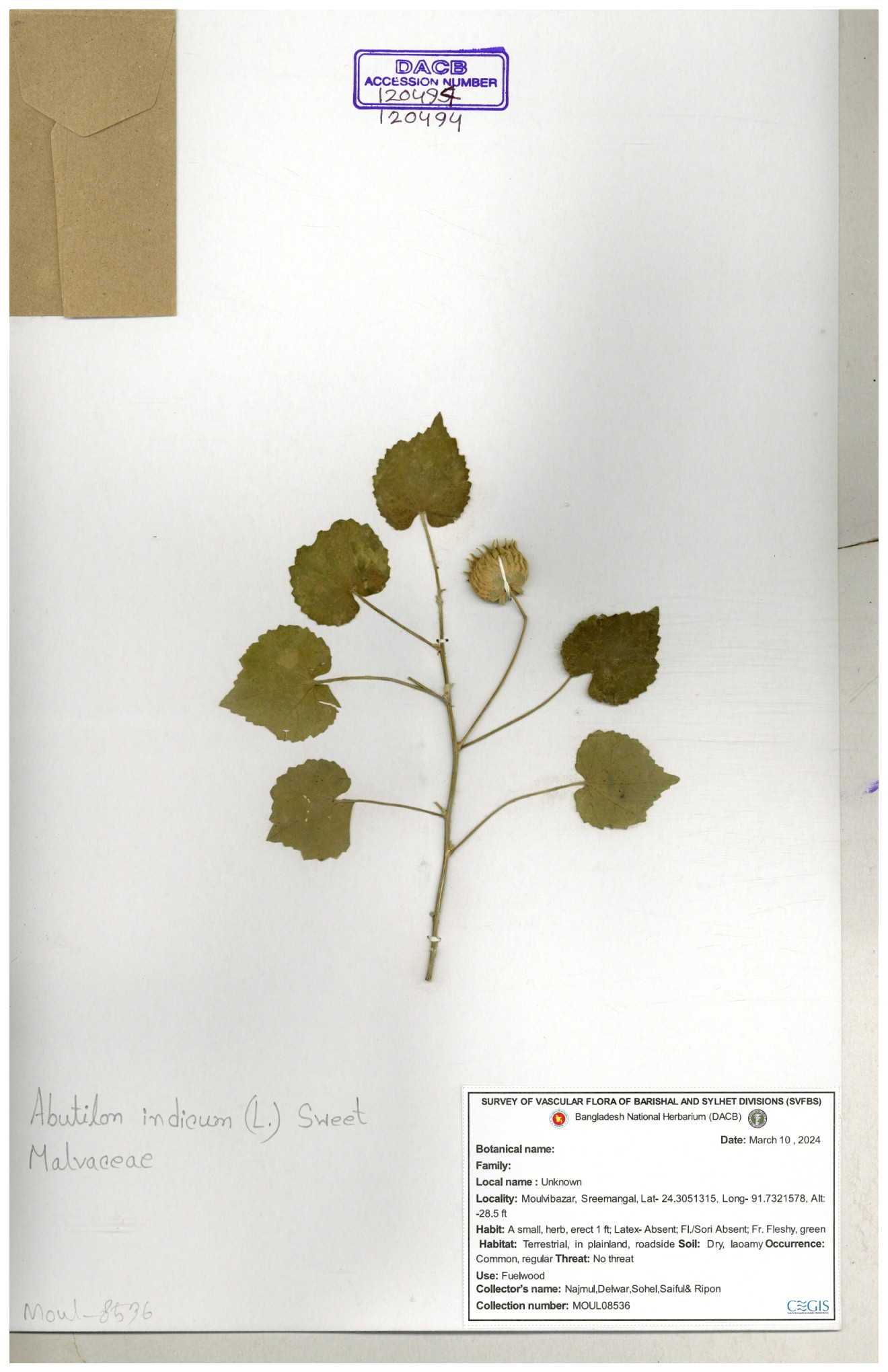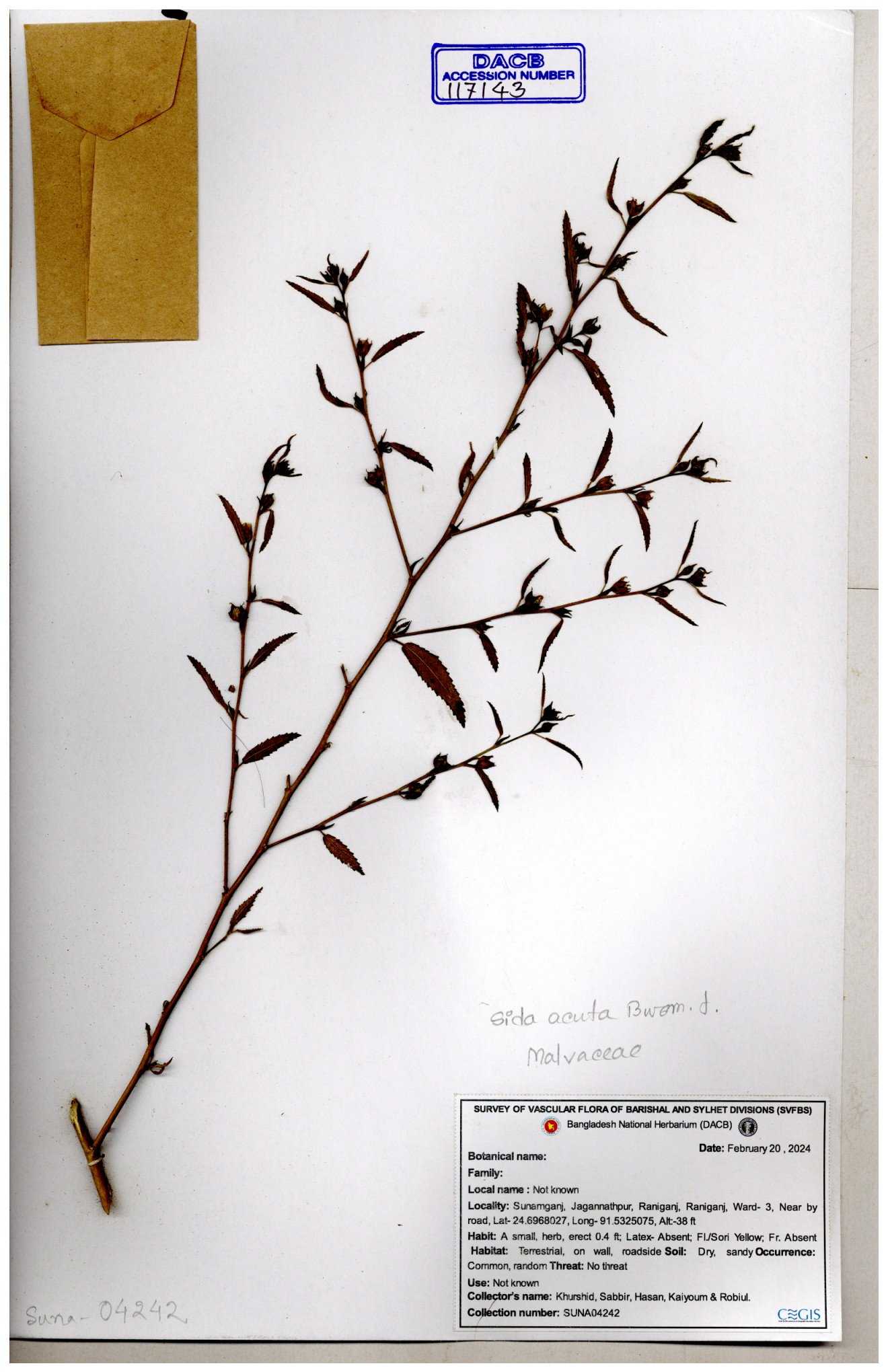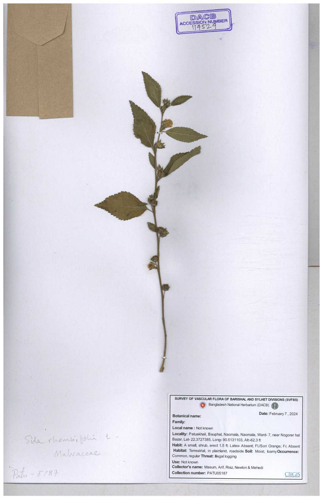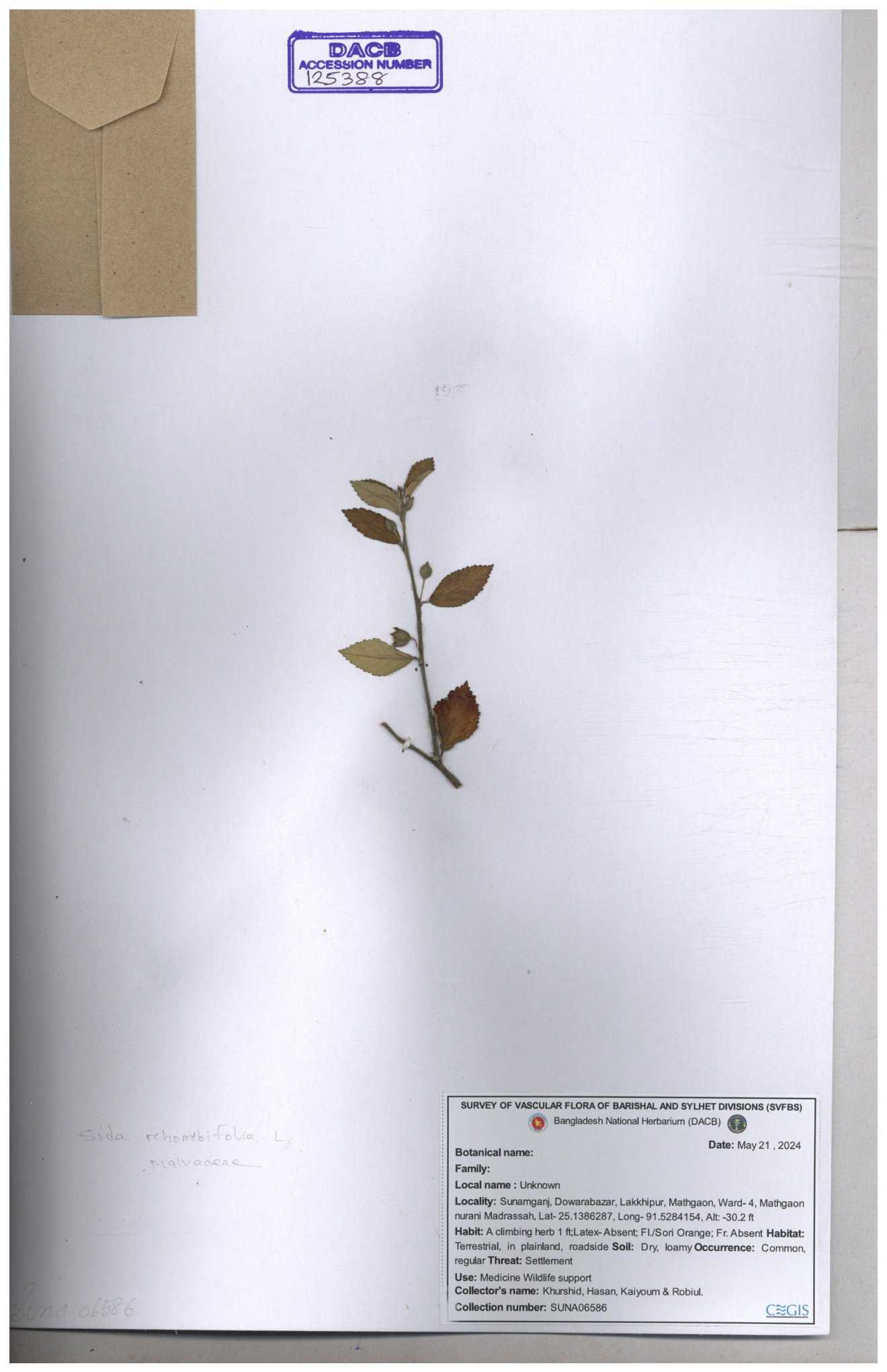 | 65982 | Malvaceae | Sida acuta Burm.f. | Berala | Khandakar Kamrul Islam | KKI-4066 (a) 12-03-2020 |