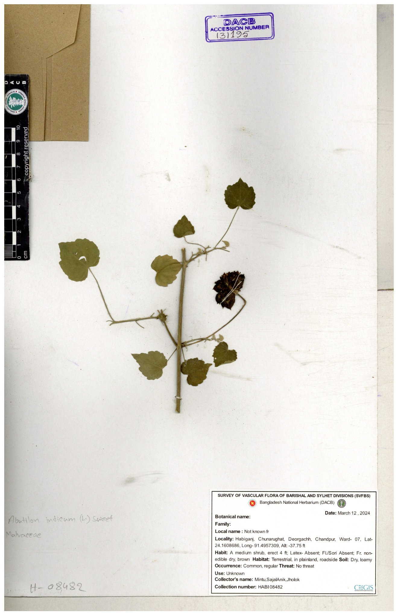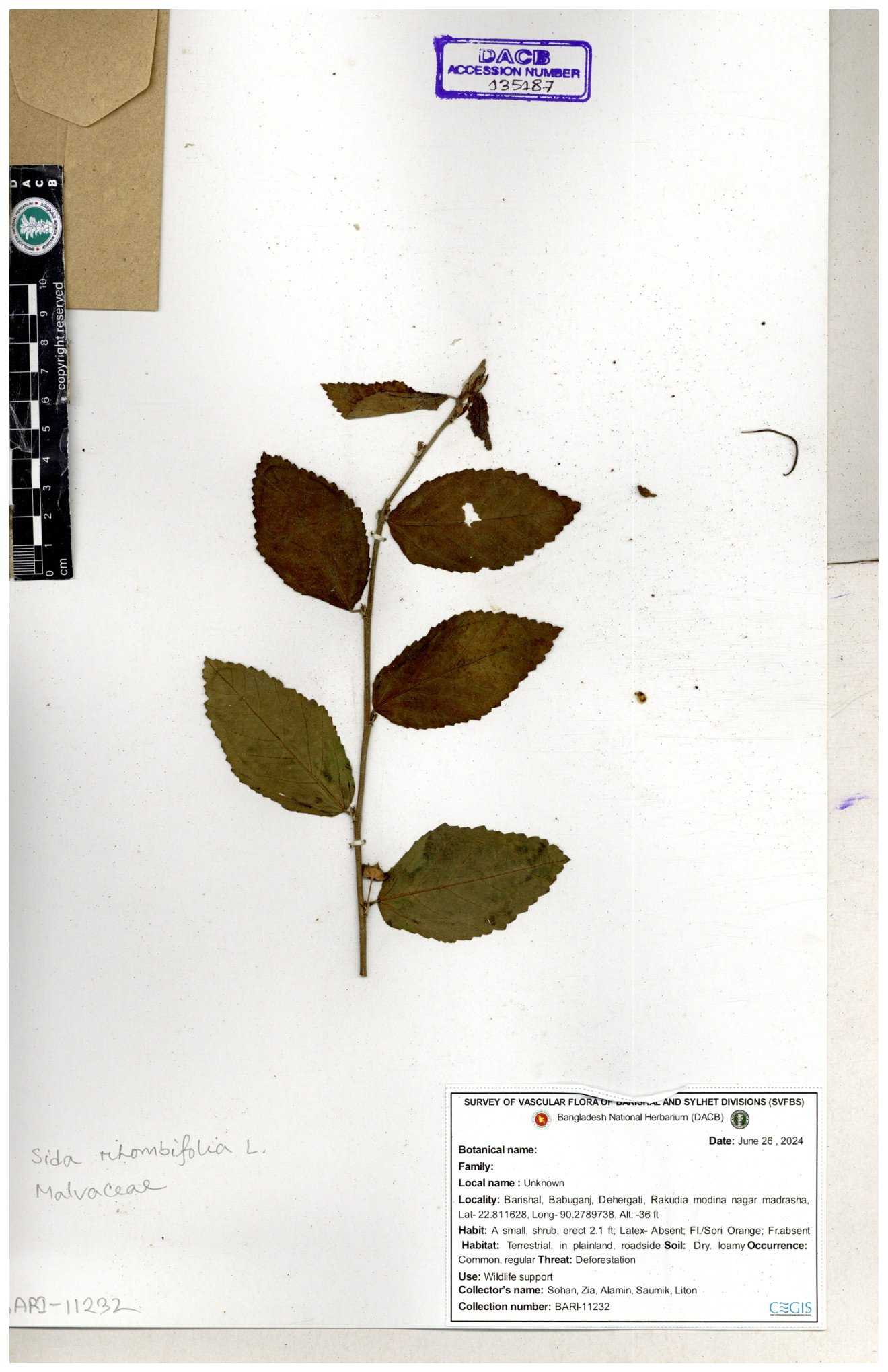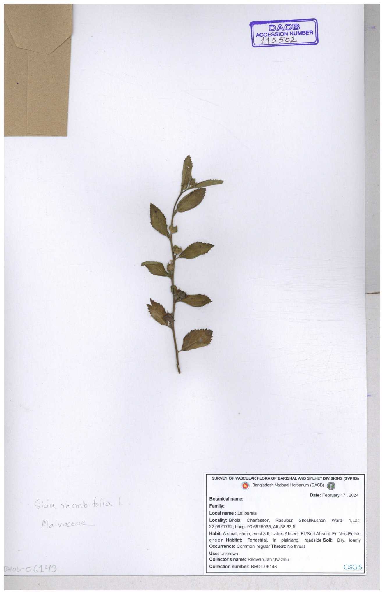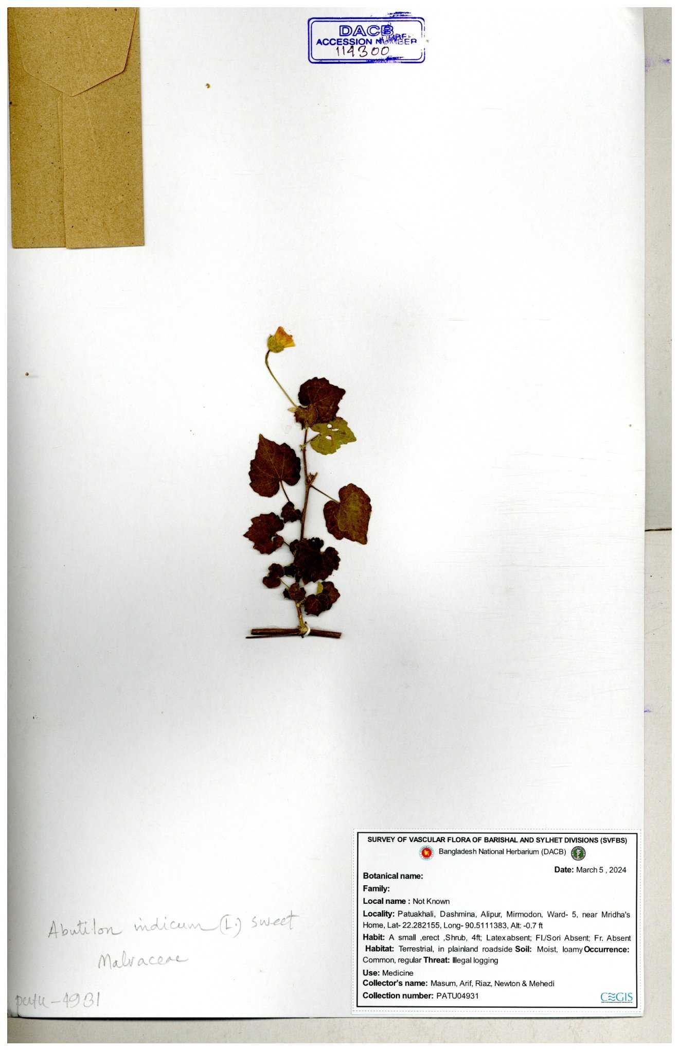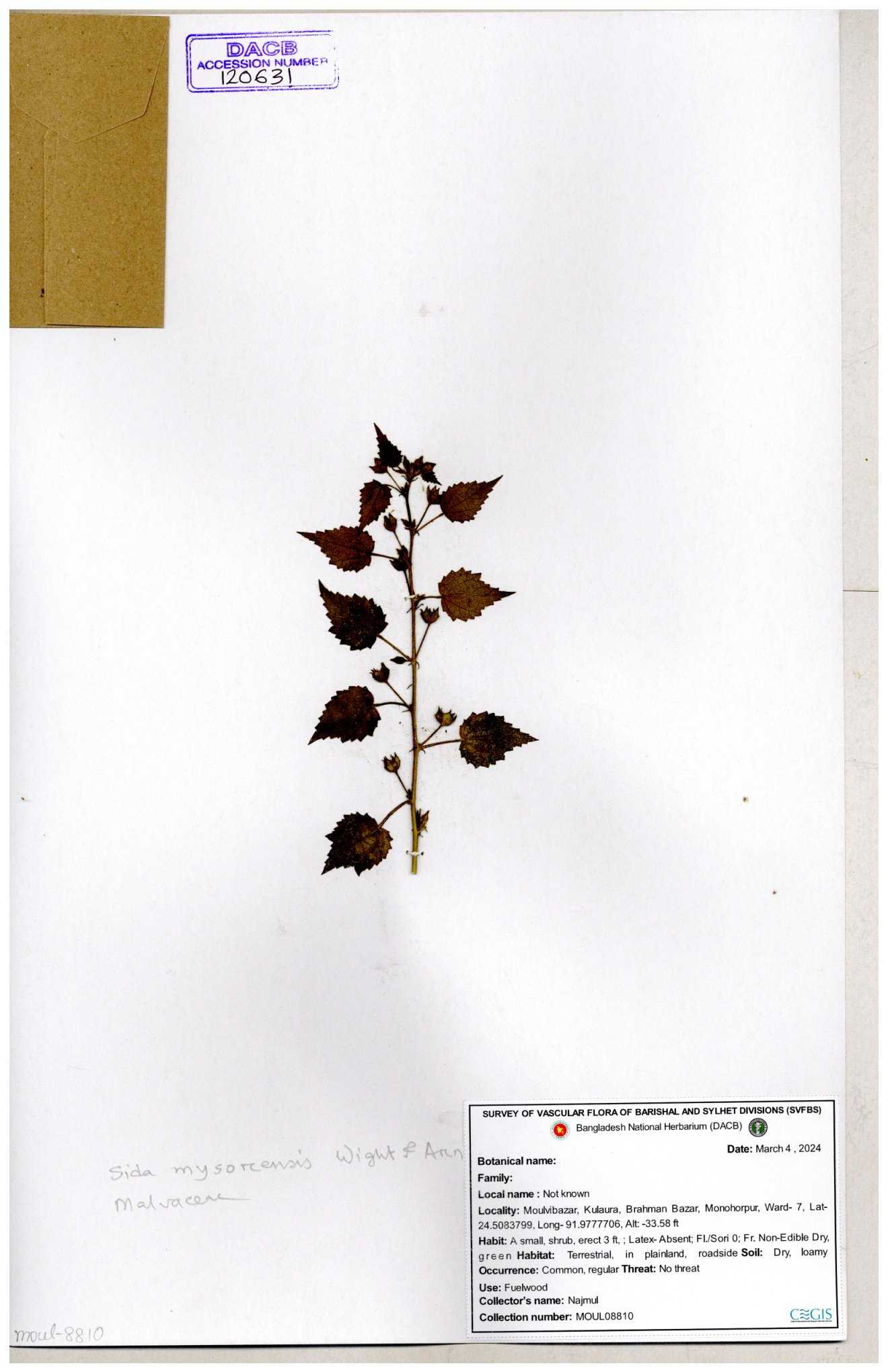 | 65982 | Malvaceae | Sida acuta Burm.f. | Berala | Khandakar Kamrul Islam | KKI-4066 (a) 12-03-2020 |