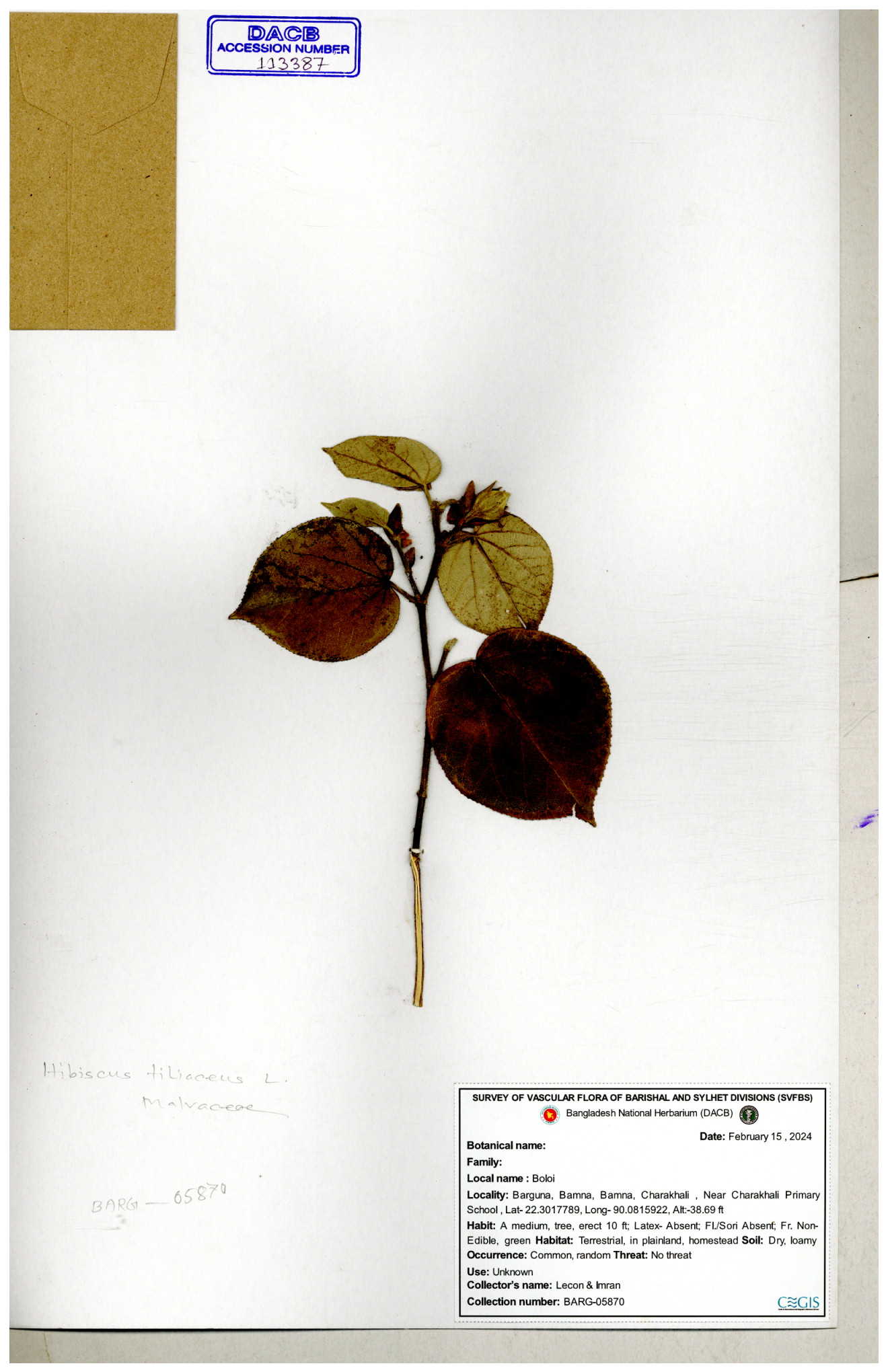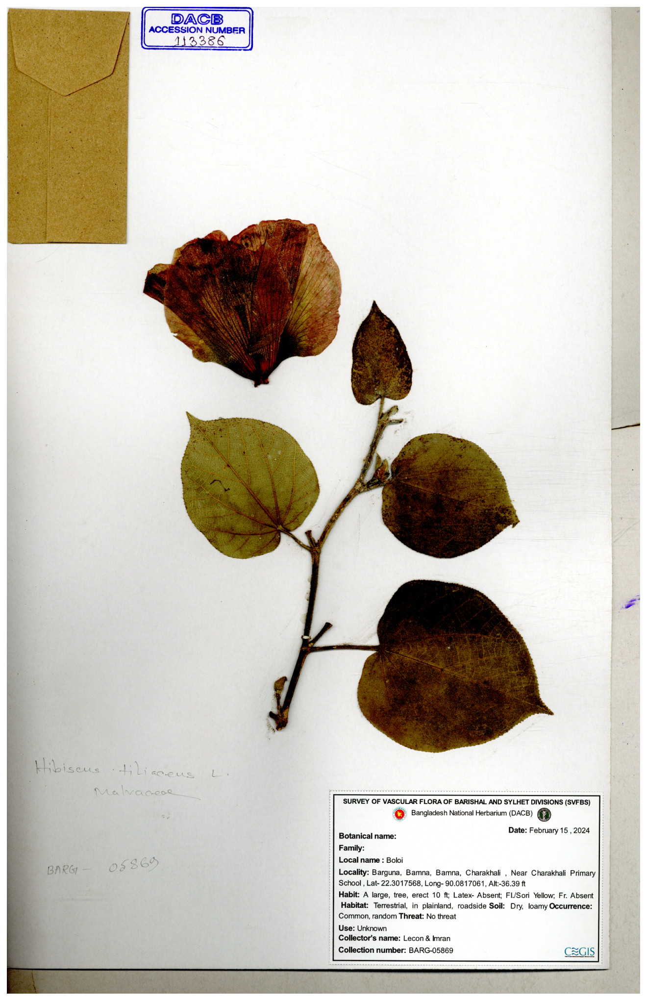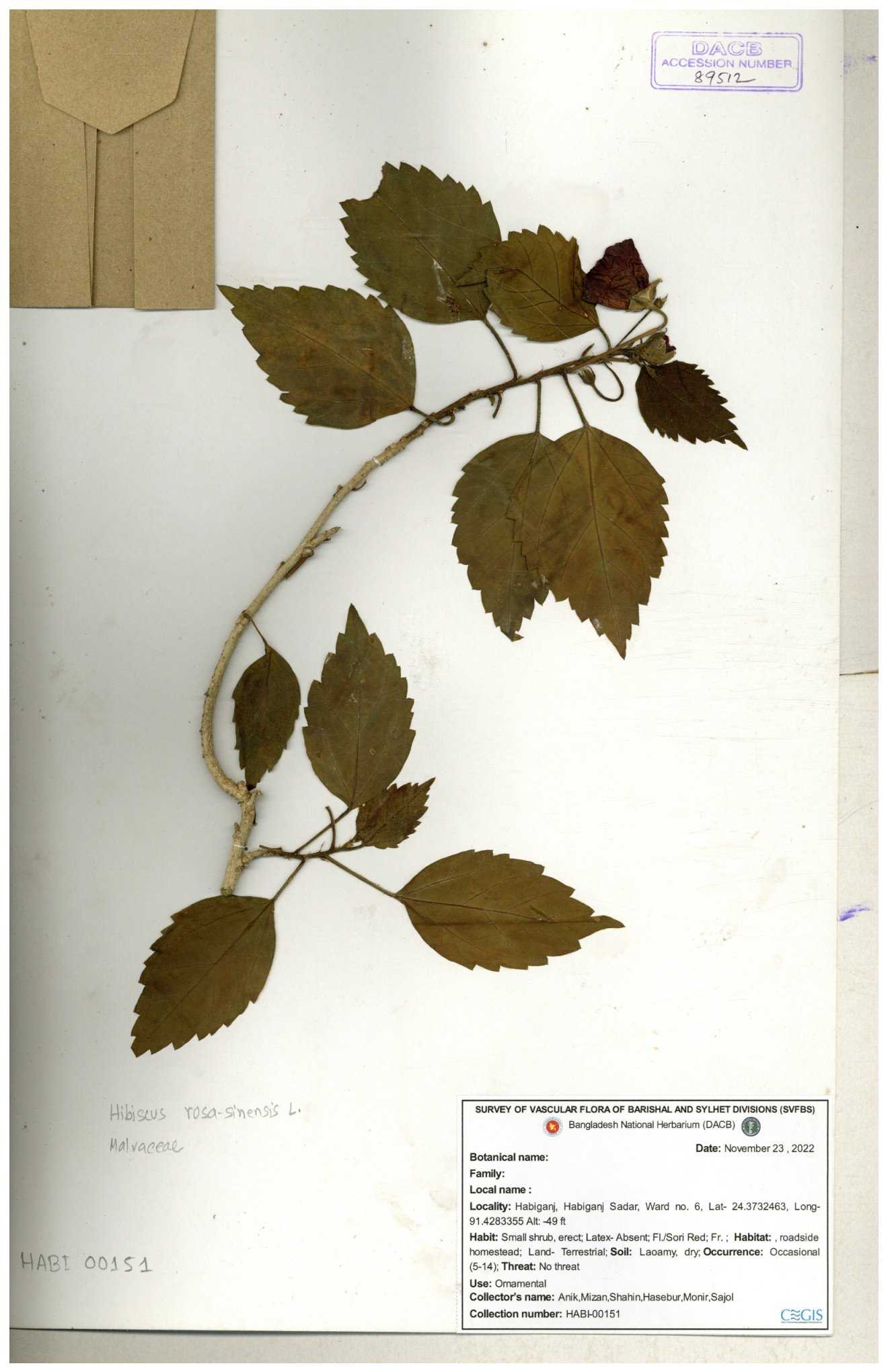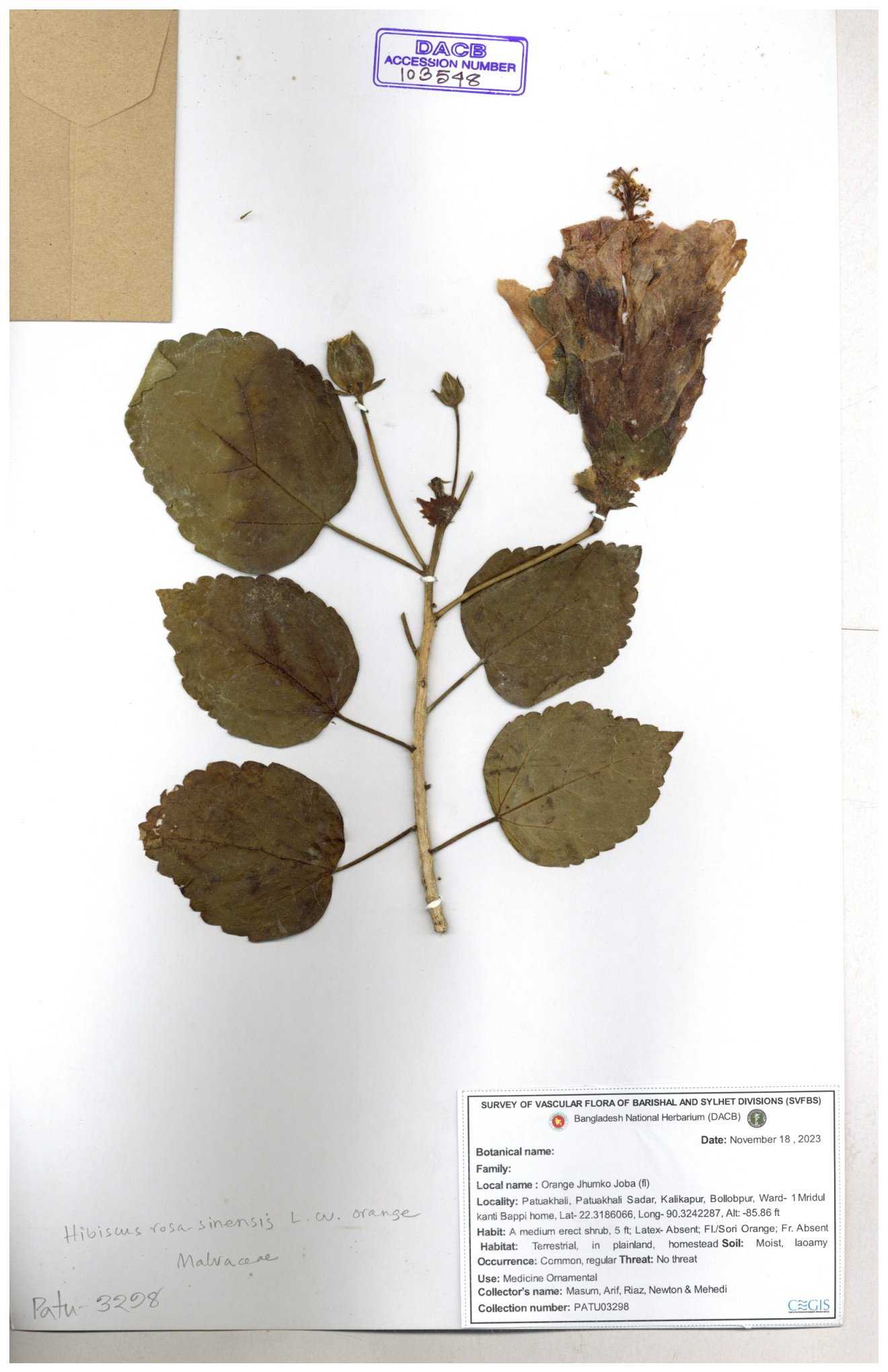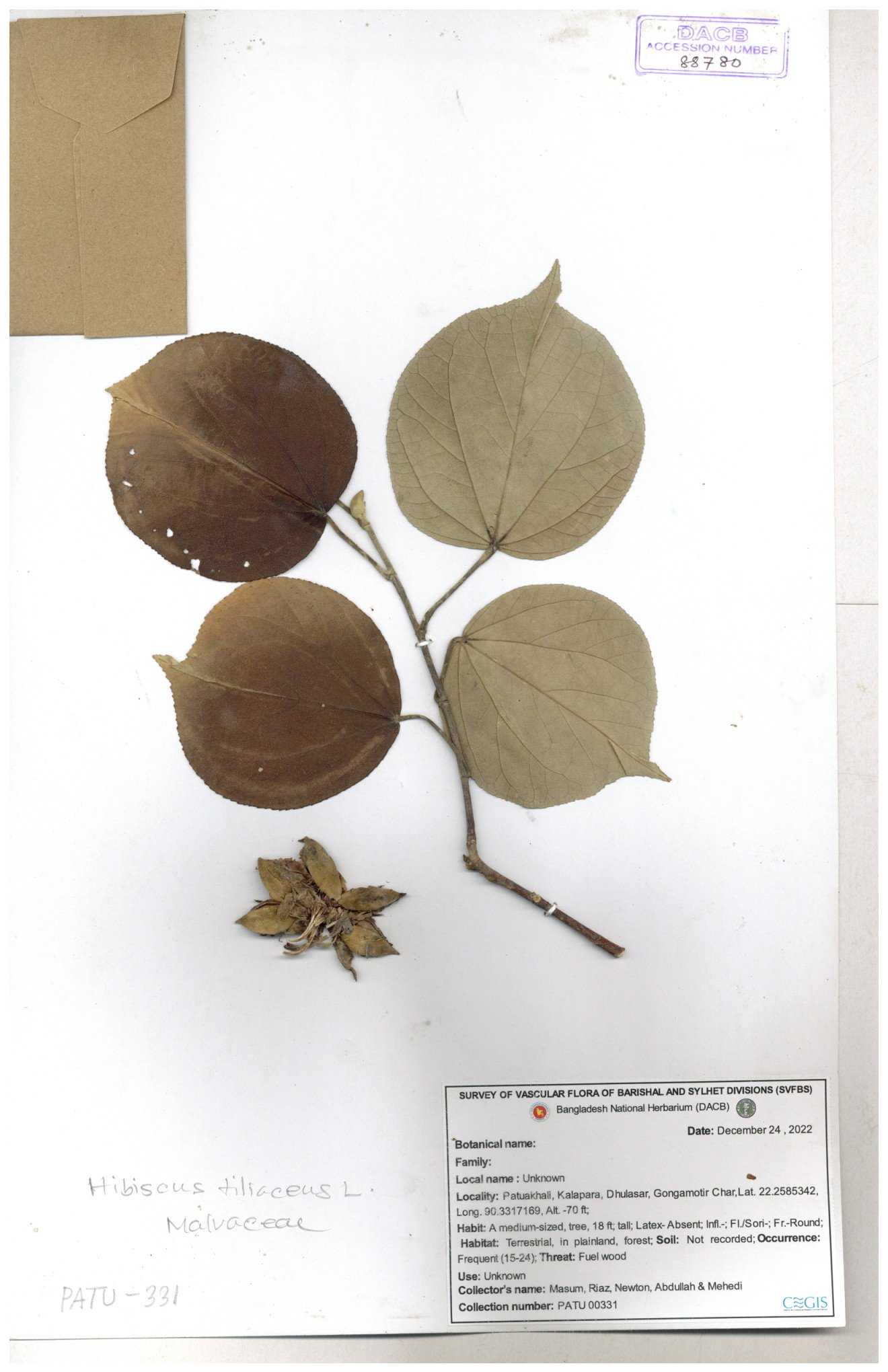 | 86394 | Malvaceae | Hibiscus tilliaceus (L.) | Dr. M. Sultana | DMS-4621 25-05-2022 |