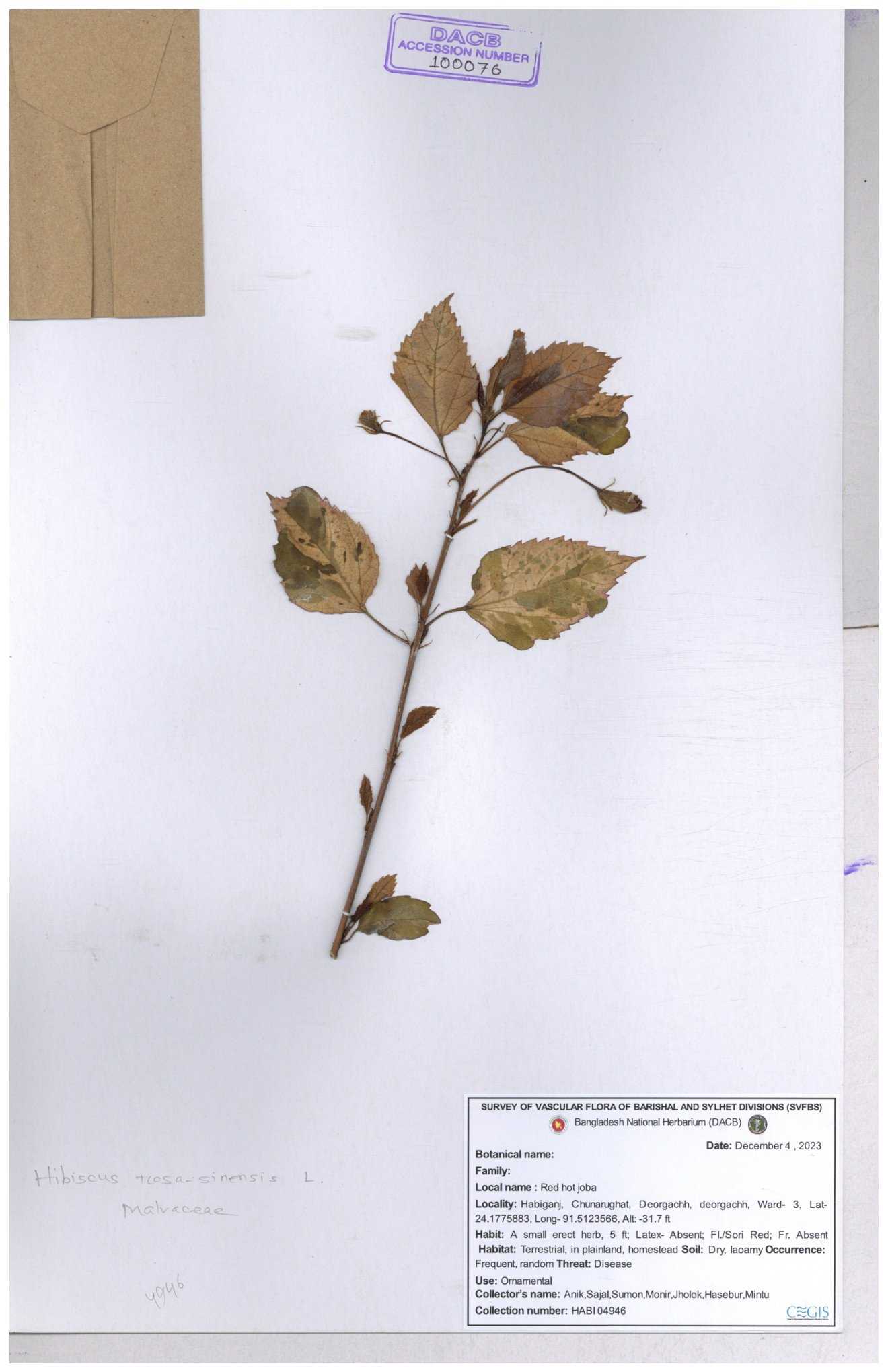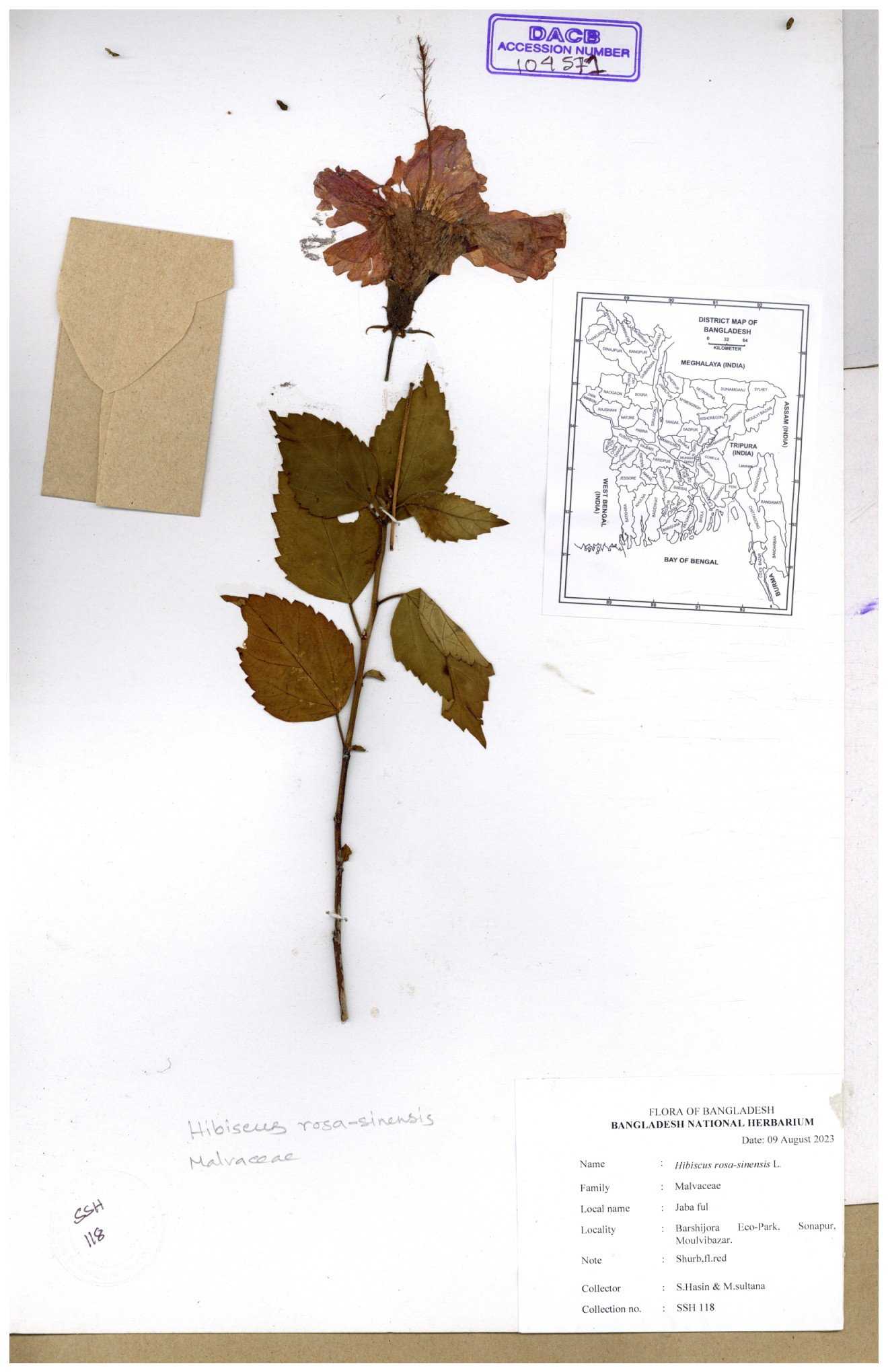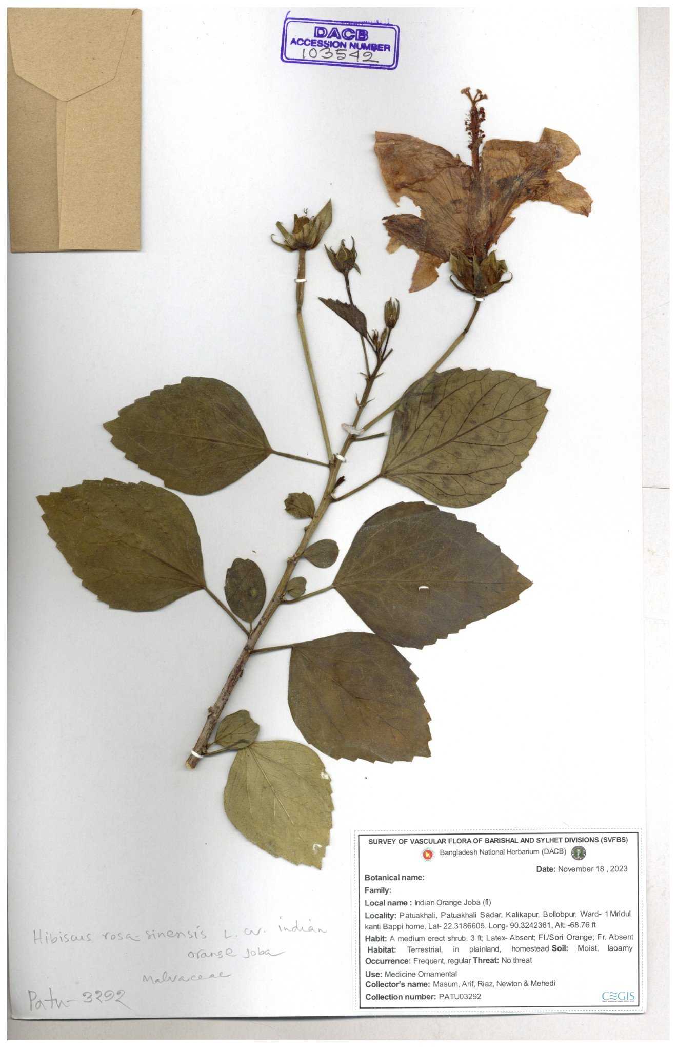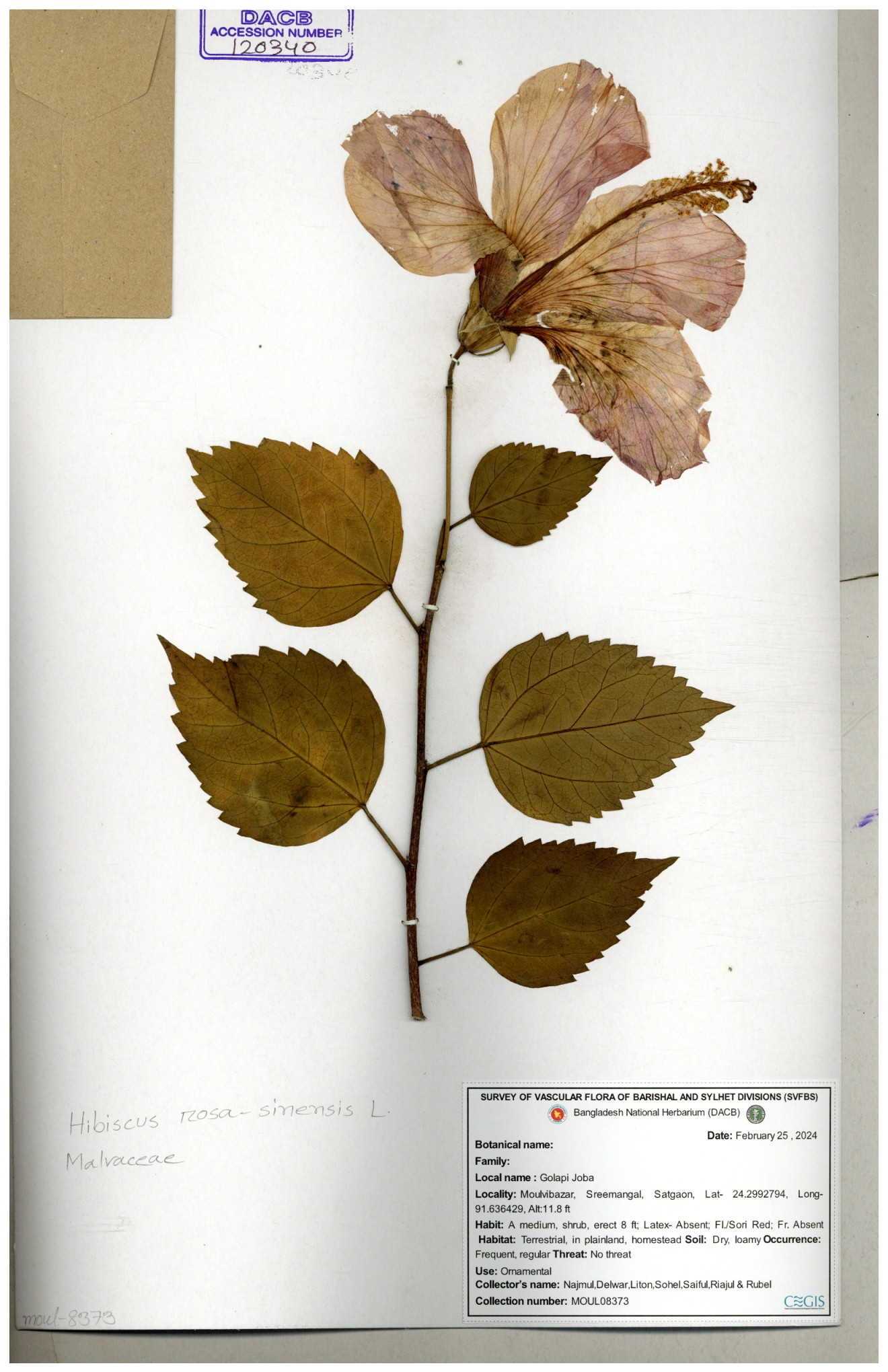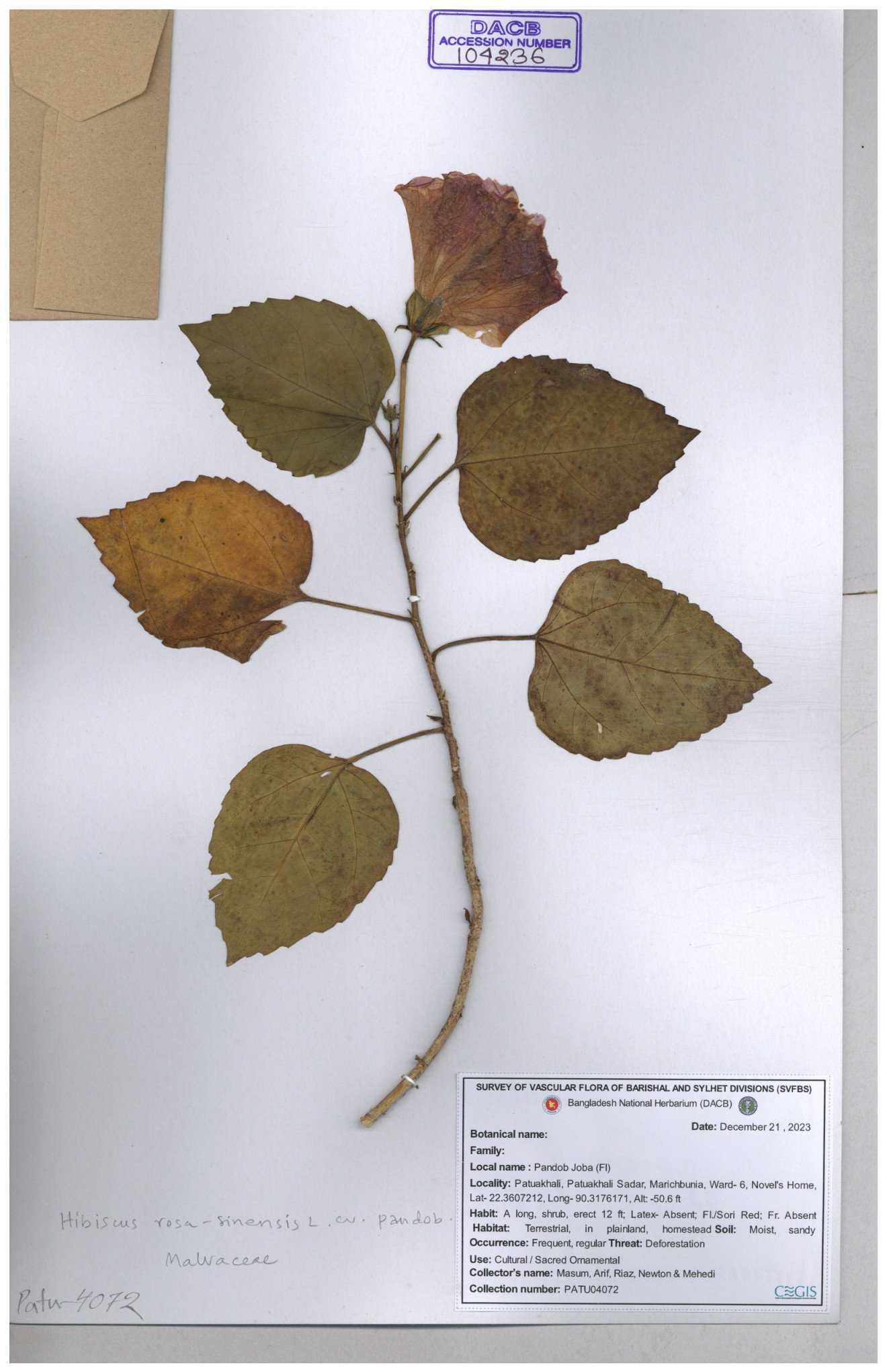 | 86394 | Malvaceae | Hibiscus tilliaceus (L.) | Dr. M. Sultana | DMS-4621 25-05-2022 |