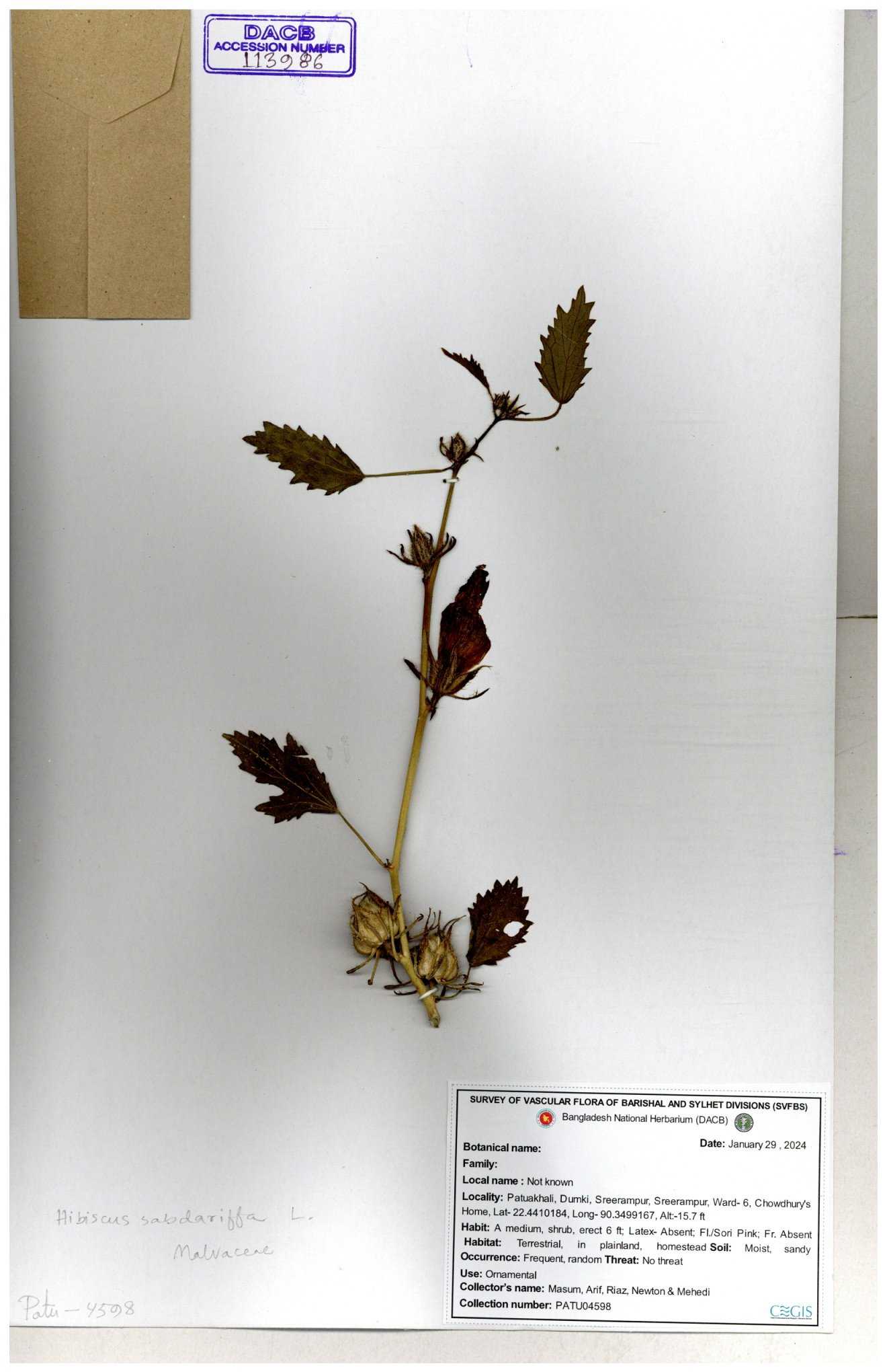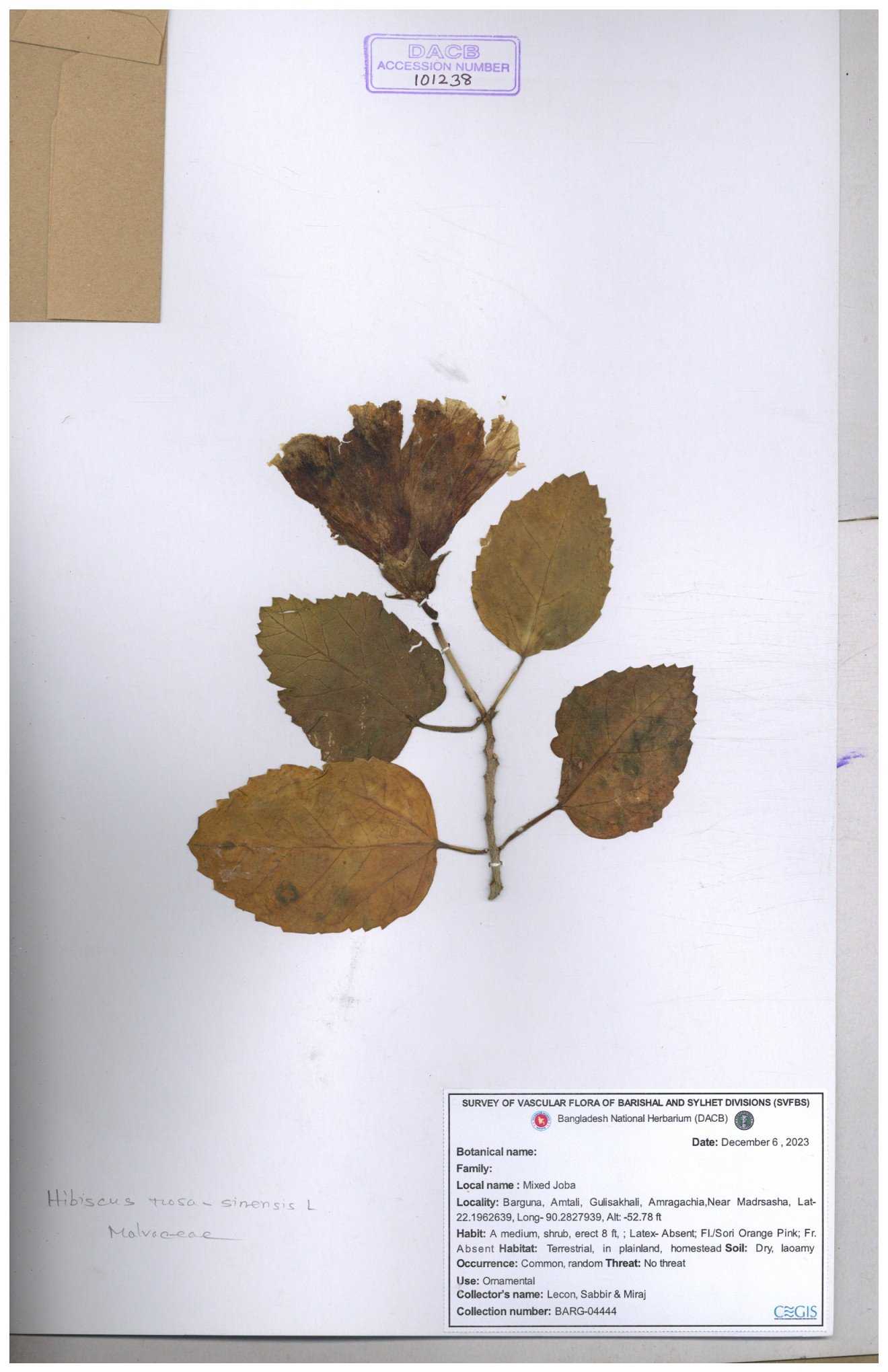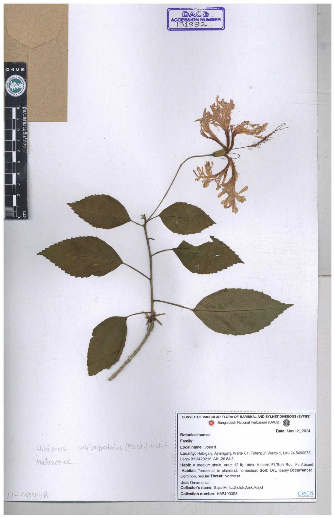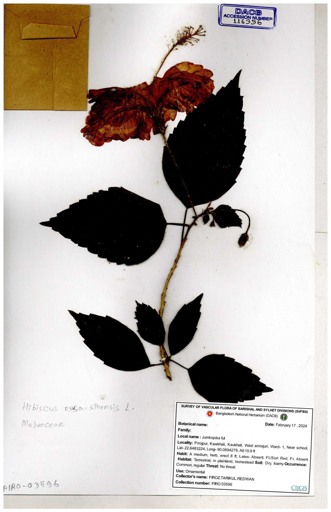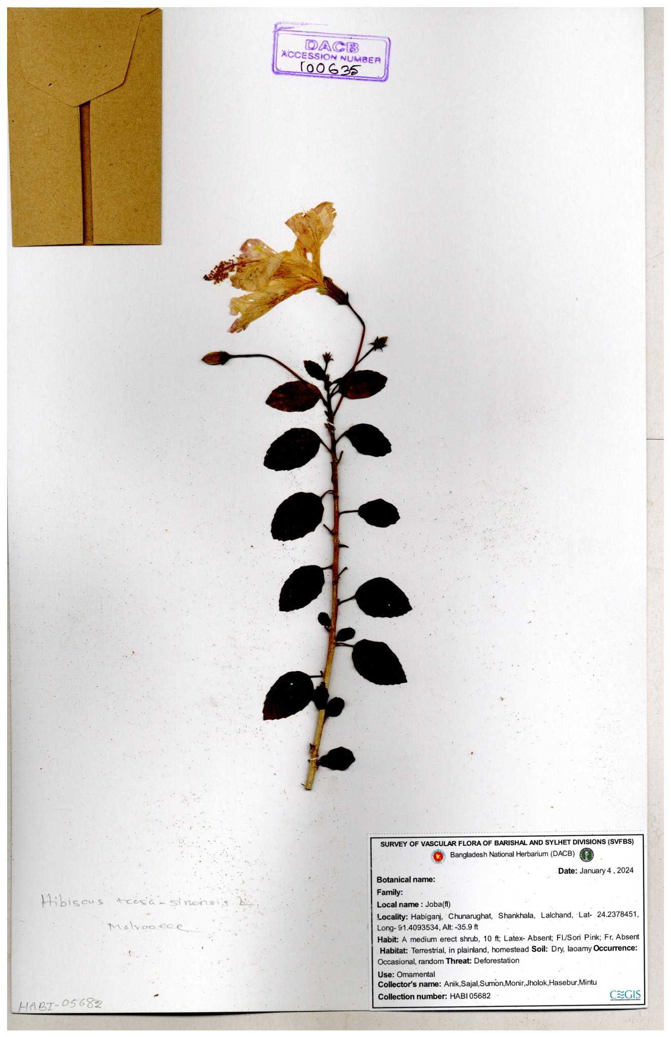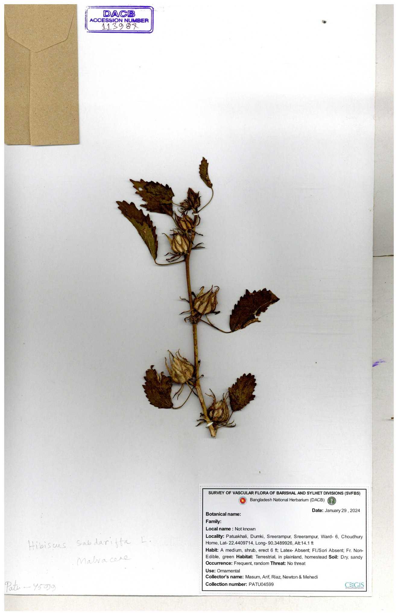 | 86394 | Malvaceae | Hibiscus tilliaceus (L.) | Dr. M. Sultana | DMS-4621 25-05-2022 |