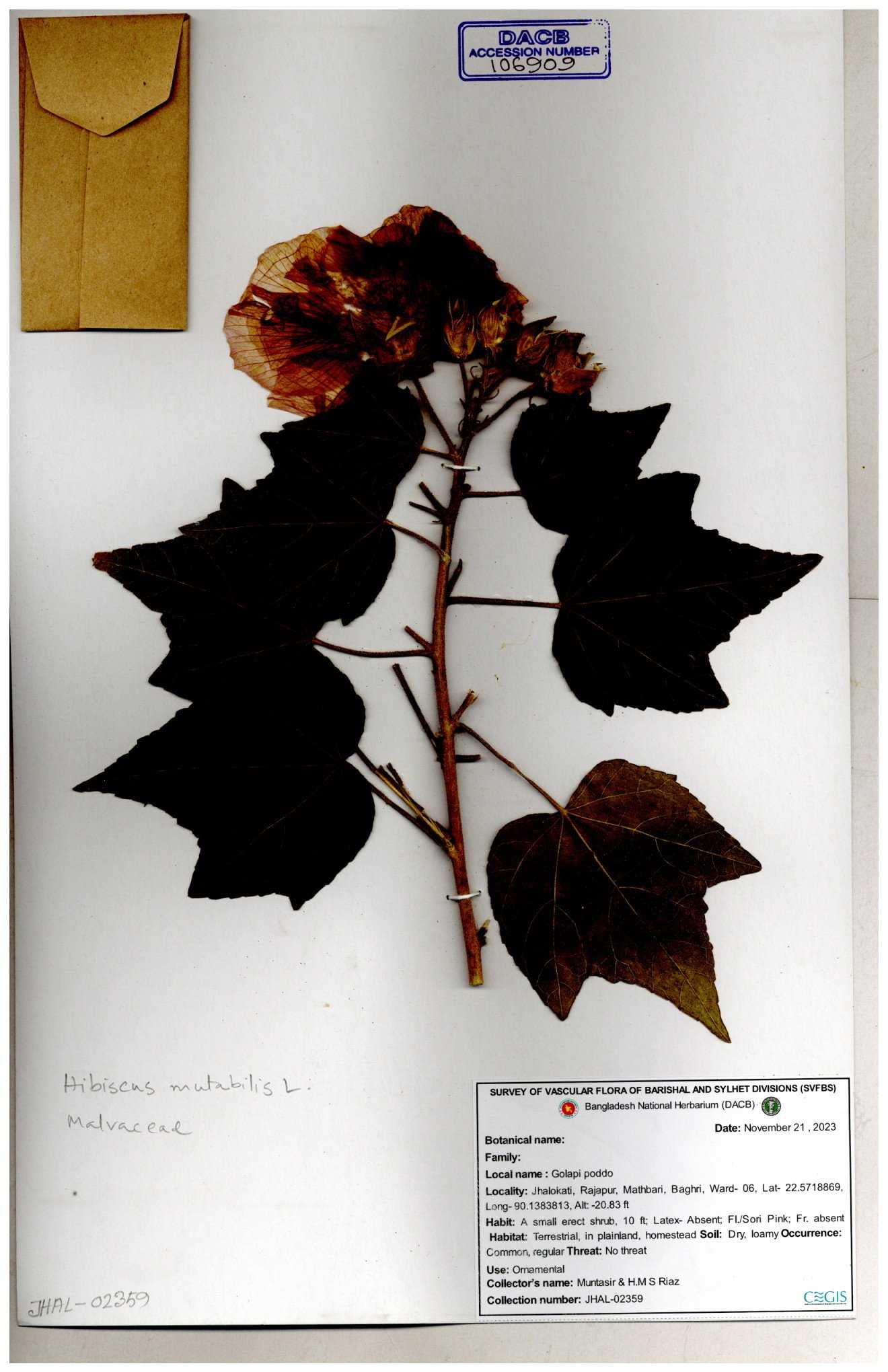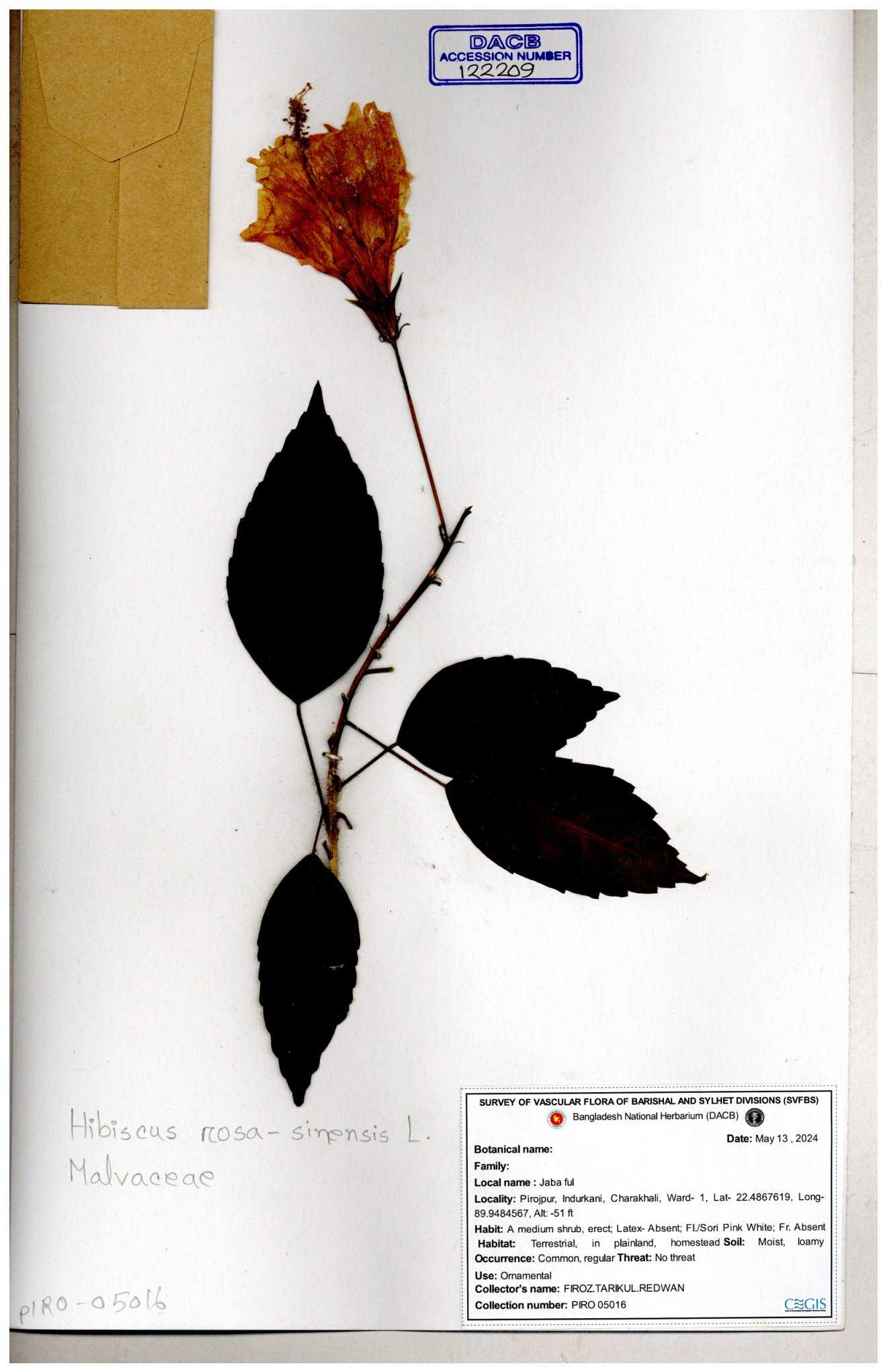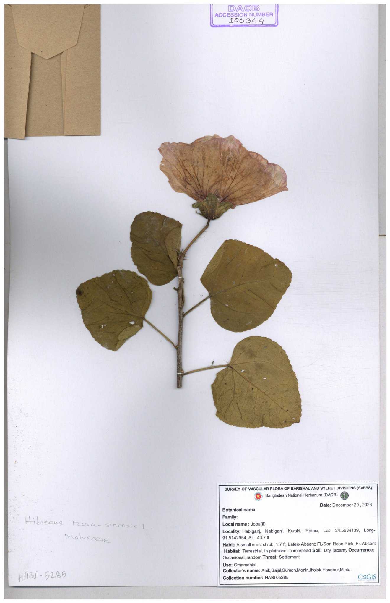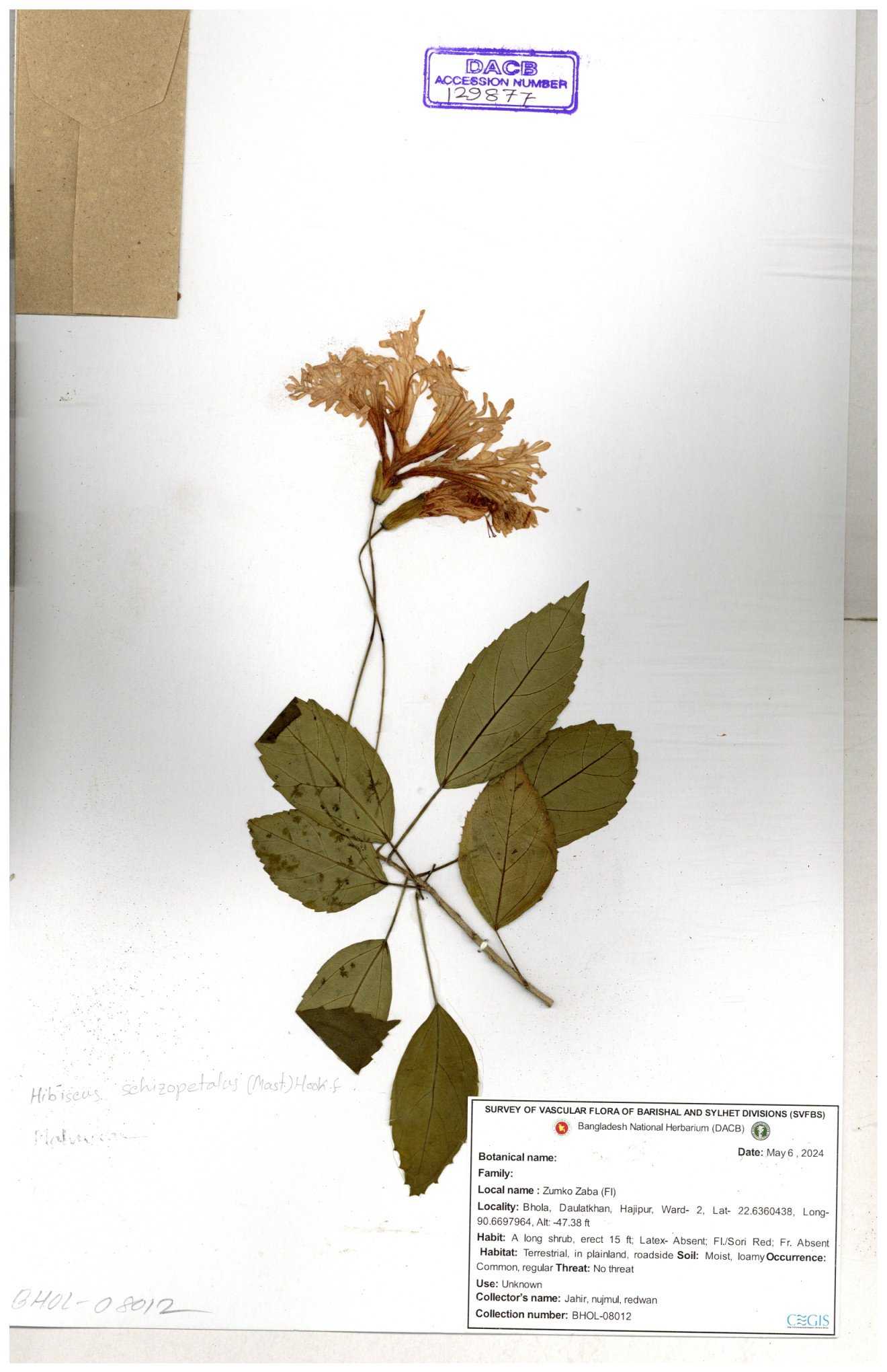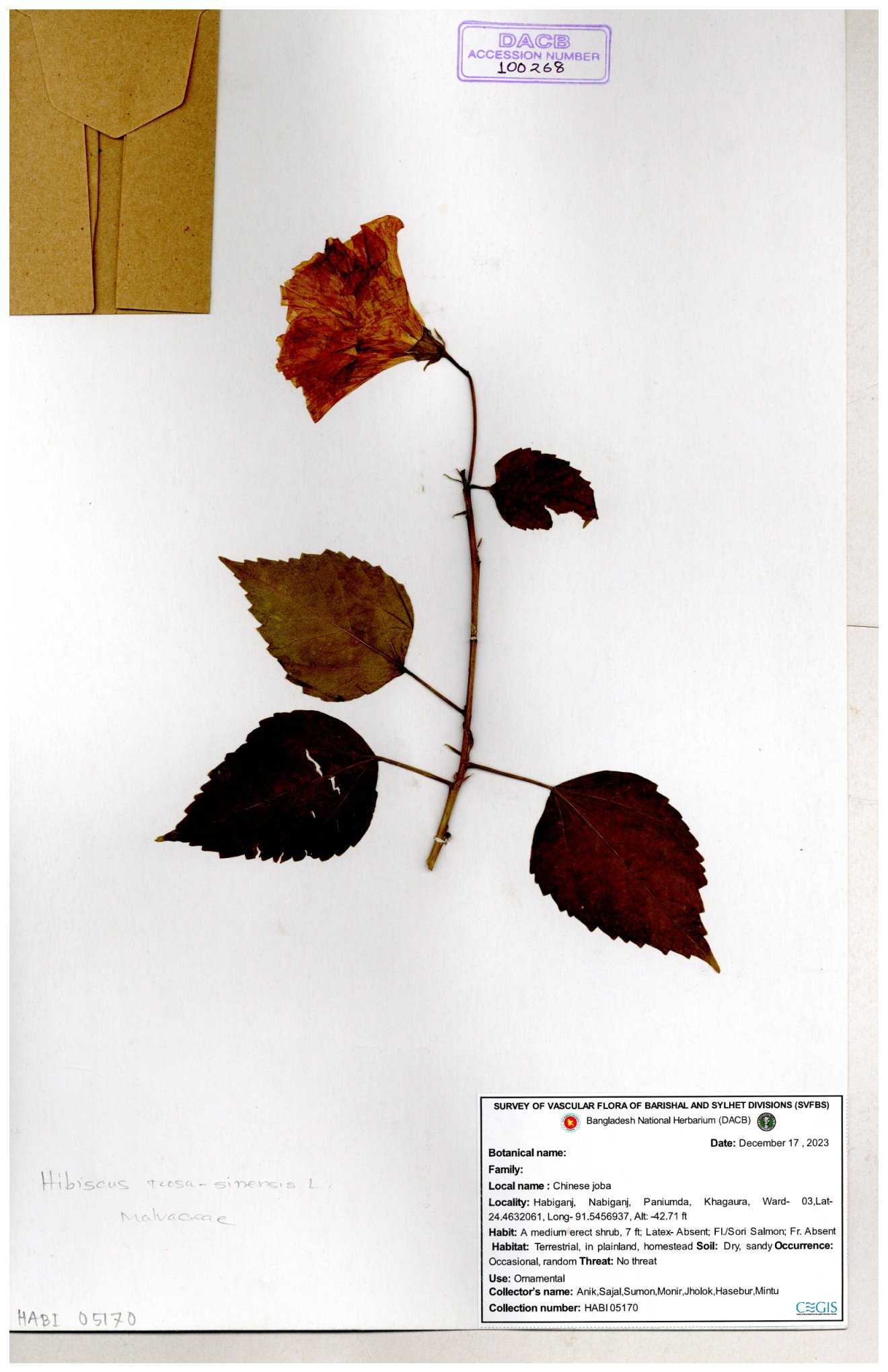| 86394 | Malvaceae | Hibiscus tilliaceus (L.) | Dr. M. Sultana | DMS-4621 25-05-2022 |