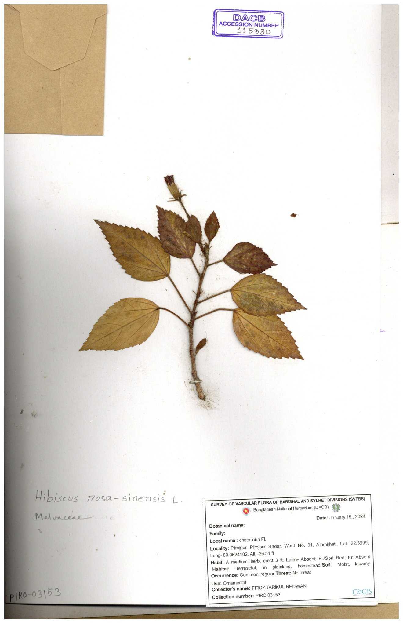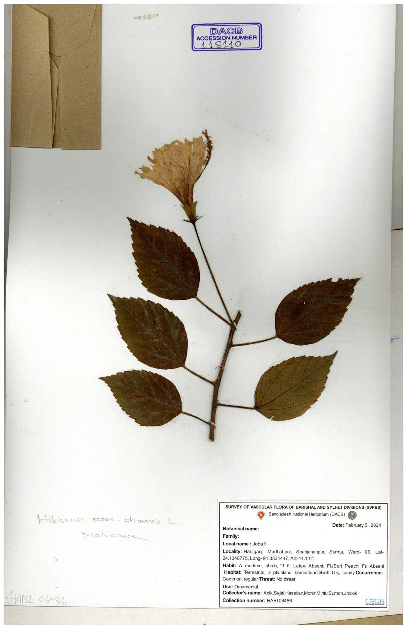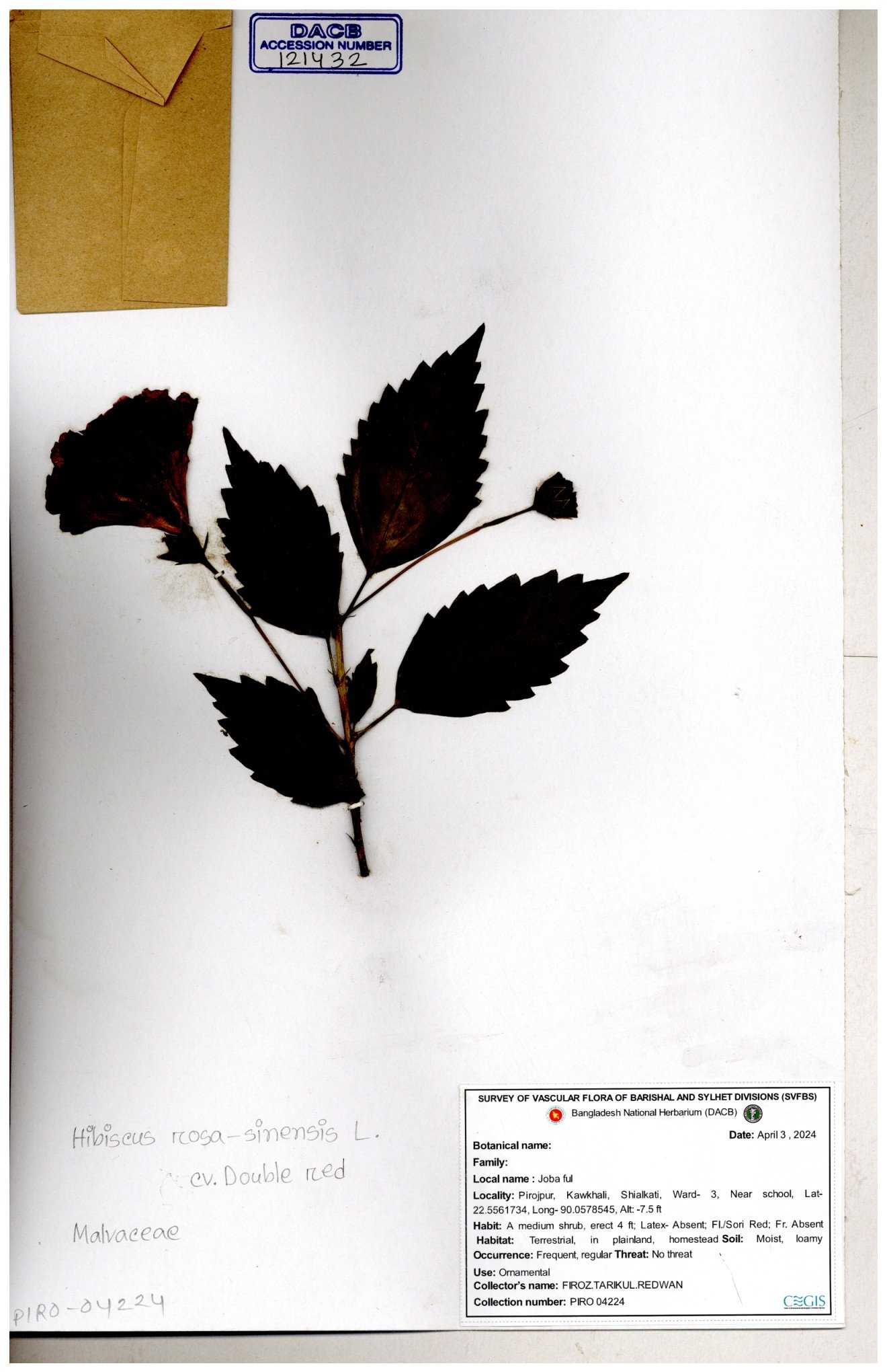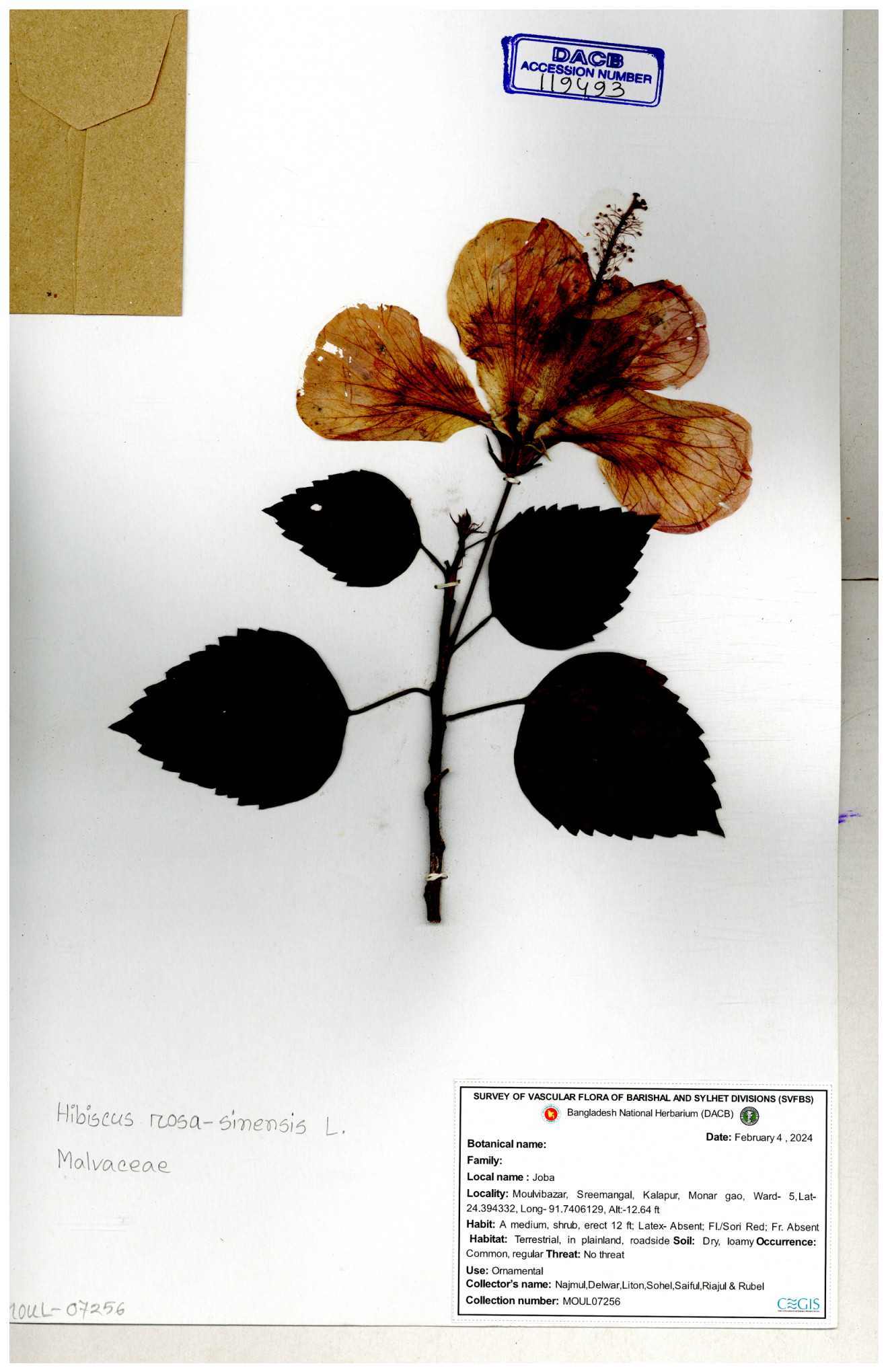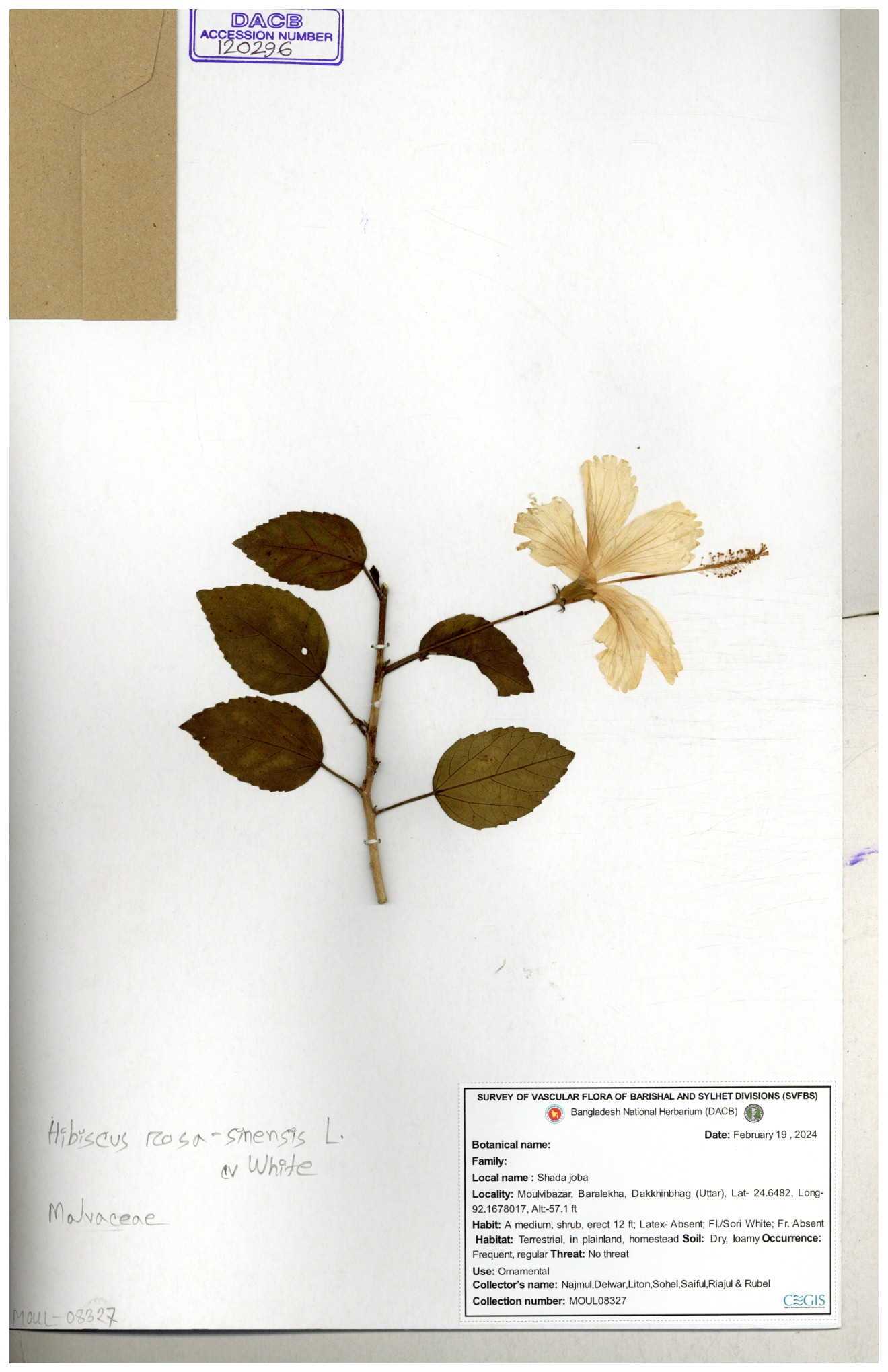 | 86394 | Malvaceae | Hibiscus tilliaceus (L.) | Dr. M. Sultana | DMS-4621 25-05-2022 |
