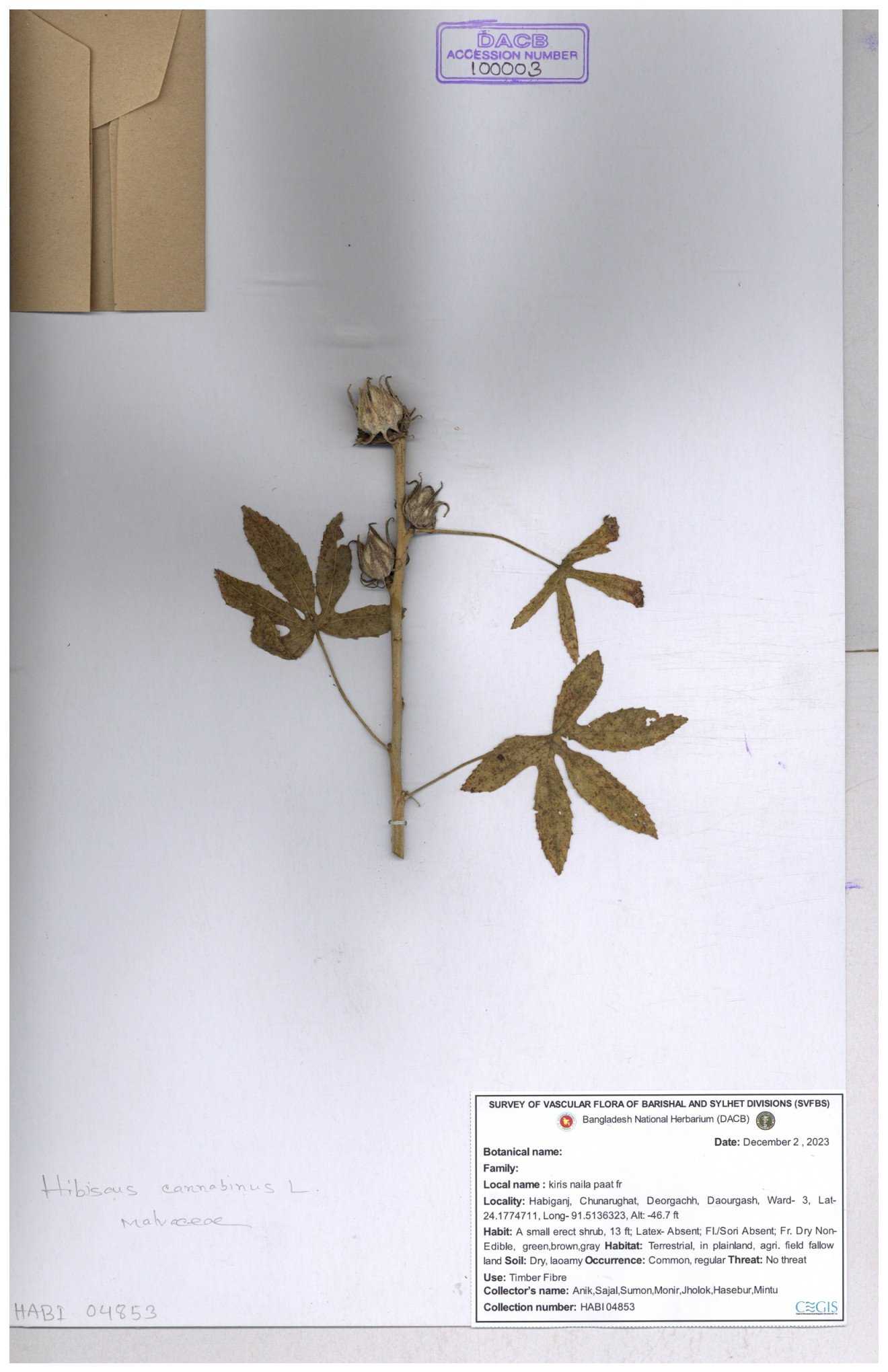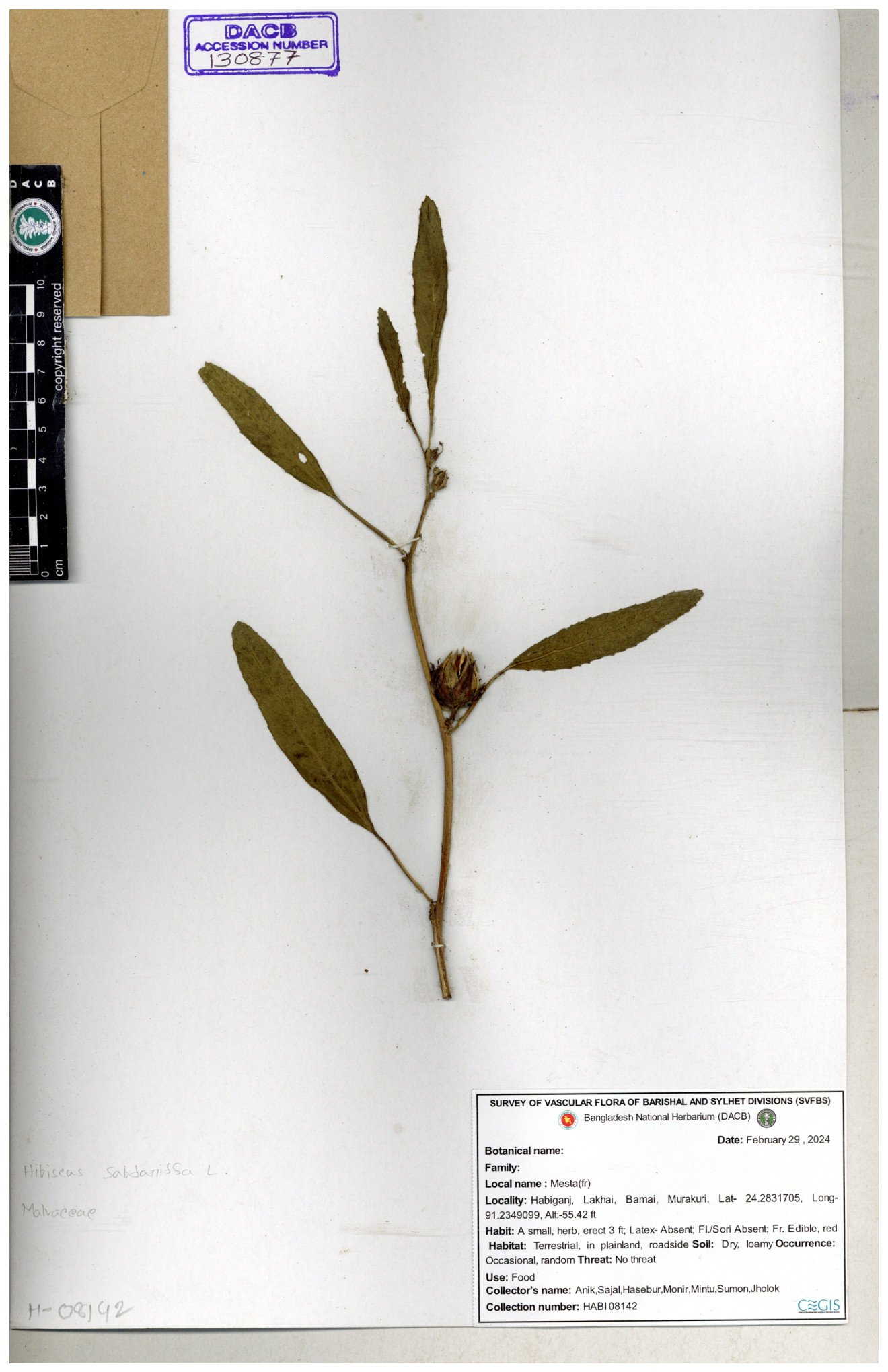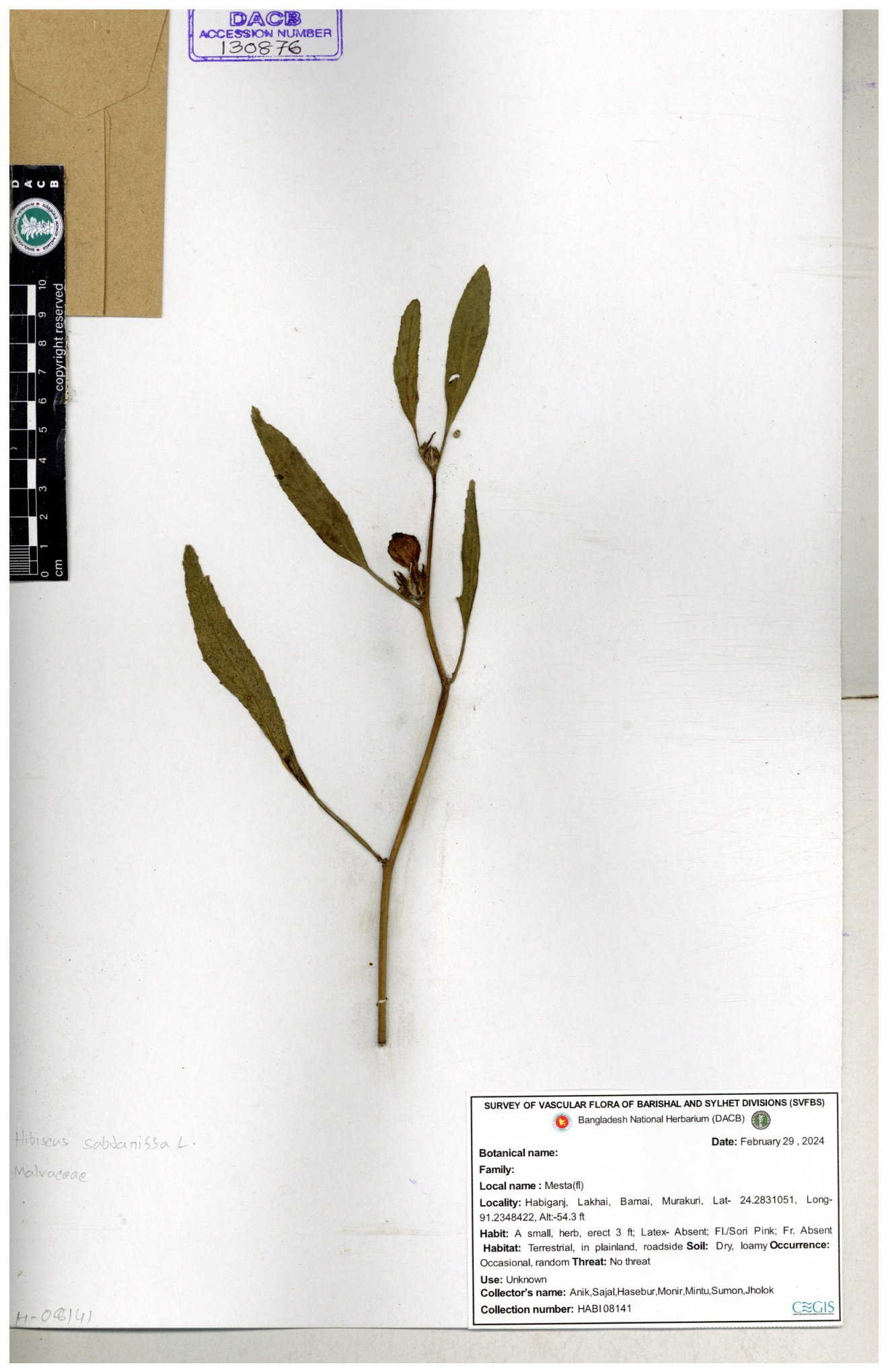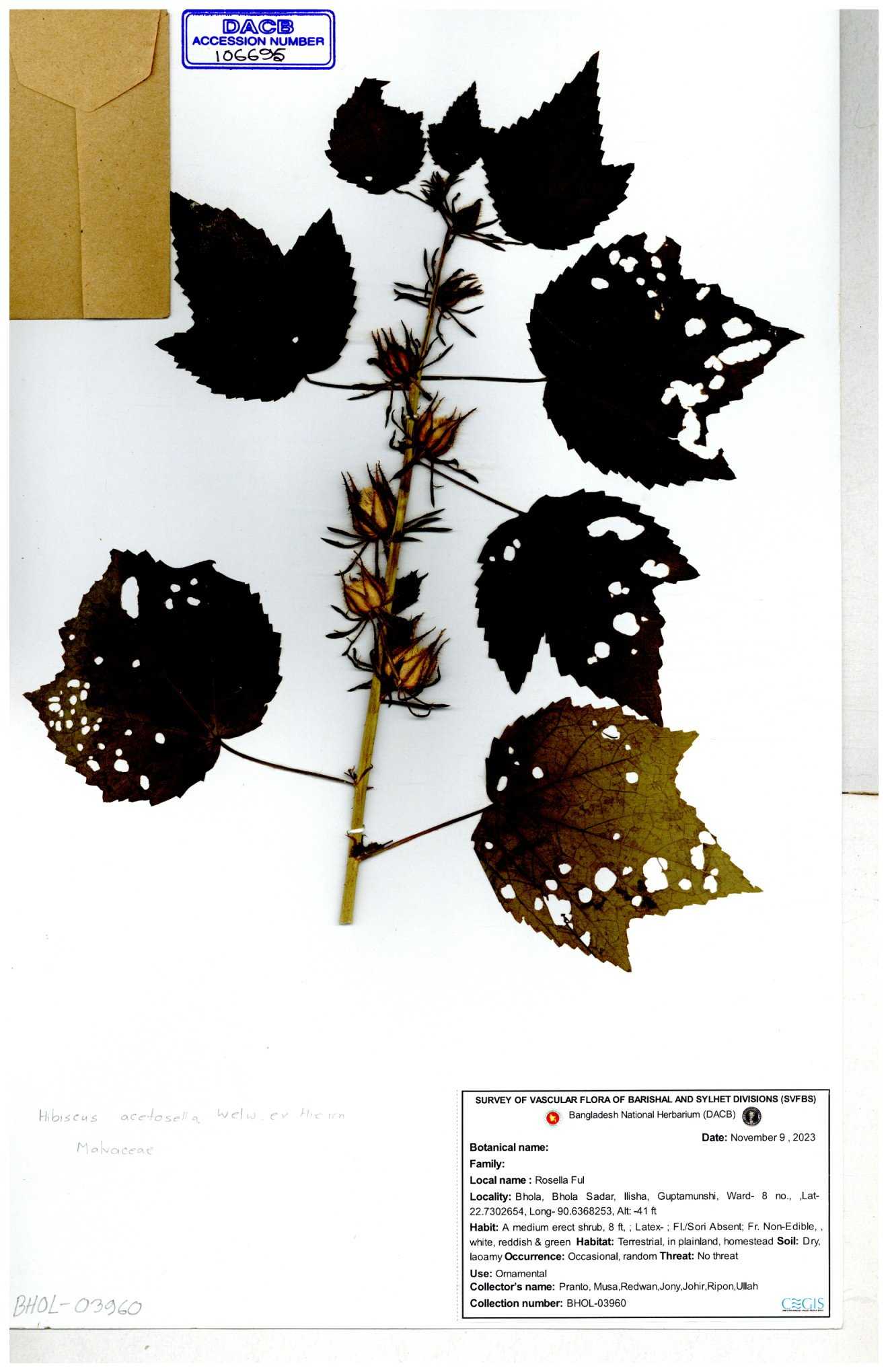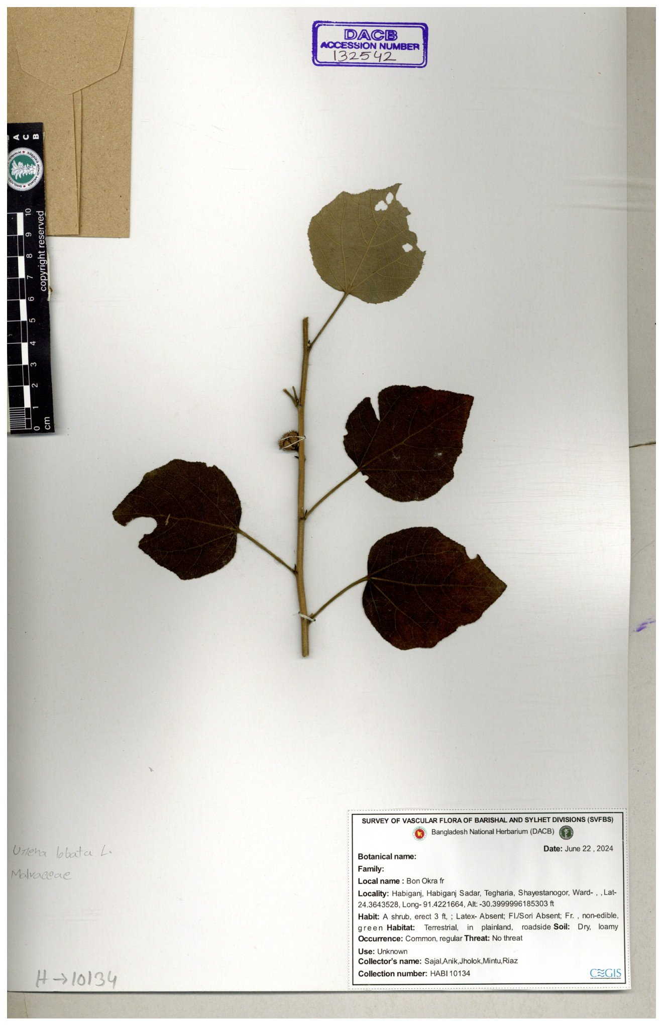 | 70337 | Malvaceae | Abelmoschus moschatus Medik. | I Hossen, MS Islam, MKR Rahman & MR Miah | IH- 3184 12-01-2017 |