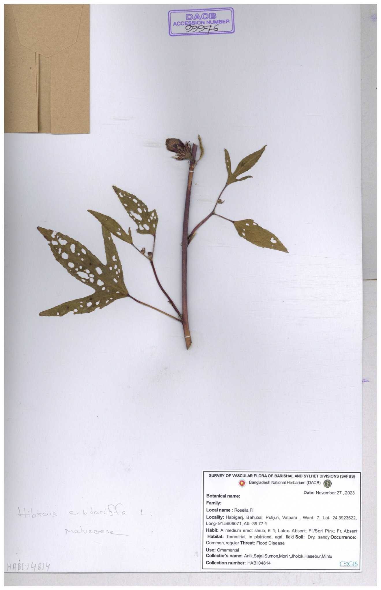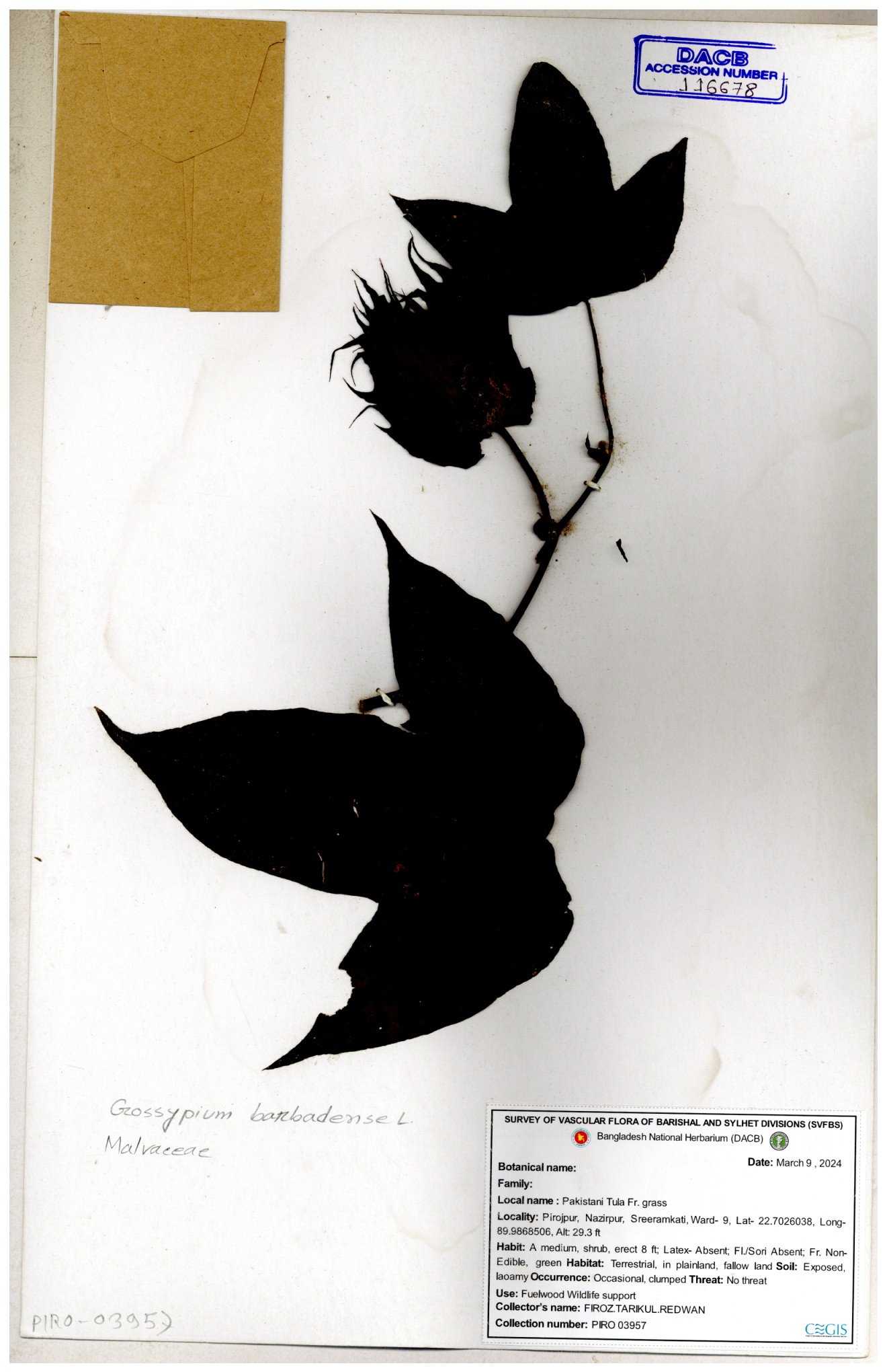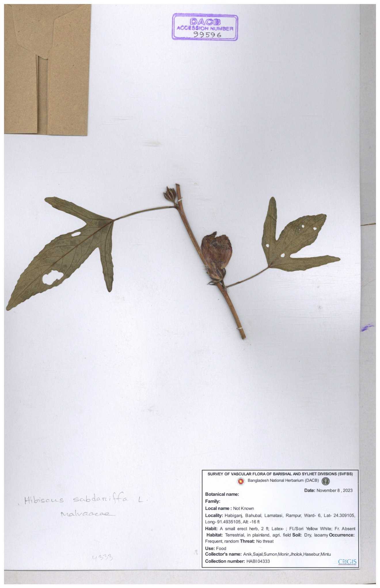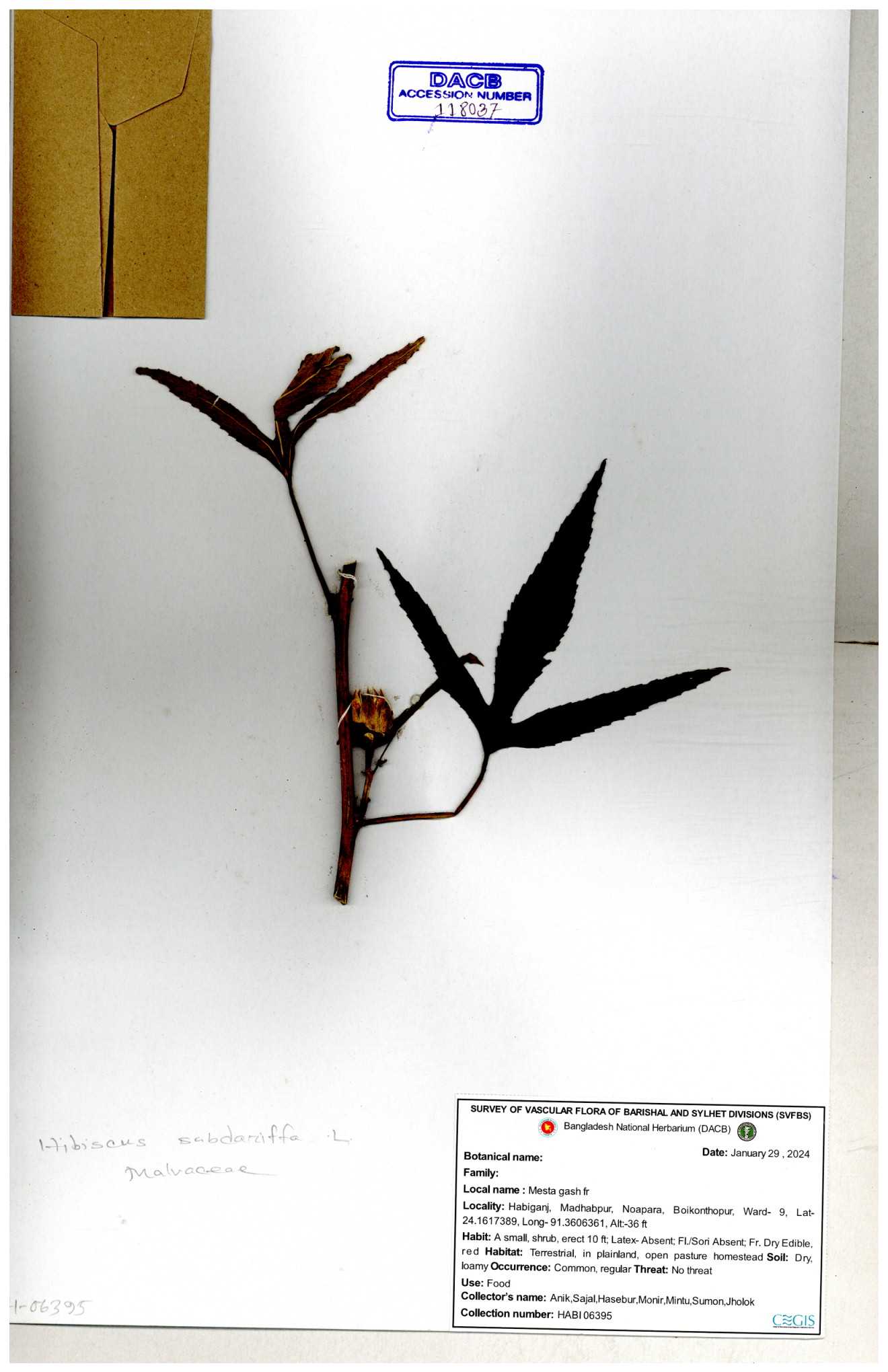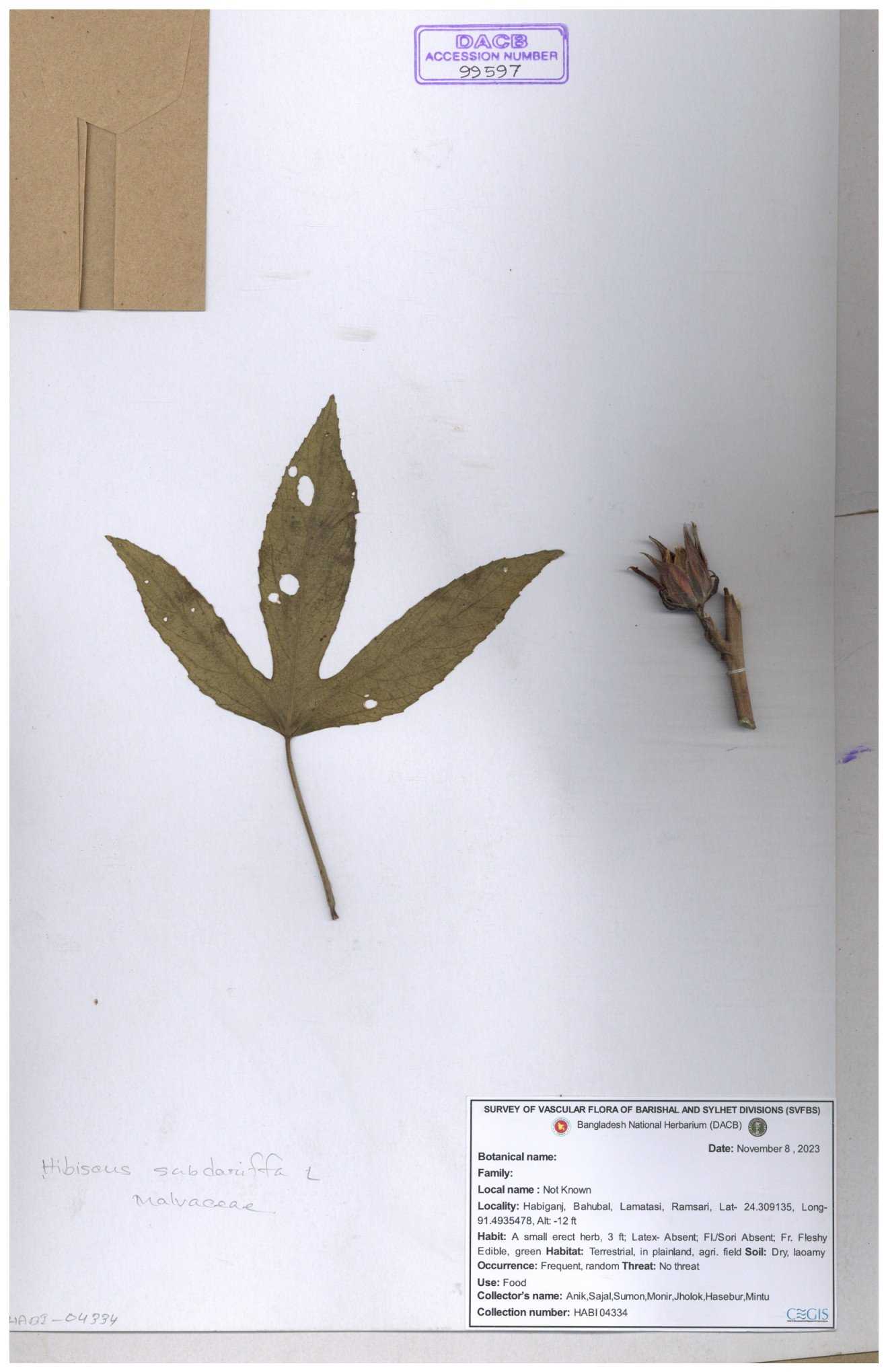 | 70337 | Malvaceae | Abelmoschus moschatus Medik. | I Hossen, MS Islam, MKR Rahman & MR Miah | IH- 3184 12-01-2017 |