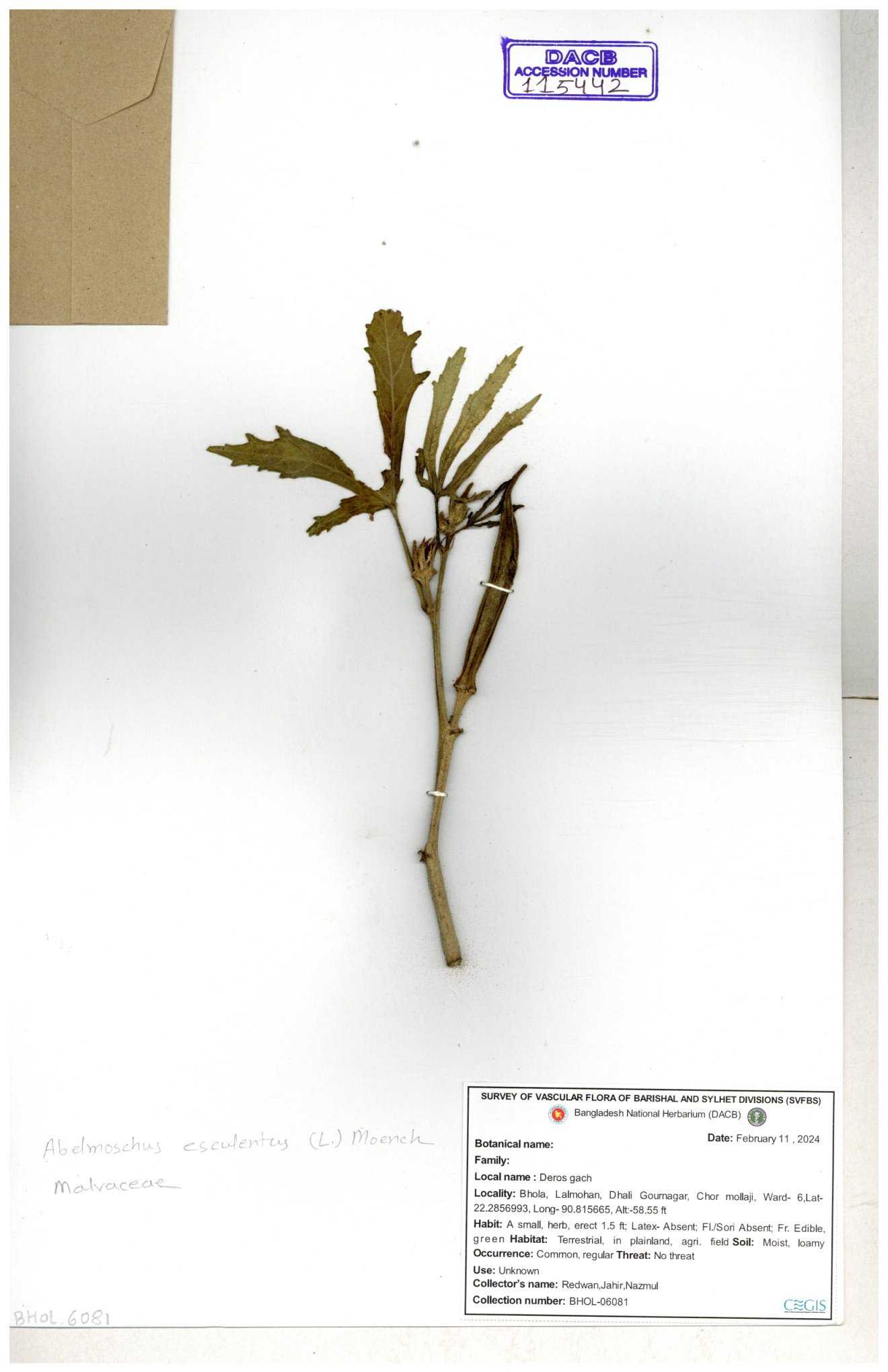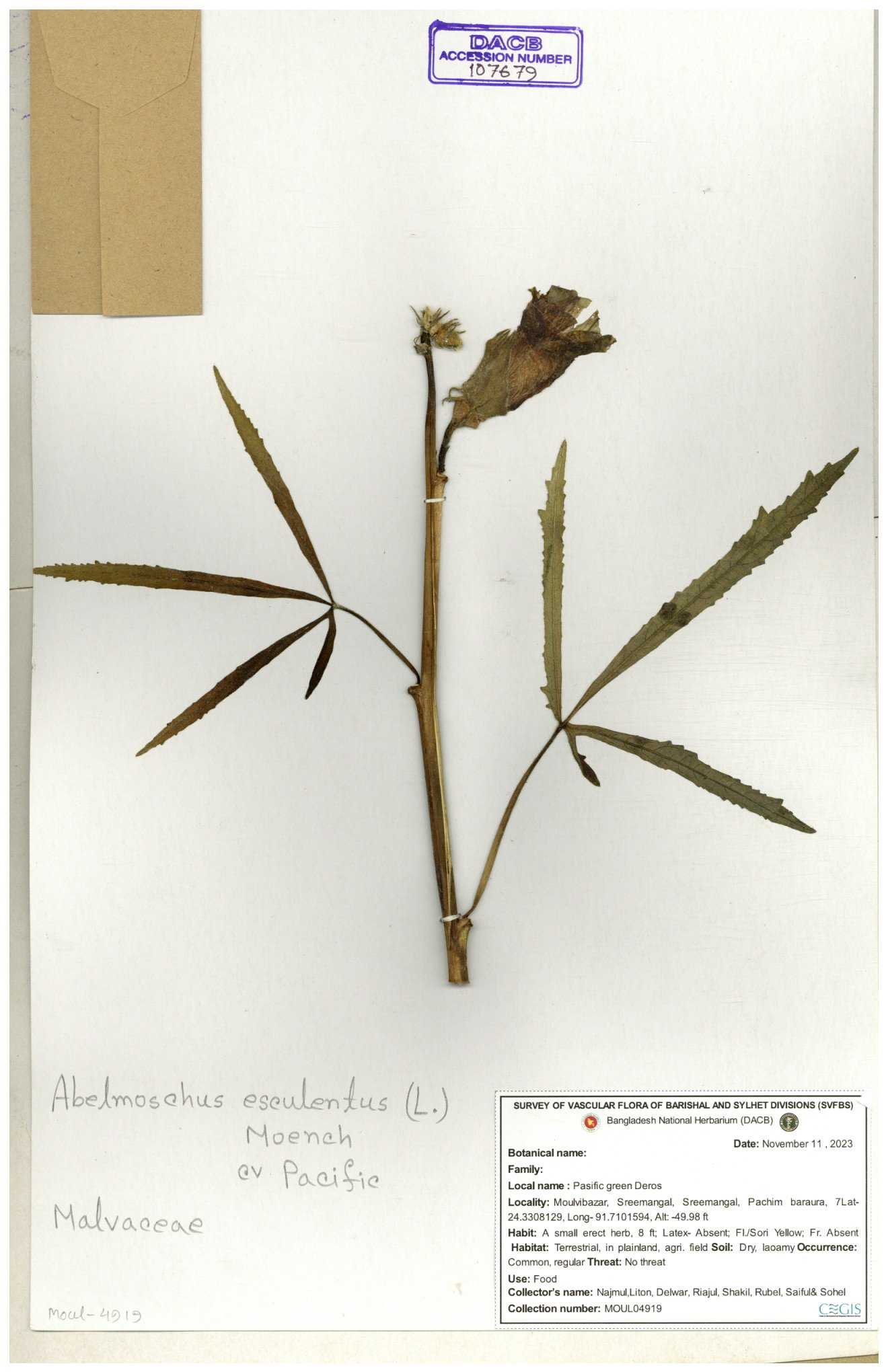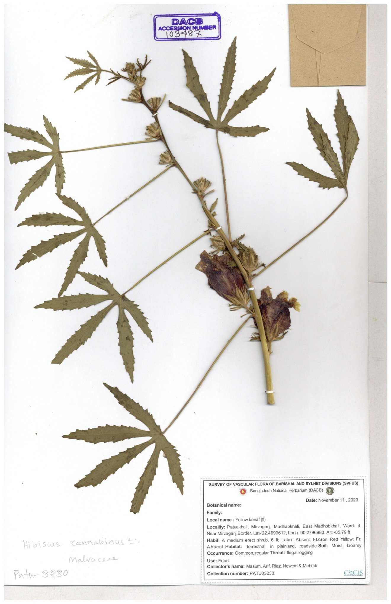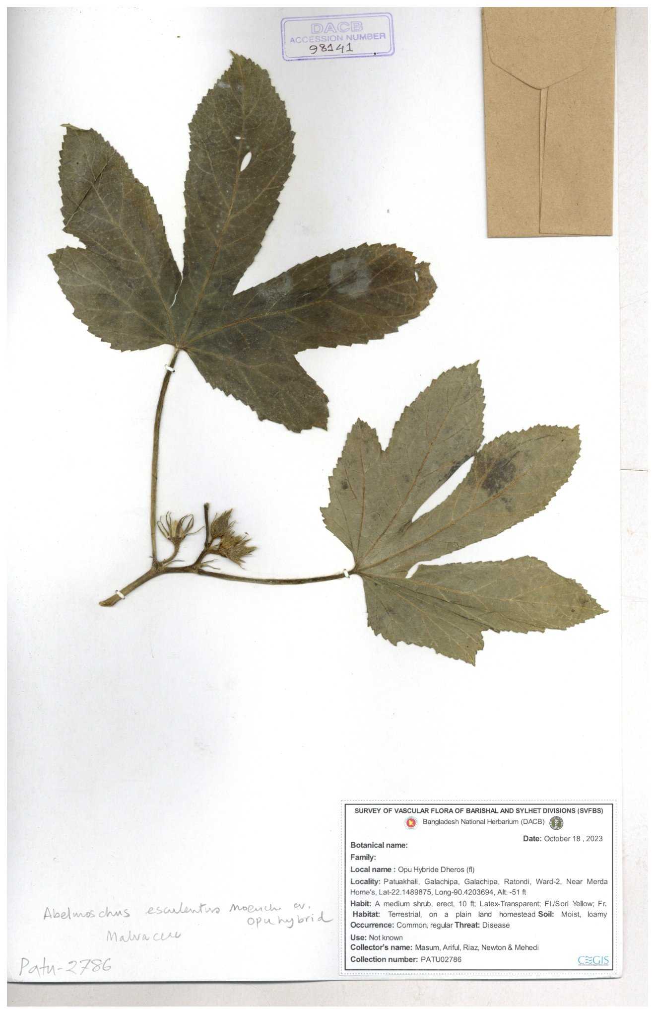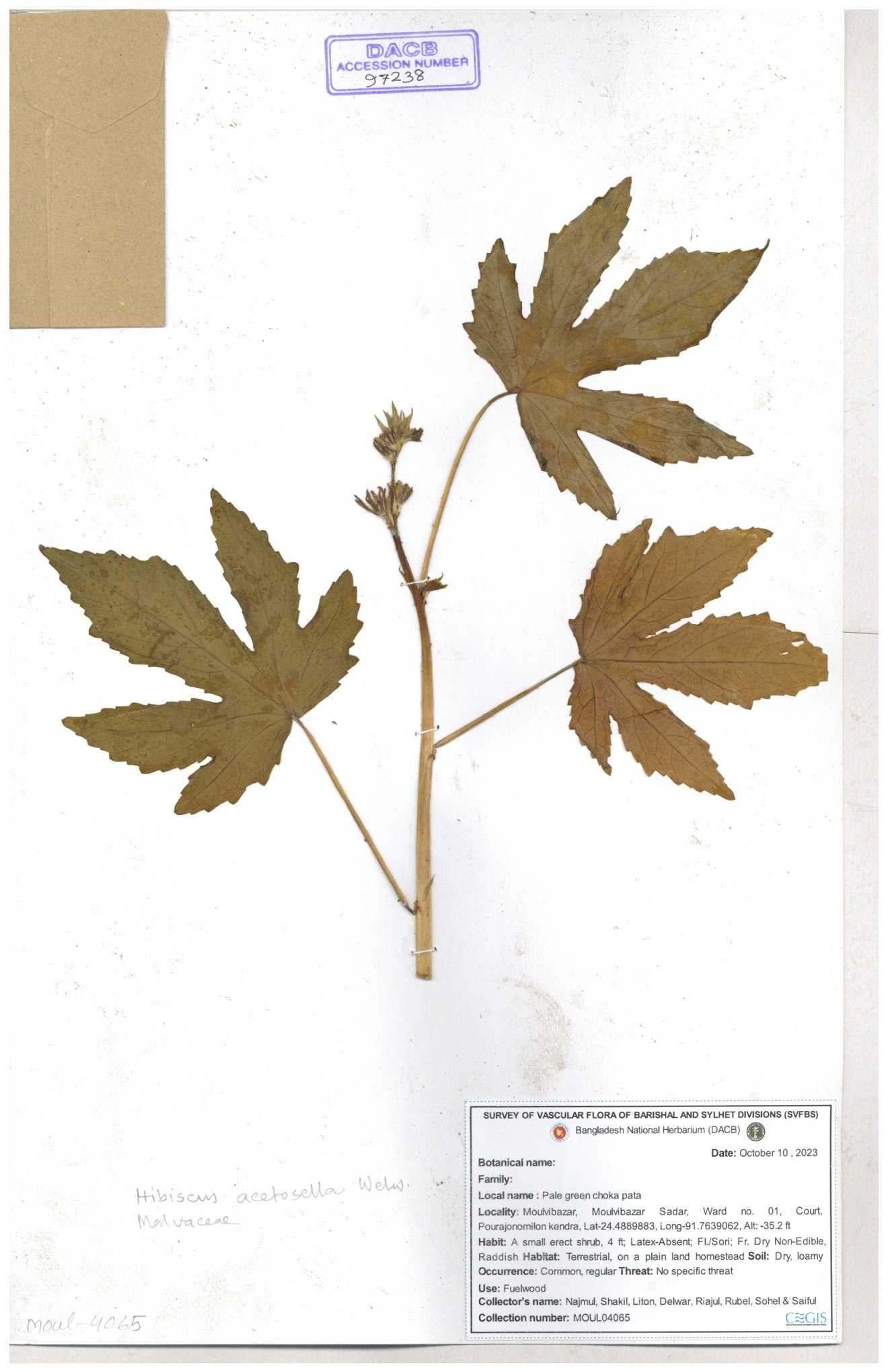 | 54204 | Malvaceae | Abelmoschus moschatus Medik. | Ban-Dheras | Md. Moniruzzaman, Al-Amin & Kawsar | MAK- 7136 10-01-2018 |