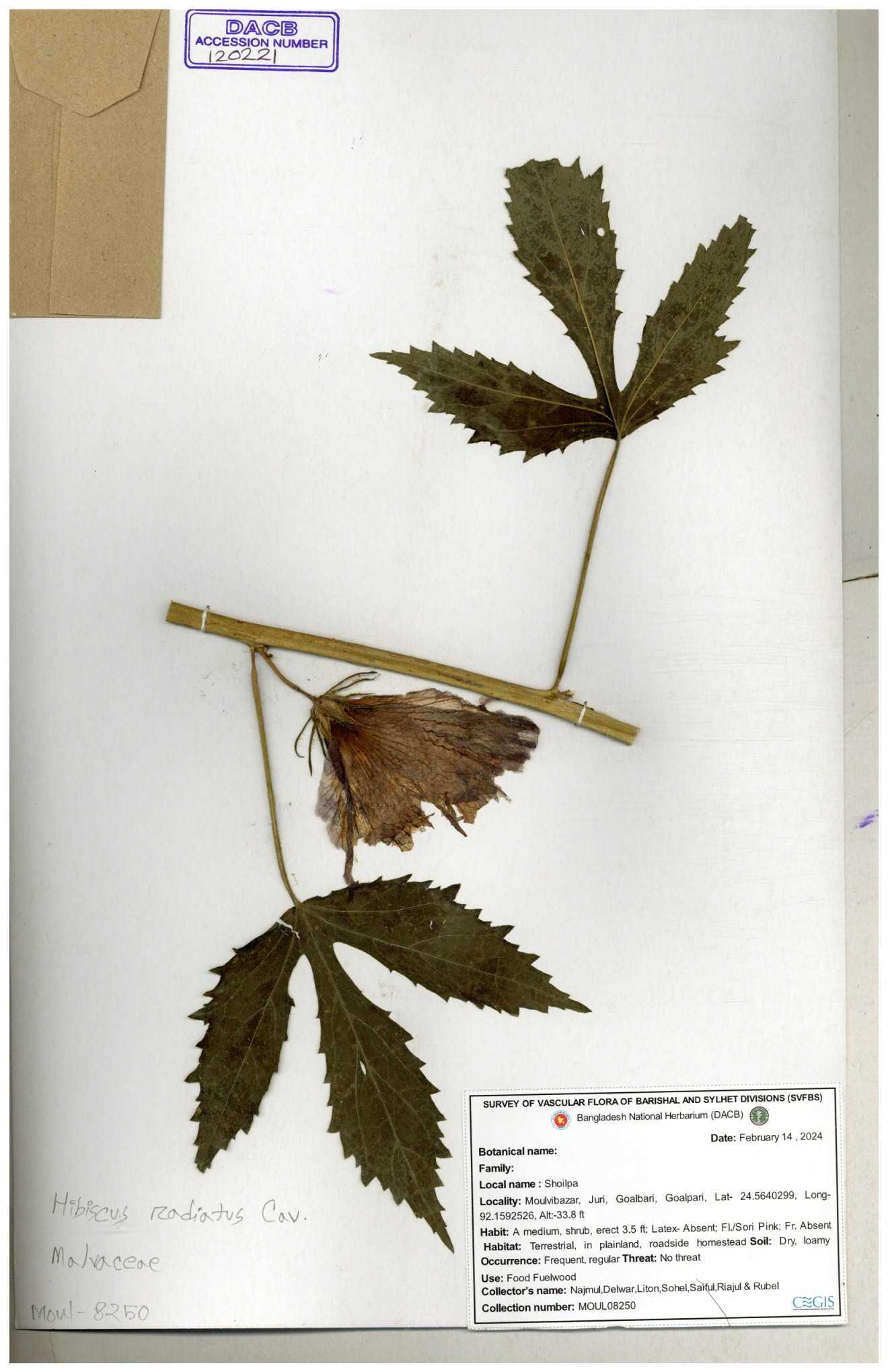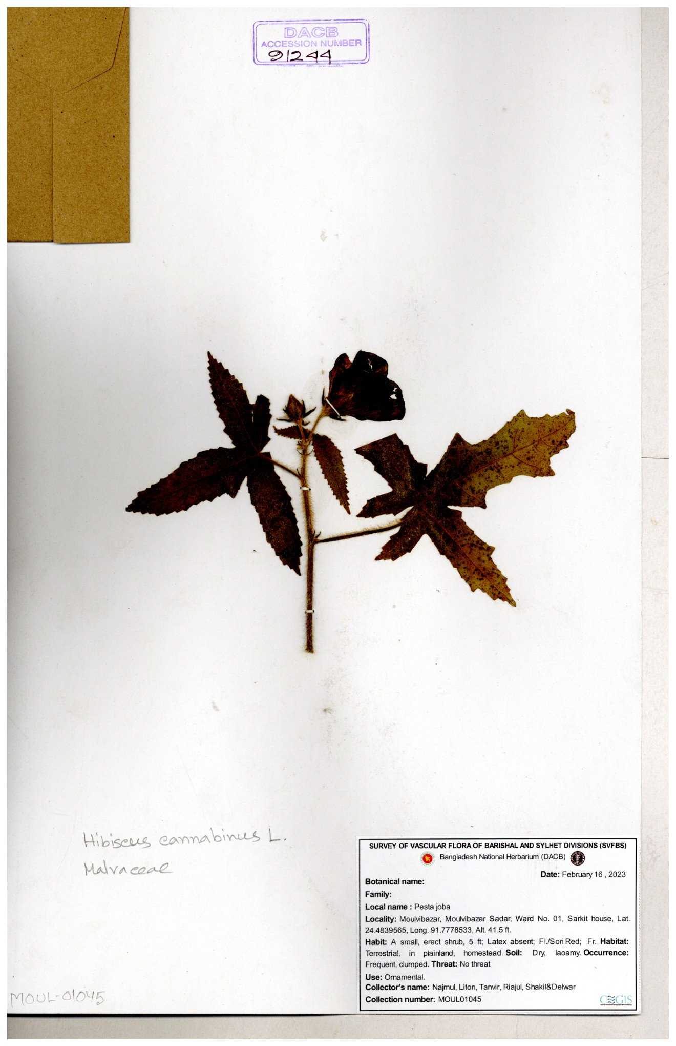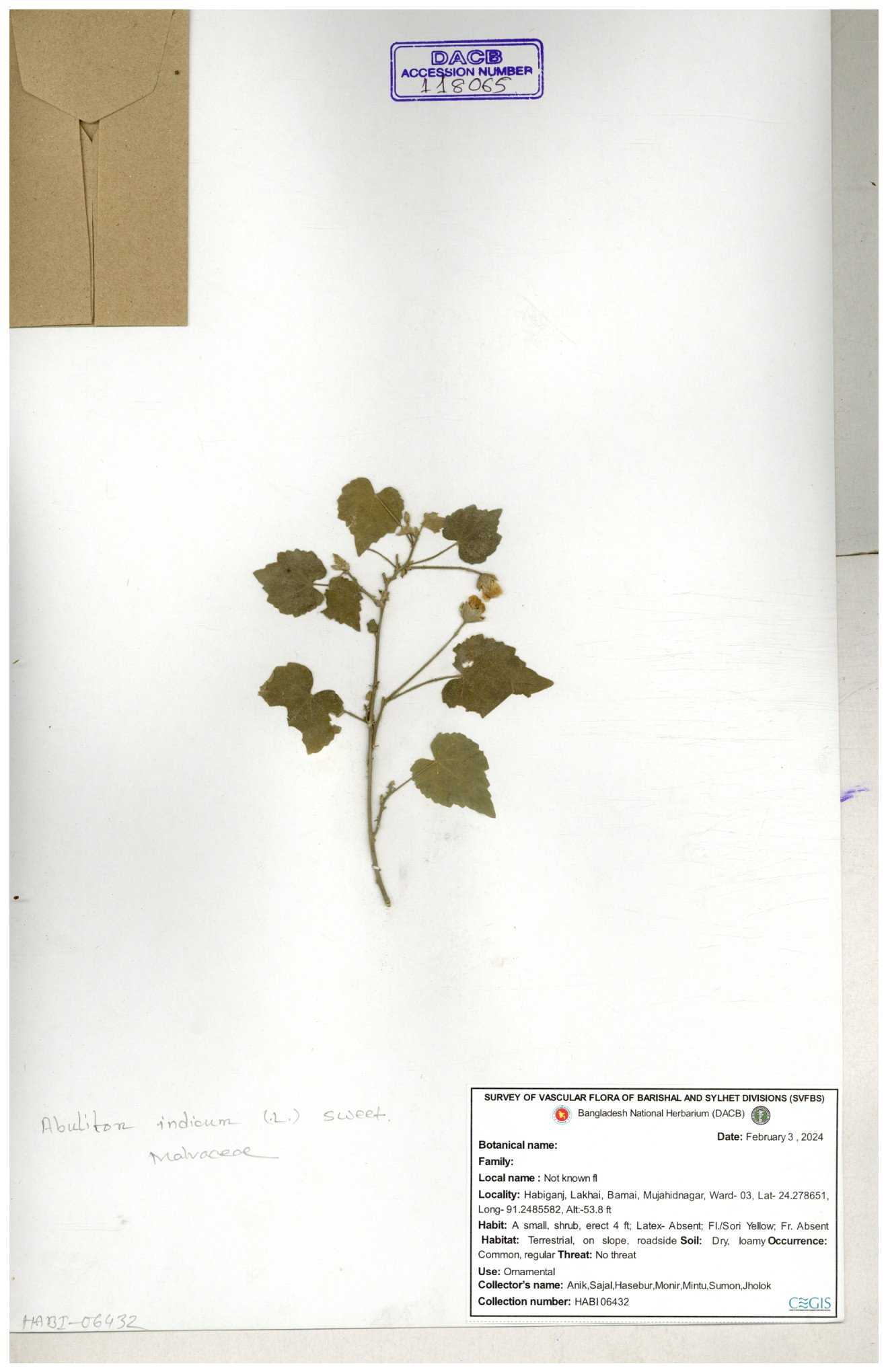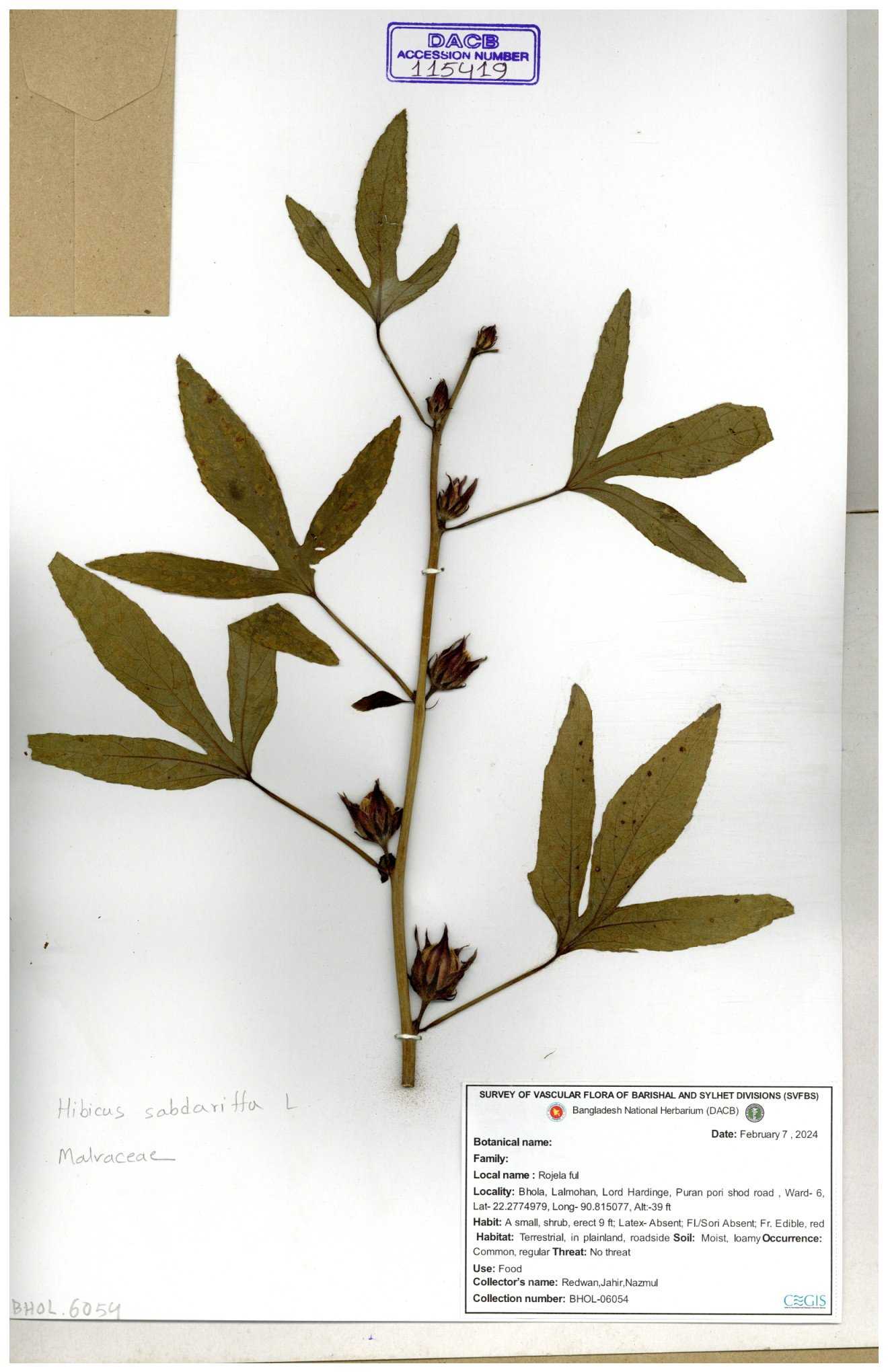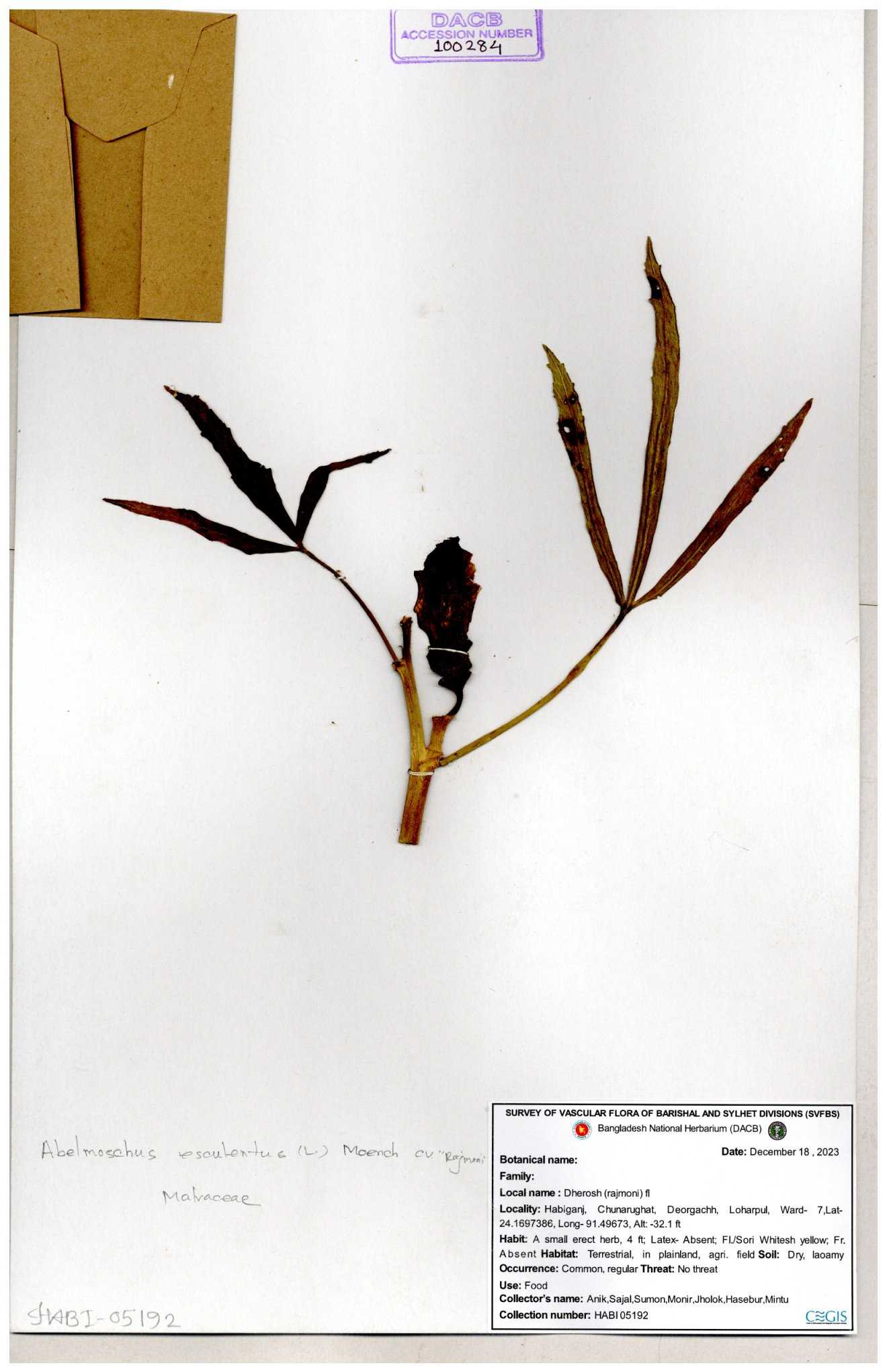 | 54204 | Malvaceae | Abelmoschus moschatus Medik. | Ban-Dheras | Md. Moniruzzaman, Al-Amin & Kawsar | MAK- 7136 10-01-2018 |