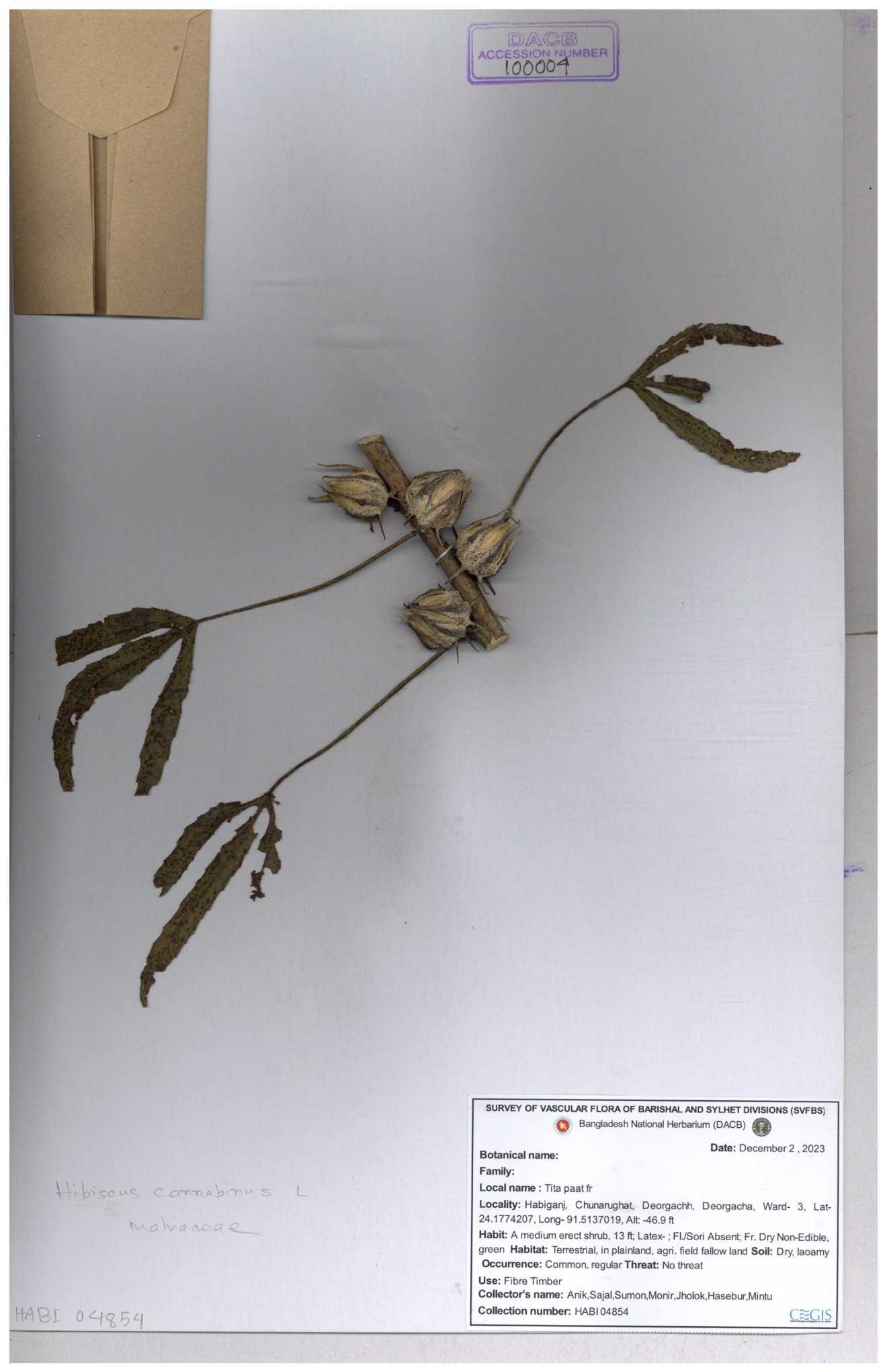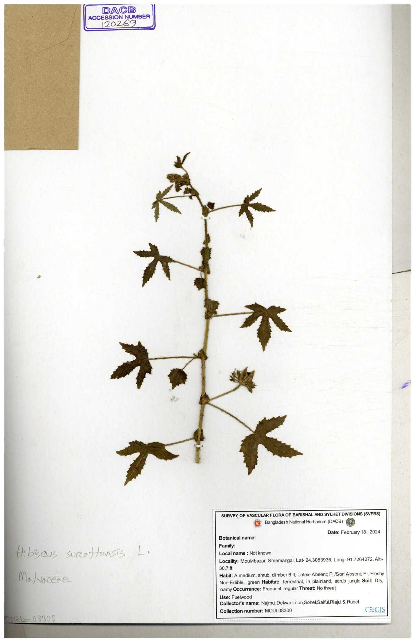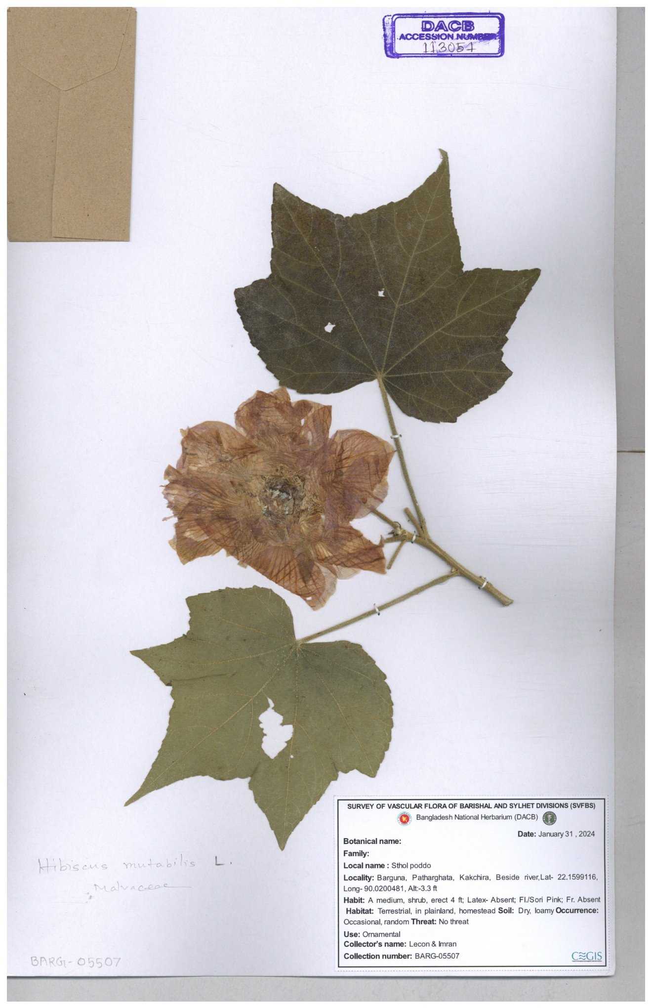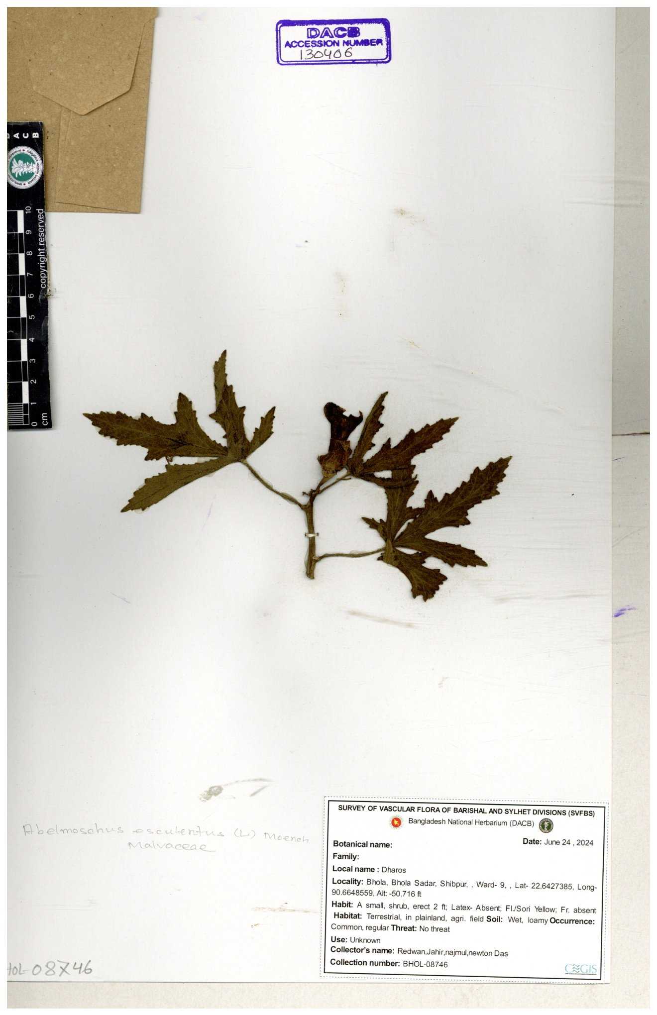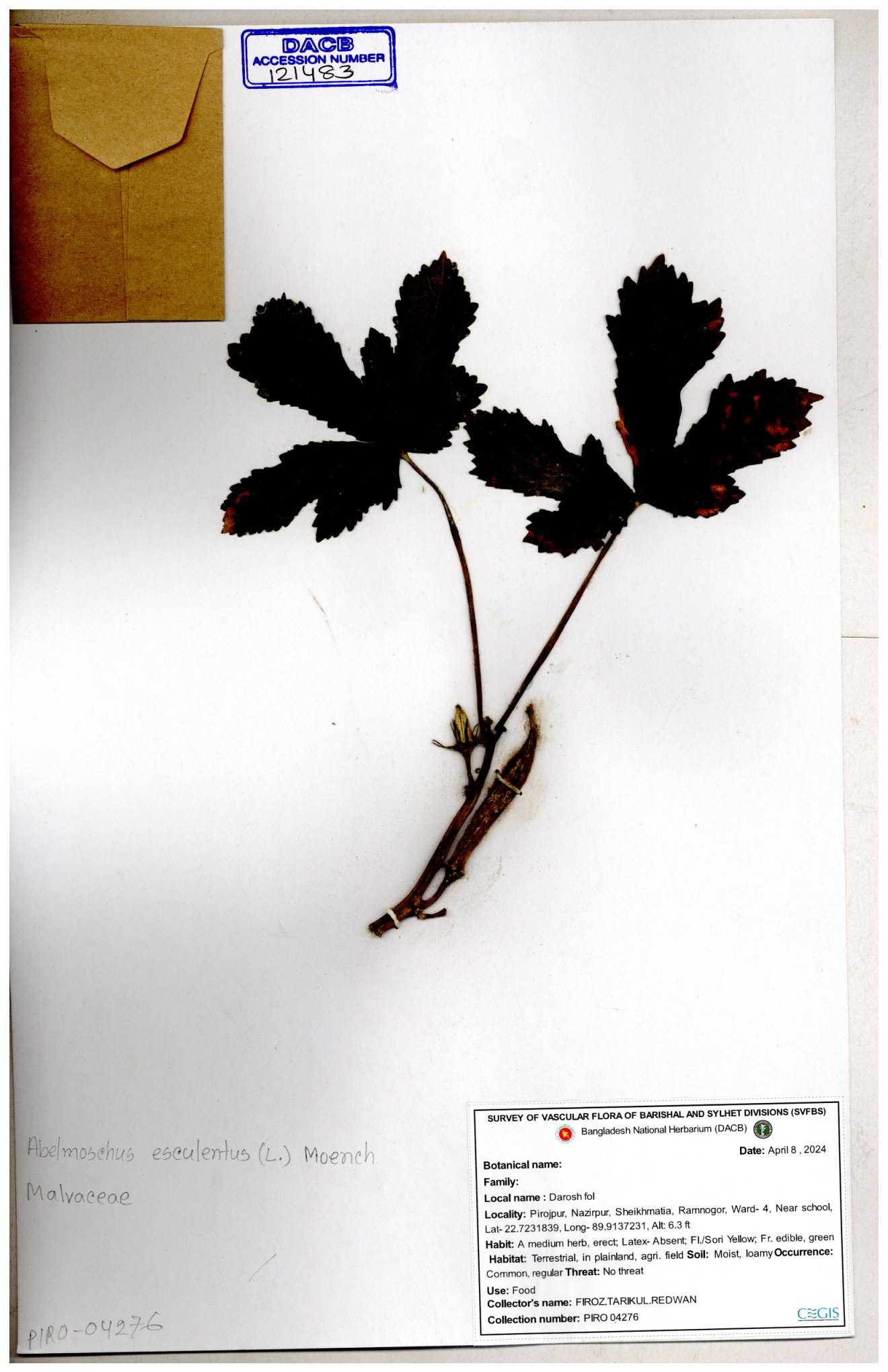 | 54204 | Malvaceae | Abelmoschus moschatus Medik. | Ban-Dheras | Md. Moniruzzaman, Al-Amin & Kawsar | MAK- 7136 10-01-2018 |
