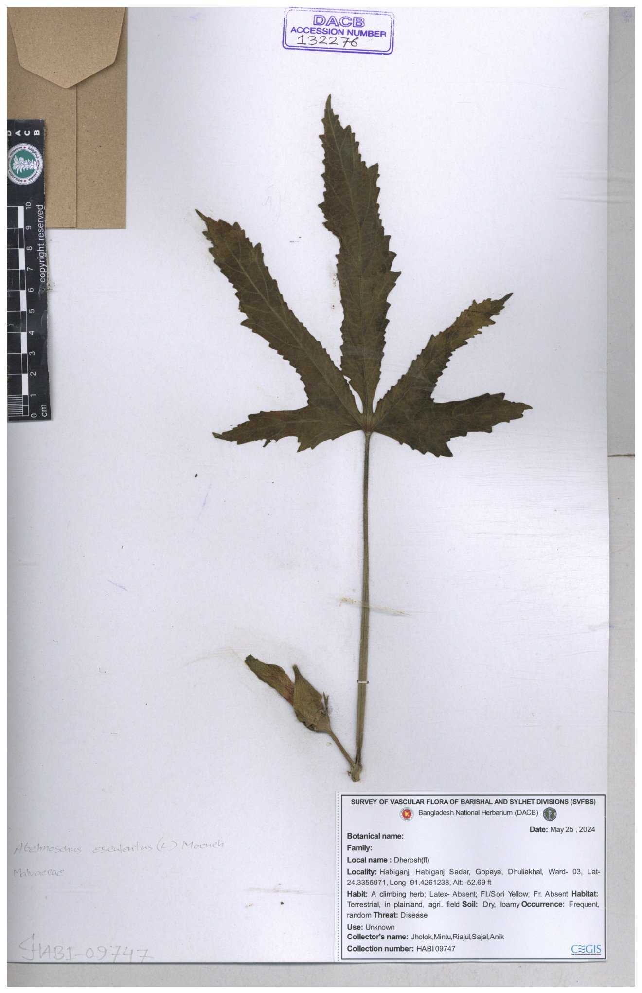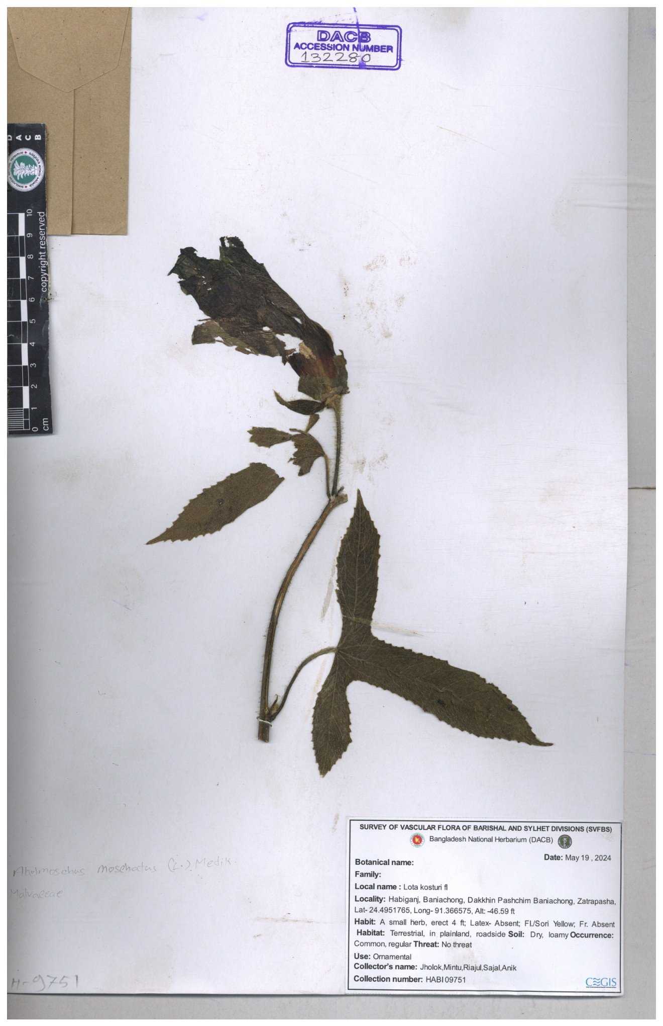 | 75856 | Malvaceae | Abelmoschus moschatus Medik. | Joyanta, Likhon & Kamrul | JCR- 6954 13-11-2017 |