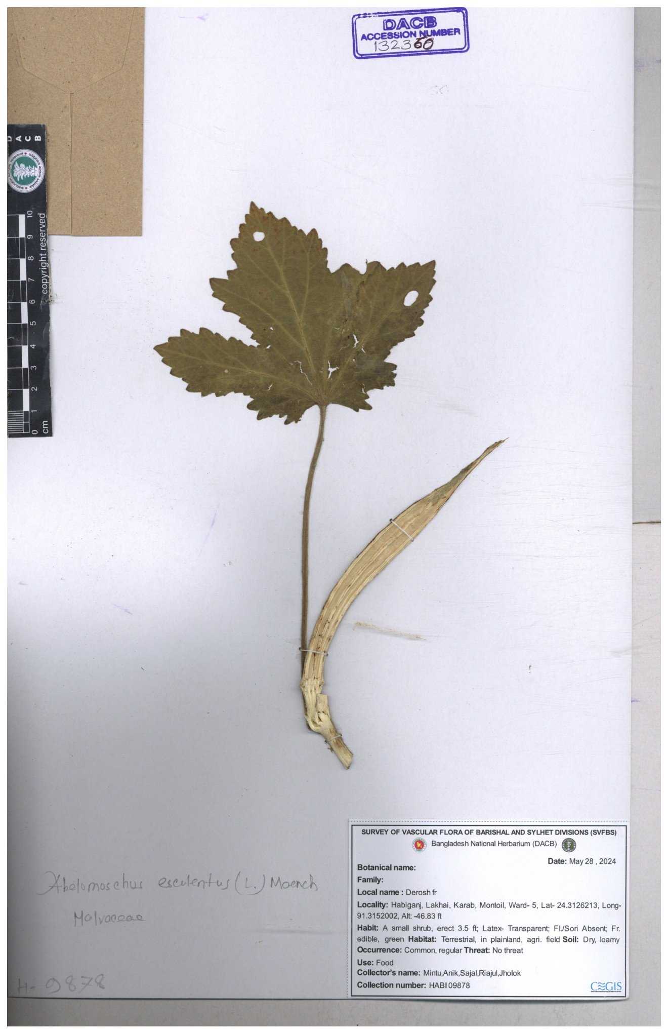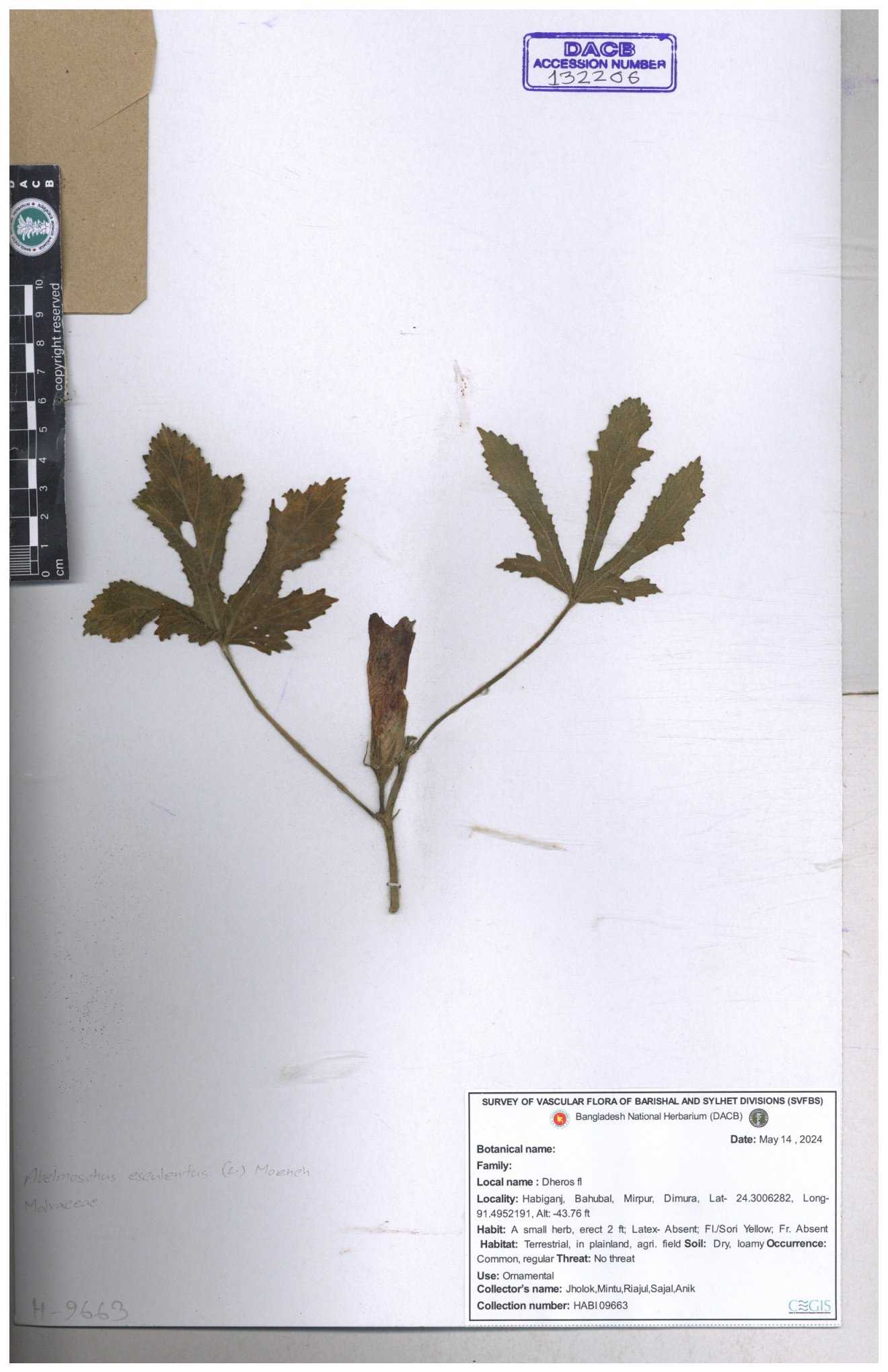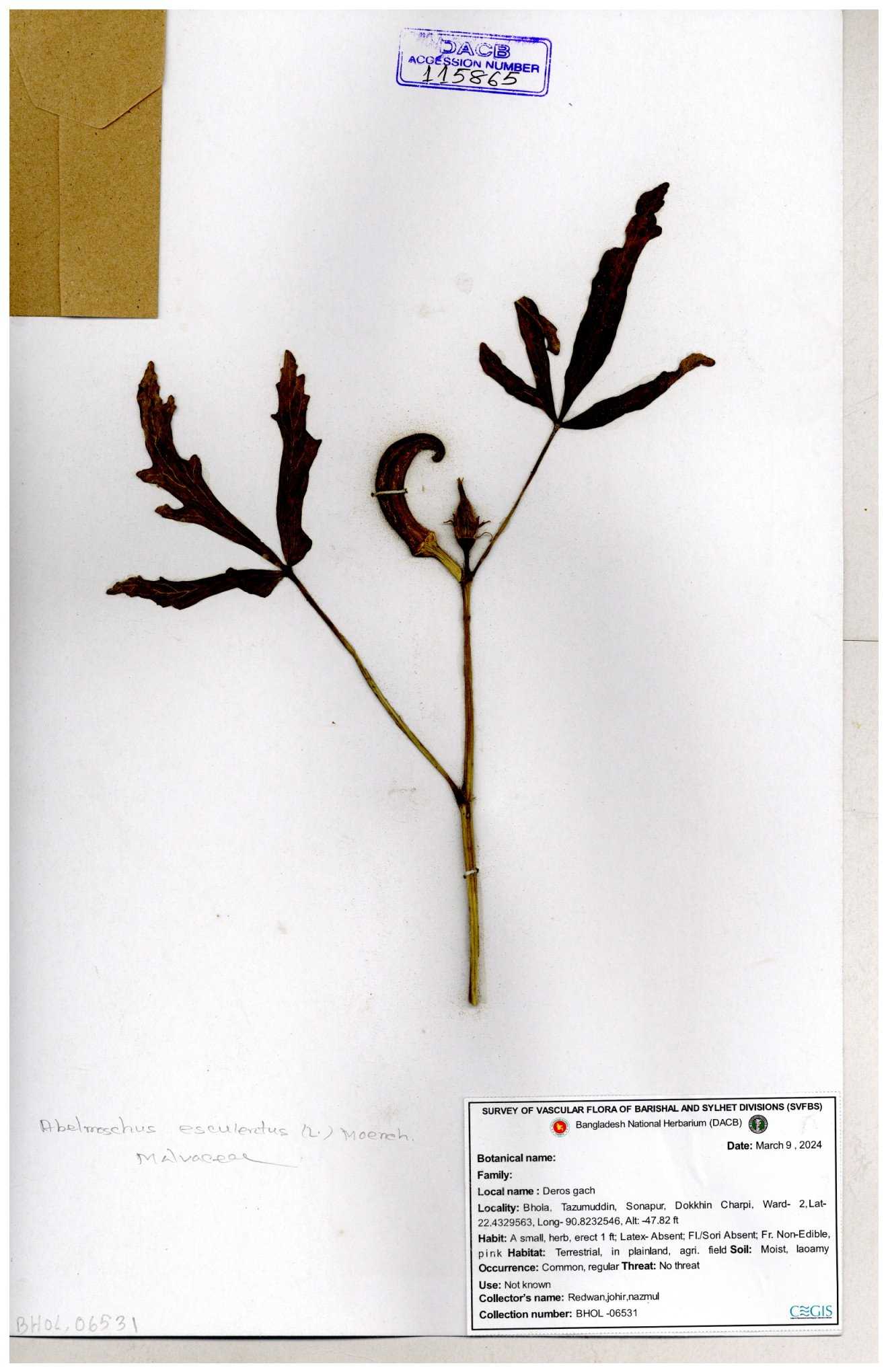 | 58863 | Malvaceae | Abelmoschus moschatus Medik. | Bol kash | Ehshanul Hoque | EH- 100 24-04-2017 |