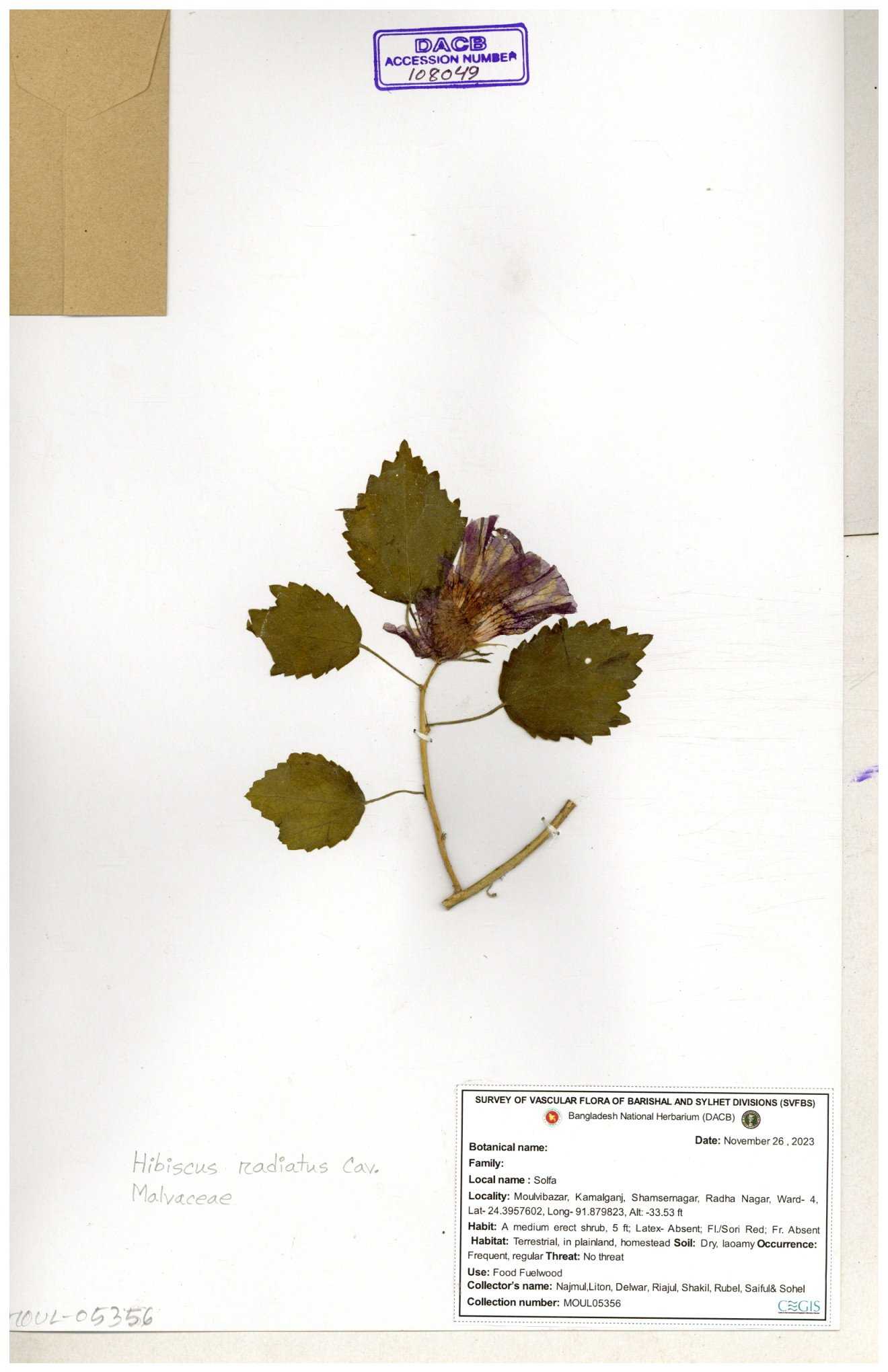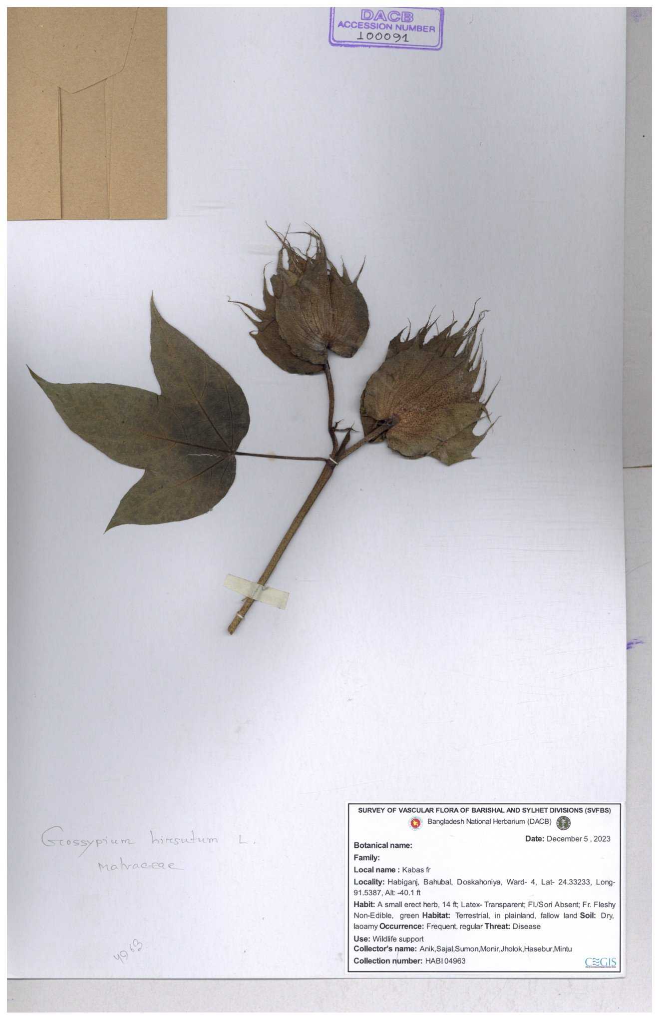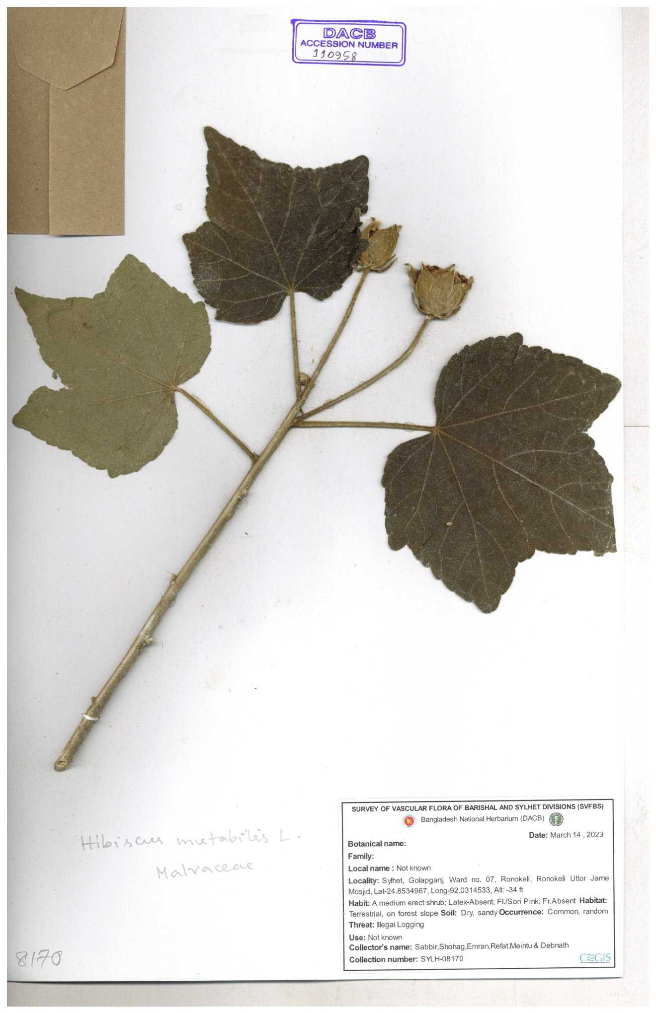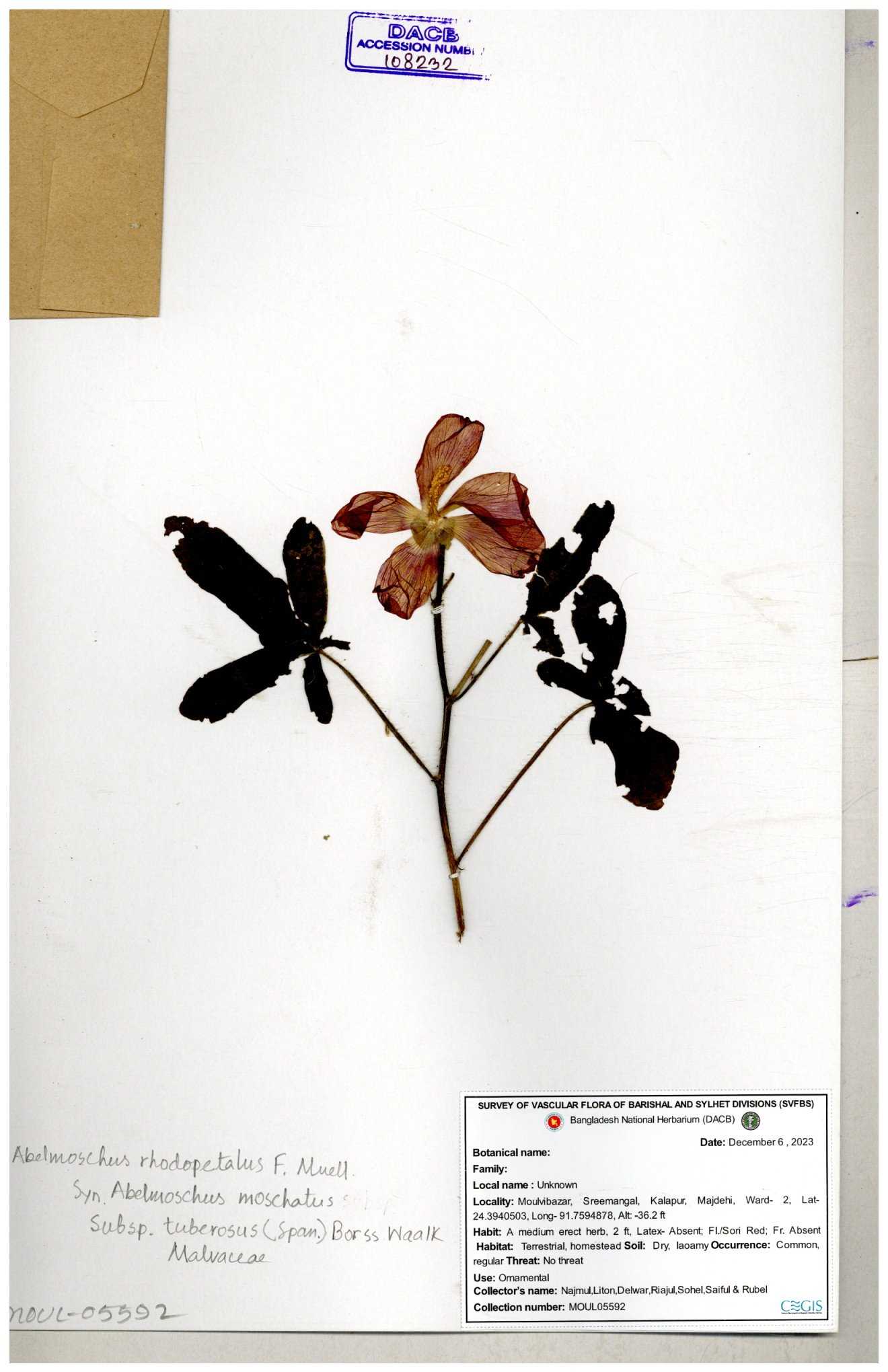 | 58863 | Malvaceae | Abelmoschus moschatus Medik. | Bol kash | Ehshanul Hoque | EH- 100 24-04-2017 |