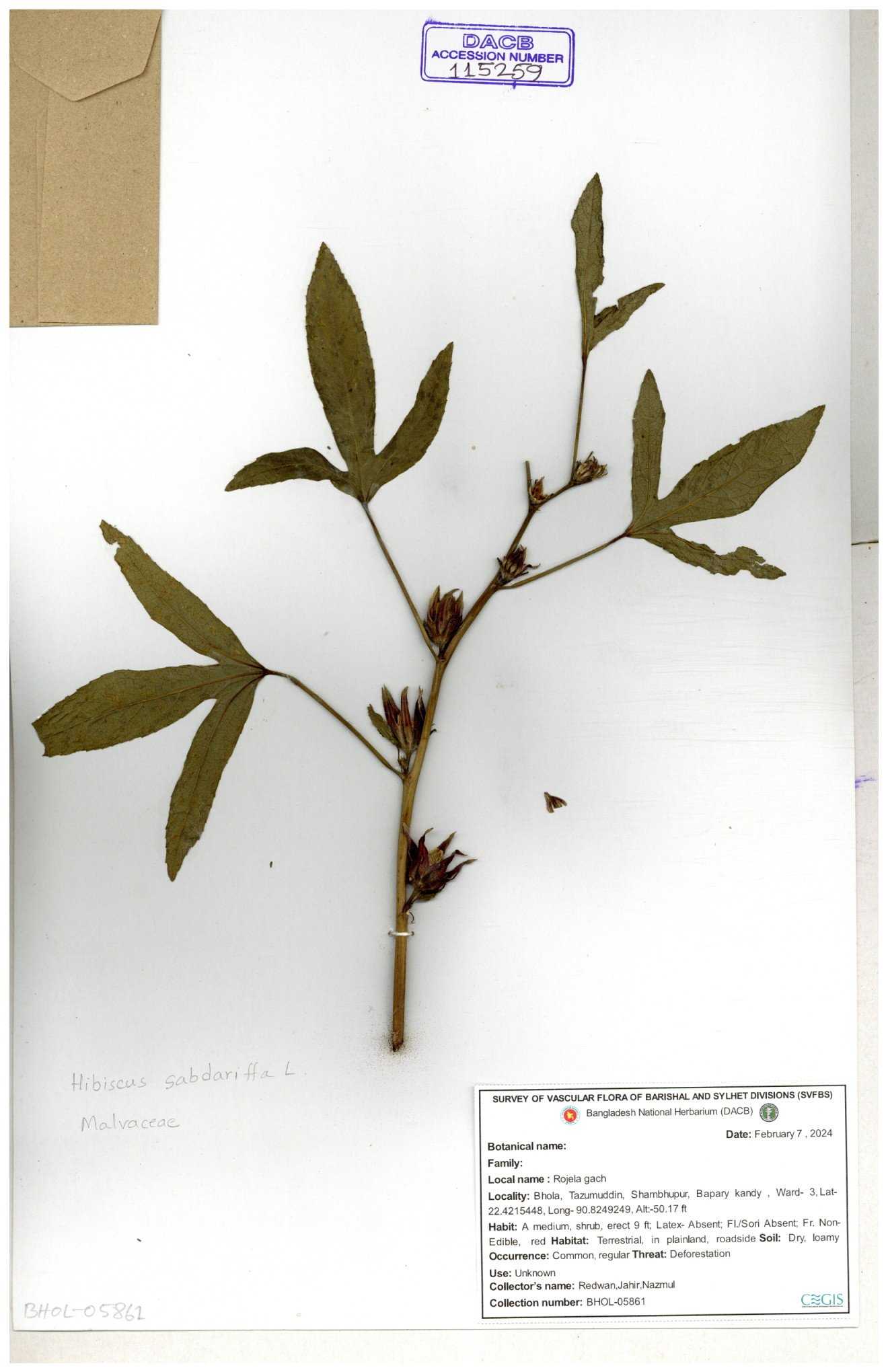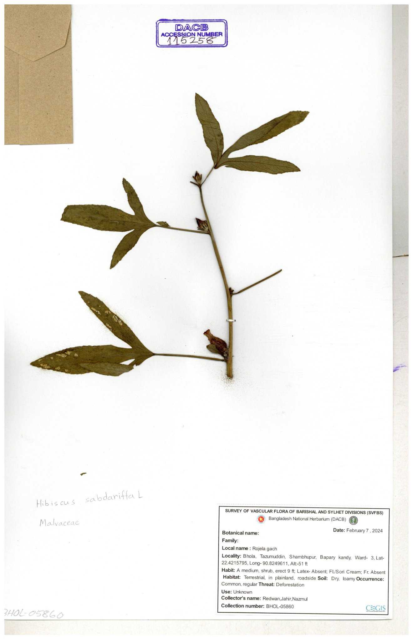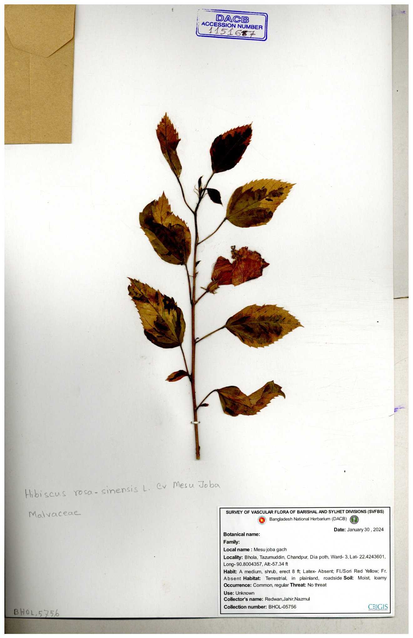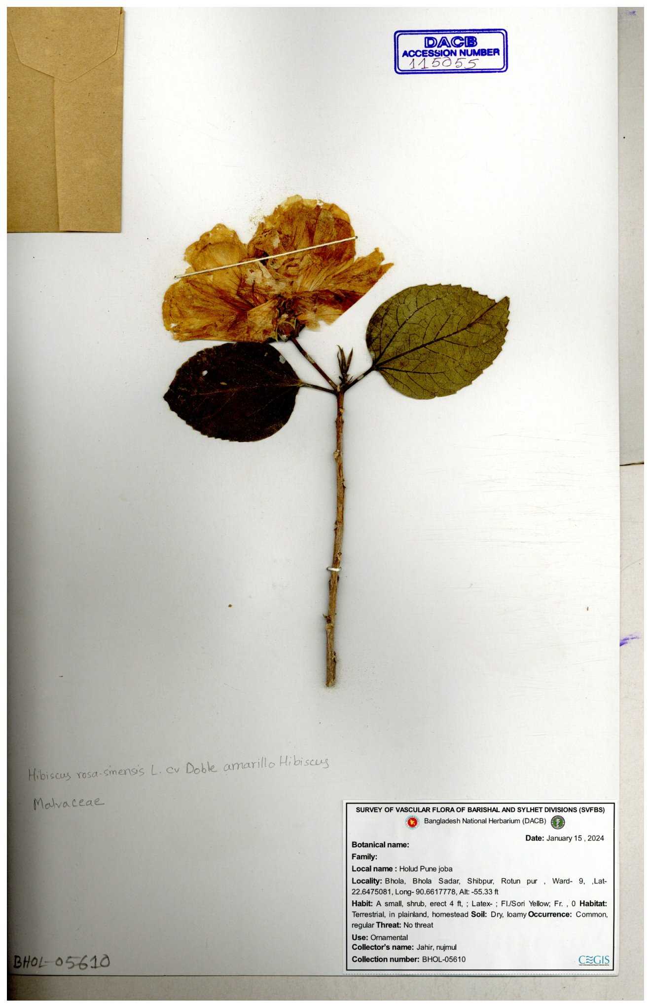 | 59960 | Malvaceae | Hibiscus tilliaceus L. | Boloi | Dr. M Sultana | DMS-2979 30-11--0001 |