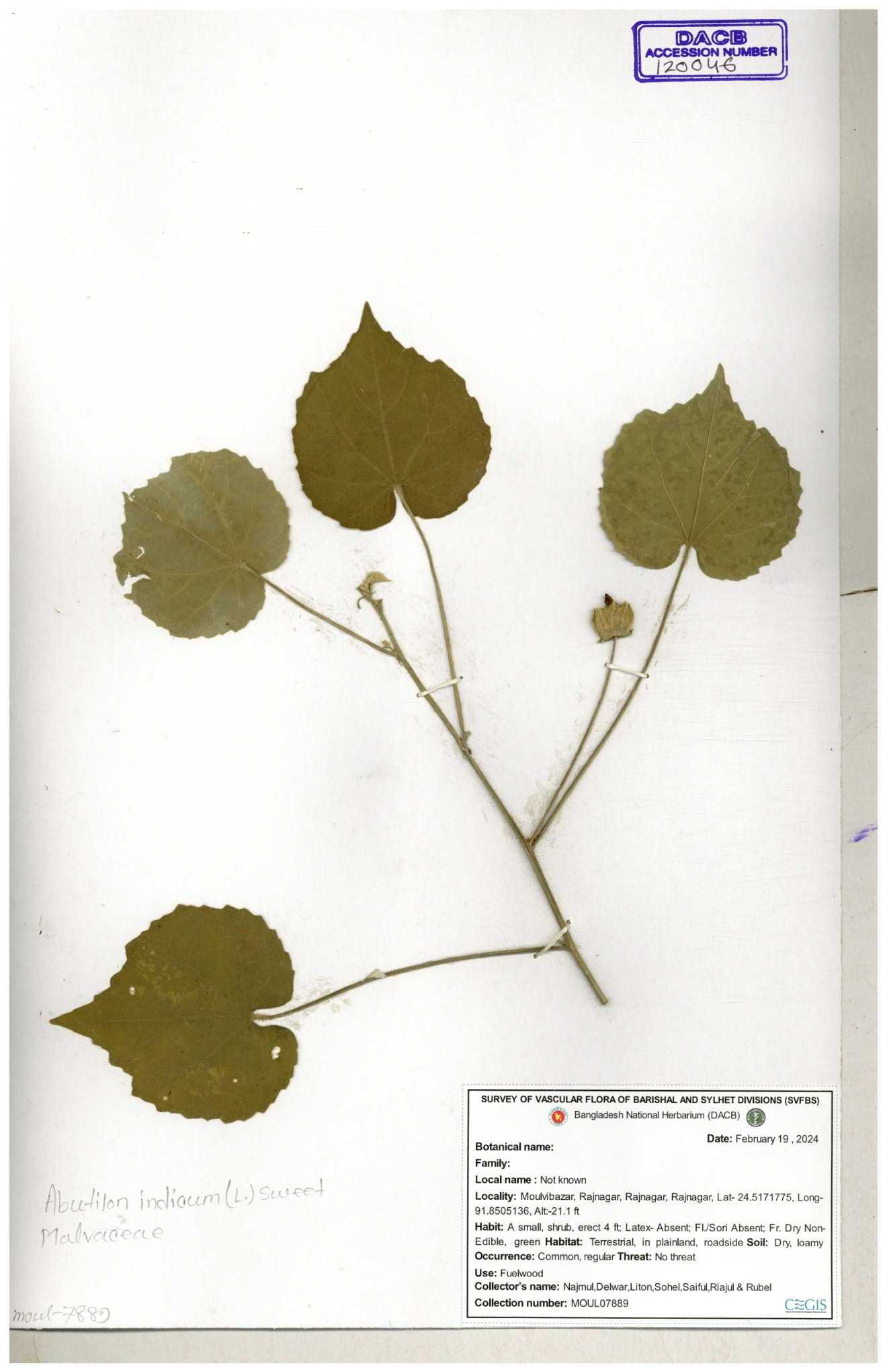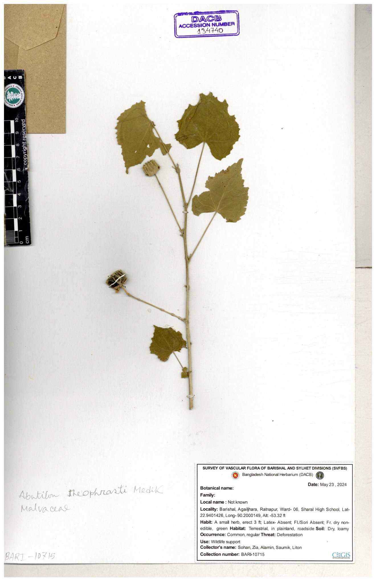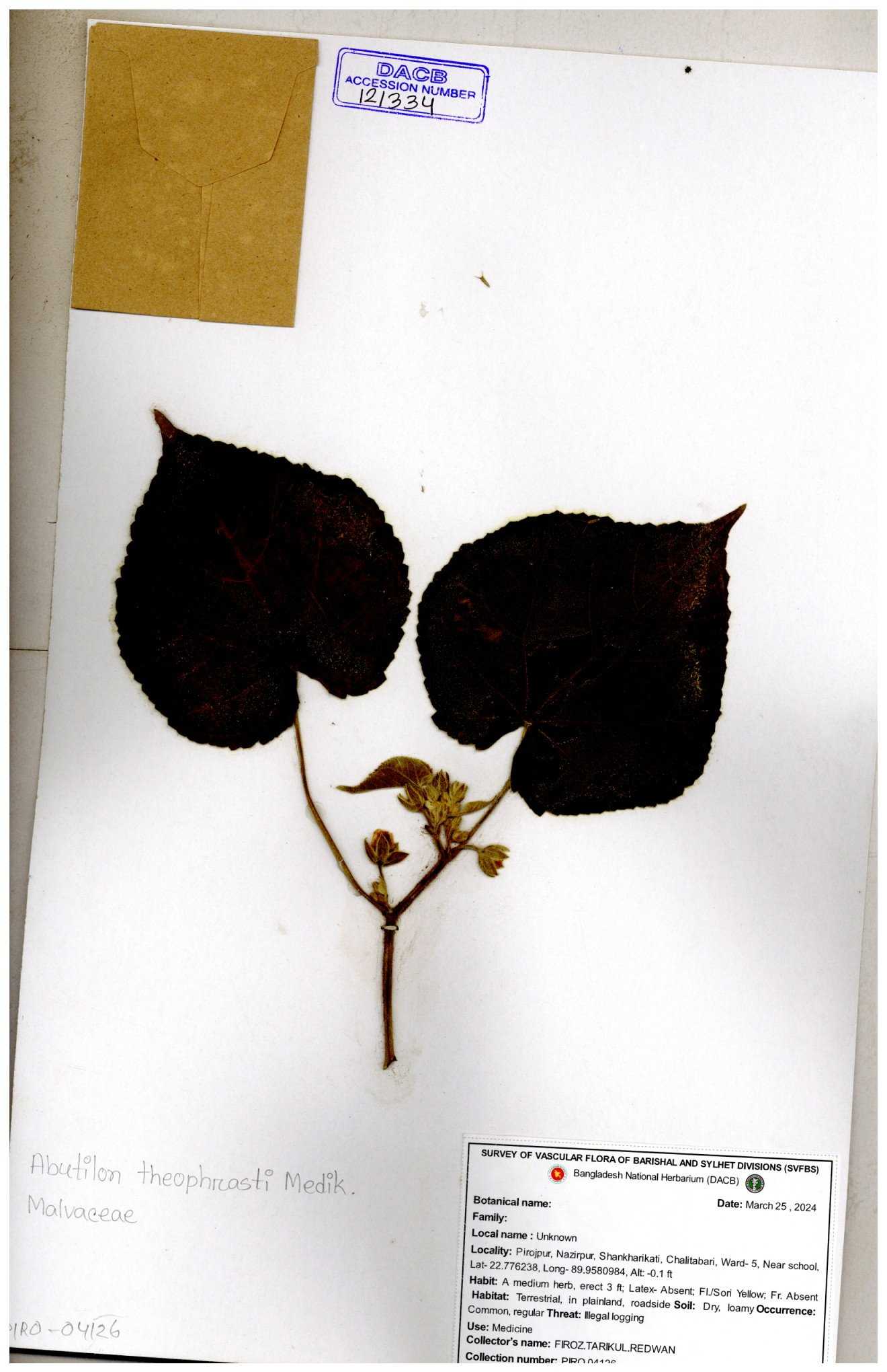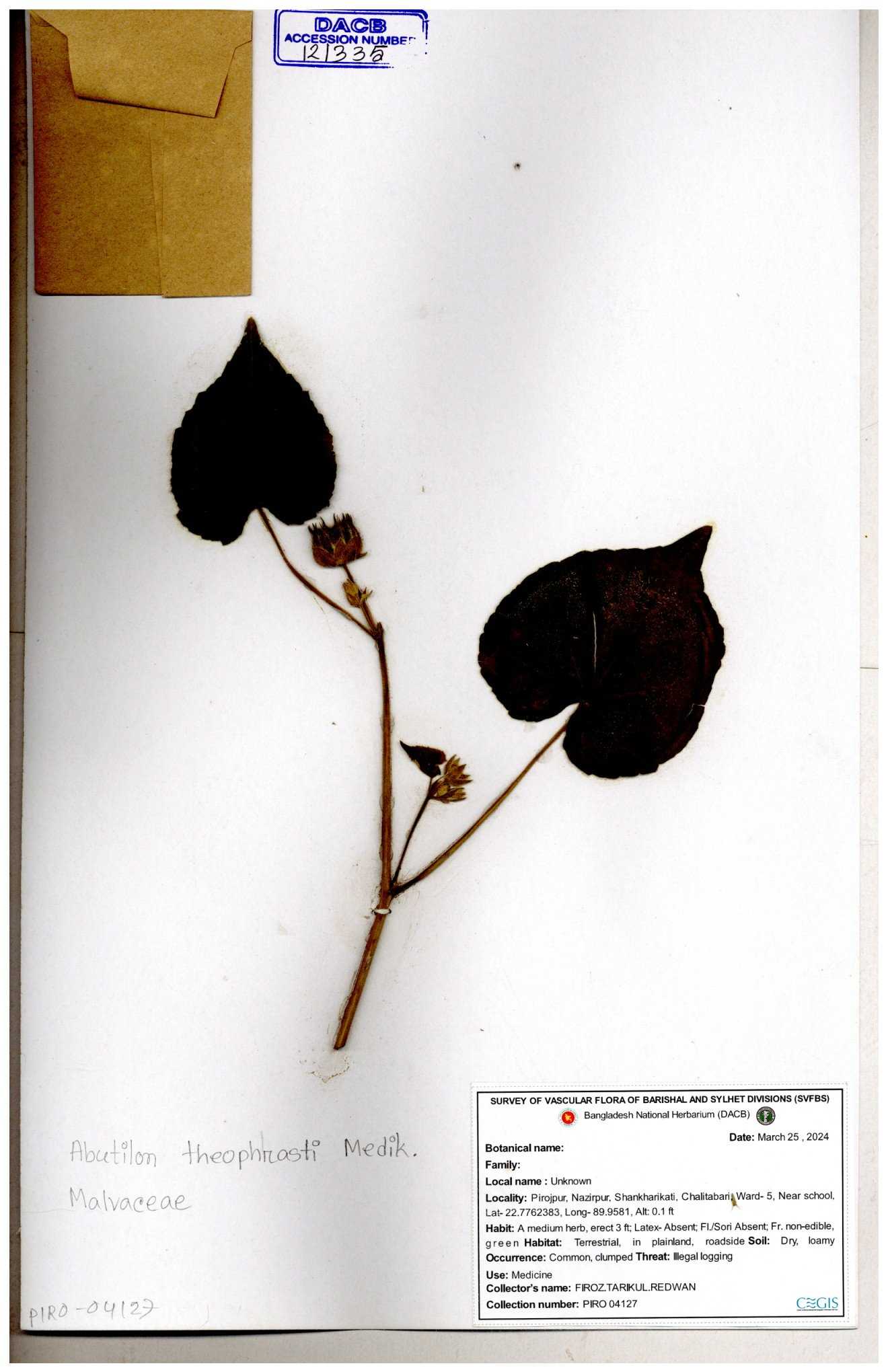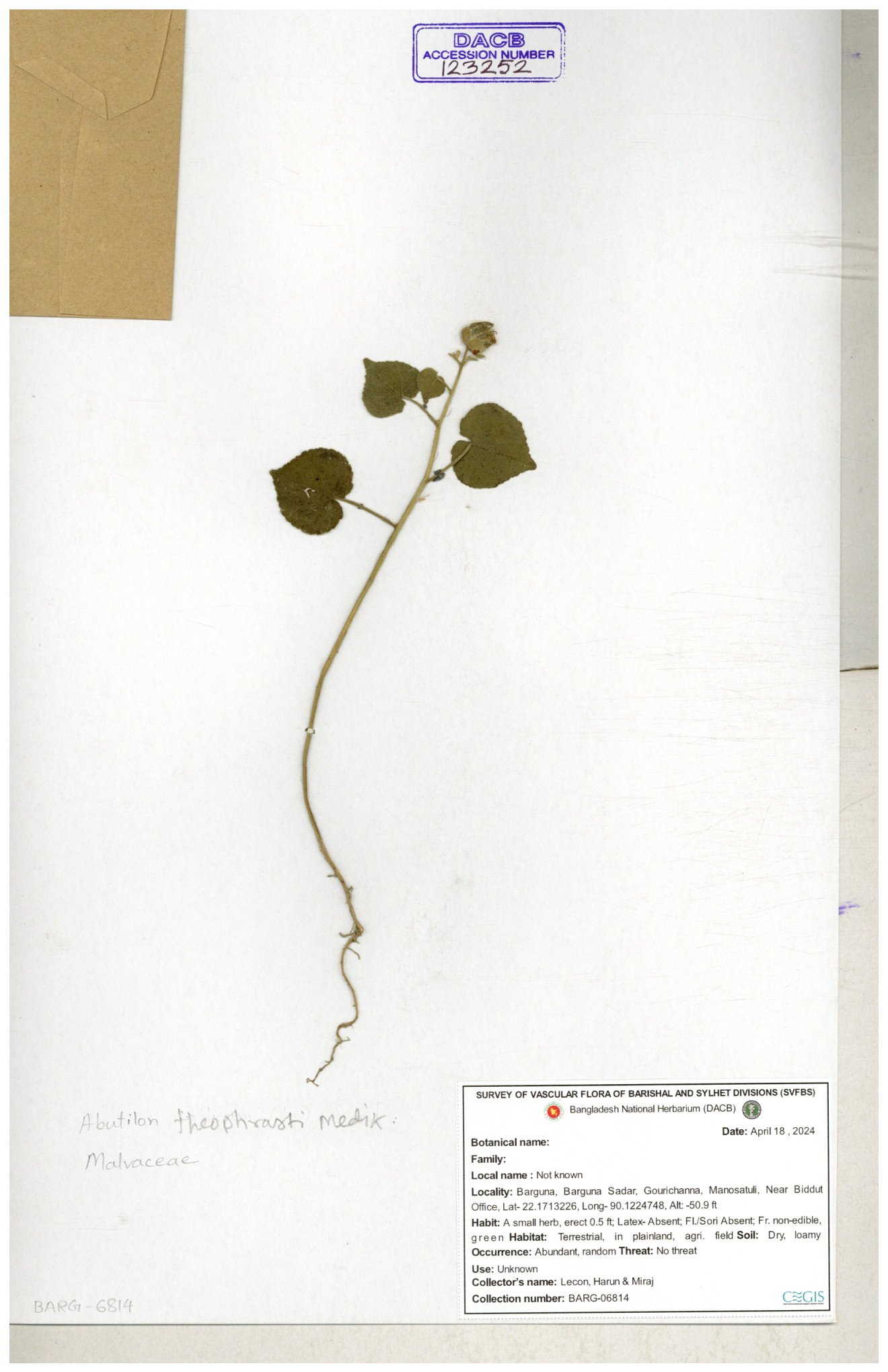 | 123077 | Malvaceae | Abutilon theophrasti | 30-11--0001 |