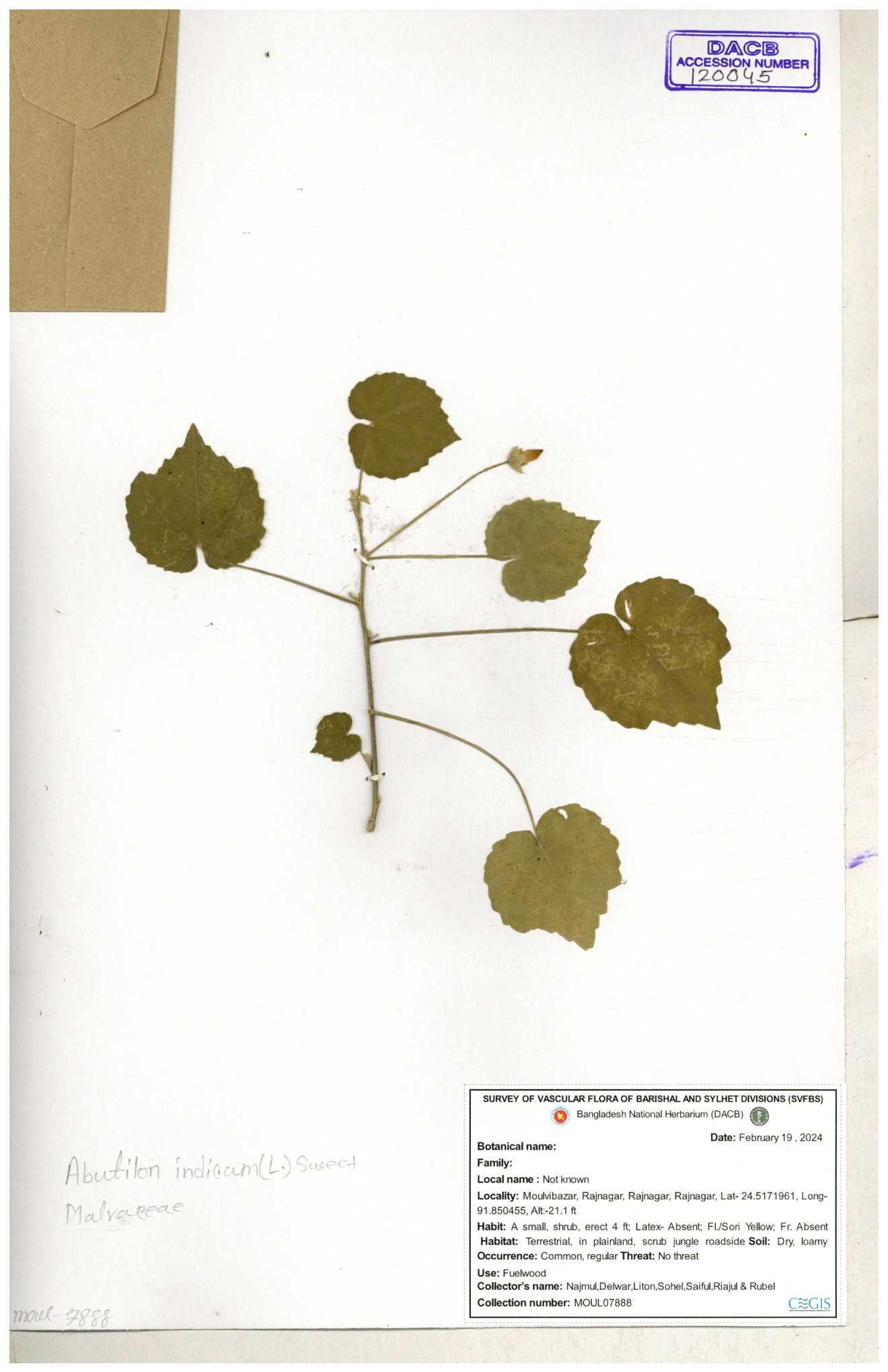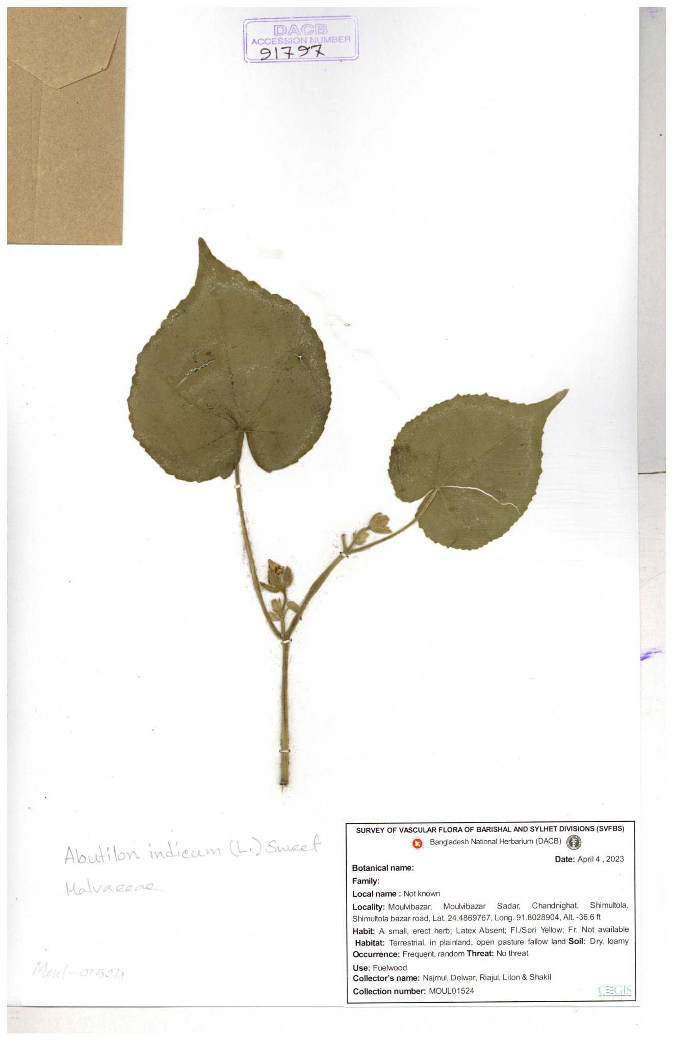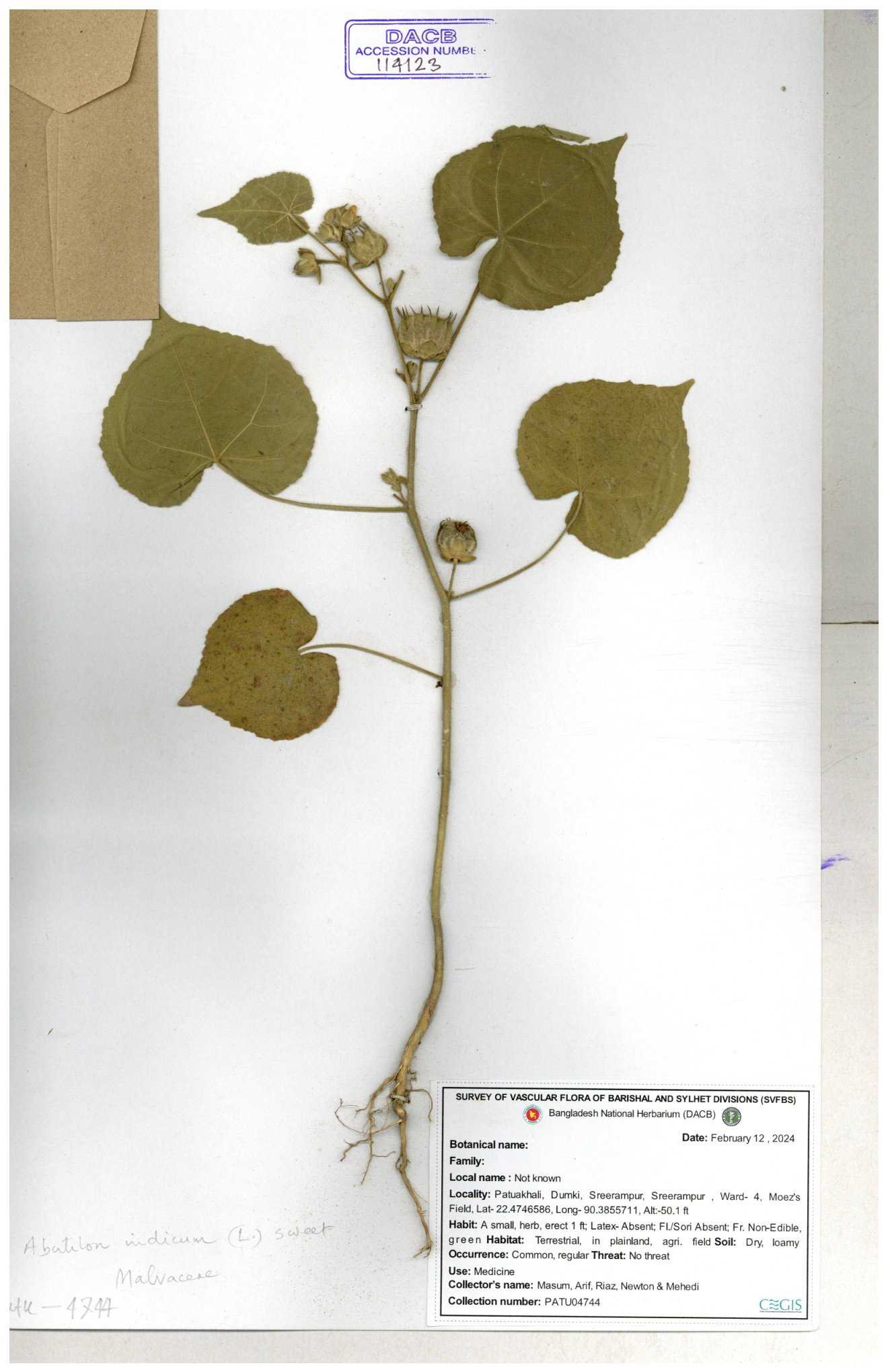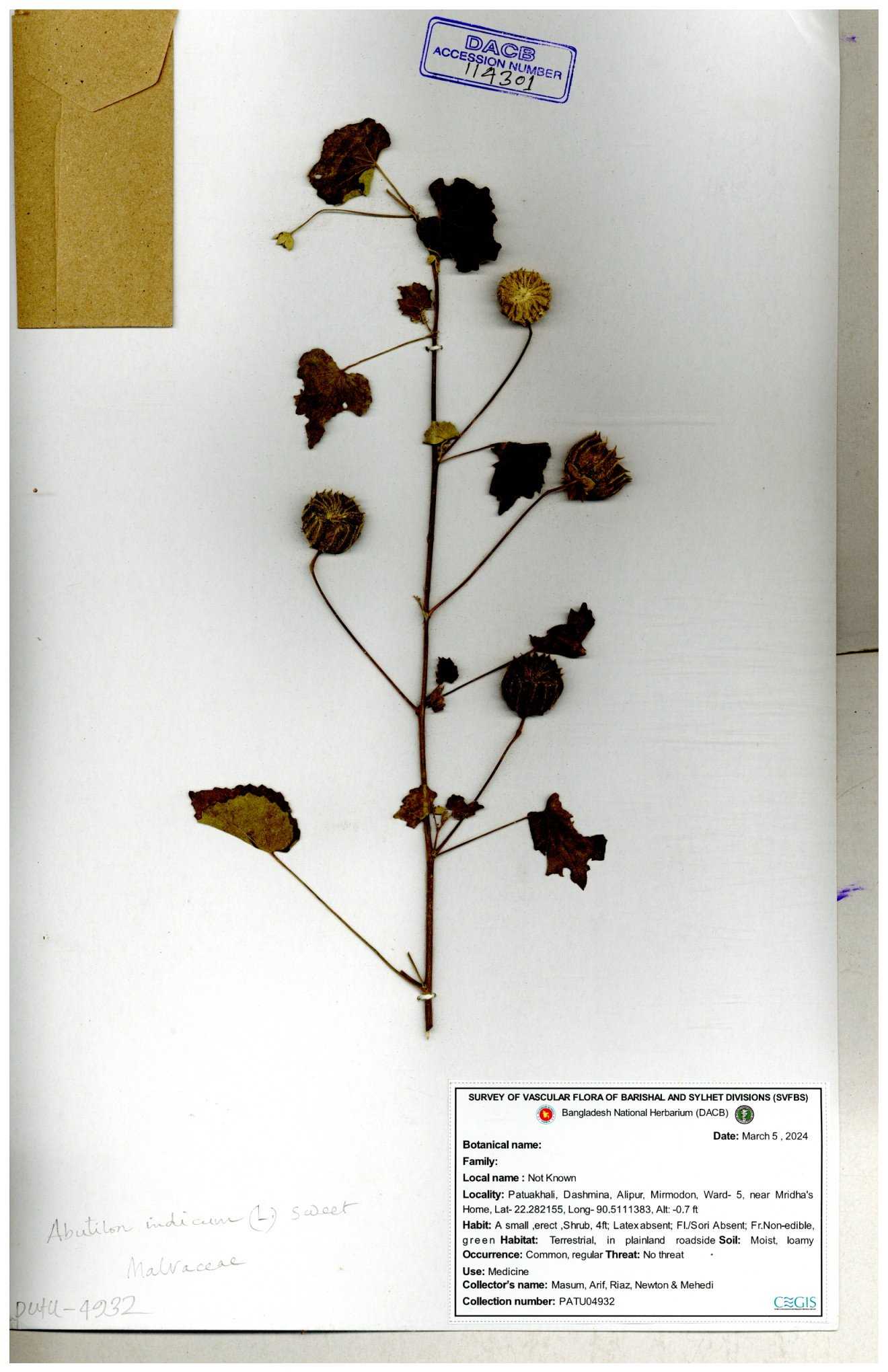 | 123077 | Malvaceae | Abutilon theophrasti | 30-11--0001 |