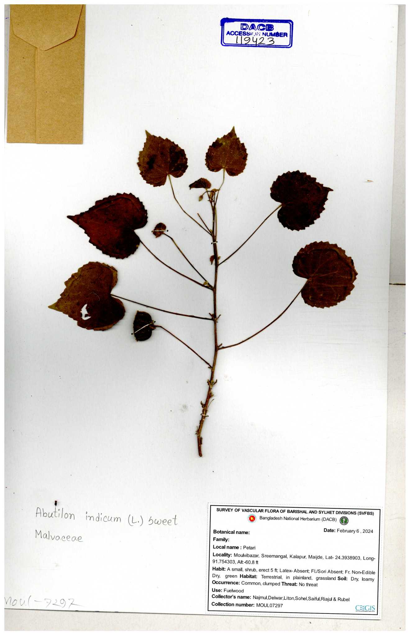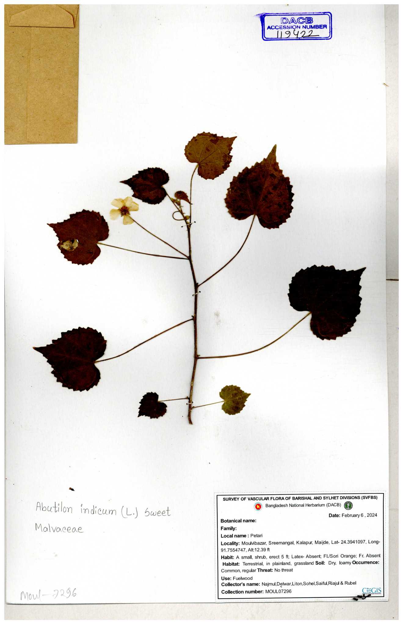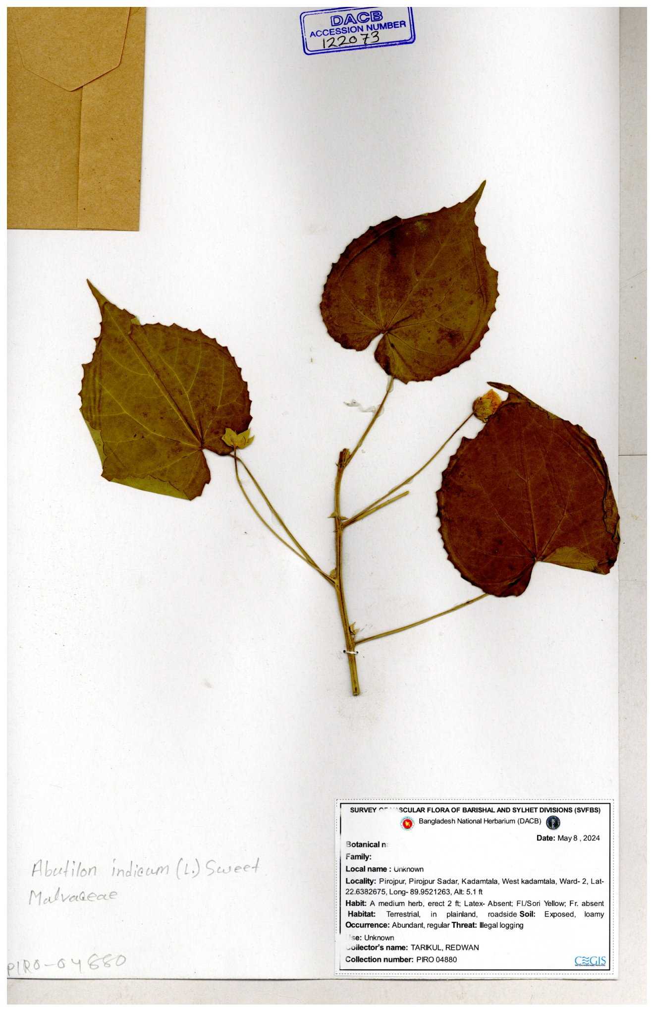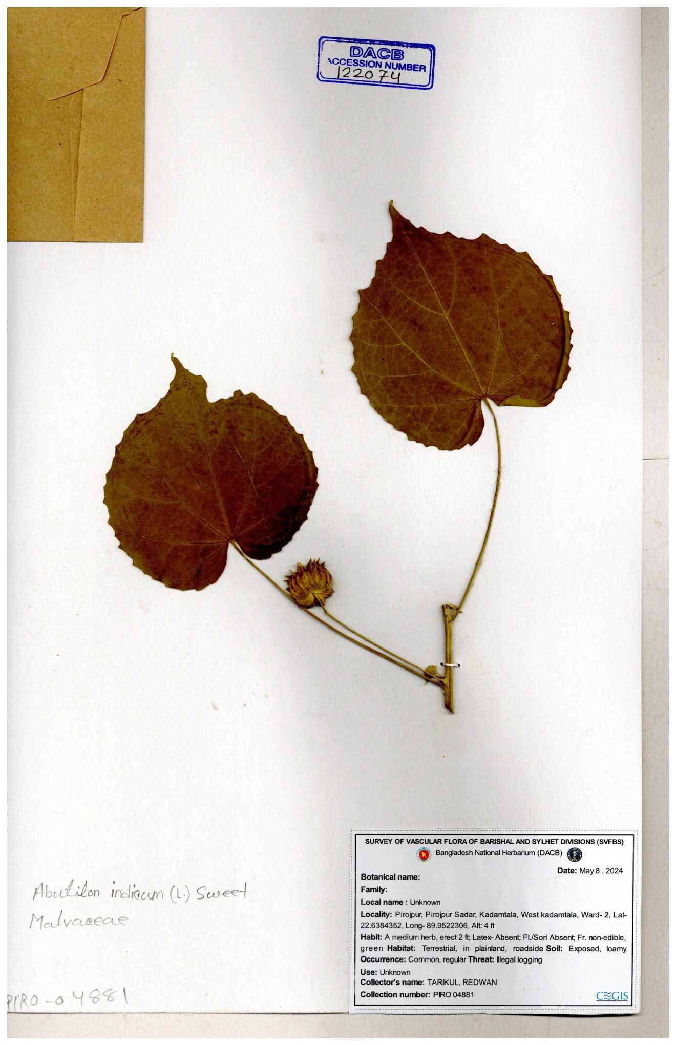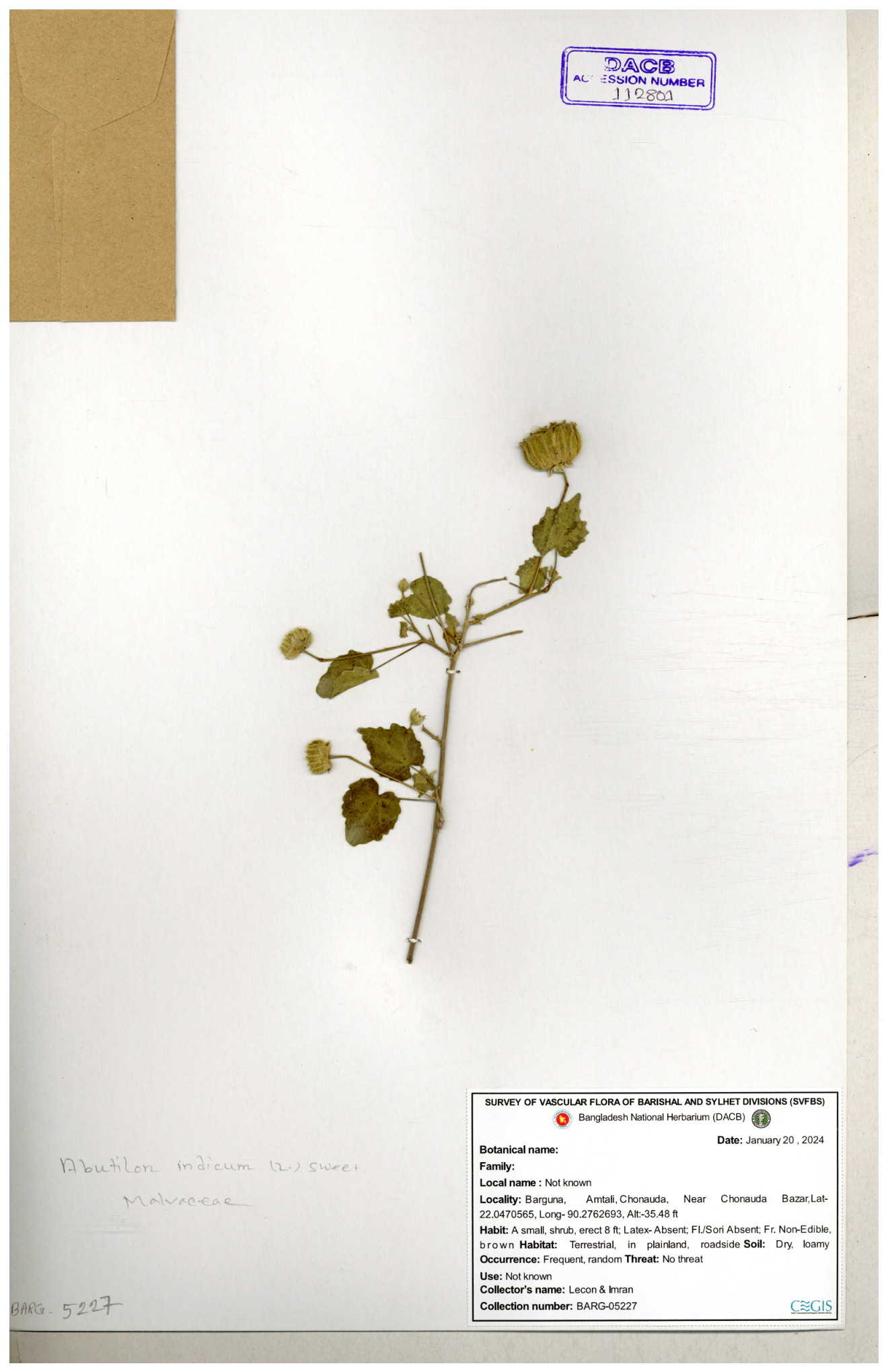 | 123077 | Malvaceae | Abutilon theophrasti | 30-11--0001 |