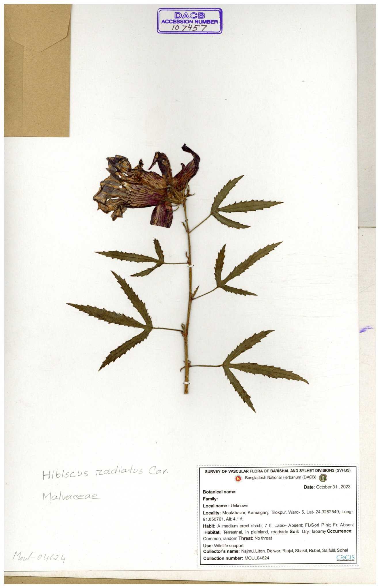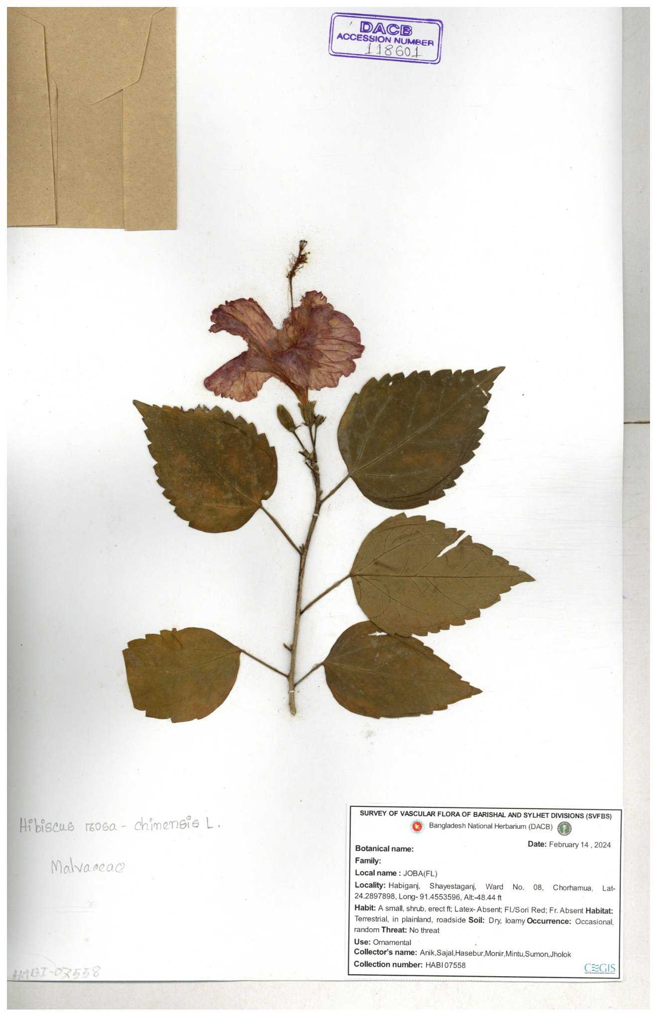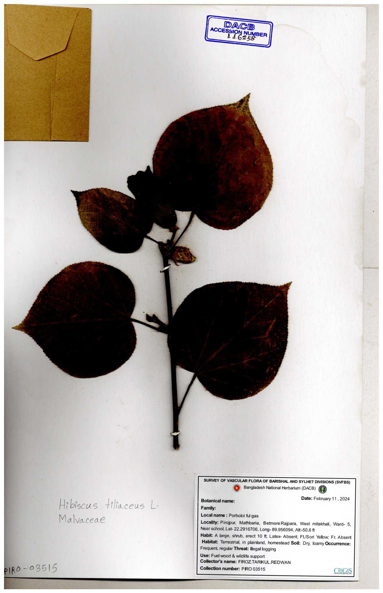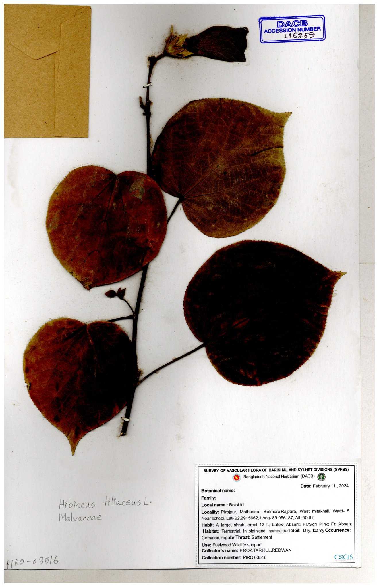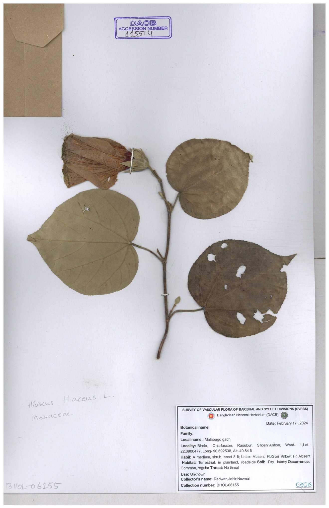 | 55194 | Malvaceae | Hibiscus tilliaceus L. | Md. Moniruzzaman & al-Amin | MA- 7450 30-01-2018 |