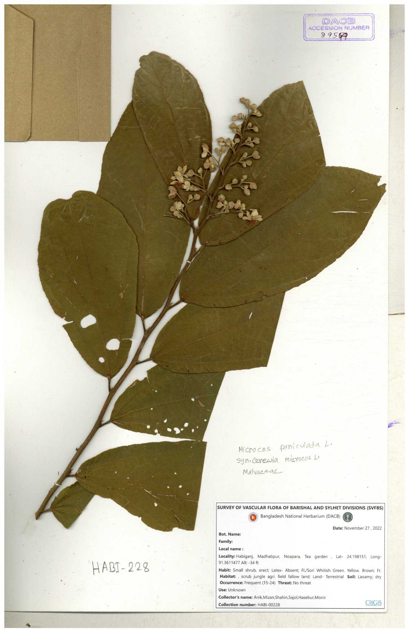 | 80922 | Malvaceae | Microcos tomentosa Sm. | Kowser et al | KH. 4896 10-05-2017 |