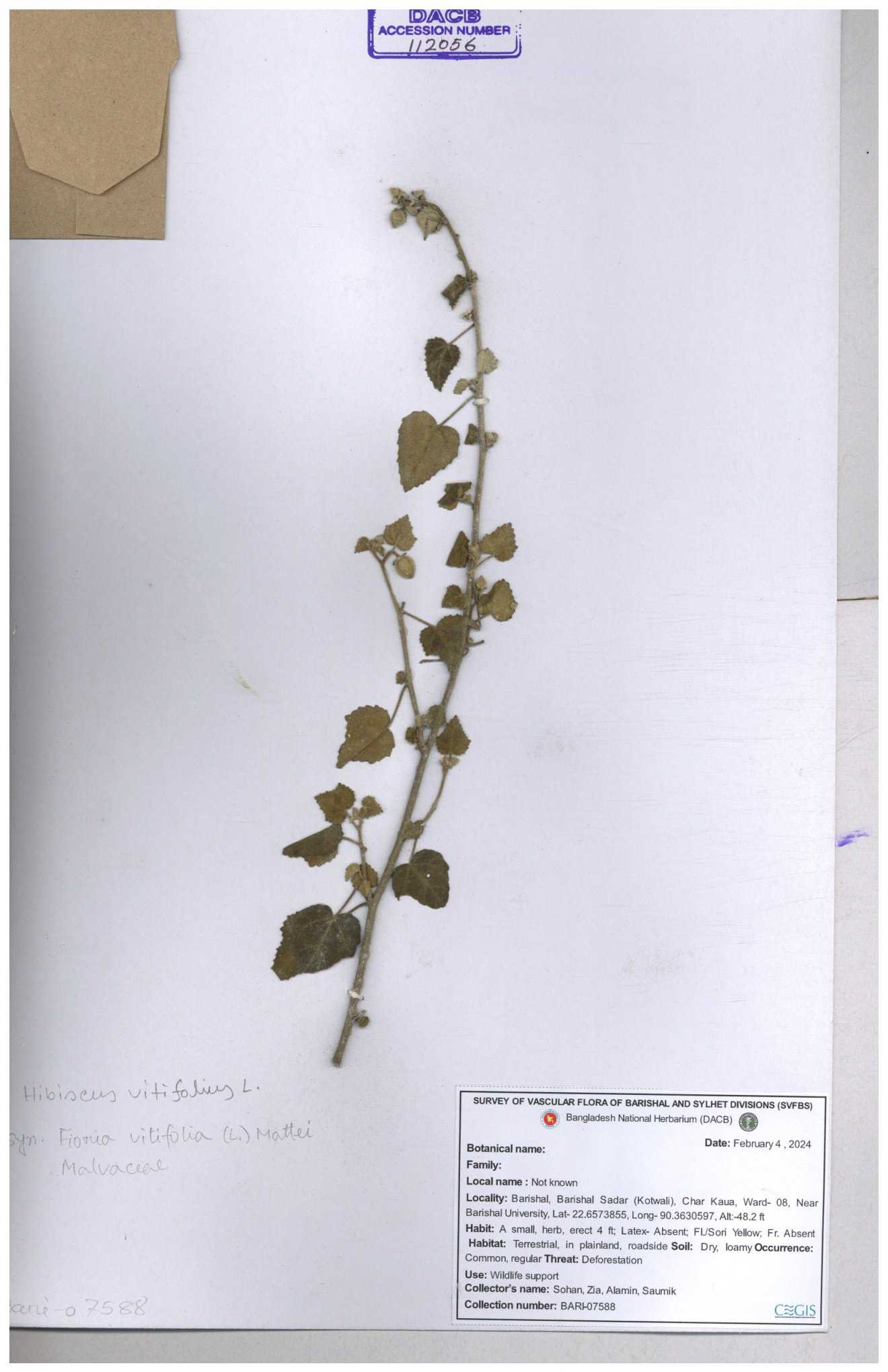 | 112056 | Malvaceae | Hibiscus vitifolius | 30-11--0001 |