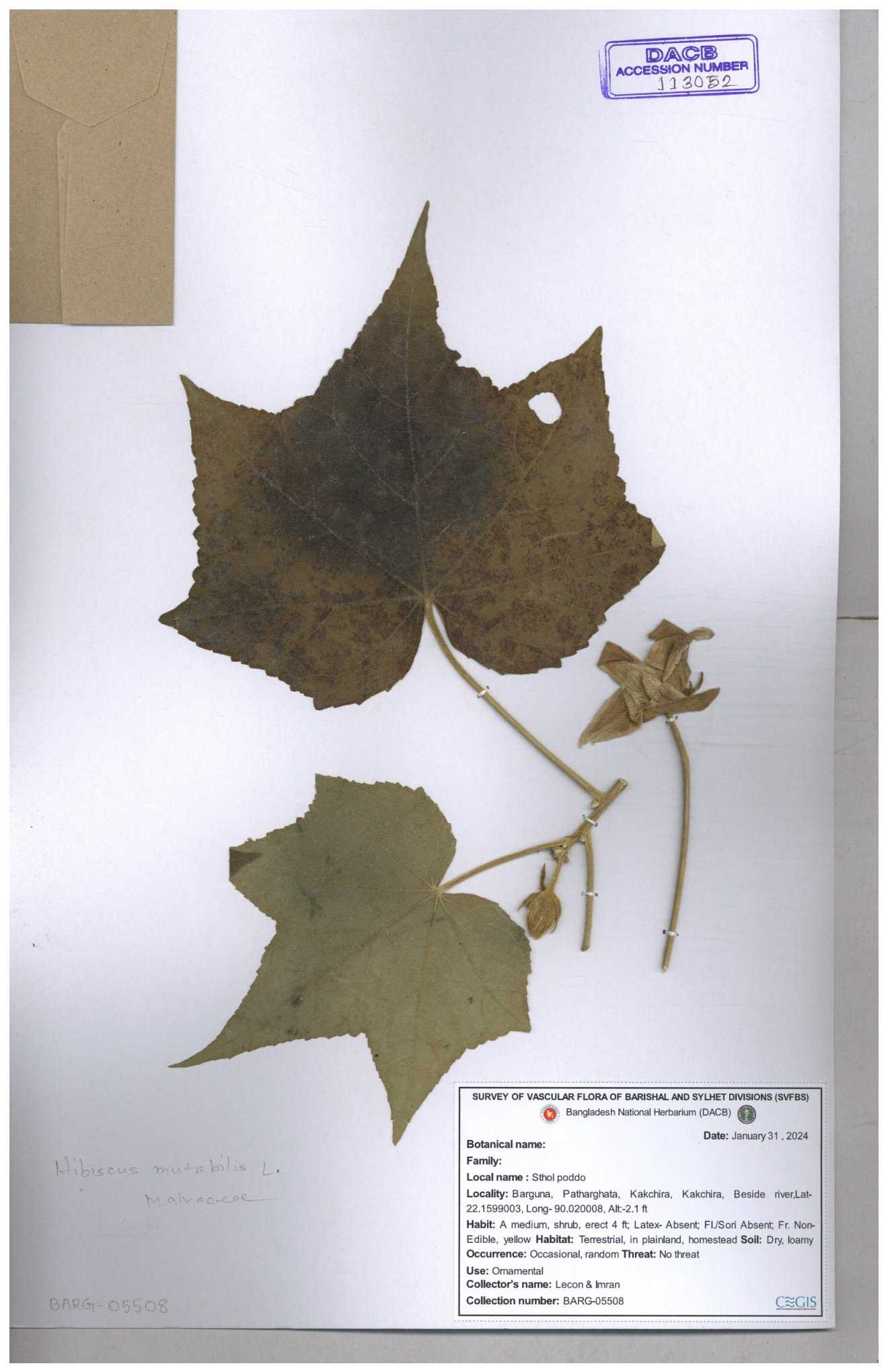 | 55197 | Malvaceae | Abelmoschus moschatus Medik. | Ban-Dherosh | Md. Moniruzzaman, Al-Amin & Kawsar | MAK- 7042 26-12-2017 |
