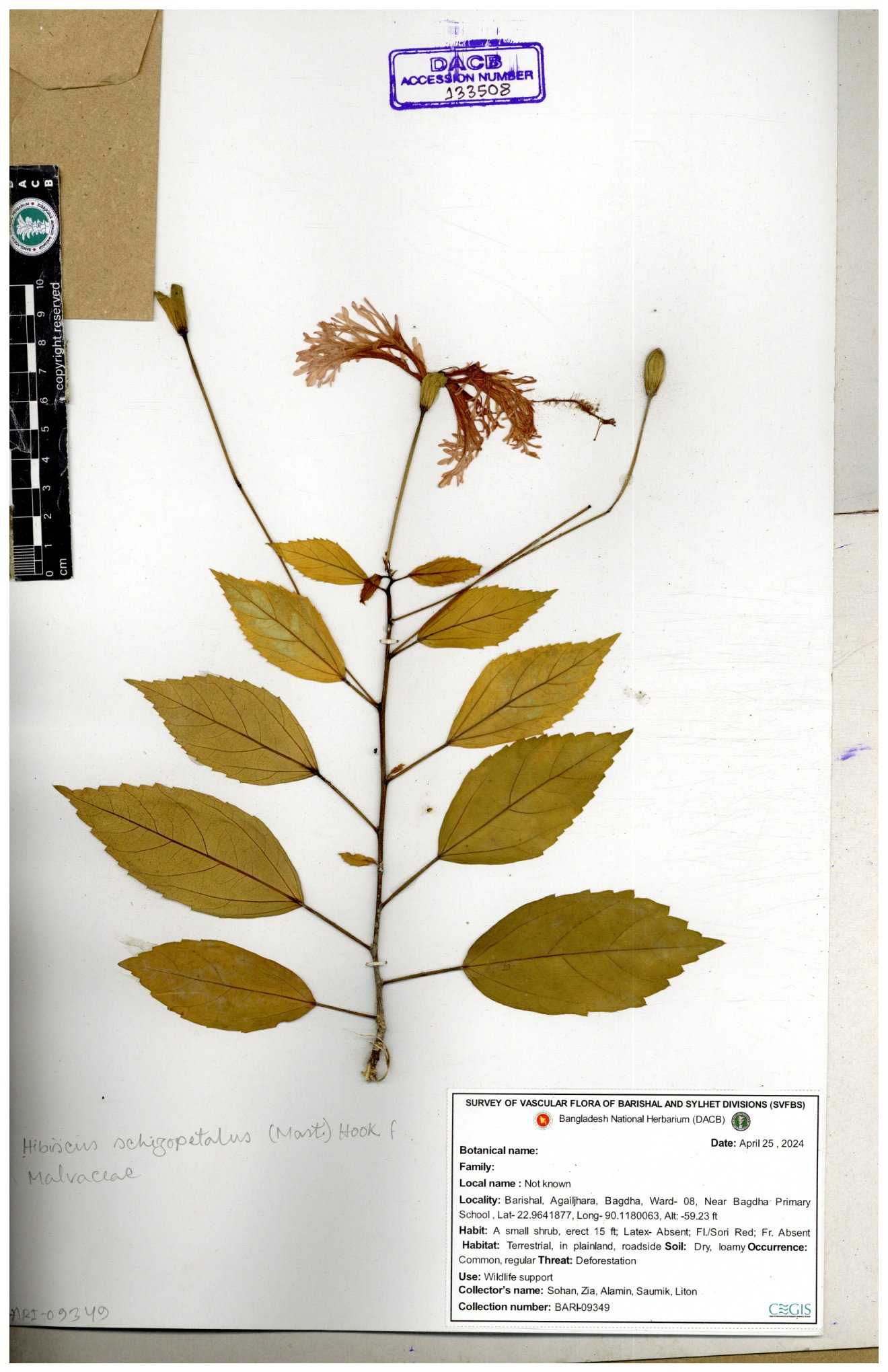 | 66848 | Malvaceae | Urena lobata L. | Joyanta, Mominur, Kamrul & Suborno | JCR-4311 22-03-2017 |