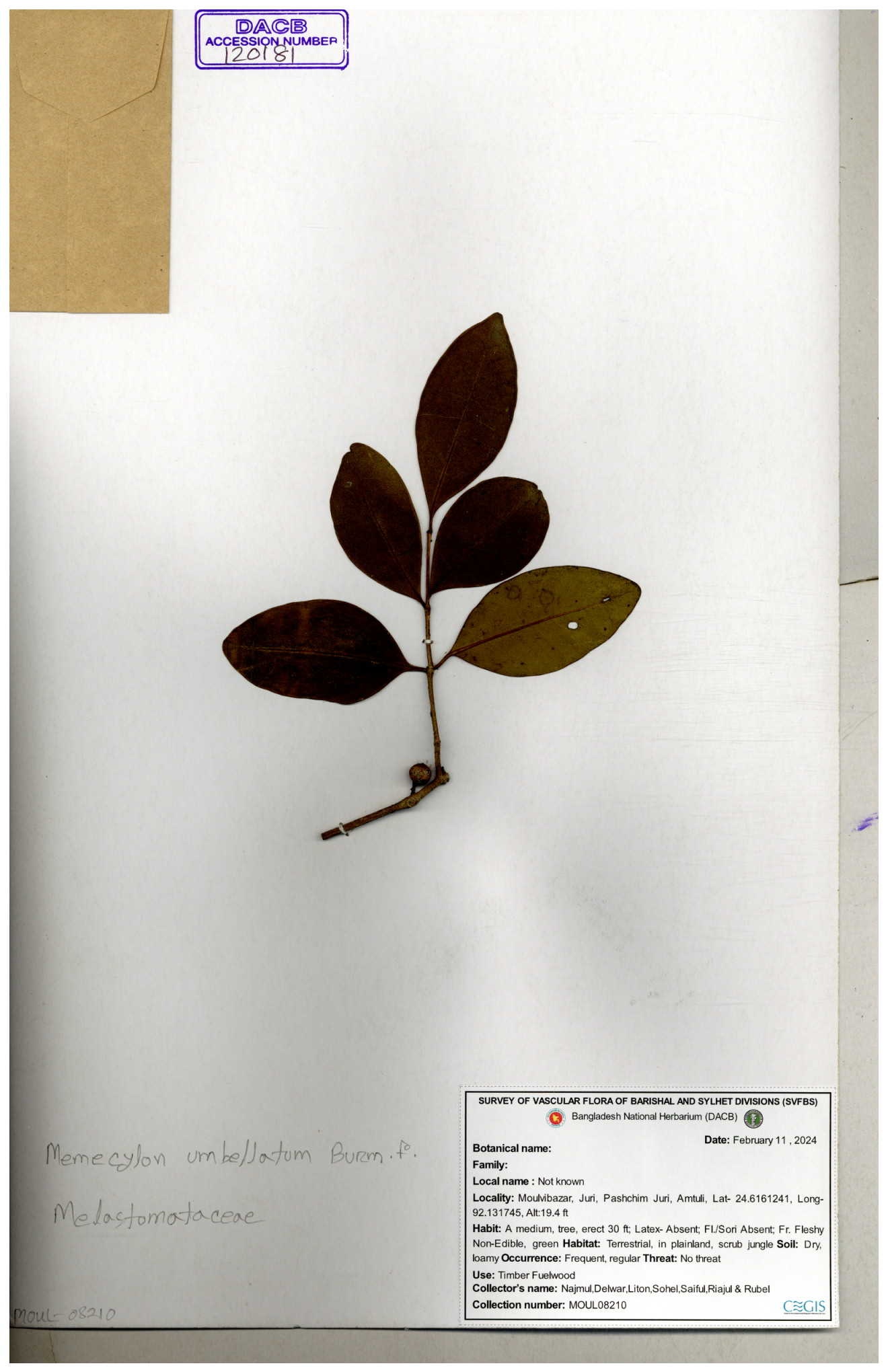 | 120181 | Melastomataceae | Memecylon umbellatum | 30-11--0001 |