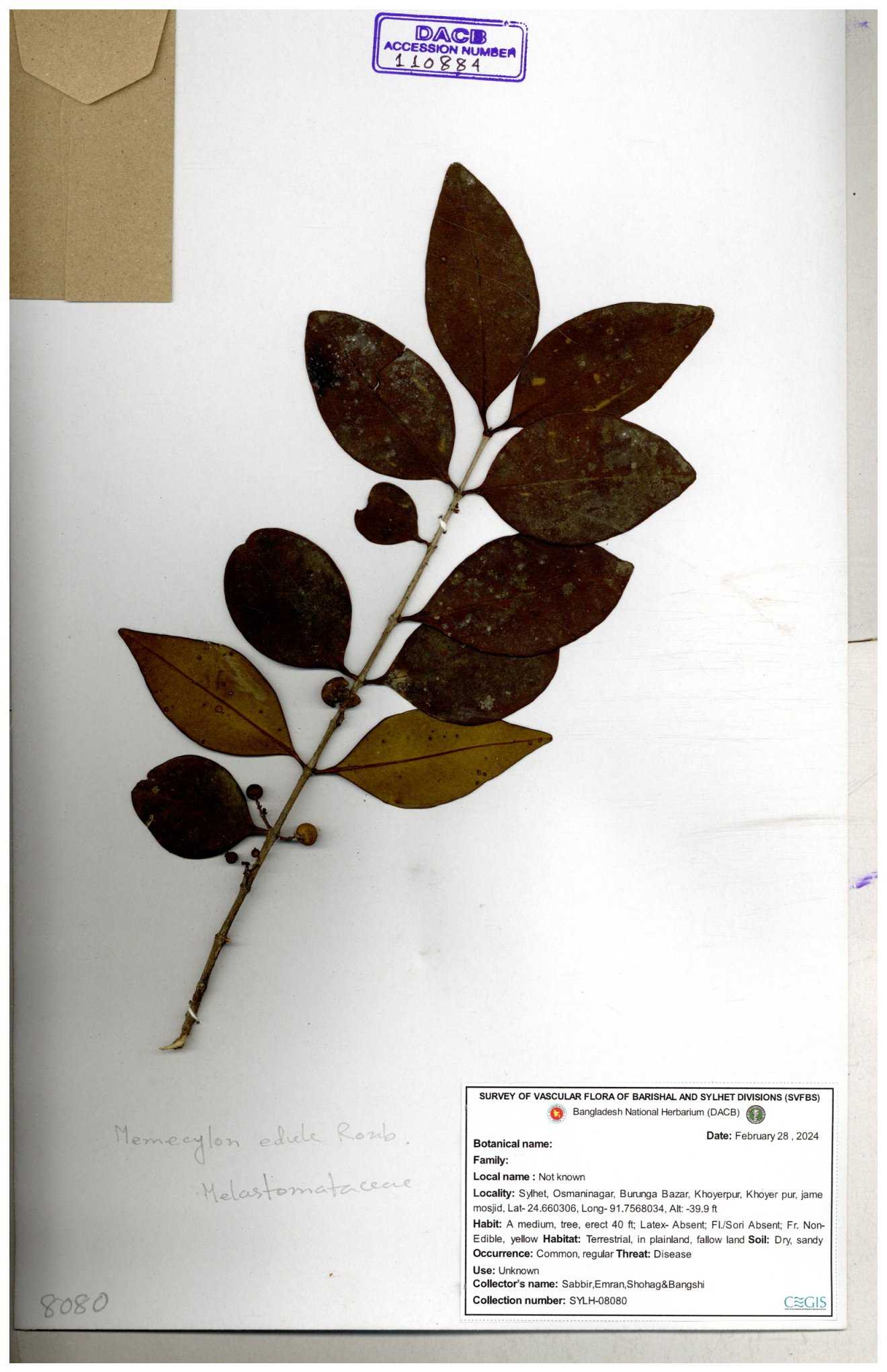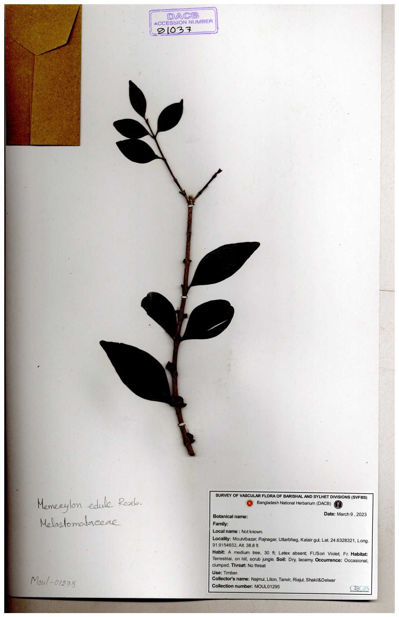 | 105460 | Melastomataceae | Memecylon umbvellatum | 30-11--0001 |